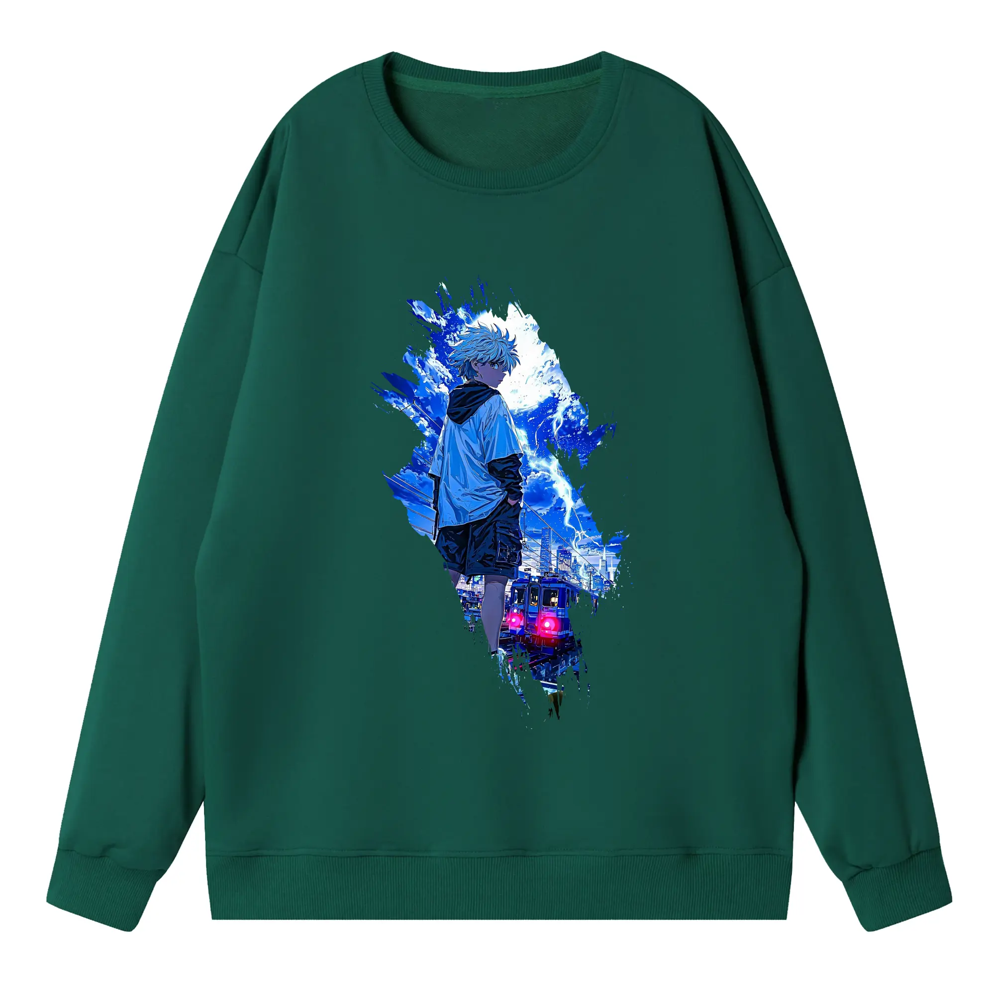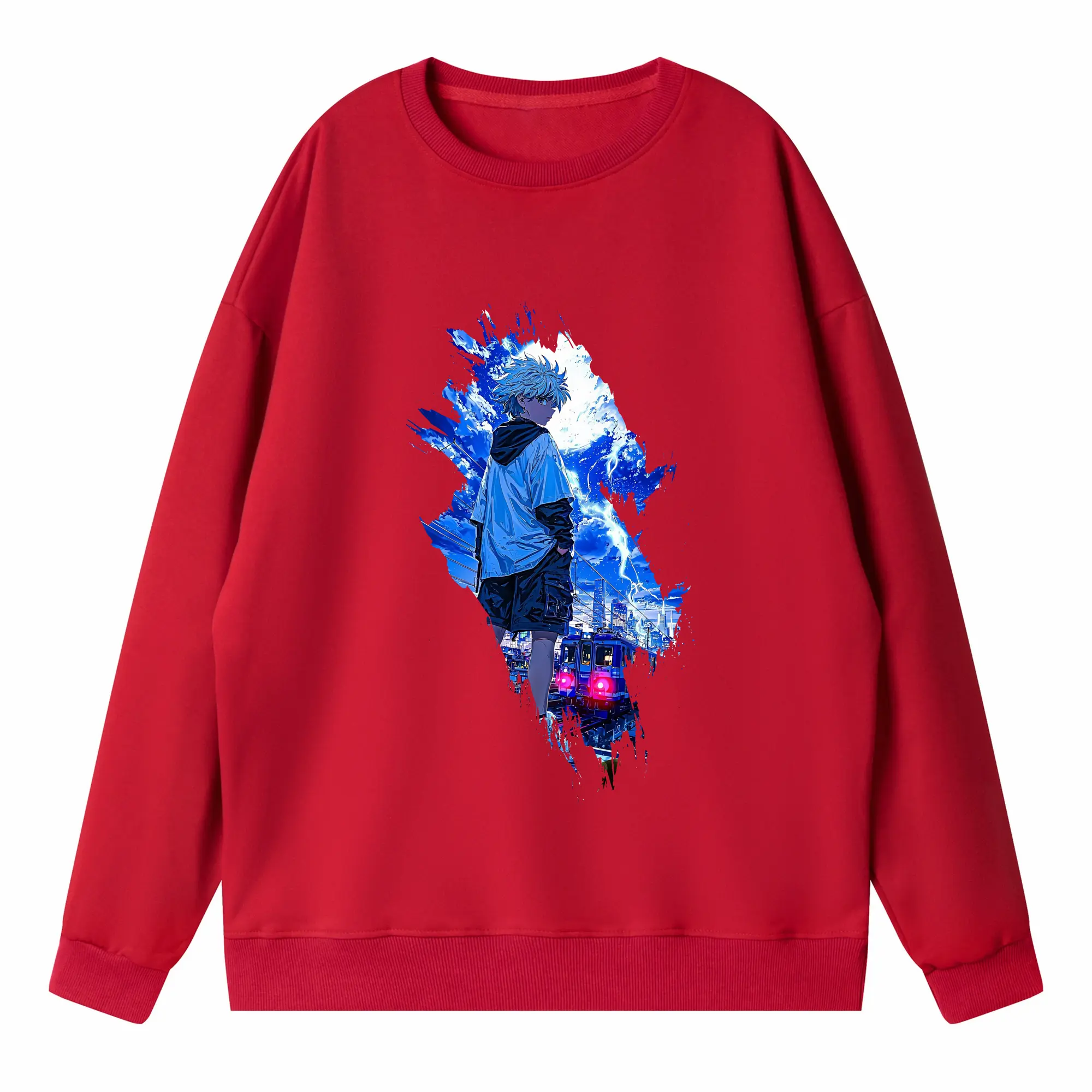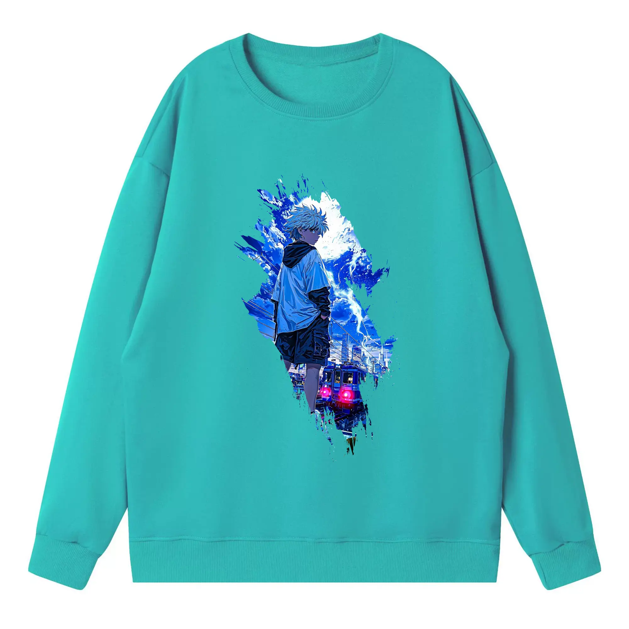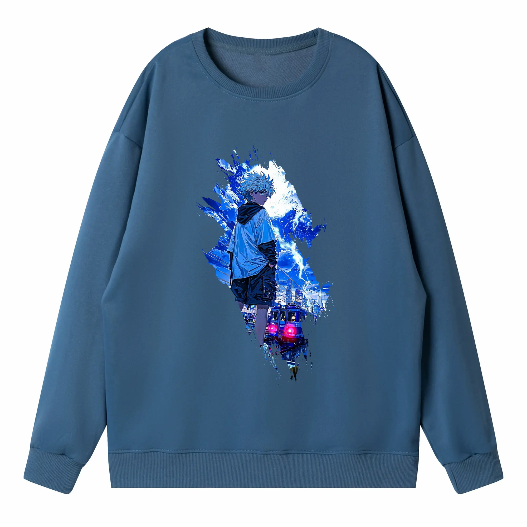ハンター×ハンター グッズ イルミ=ゾルディック - 薄手 クルーネック スウェット 裏毛260g · ポリエステル 春秋向け カジュアル 男女兼用 · トレーナー デイリー スポーツ 散歩に最適