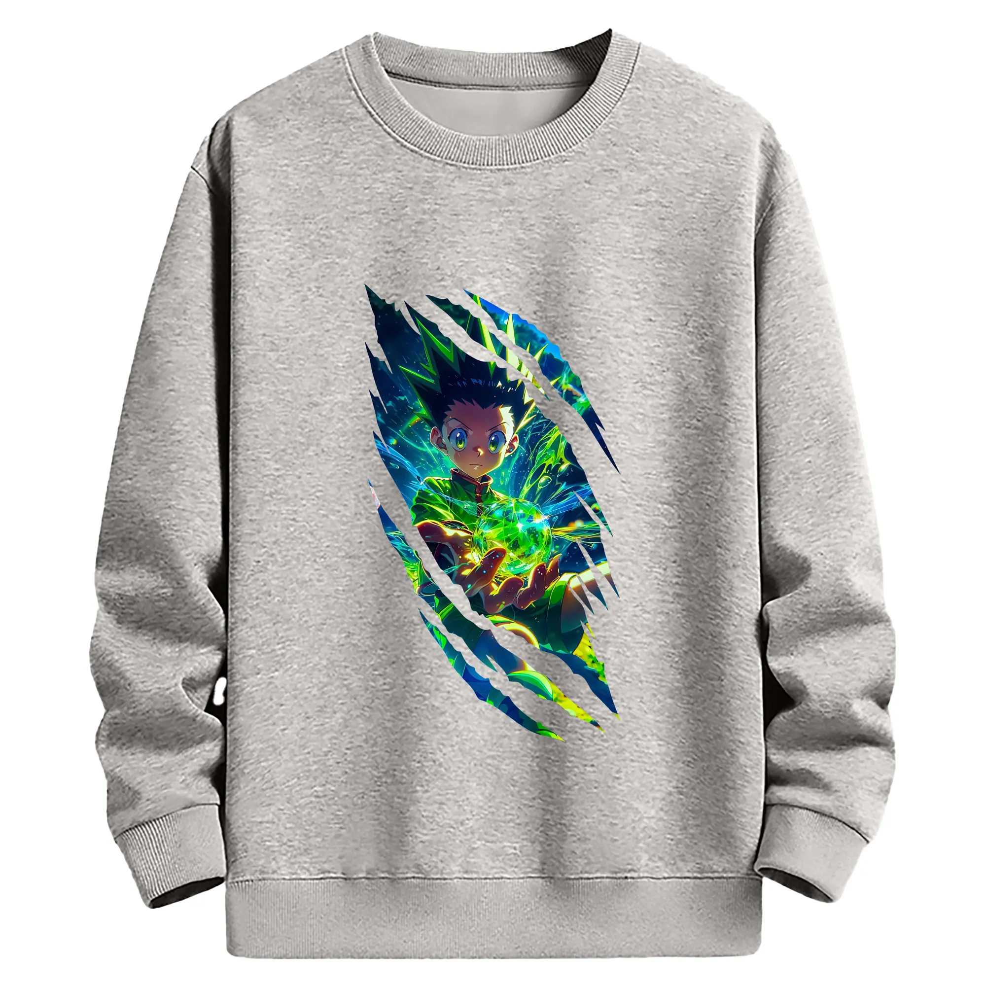 ハンター×ハンター グッズ ゴン=フリークス - 薄手 クルーネック スウェット 裏毛260g · ポリエステル 春秋向け カジュアル 男女兼用 · トレーナー デイリー スポーツ 散歩に最適