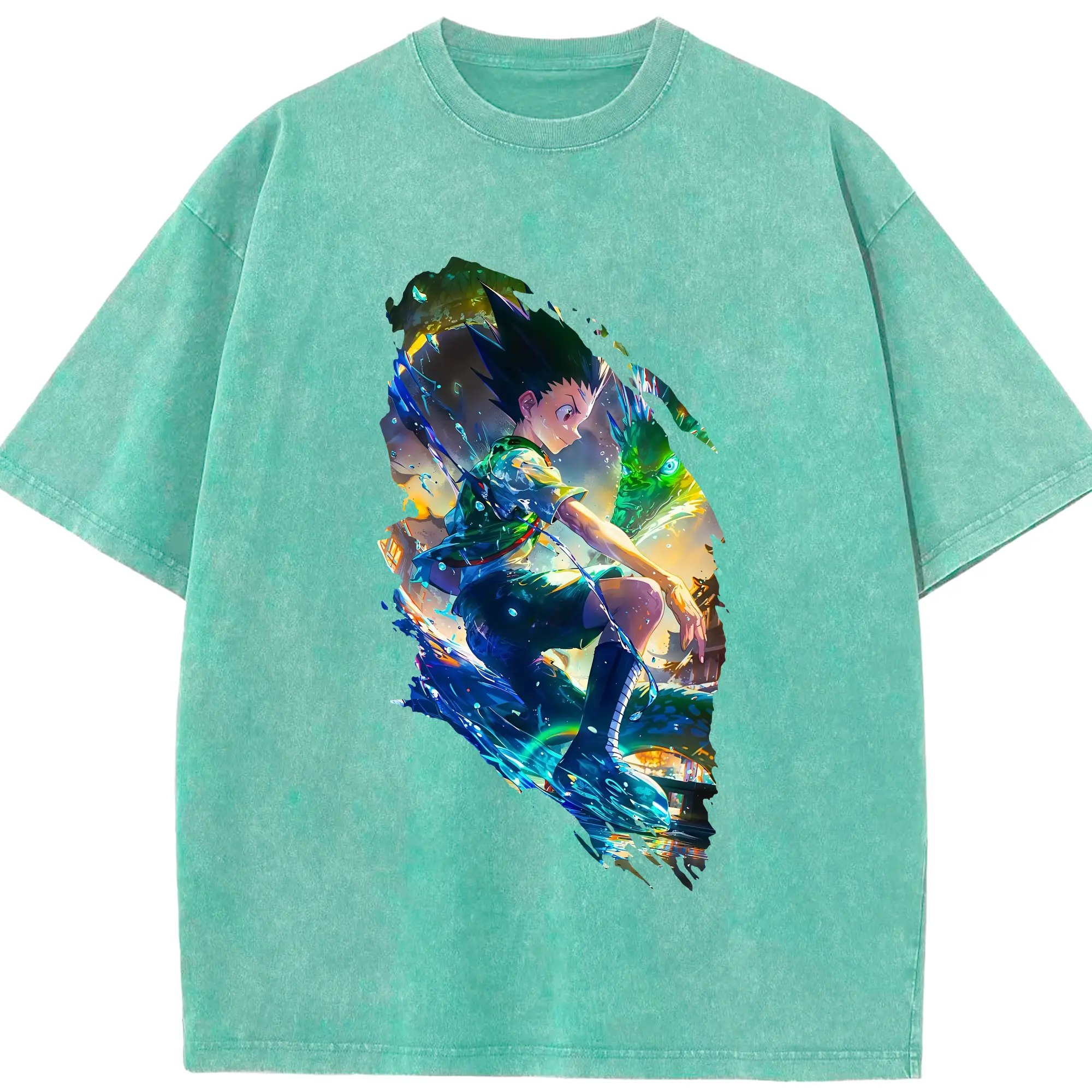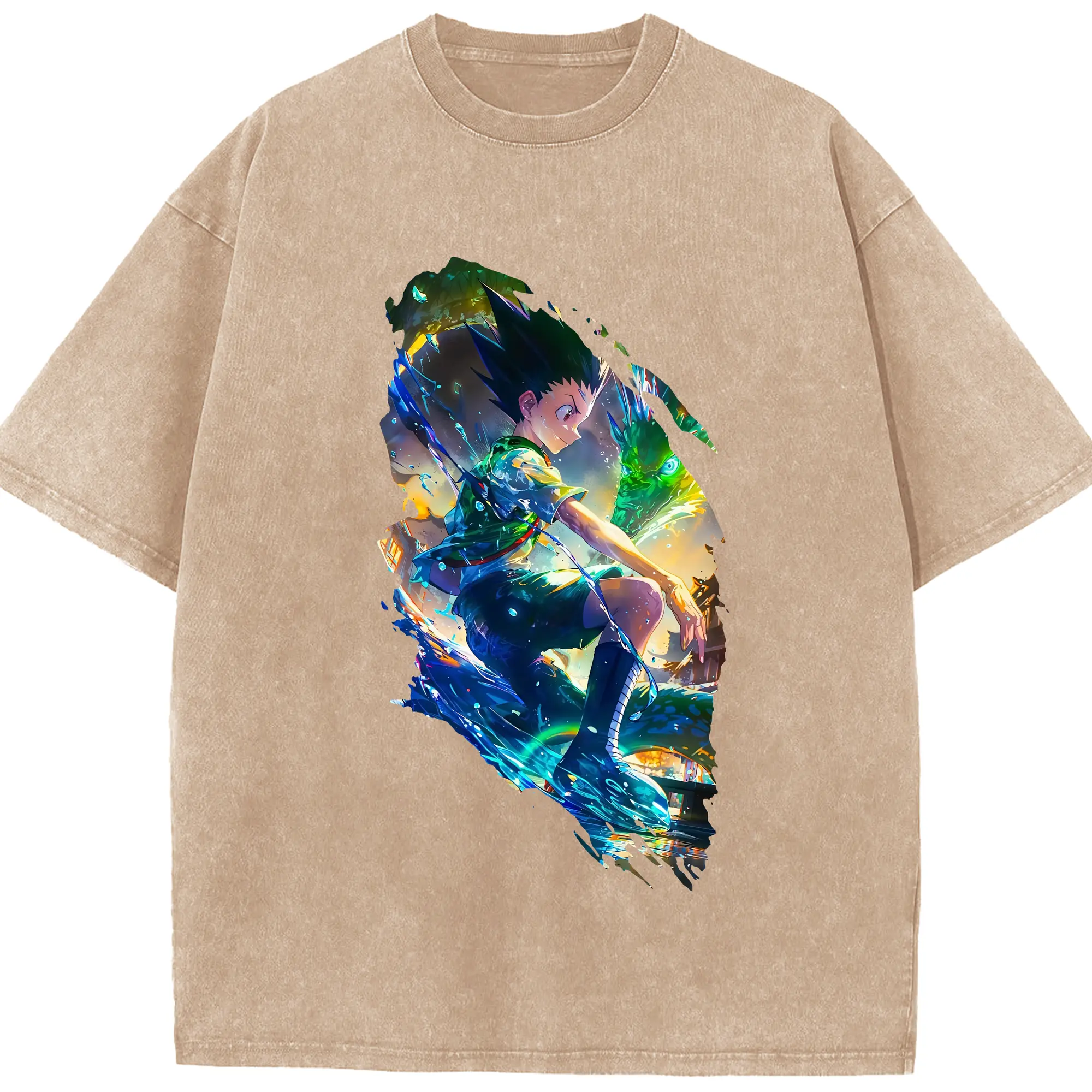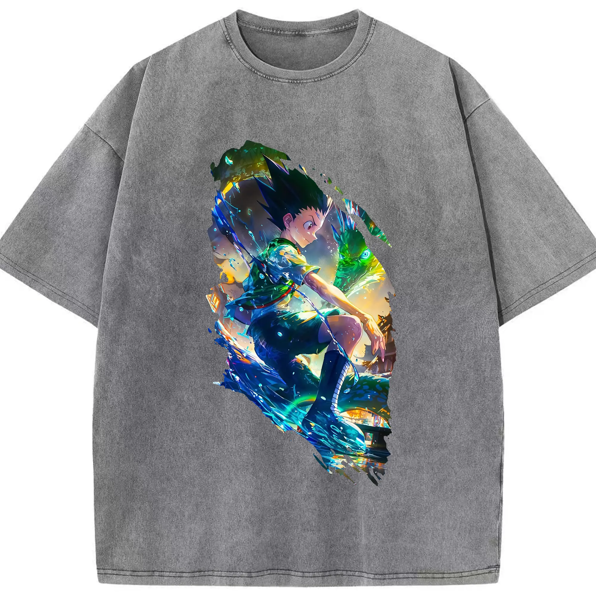 ハンター×ハンター グッズ ゴン=フリークス - 綿100% ヴィンテージ風 半袖Tシャツ ・ 背面プリント ・ 柔らか肌触り ・ 通気性 快適 ・ スポーツ カジュアル 外出用