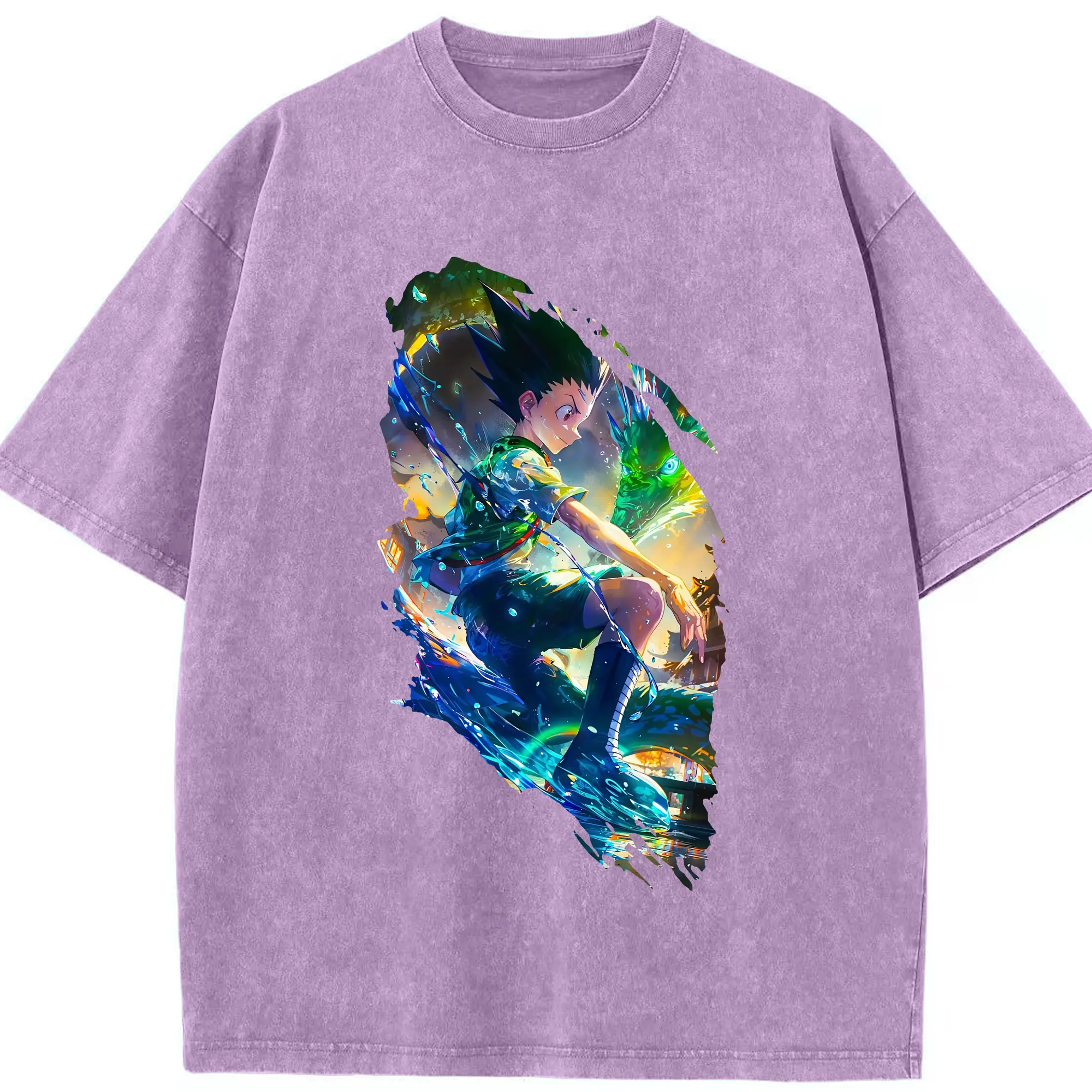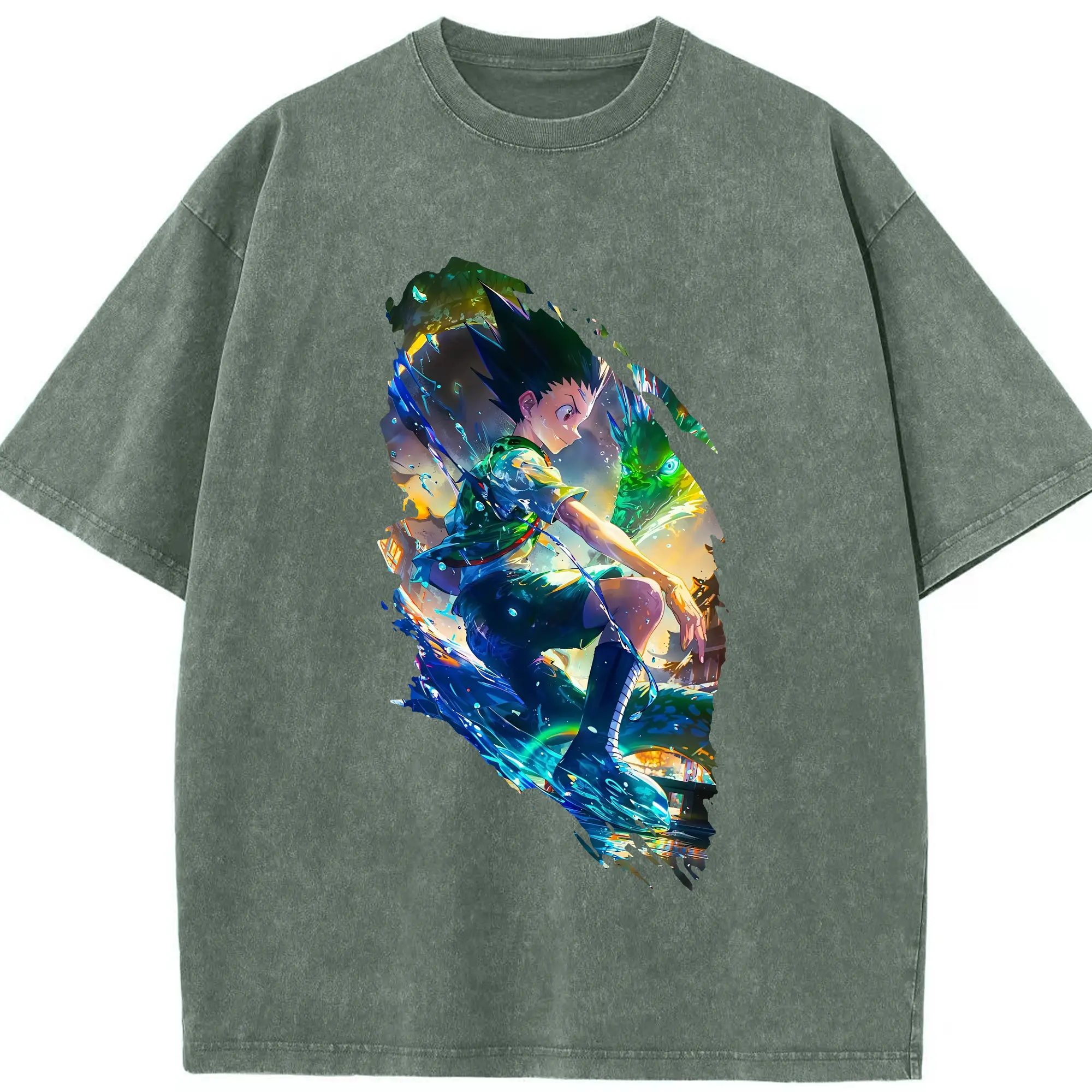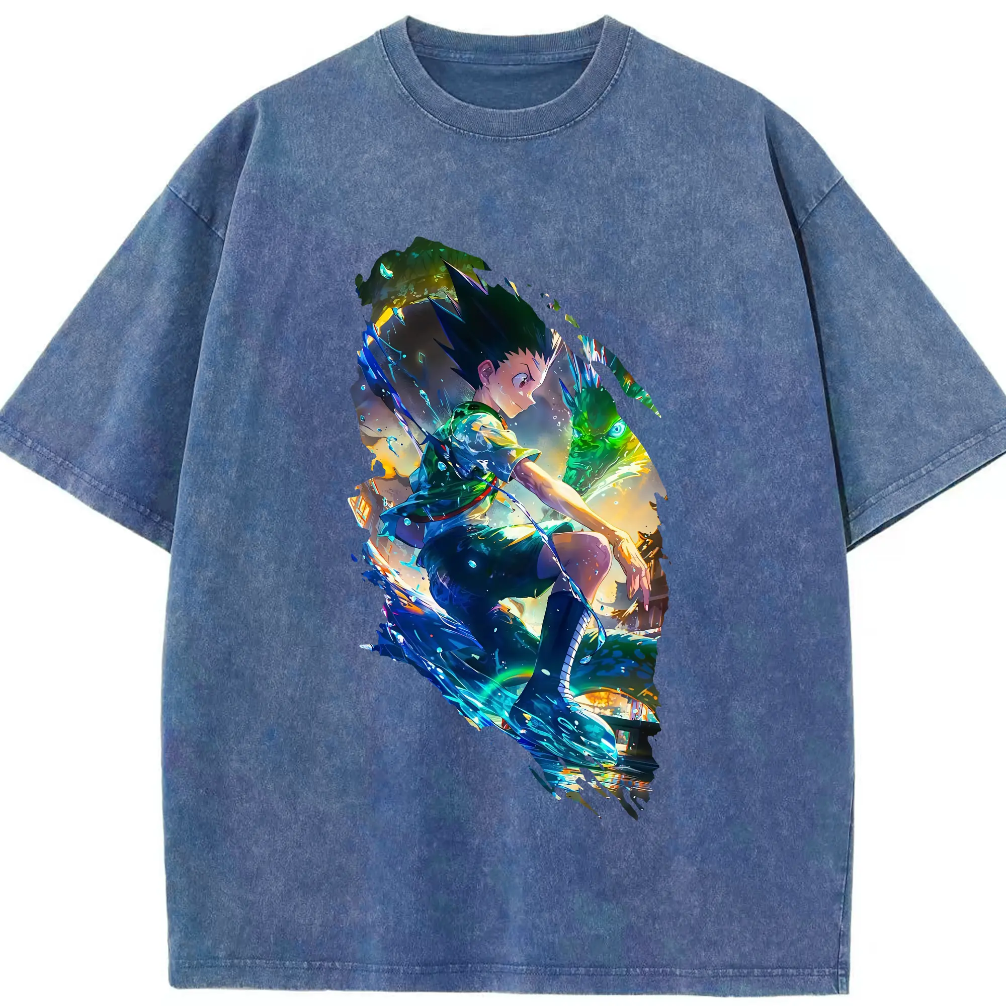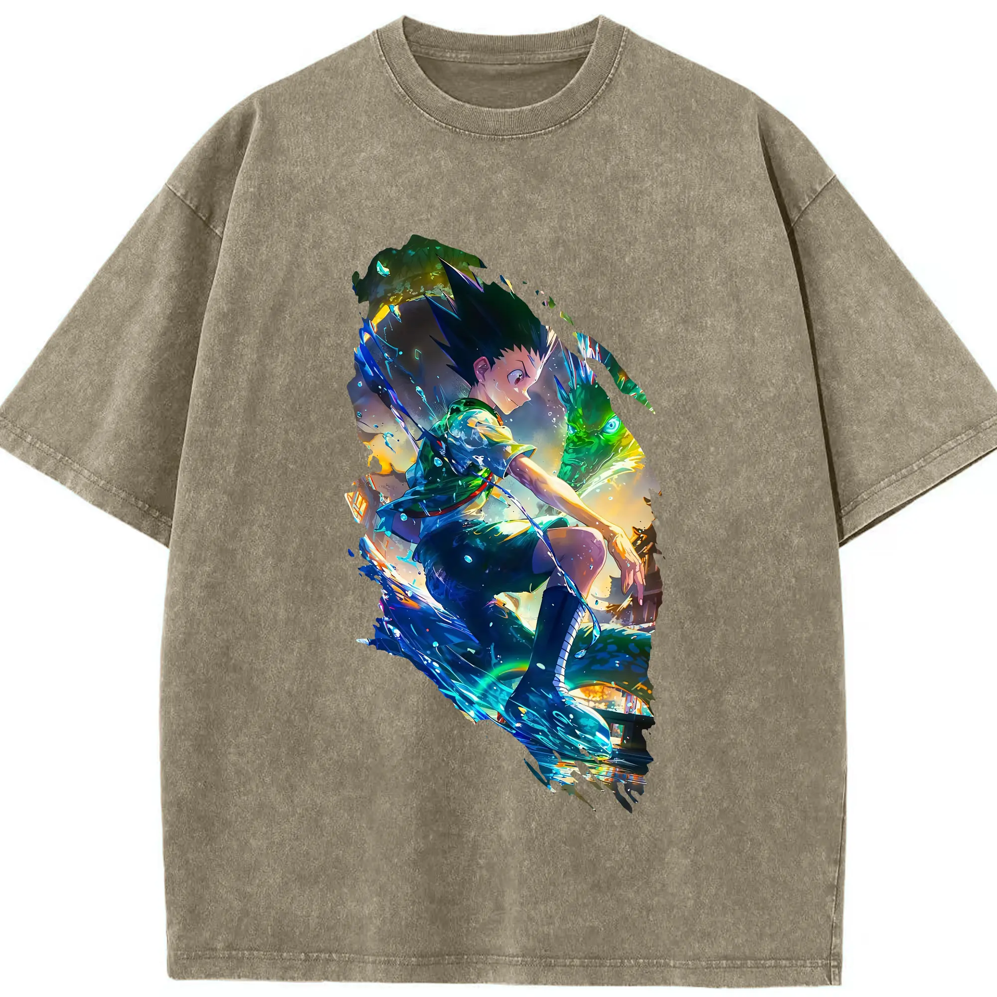 ハンター×ハンター グッズ ゴン=フリークス - 綿100% ヴィンテージ風 半袖Tシャツ ・ 背面プリント ・ 柔らか肌触り ・ 通気性 快適 ・ スポーツ カジュアル 外出用