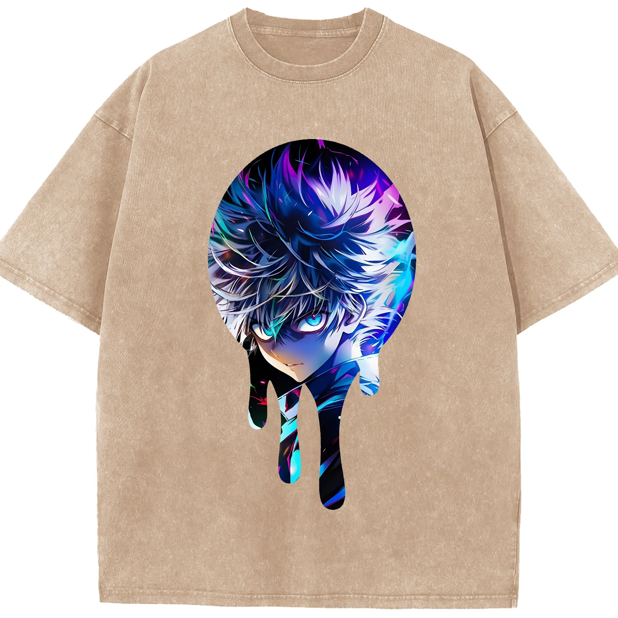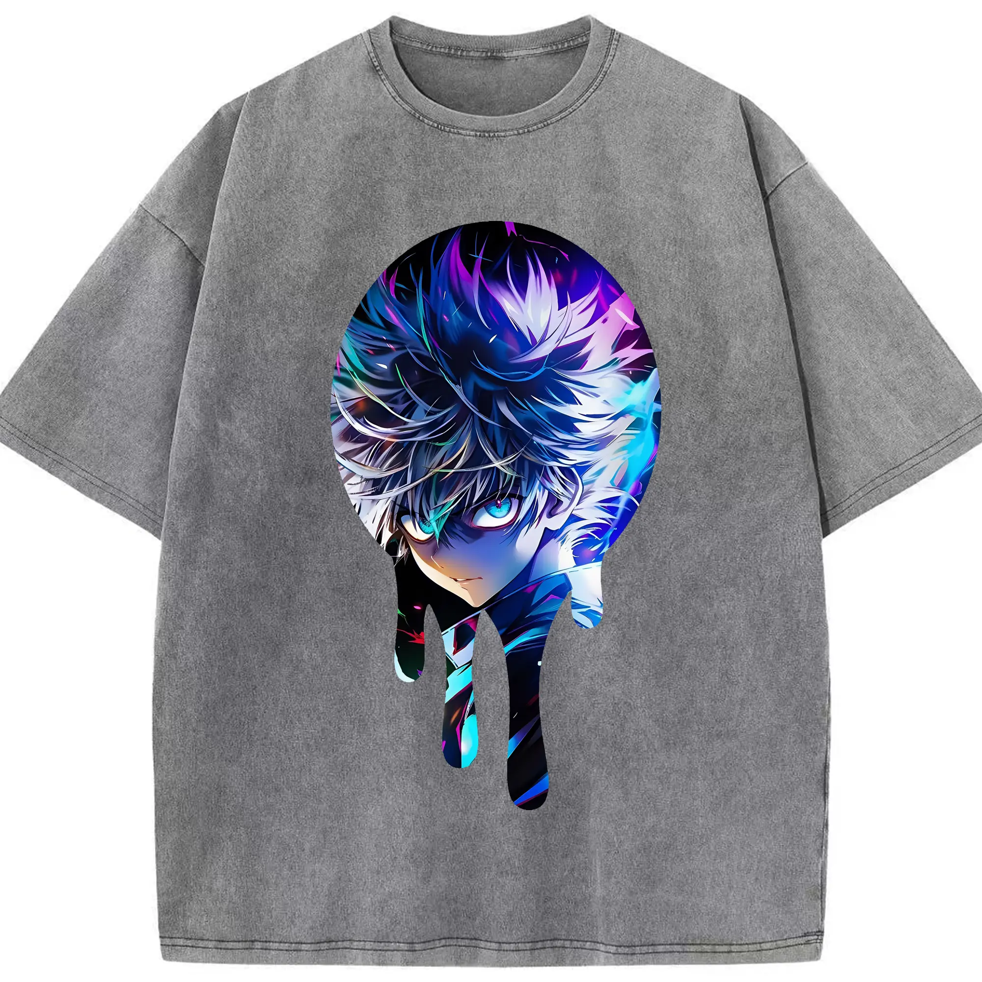 ハンター×ハンター グッズ ゴン=フリークス - 綿100% ヴィンテージ風 半袖Tシャツ ・ 背面プリント ・ 柔らか肌触り ・ 通気性 快適 ・ スポーツ カジュアル 外出用