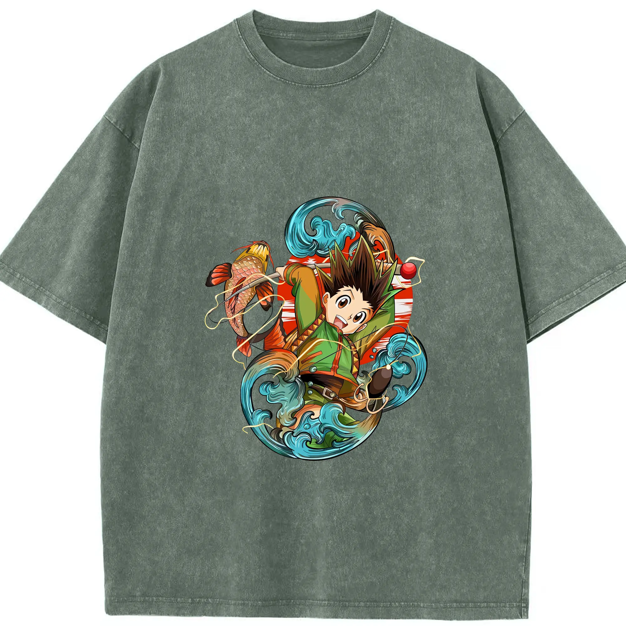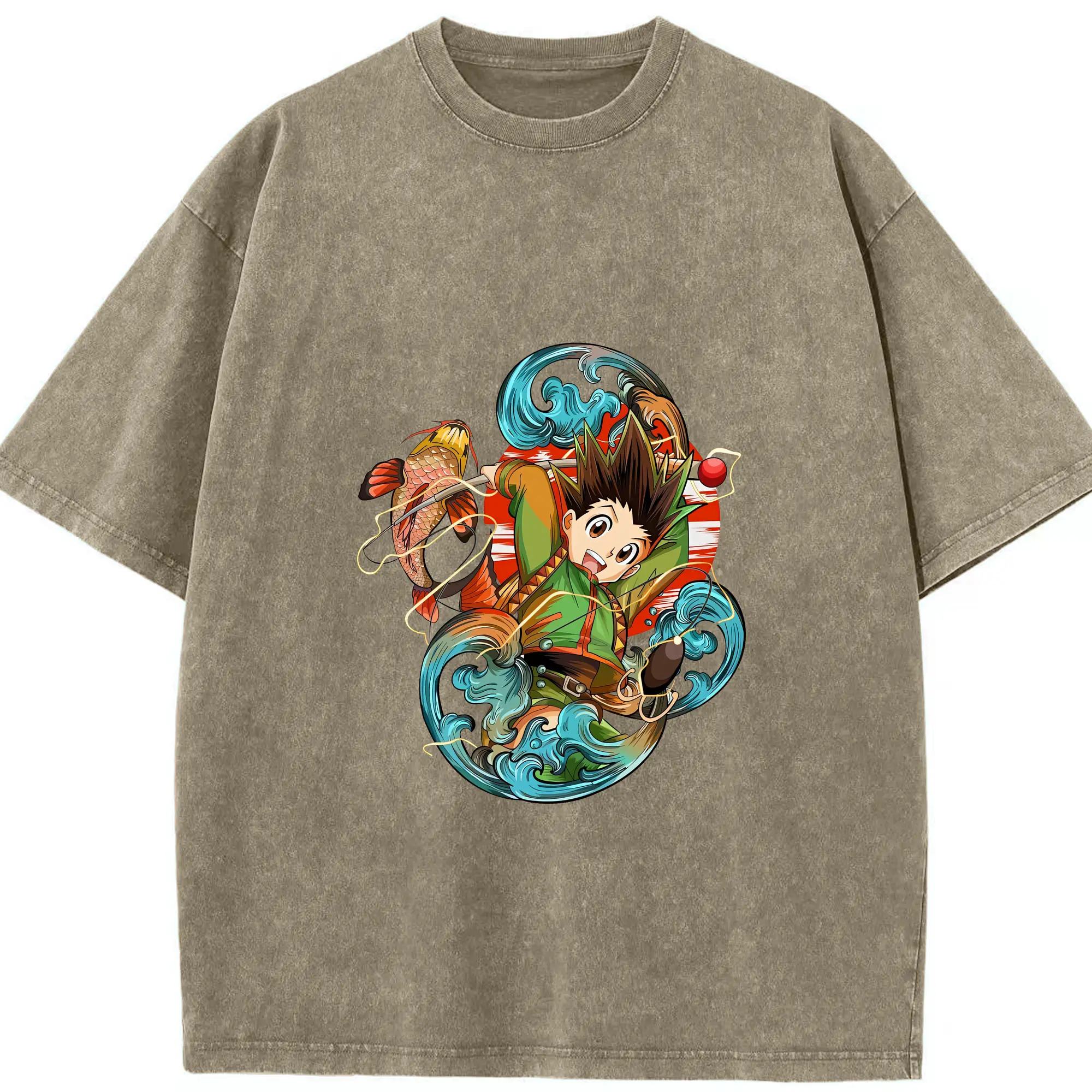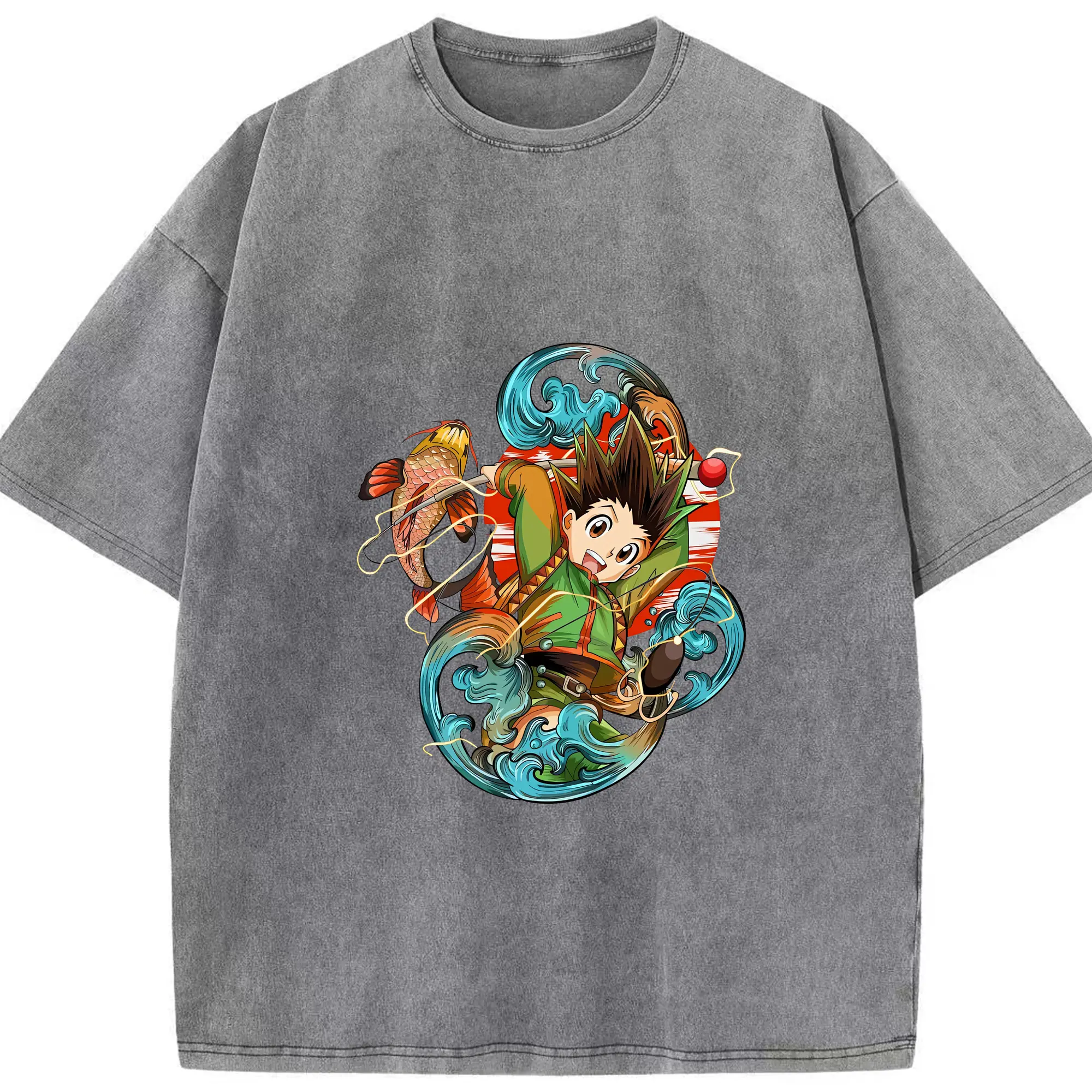 ハンター×ハンター グッズ ゴン=フリークス - 綿100% ヴィンテージ風 半袖Tシャツ ・ 背面プリント ・ 柔らか肌触り ・ 通気性 快適 ・ スポーツ カジュアル 外出用