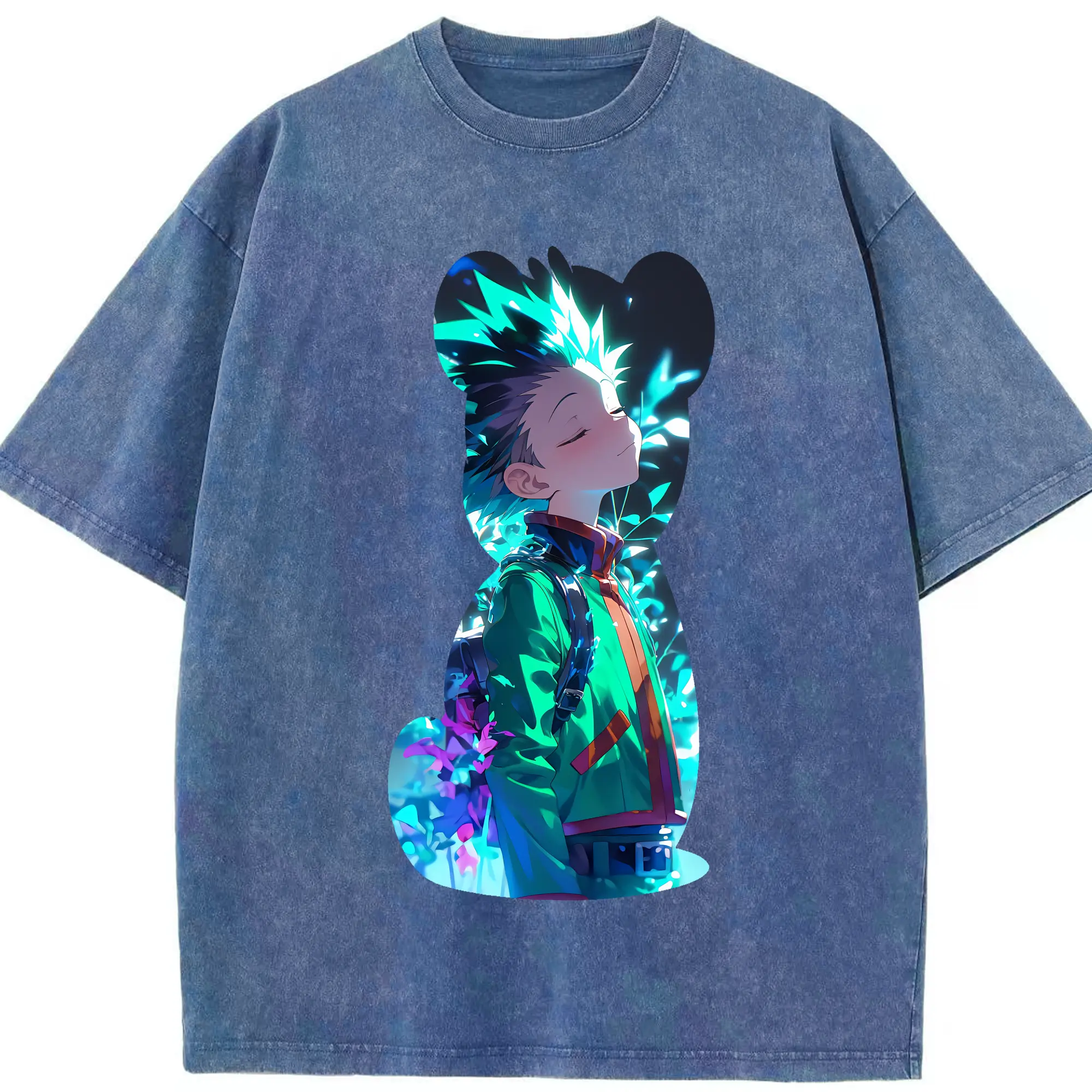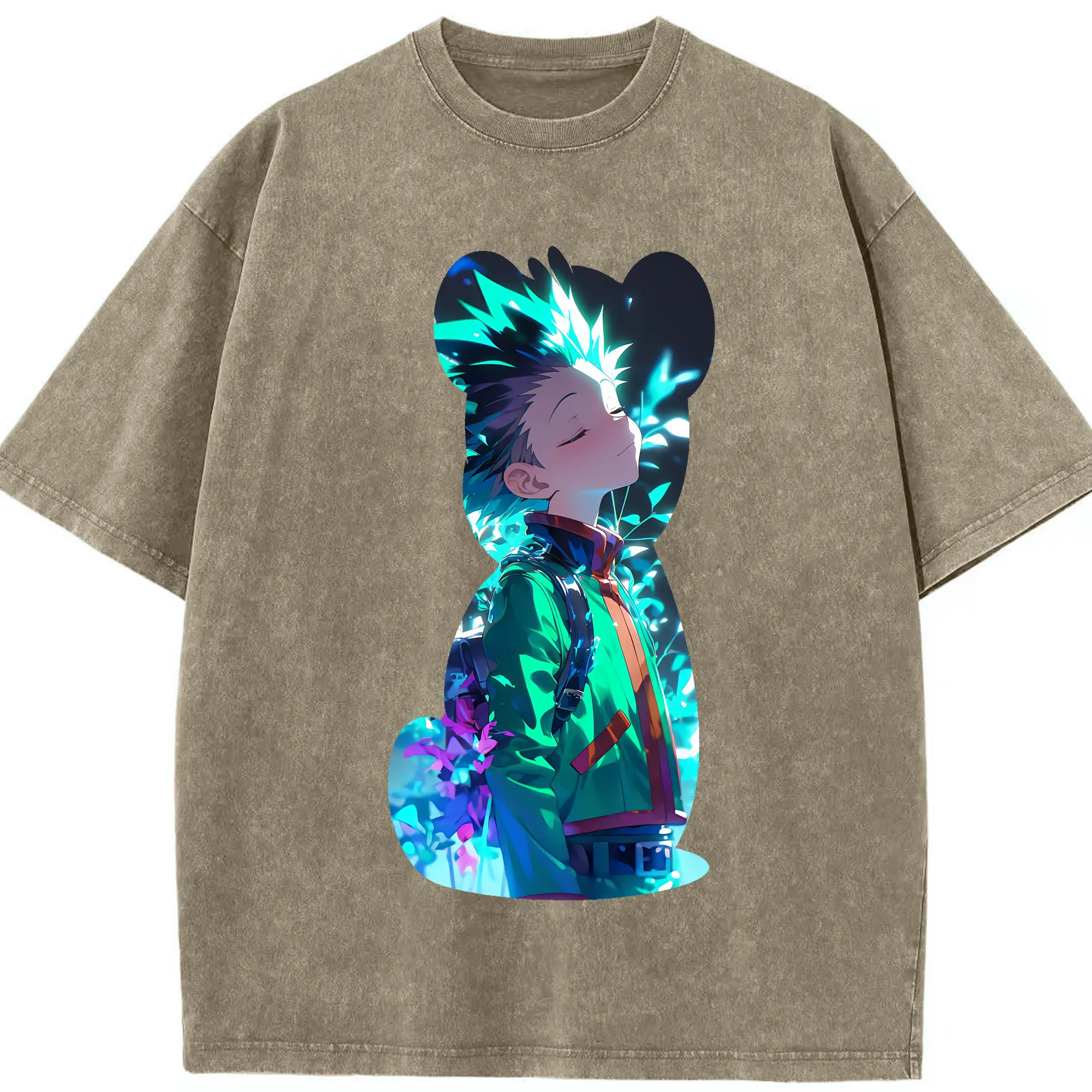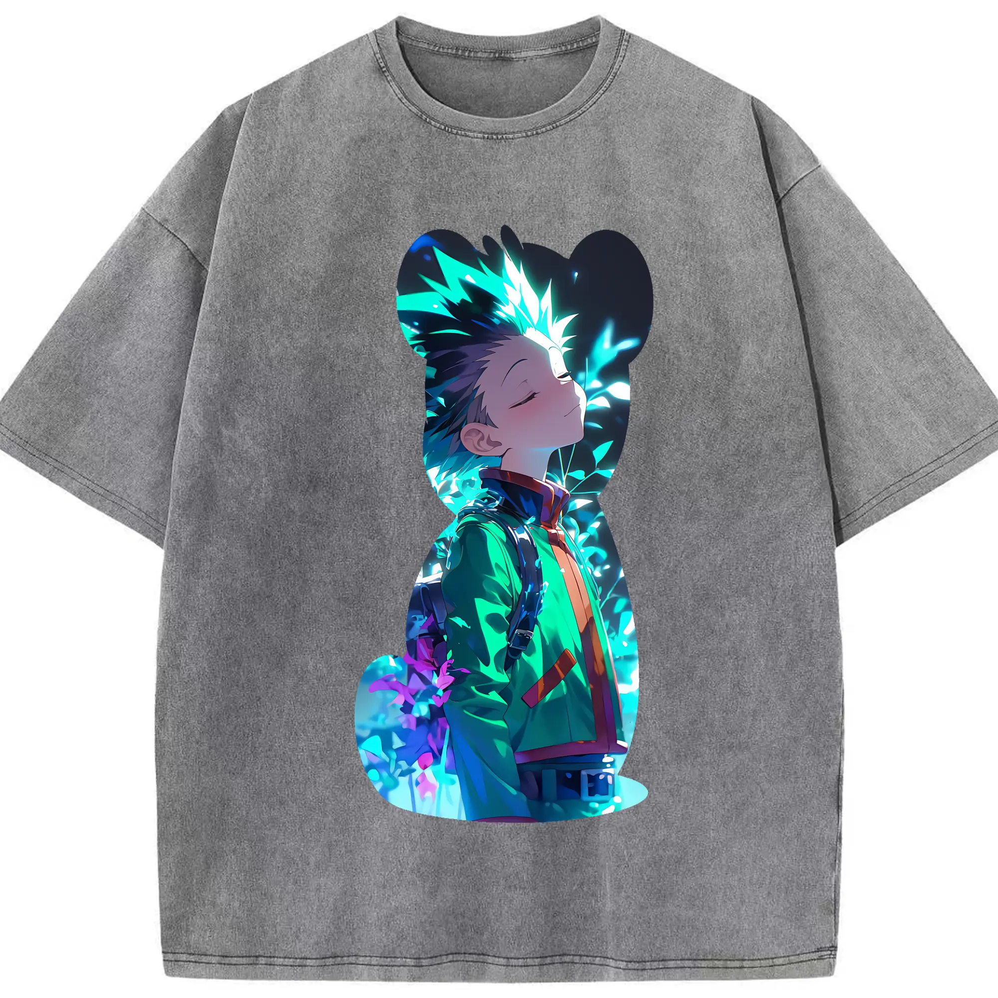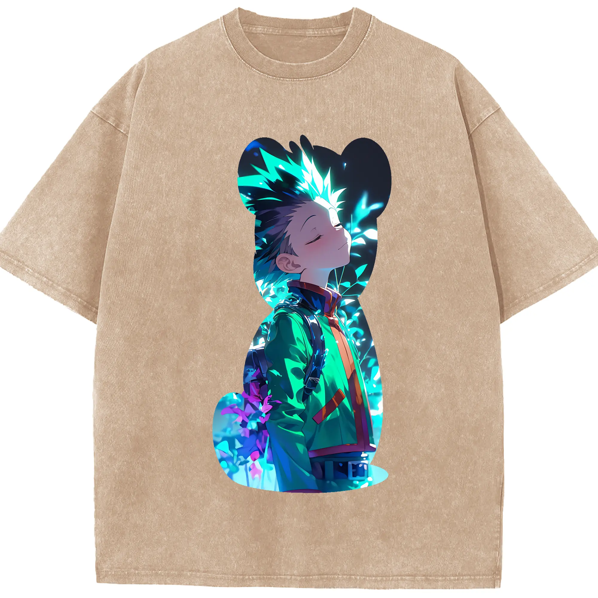 ハンター×ハンター グッズ ゴン=フリークス - 綿100% ヴィンテージ風 半袖Tシャツ ・ 背面プリント ・ 柔らか肌触り ・ 通気性 快適 ・ スポーツ カジュアル 外出用