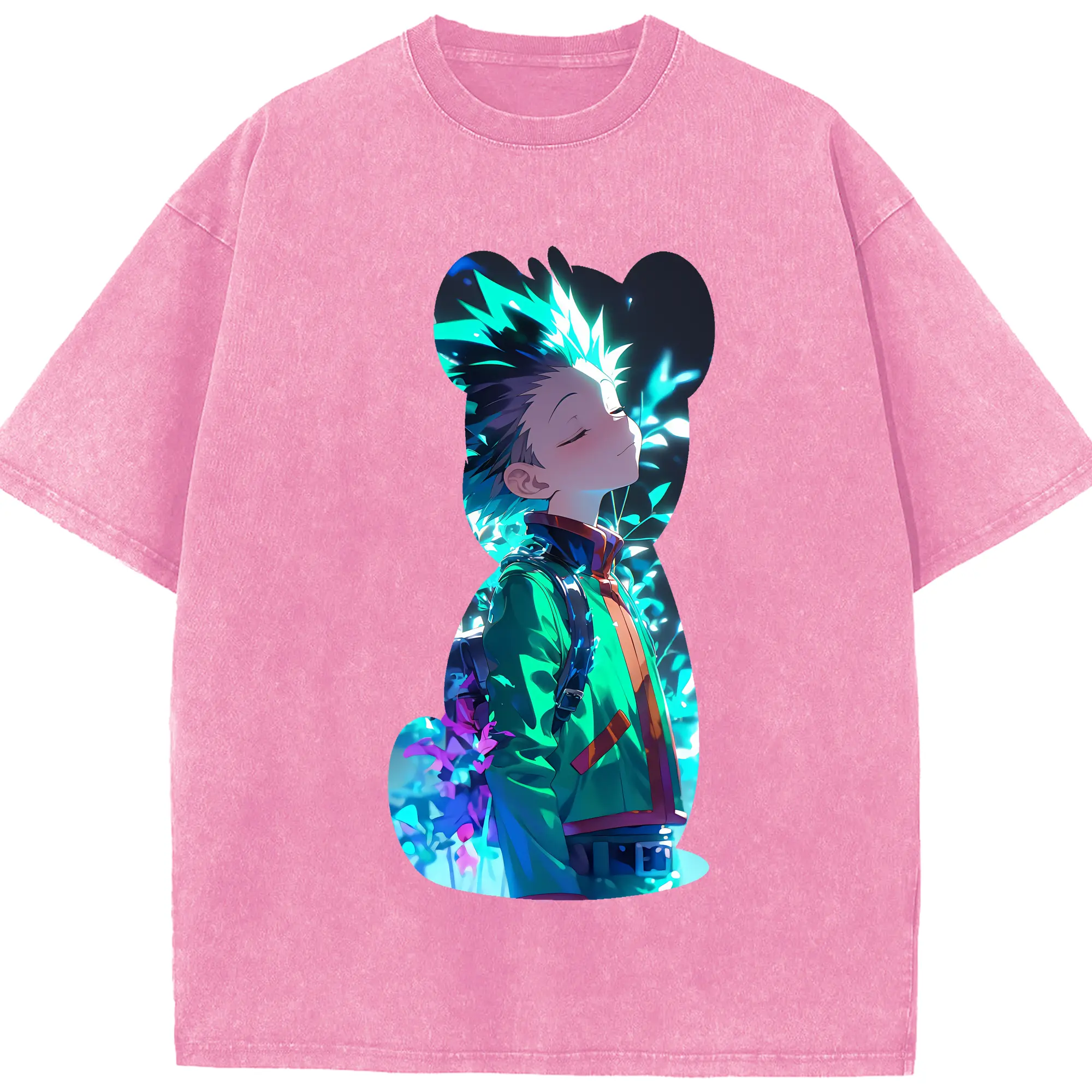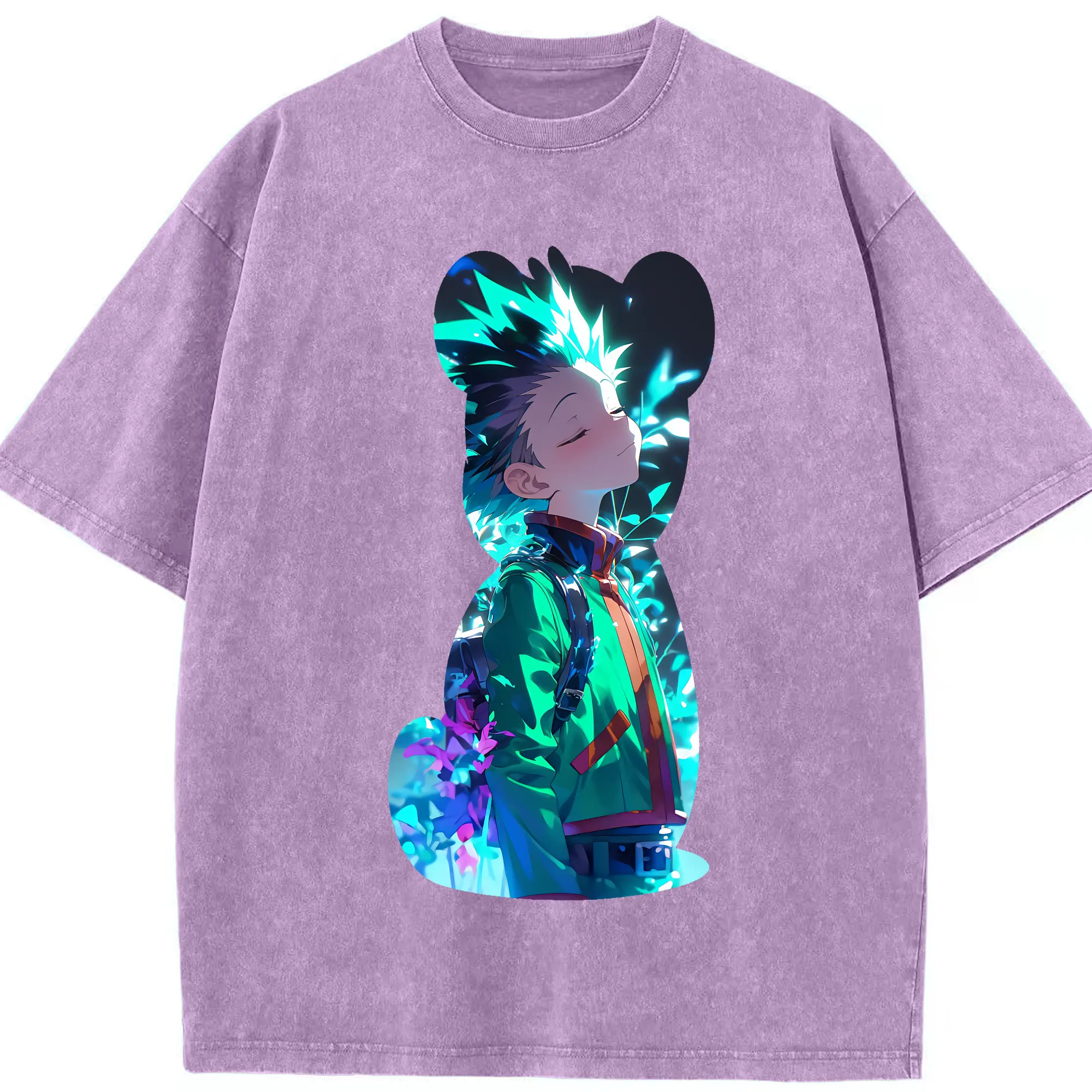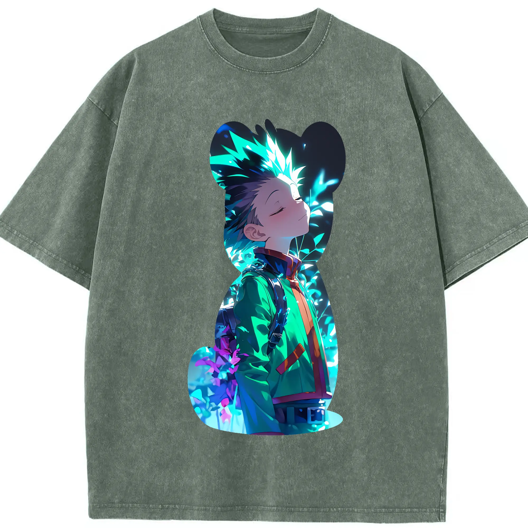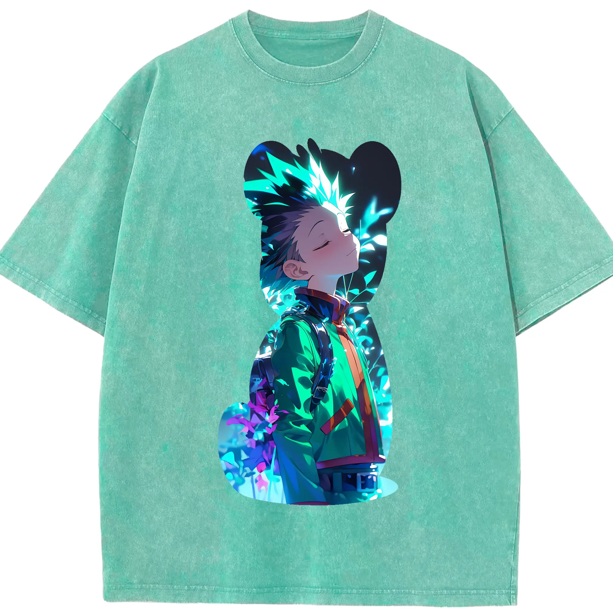ハンター×ハンター グッズ ゴン=フリークス - 綿100% ヴィンテージ風 半袖Tシャツ ・ 背面プリント ・ 柔らか肌触り ・ 通気性 快適 ・ スポーツ カジュアル 外出用