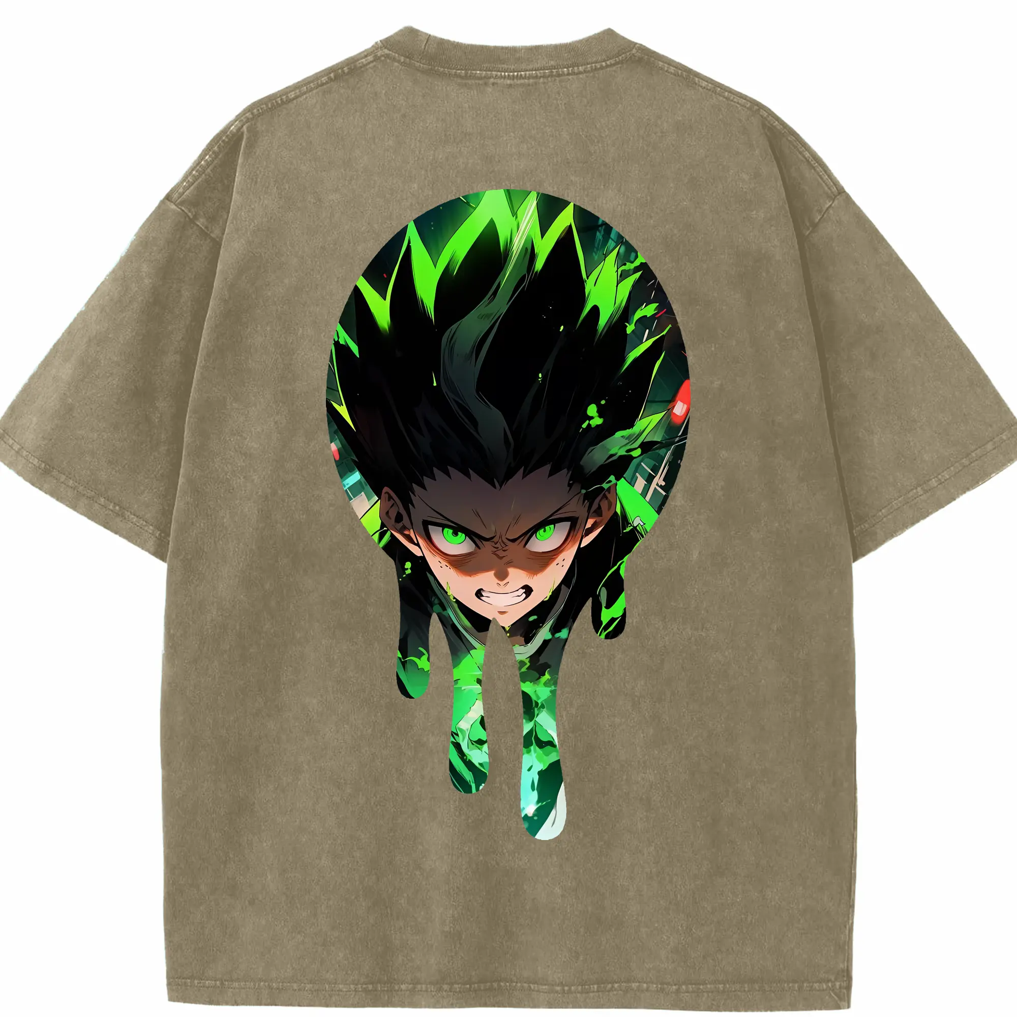 ハンター×ハンター グッズ ゴン=フリークス - 綿100% ヴィンテージ風 半袖Tシャツ ・ フロントプリント ・ 柔らか肌触り ・ 通気性 快適 ・ スポーツ カジュアル 外出用