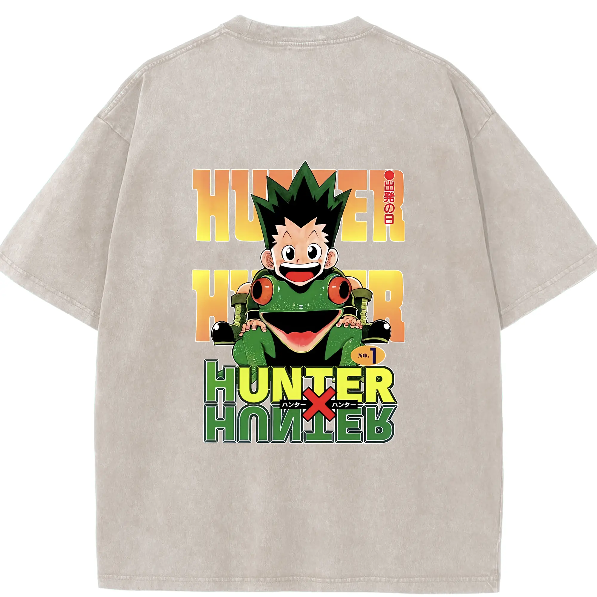 ハンター×ハンター グッズ ゴン=フリークス - 綿100% ヴィンテージ風 半袖Tシャツ ・ フロントプリント ・ 柔らか肌触り ・ 通気性 快適 ・ スポーツ カジュアル 外出用