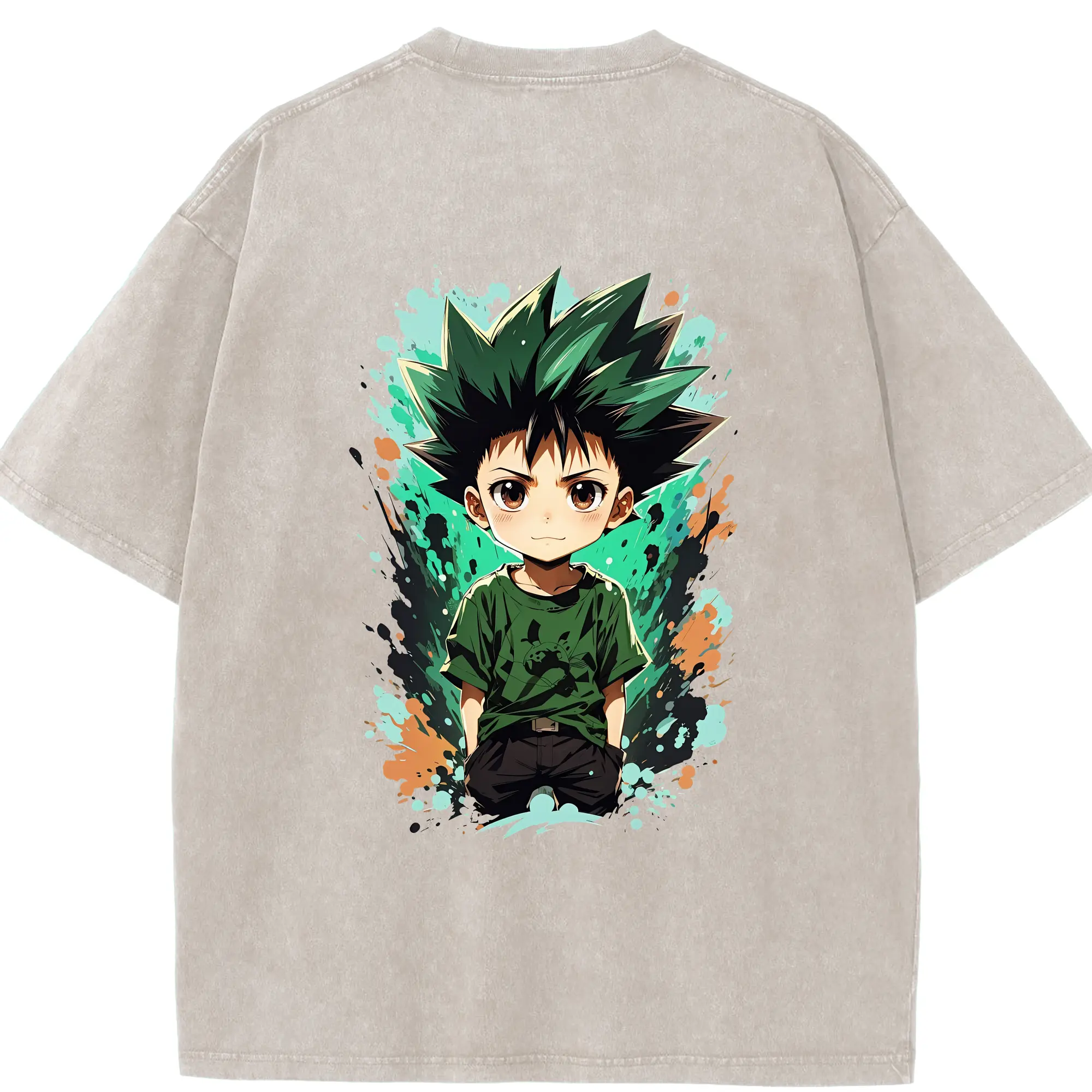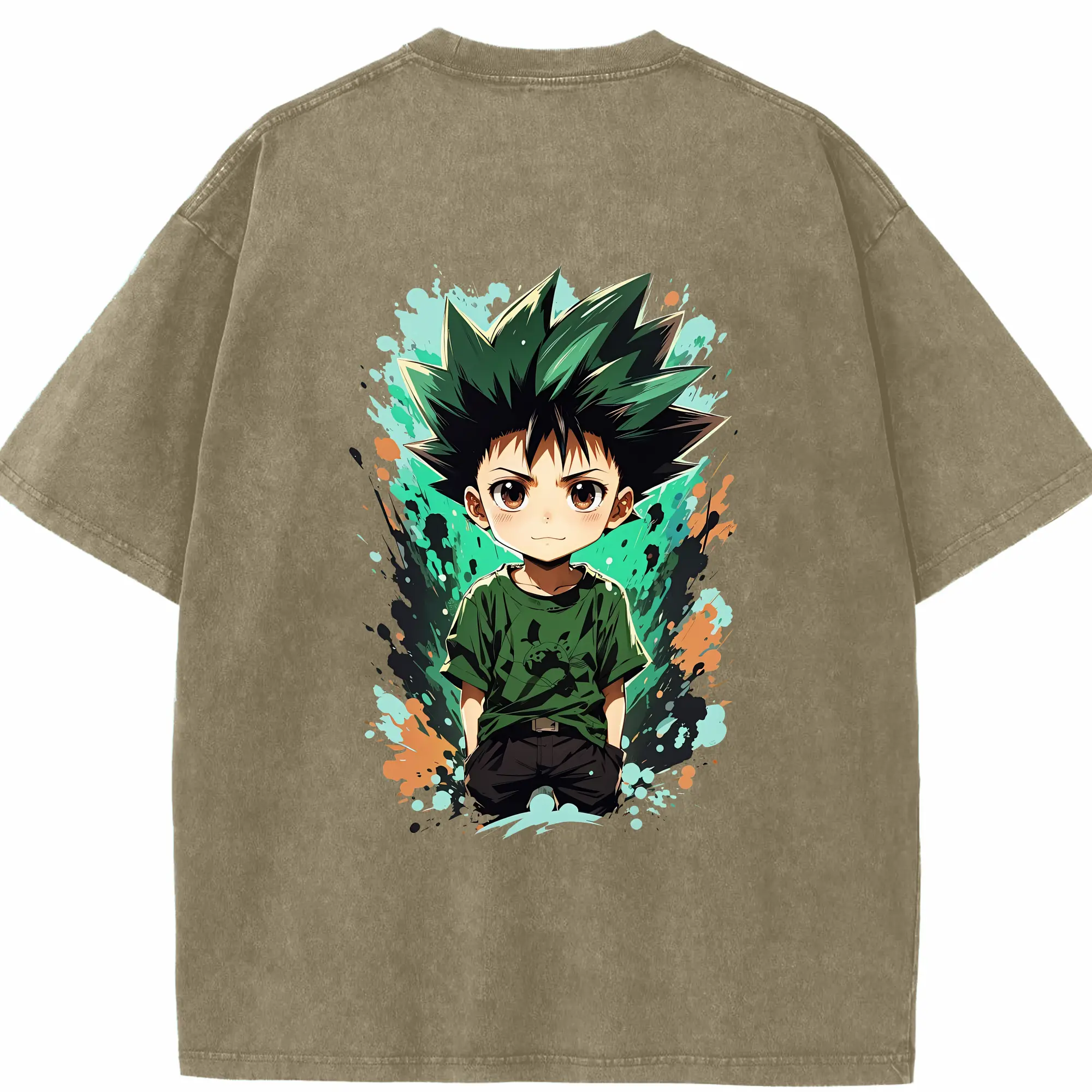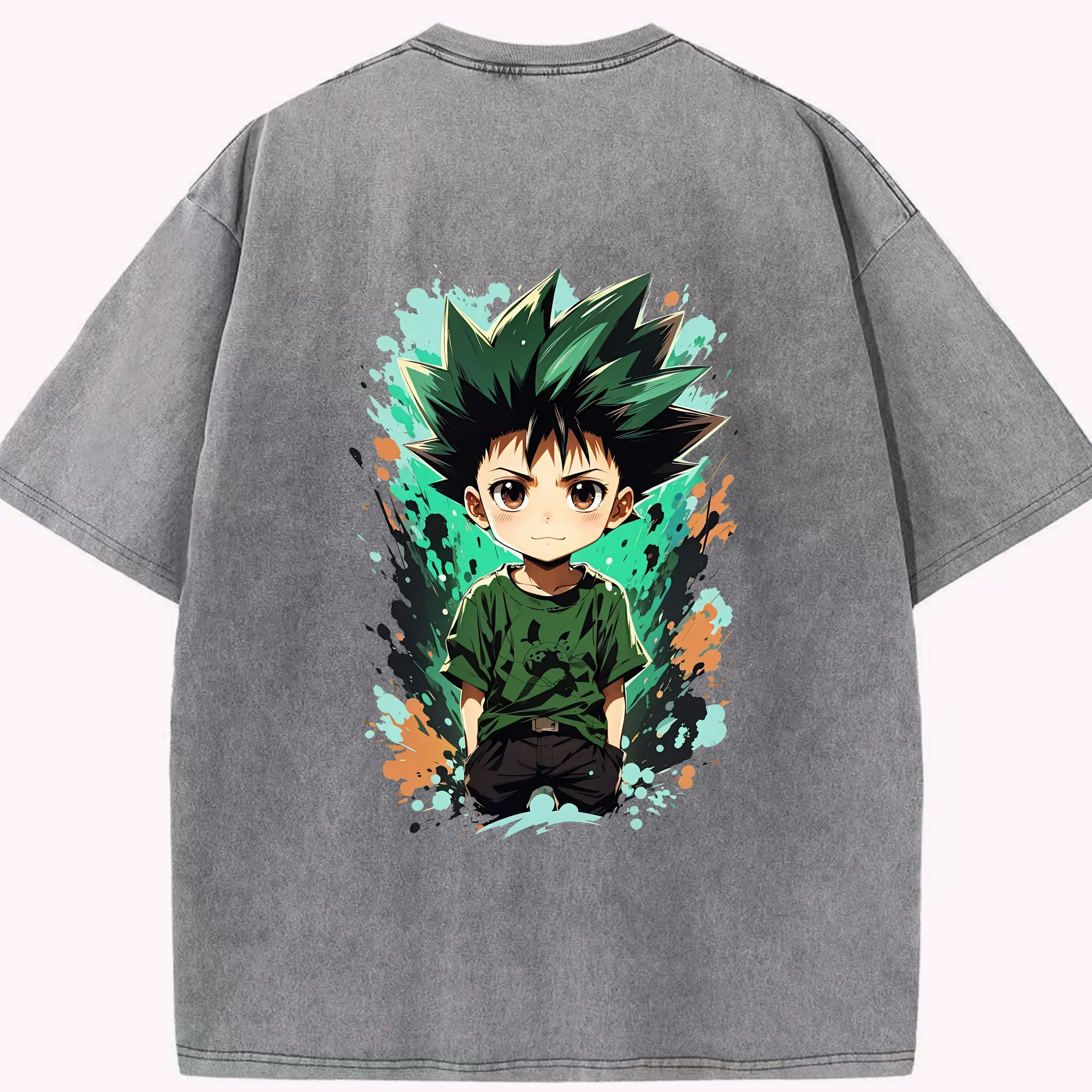 ハンター×ハンター グッズ ゴン=フリークス - 綿100% ヴィンテージ風 半袖Tシャツ ・ フロントプリント ・ 柔らか肌触り ・ 通気性 快適 ・ スポーツ カジュアル 外出用