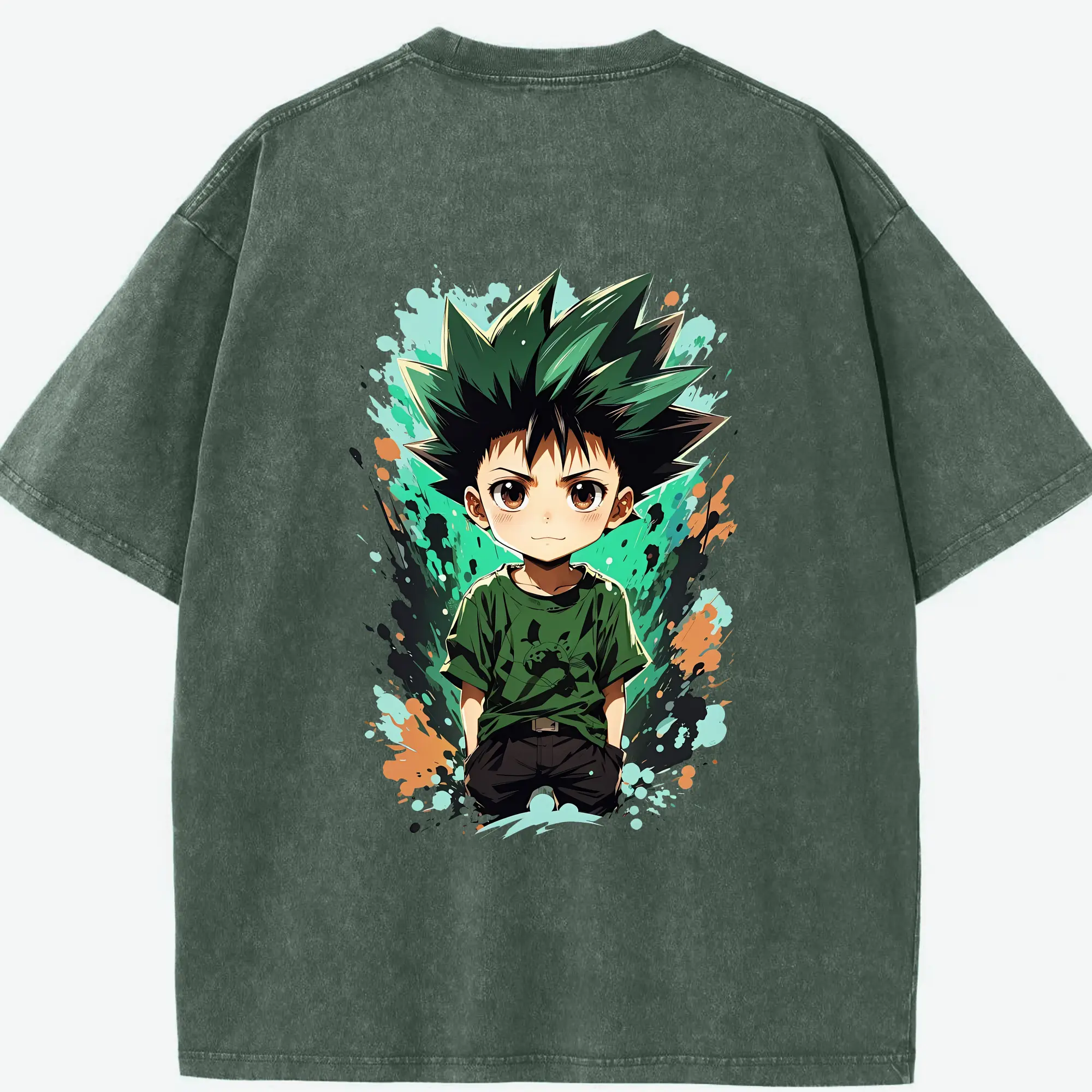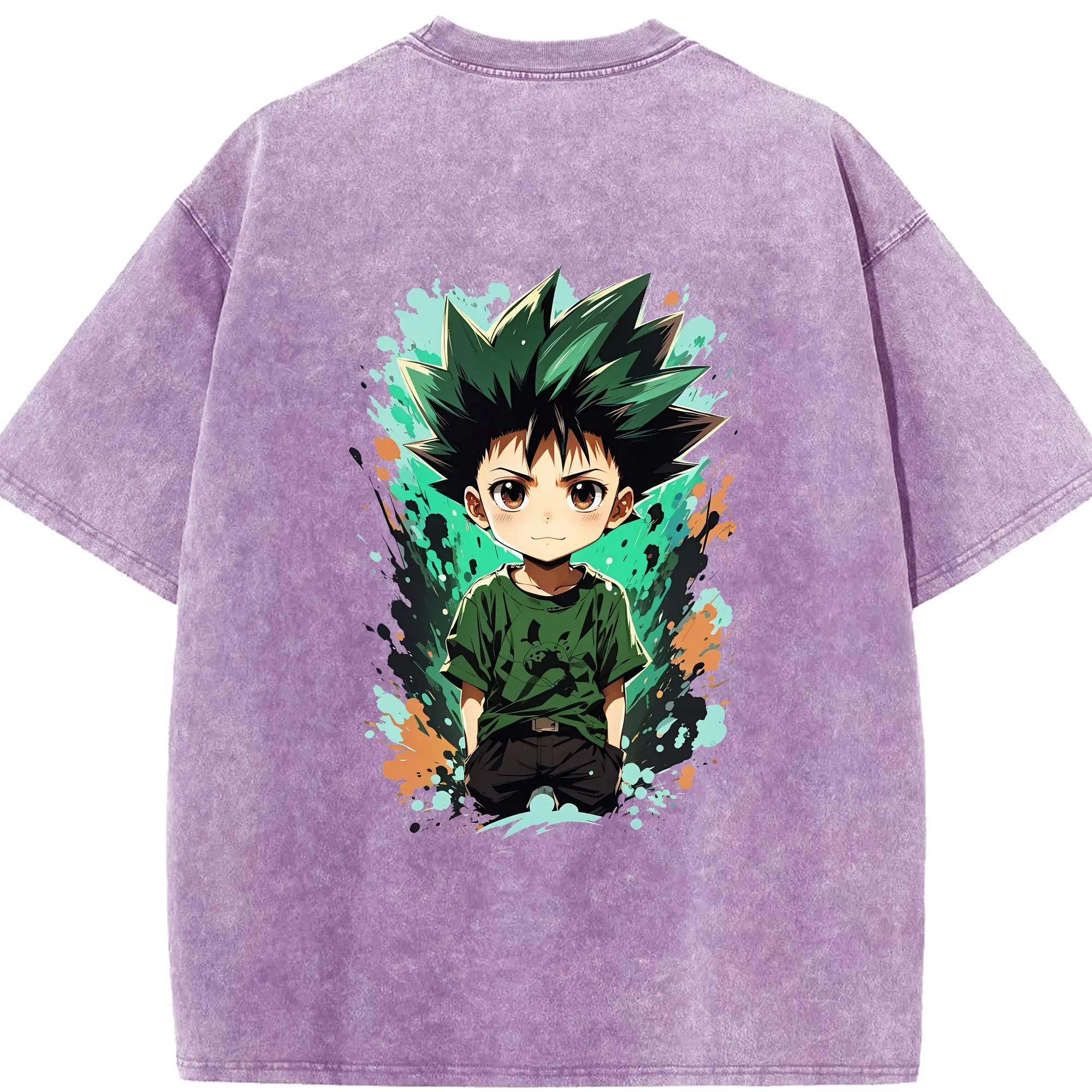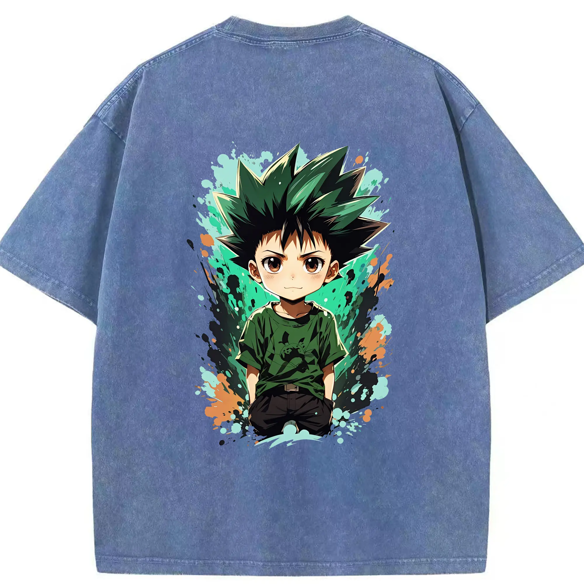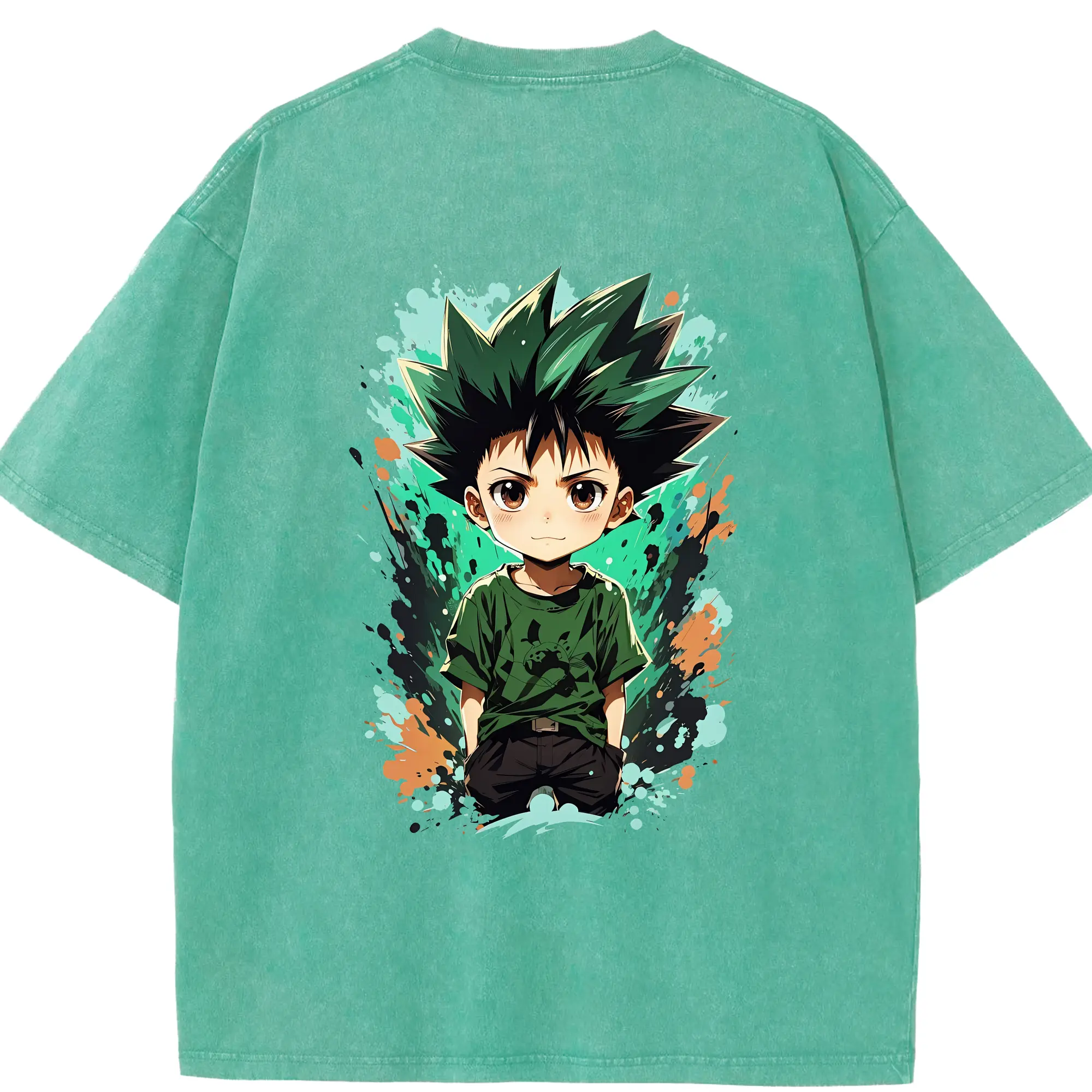 ハンター×ハンター グッズ ゴン=フリークス - 綿100% ヴィンテージ風 半袖Tシャツ ・ フロントプリント ・ 柔らか肌触り ・ 通気性 快適 ・ スポーツ カジュアル 外出用