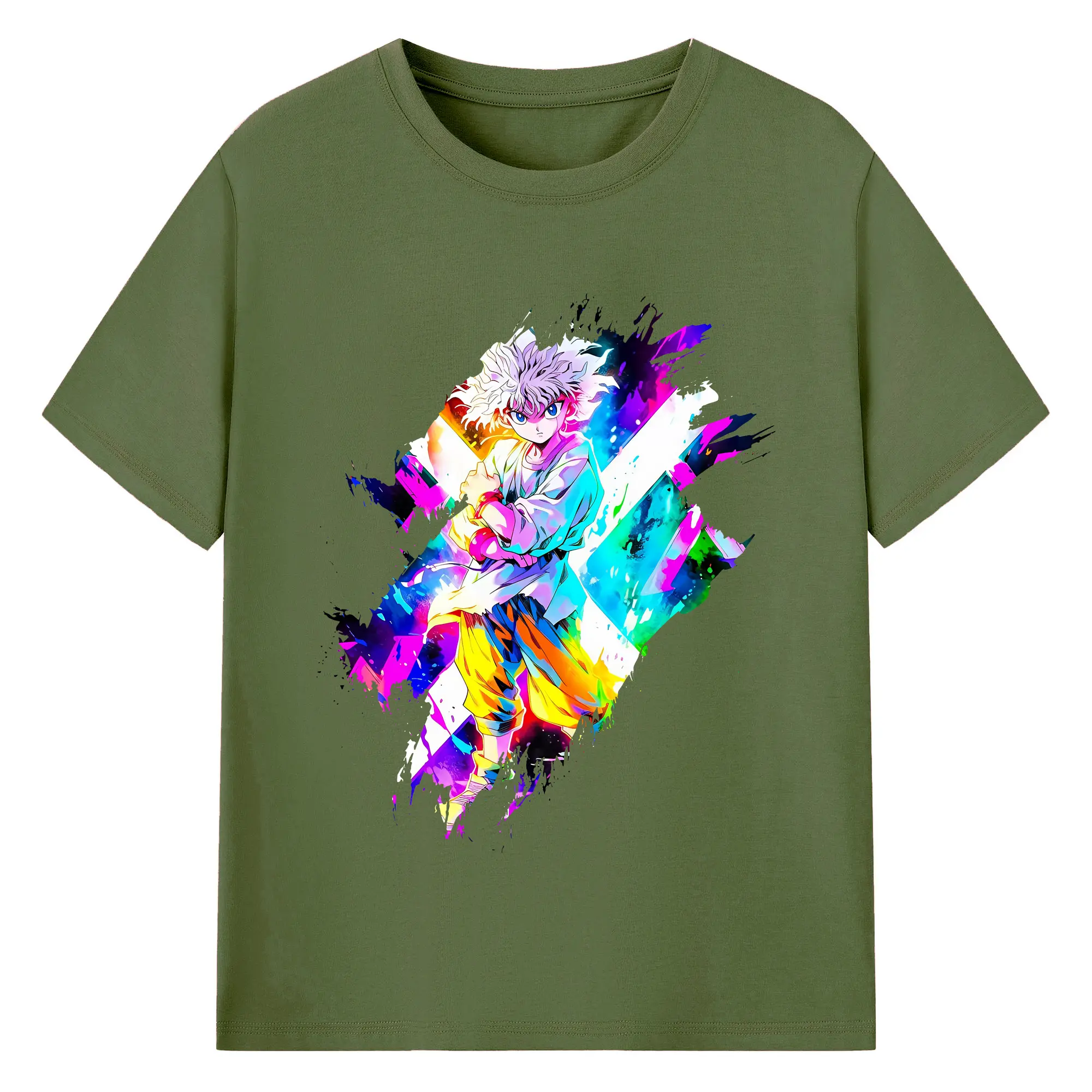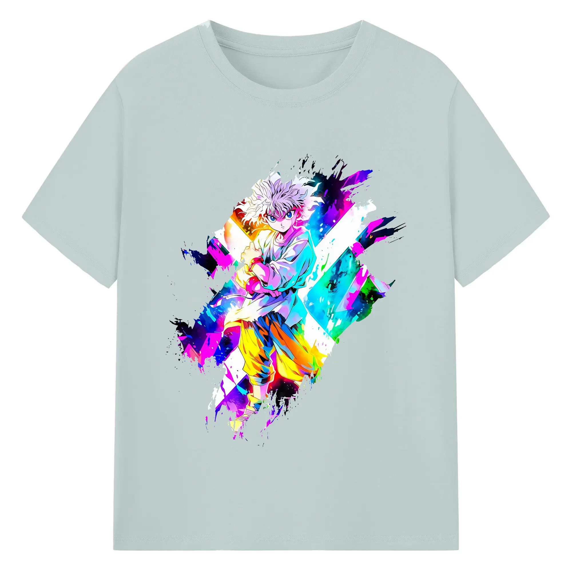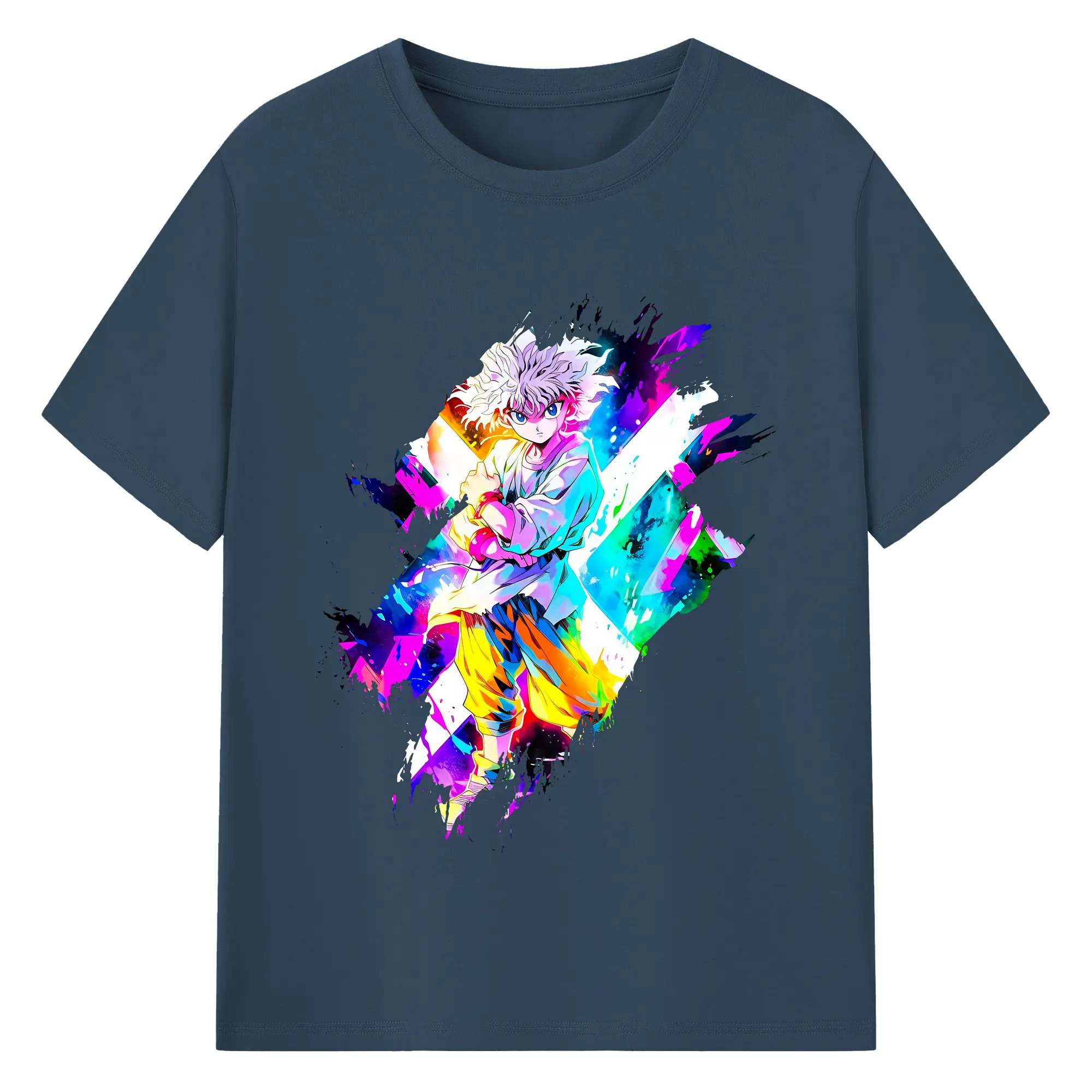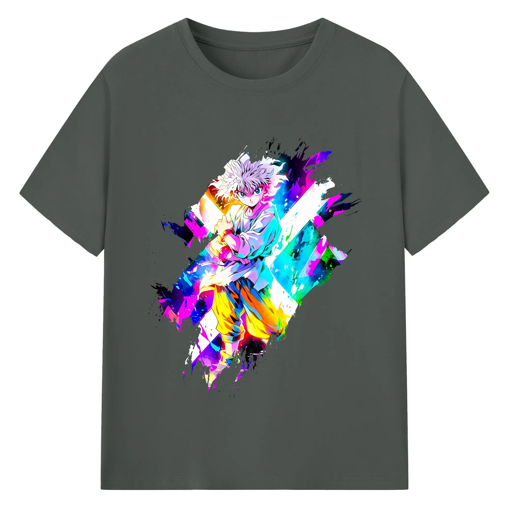 ハンター×ハンター グッズ キルア=ゾルディック - 綿100% 半袖Tシャツ ・ バックプリント ・ 快適 通気性 ・ 日常使い 散歩 スポーツ用