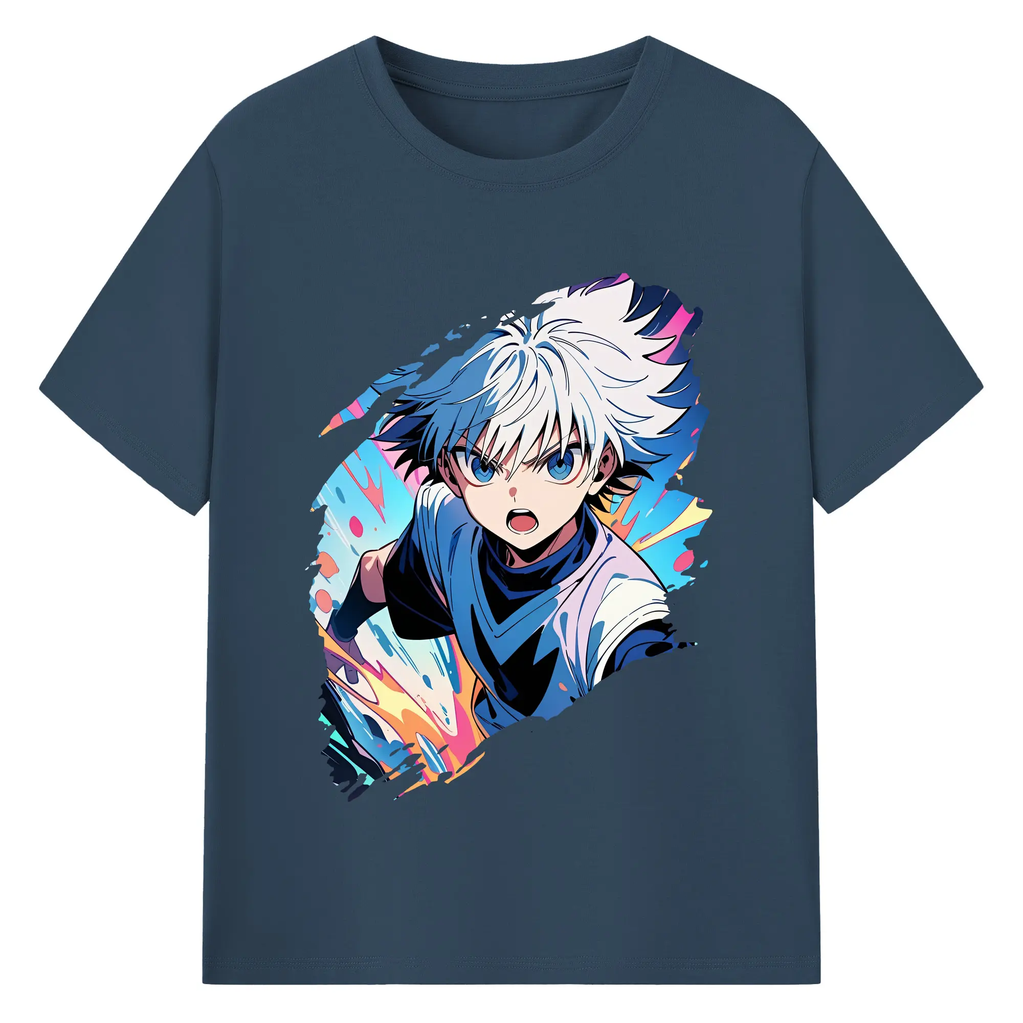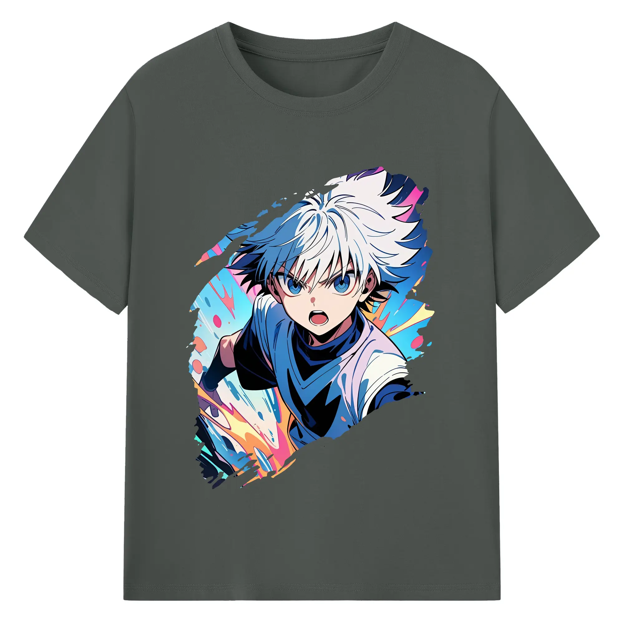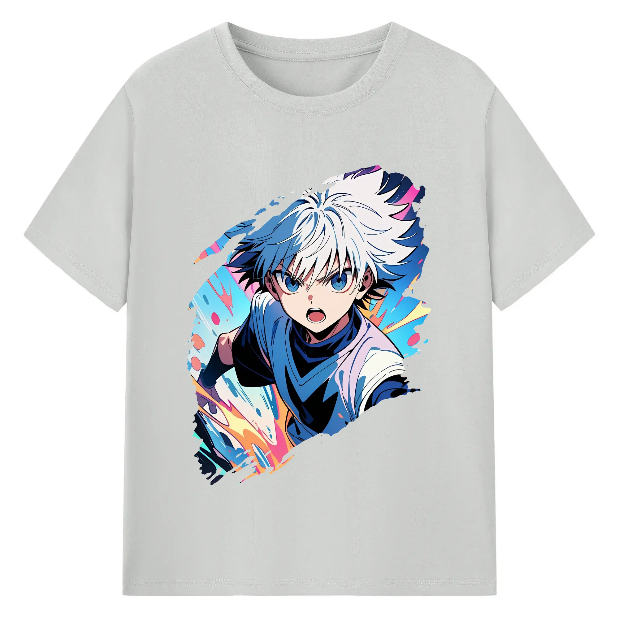 ハンター×ハンター グッズ キルア=ゾルディック - 綿100% 半袖Tシャツ ・ バックプリント ・ 快適 通気性 ・ 日常使い 散歩 スポーツ用