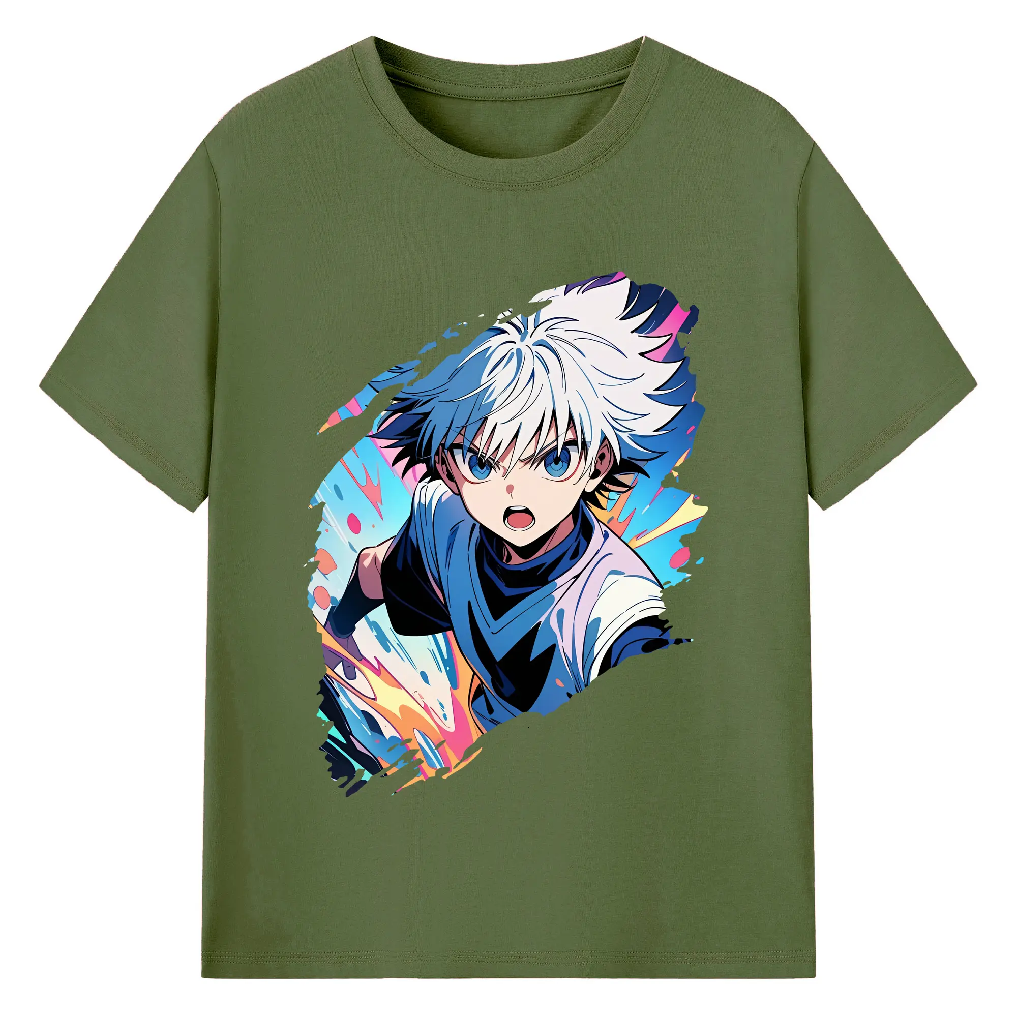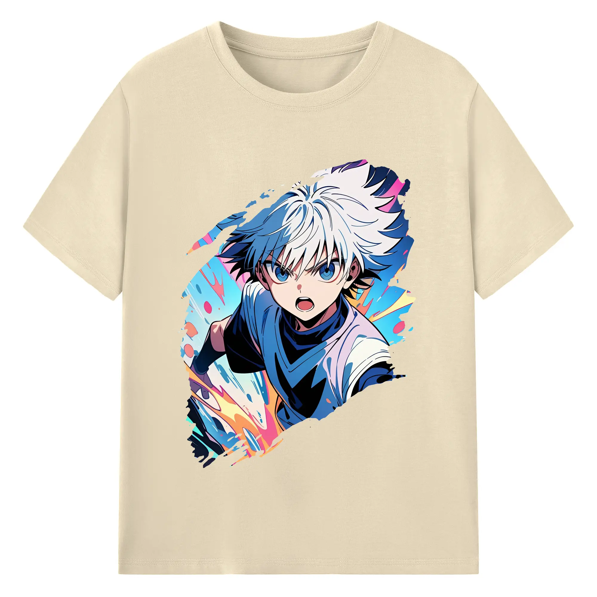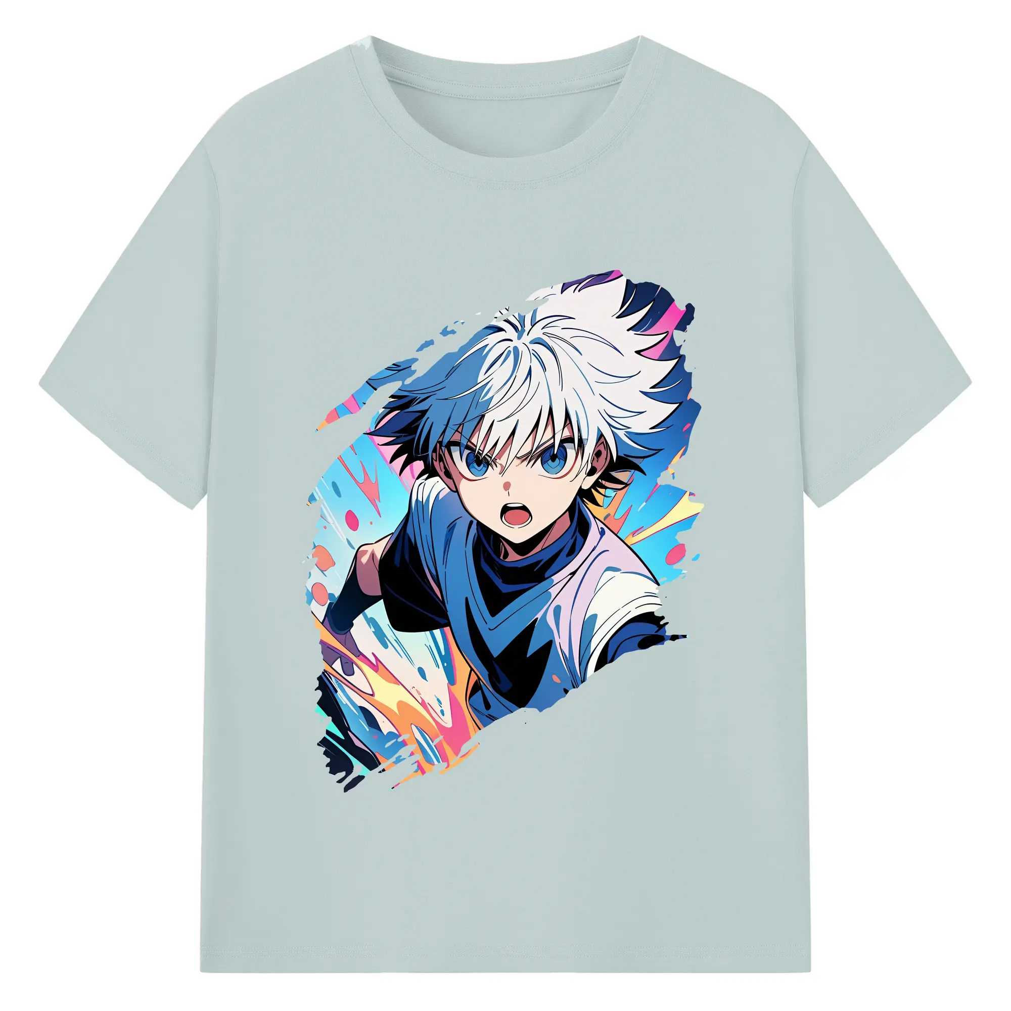 ハンター×ハンター グッズ キルア=ゾルディック - 綿100% 半袖Tシャツ ・ バックプリント ・ 快適 通気性 ・ 日常使い 散歩 スポーツ用