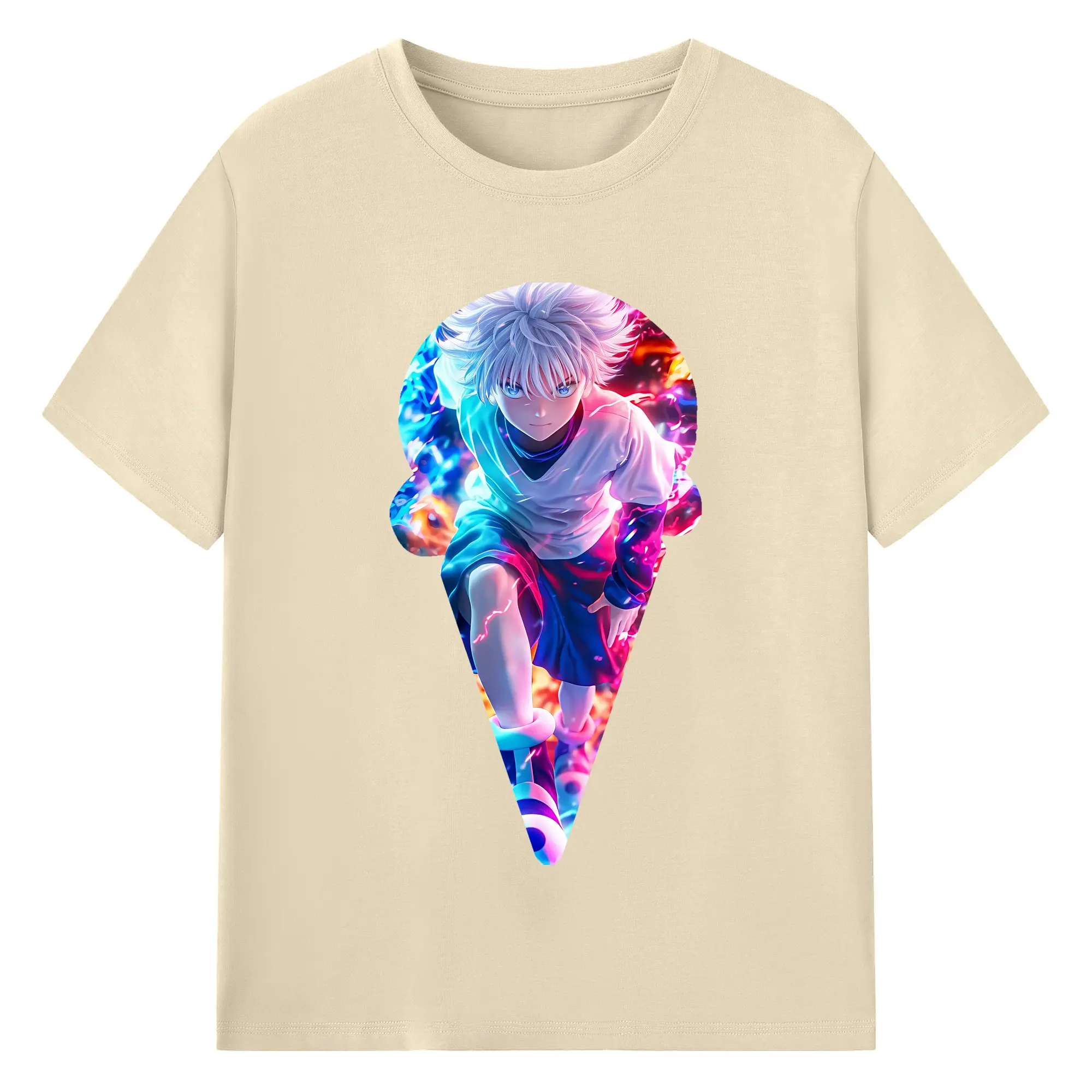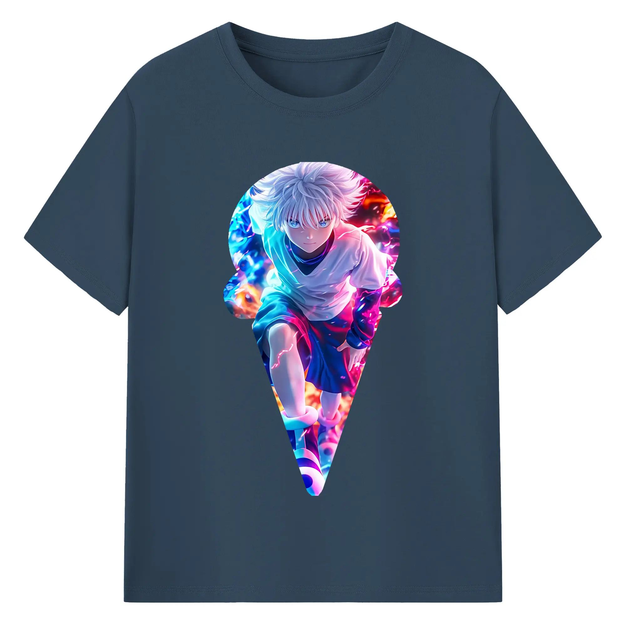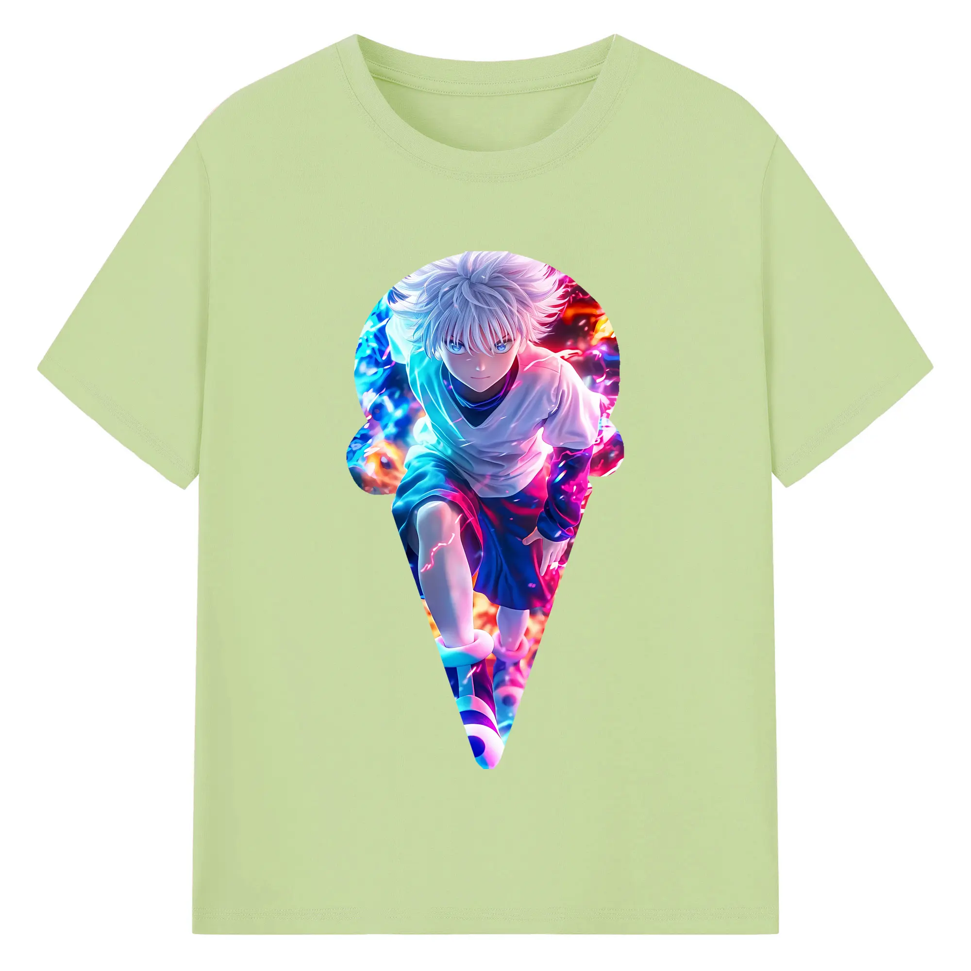 ハンター×ハンター グッズ キルア=ゾルディック - 綿100% キッズTシャツ ・ フロントプリント ・ 快適 通気性 ・ スポーツ カジュアル 散歩用