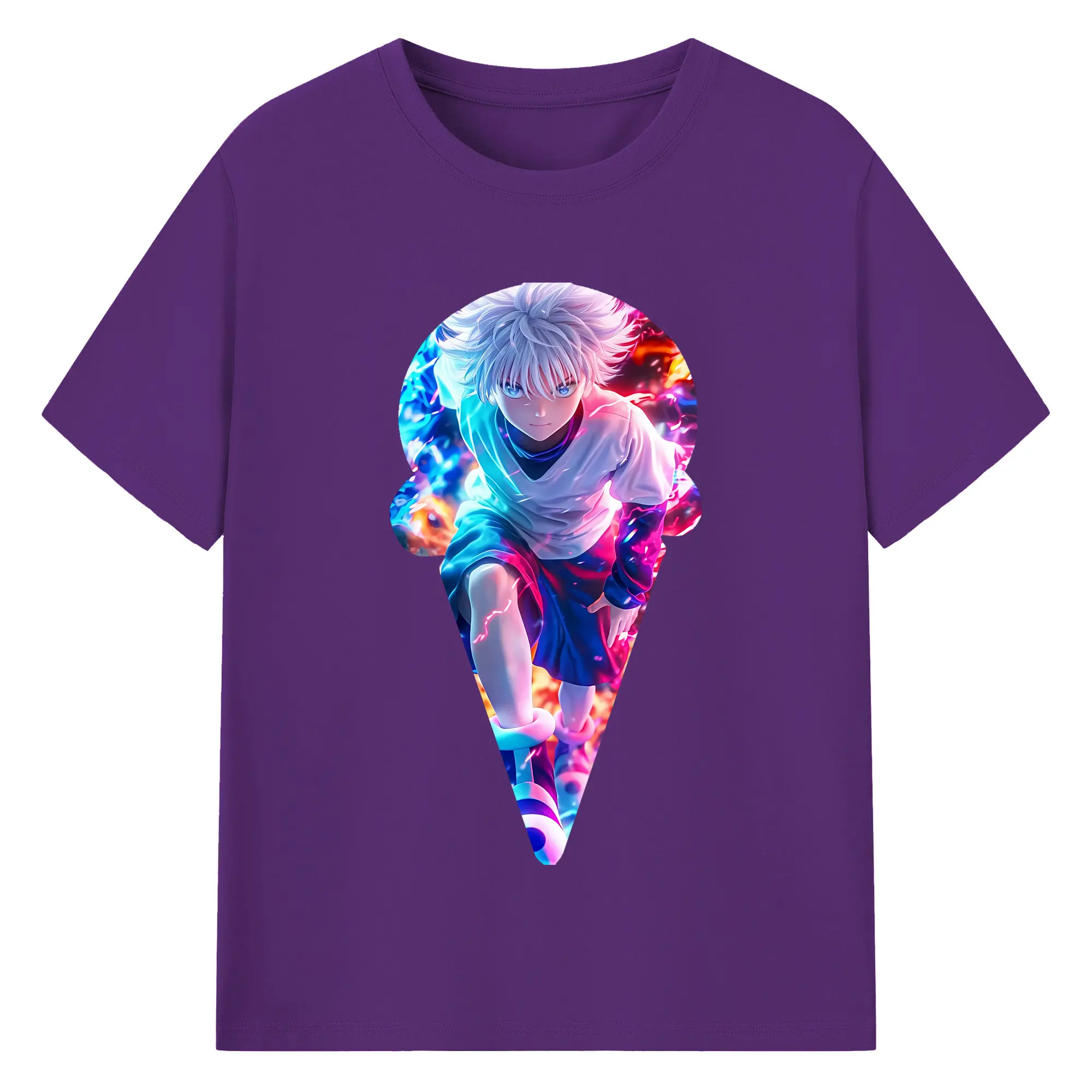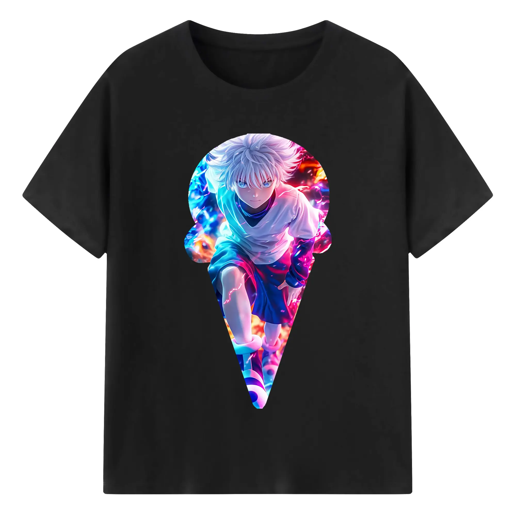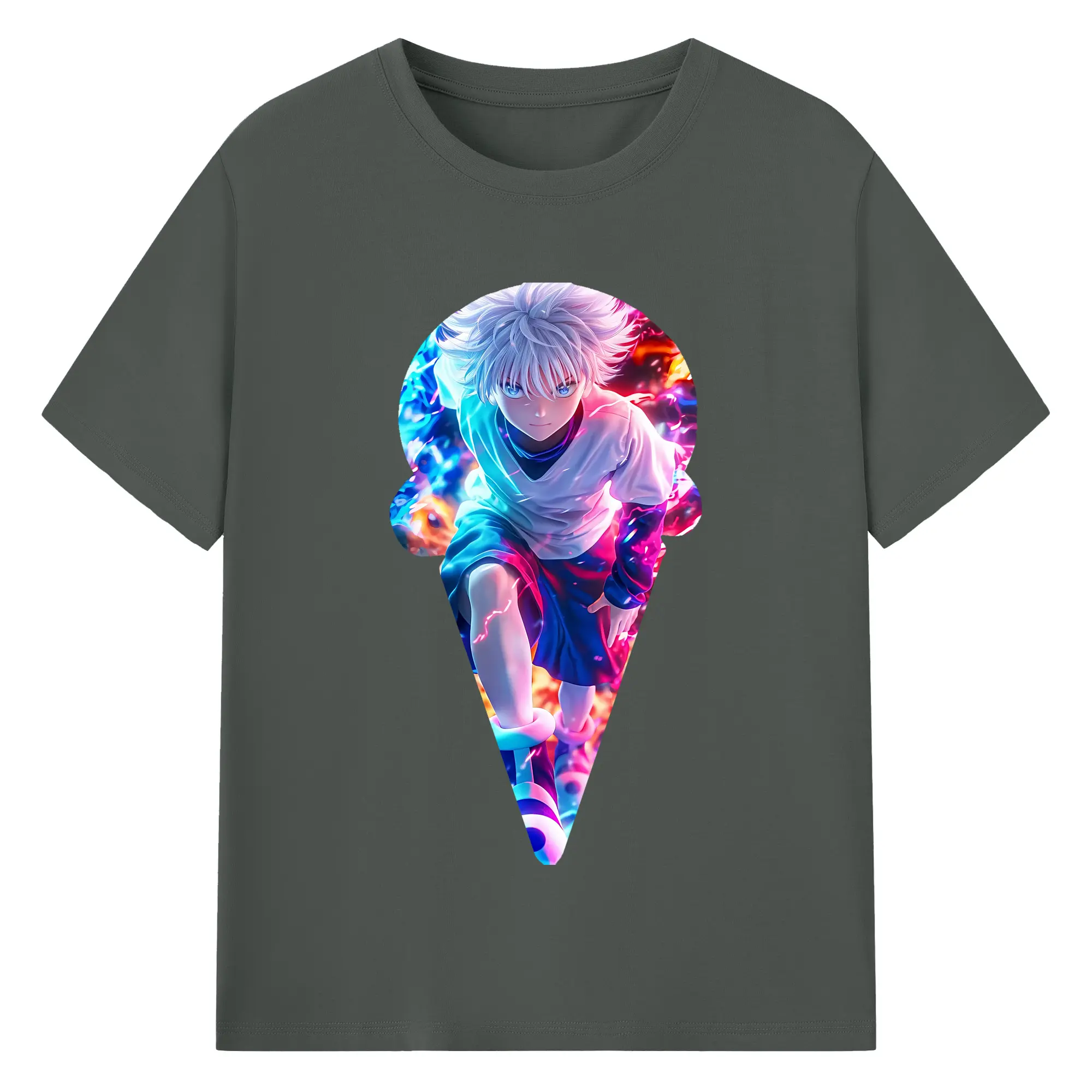 ハンター×ハンター グッズ キルア=ゾルディック - 綿100% 半袖Tシャツ ・ バックプリント ・ 快適 通気性 ・ 日常使い 散歩 スポーツ用