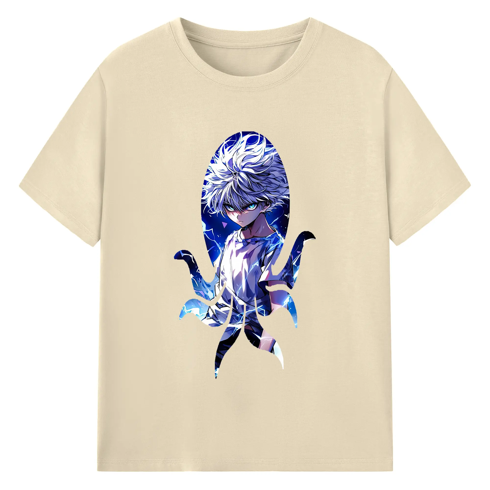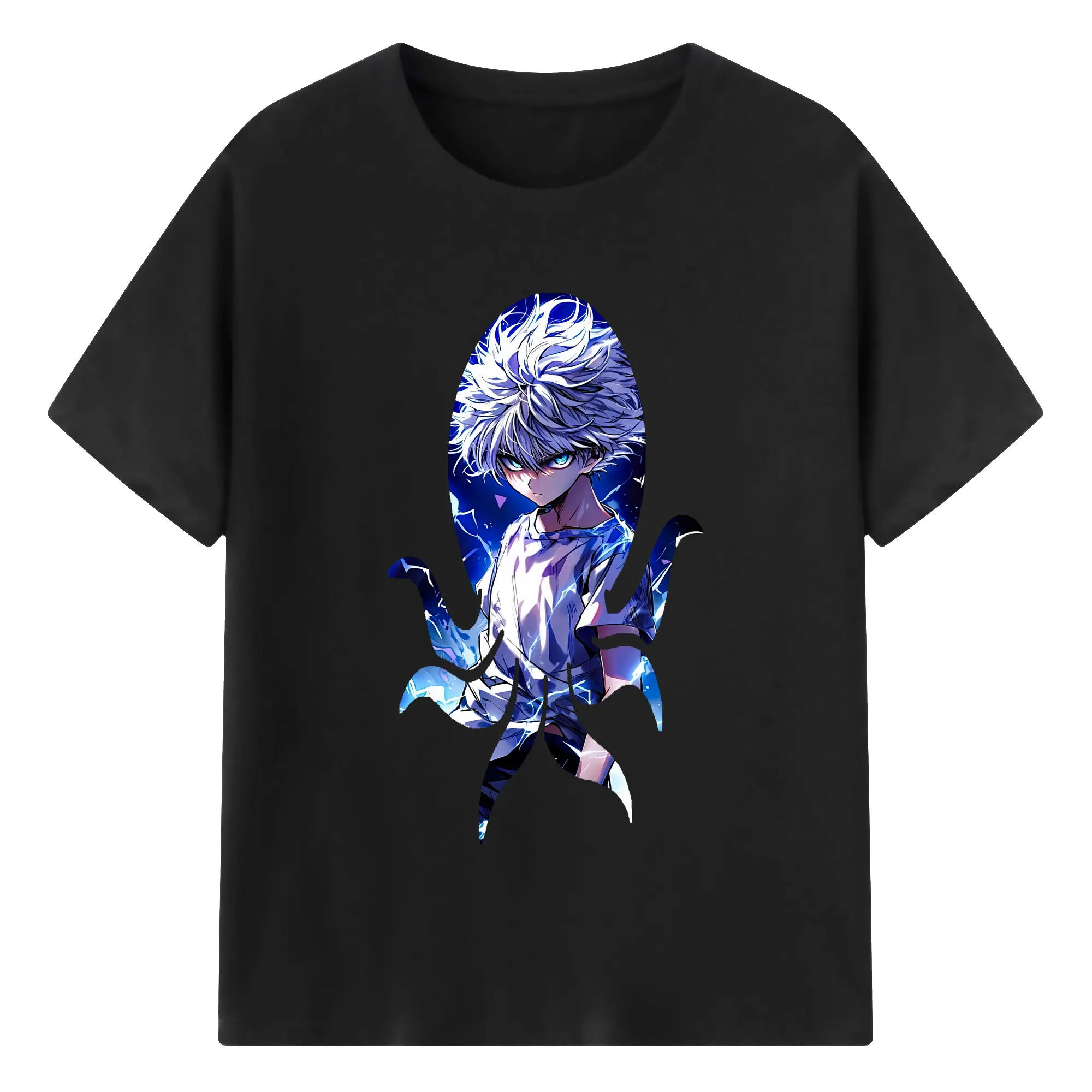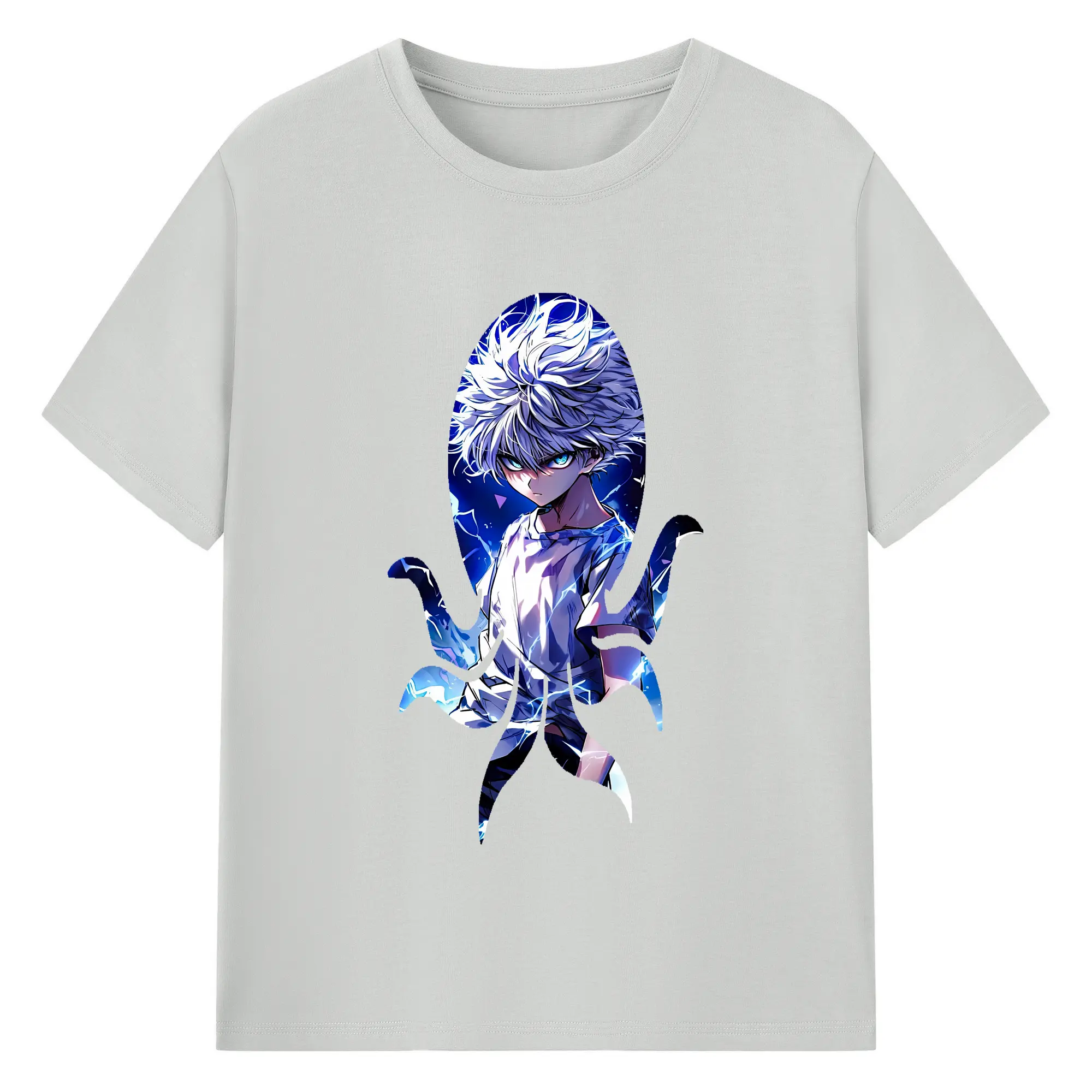 ハンター×ハンター グッズ キルア=ゾルディック - 綿100% 半袖Tシャツ ・ バックプリント ・ 快適 通気性 ・ 日常使い 散歩 スポーツ用