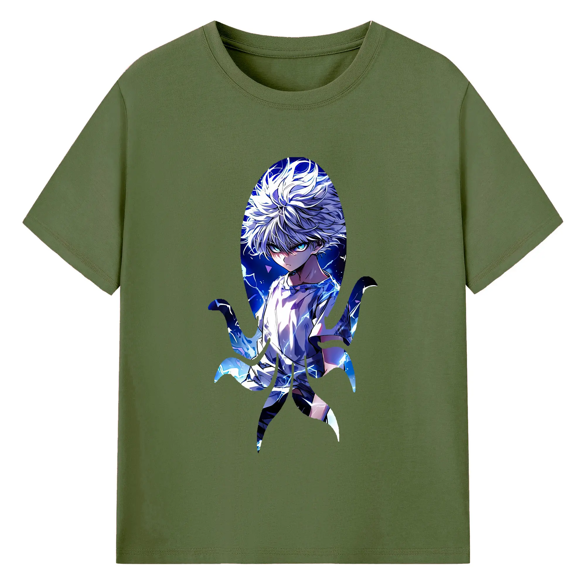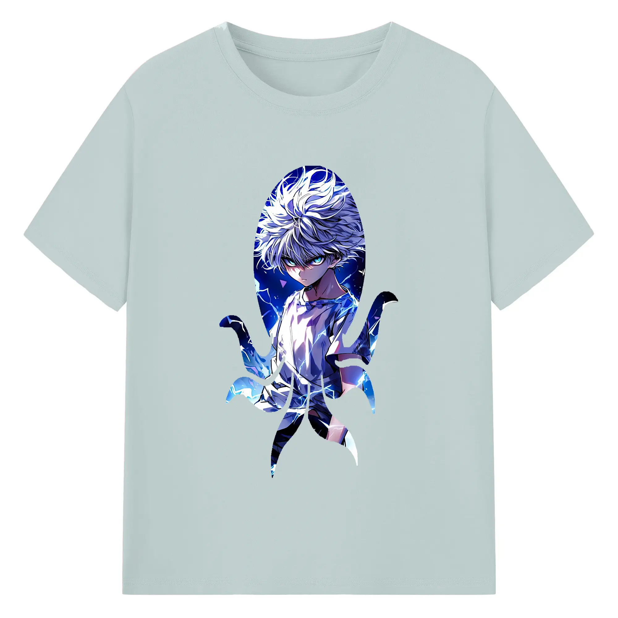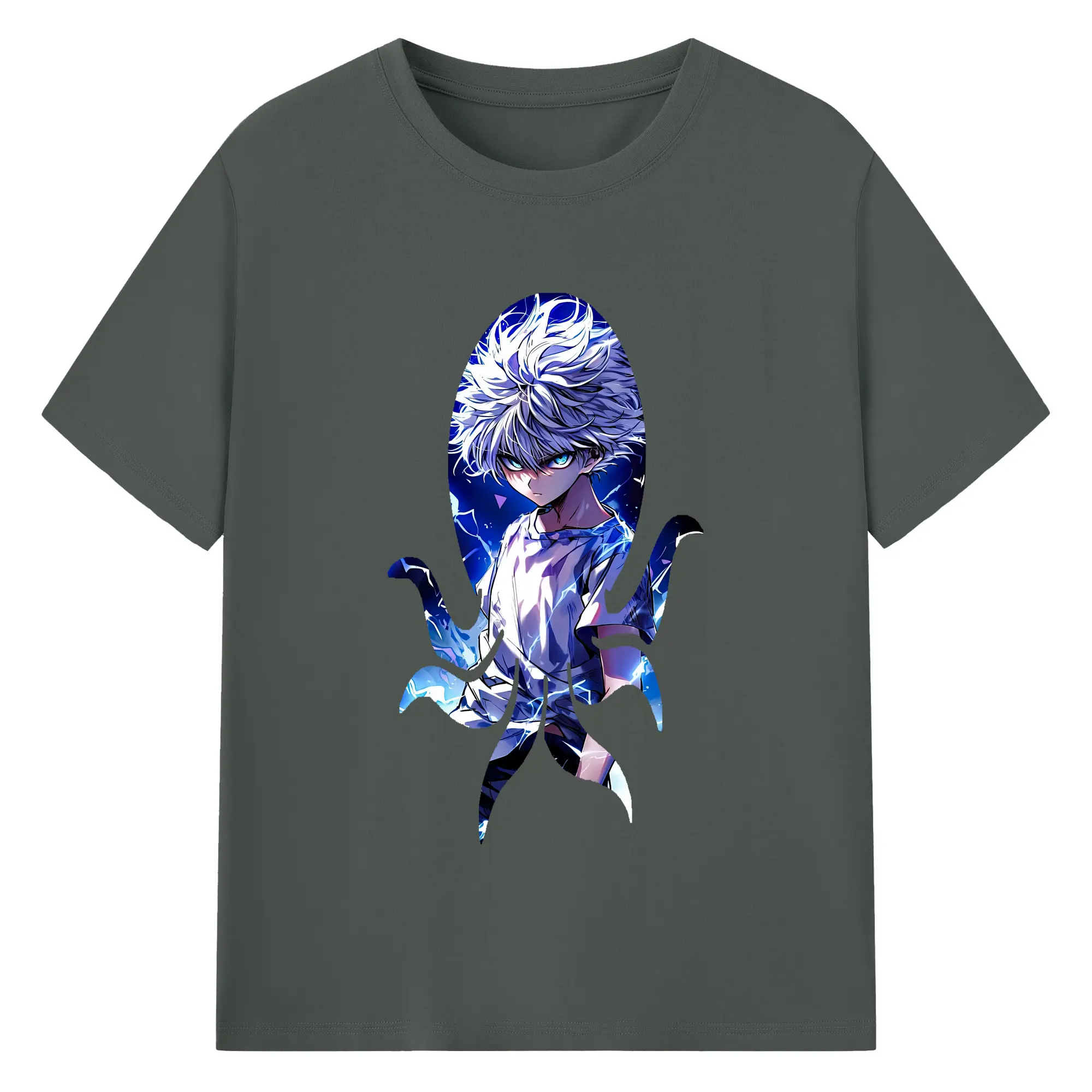ハンター×ハンター グッズ キルア=ゾルディック - 綿100% 半袖Tシャツ ・ バックプリント ・ 快適 通気性 ・ 日常使い 散歩 スポーツ用
