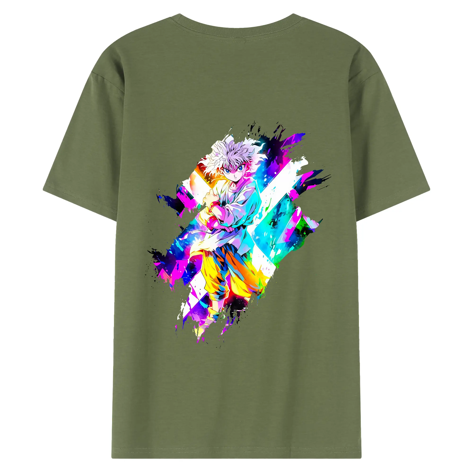 ハンター×ハンター グッズ キルア=ゾルディック - 綿100% 半袖Tシャツ ・ フロントプリント ・ 快適 通気性 ・ 日常使い 散歩 スポーツ用