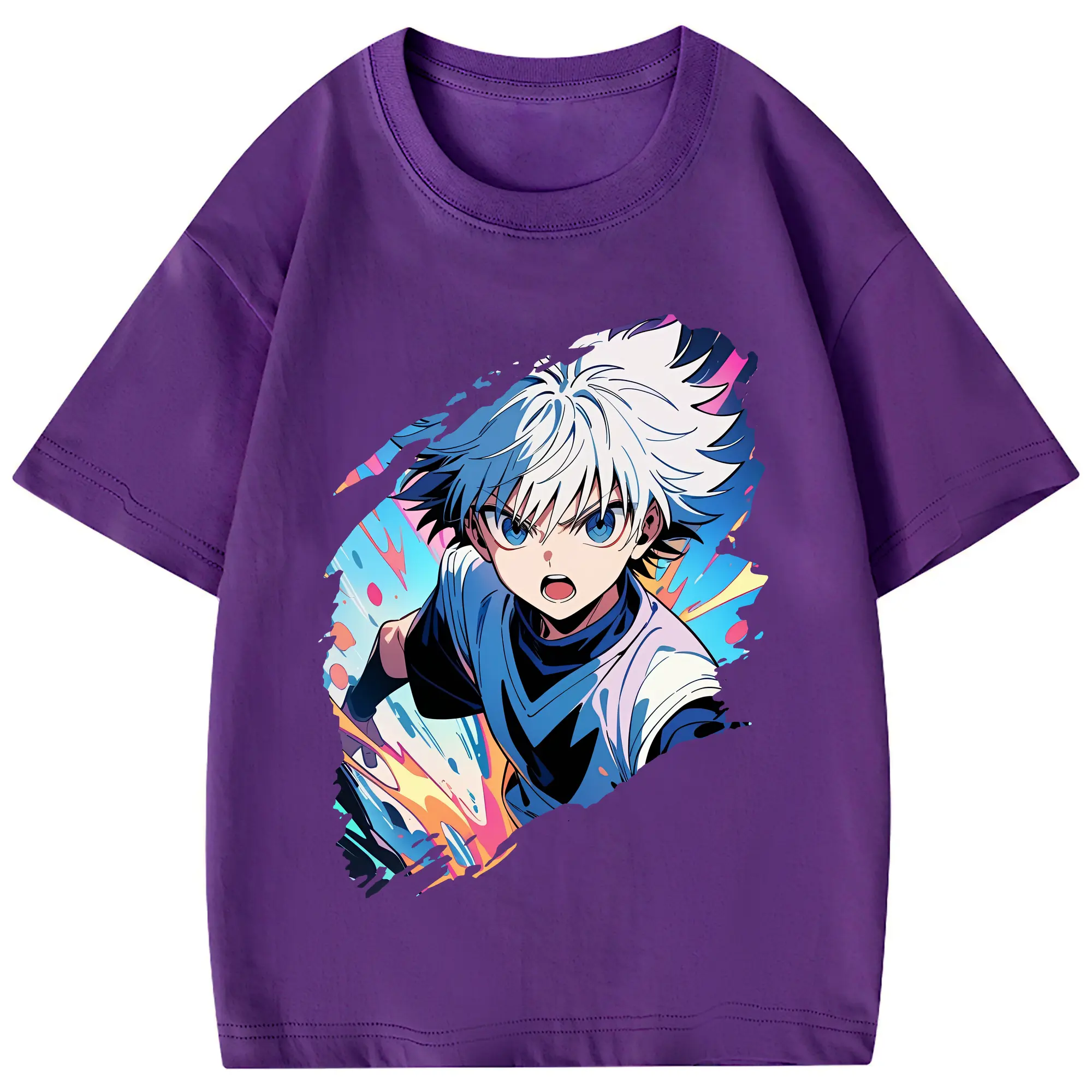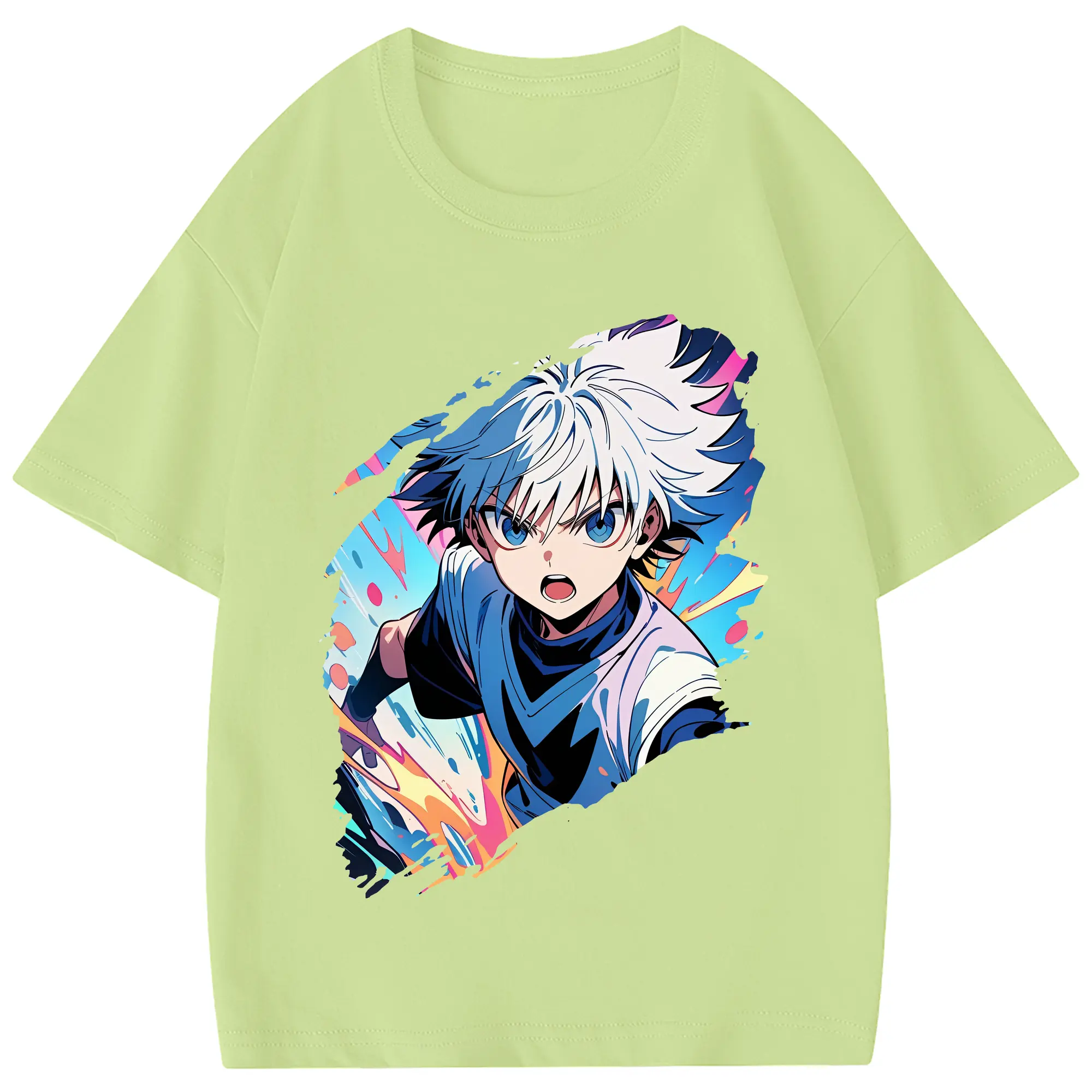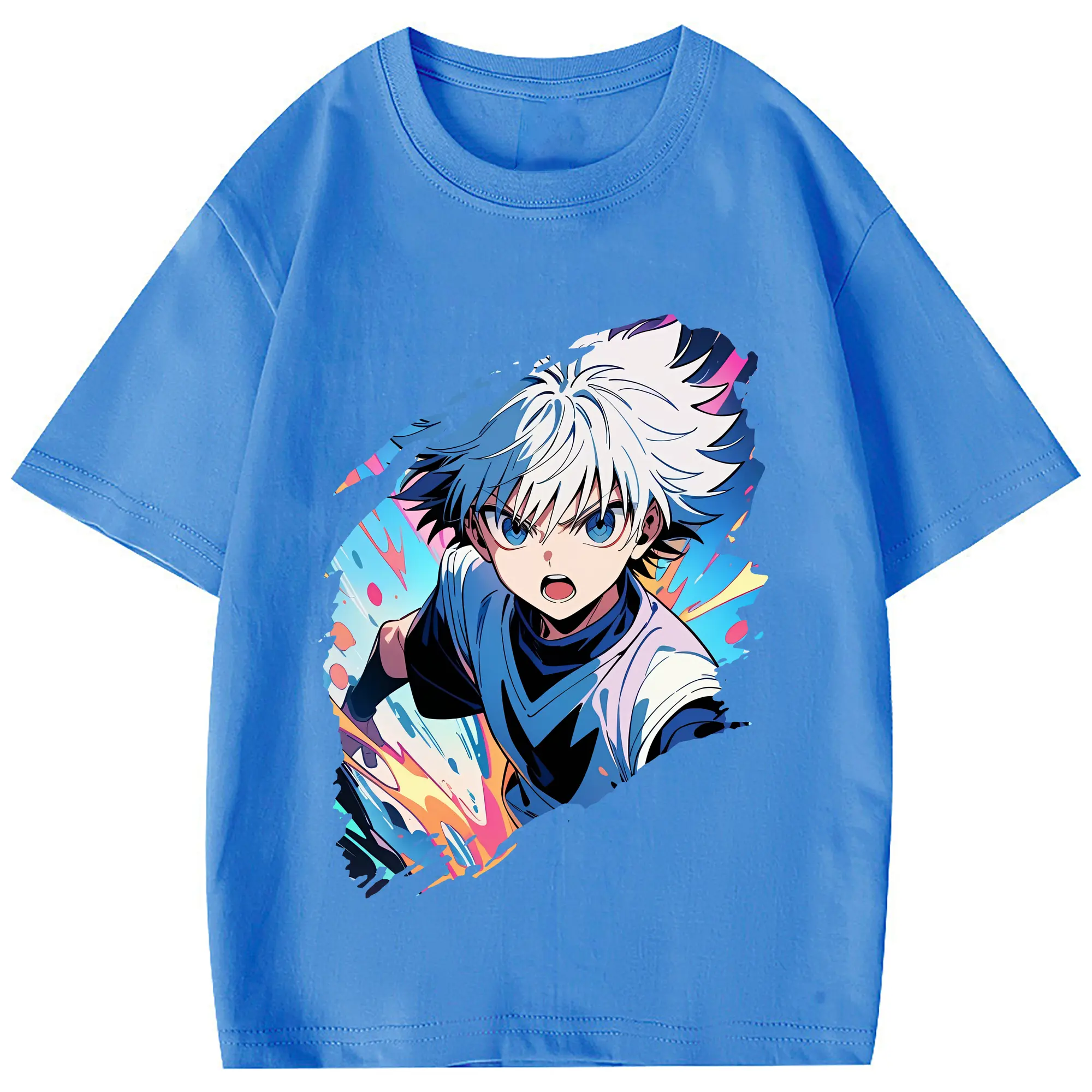 ハンター×ハンター グッズ キルア=ゾルディック - 綿100% 半袖Tシャツ ・ フロントプリント ・ 快適 通気性 ・ 日常使い 散歩 スポーツ用