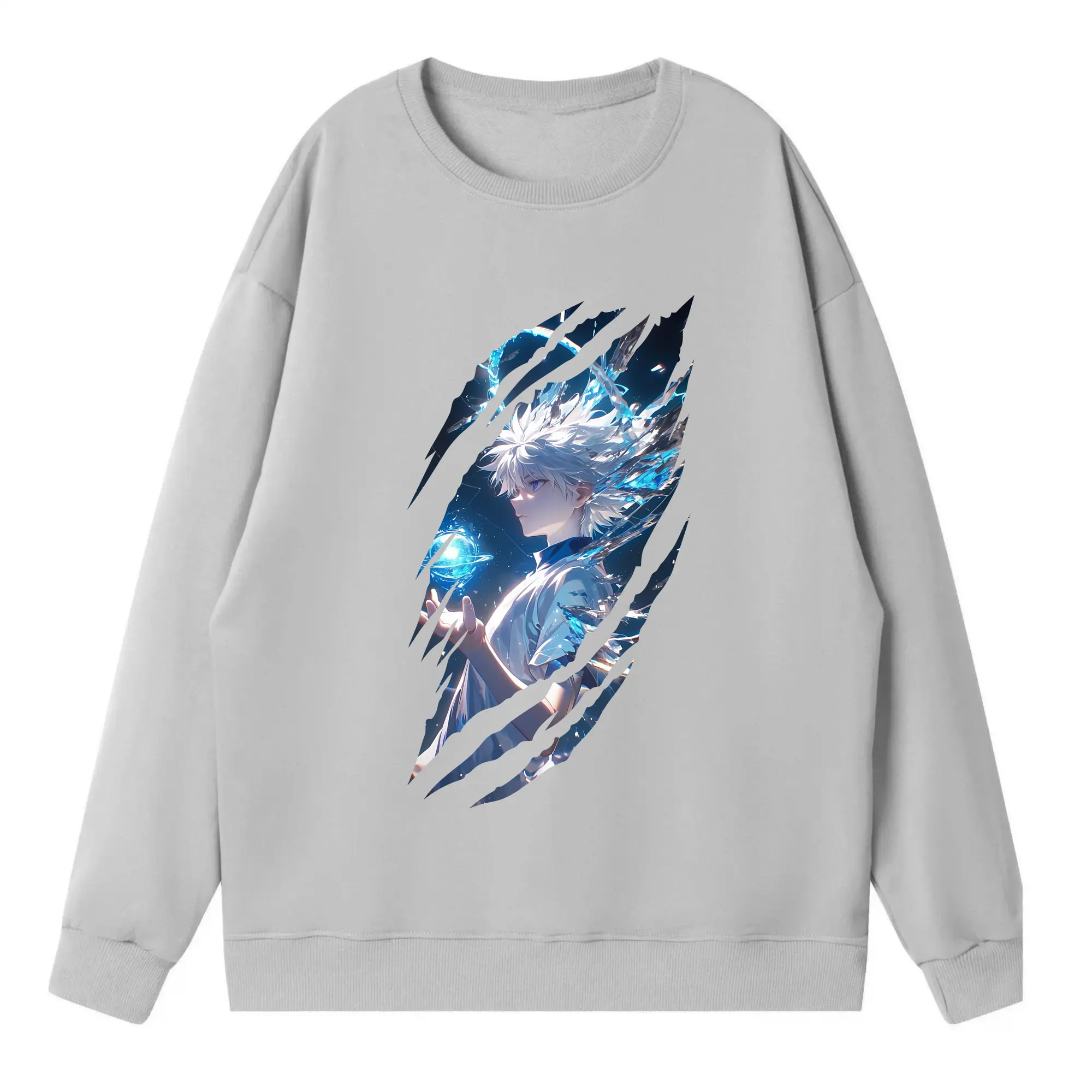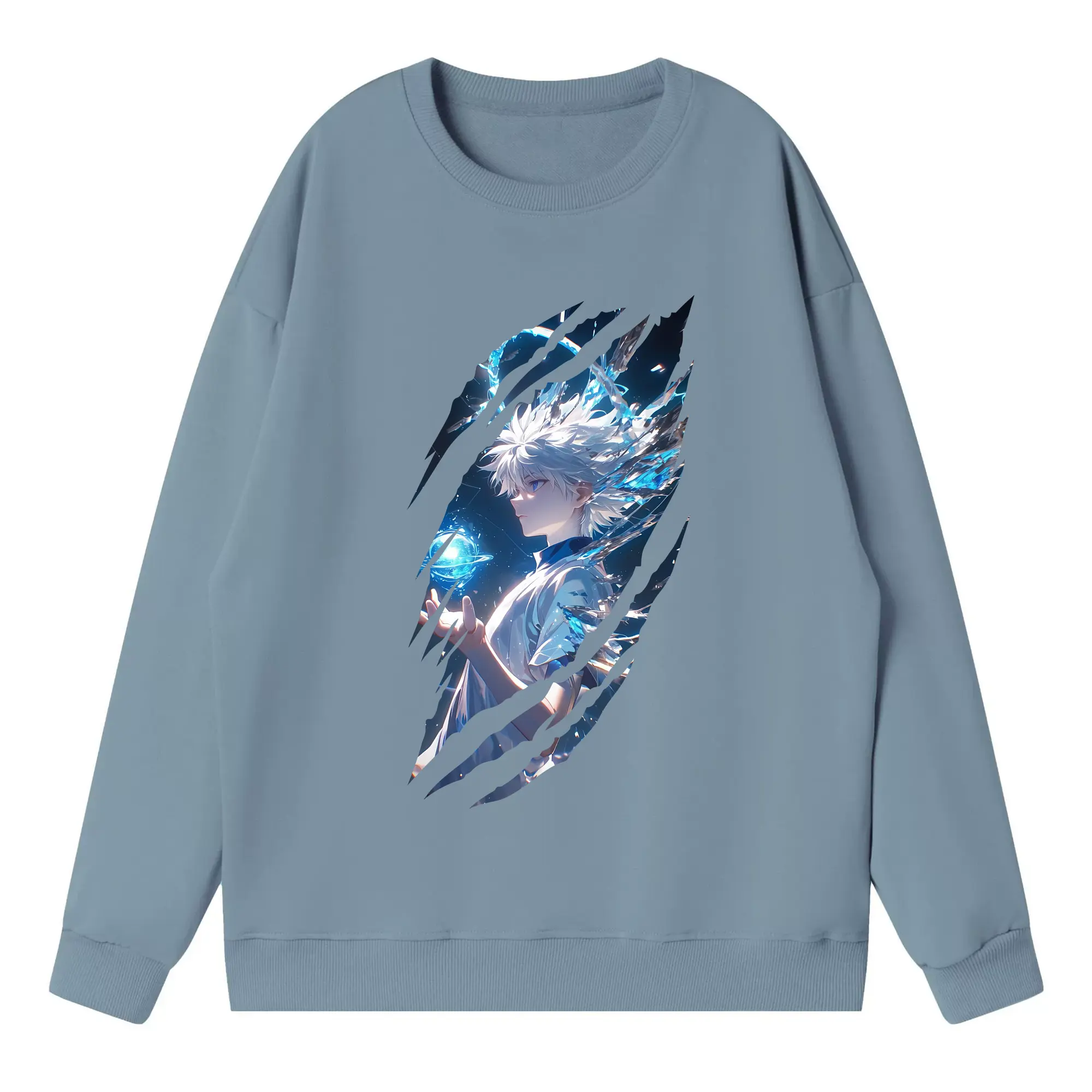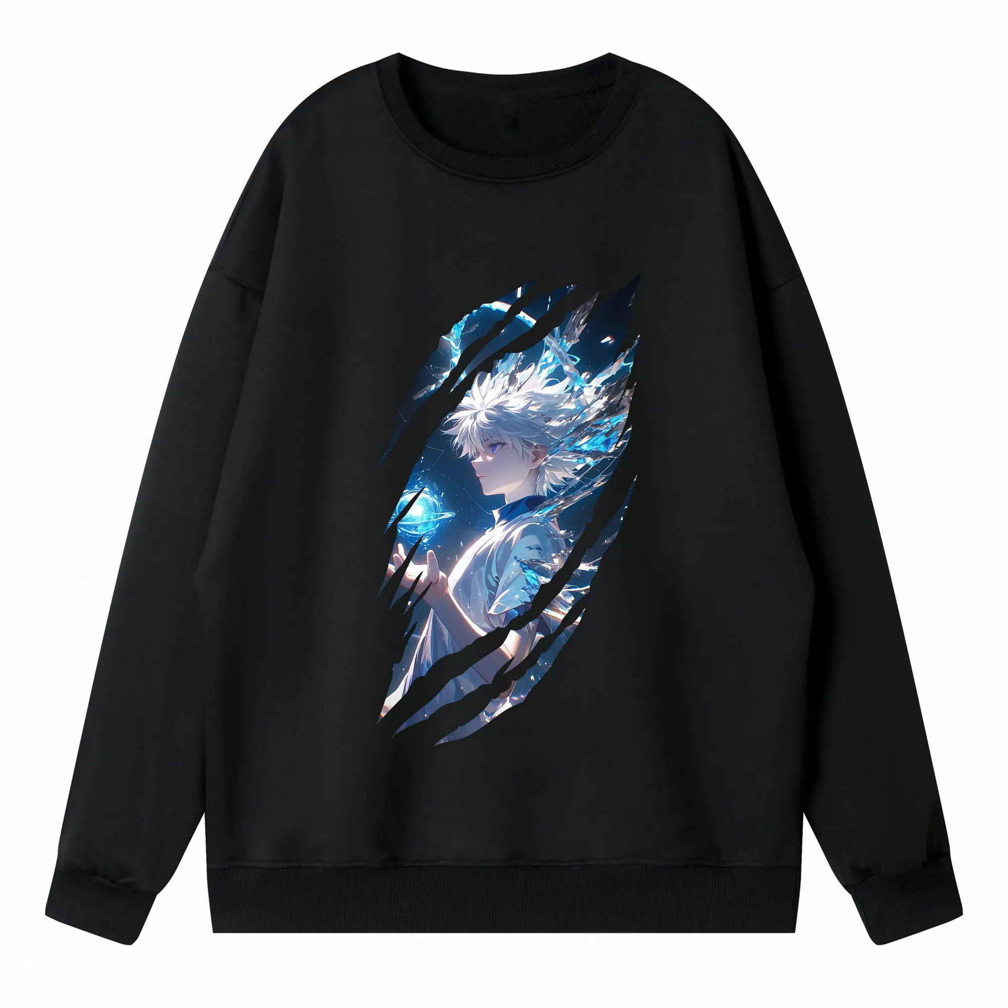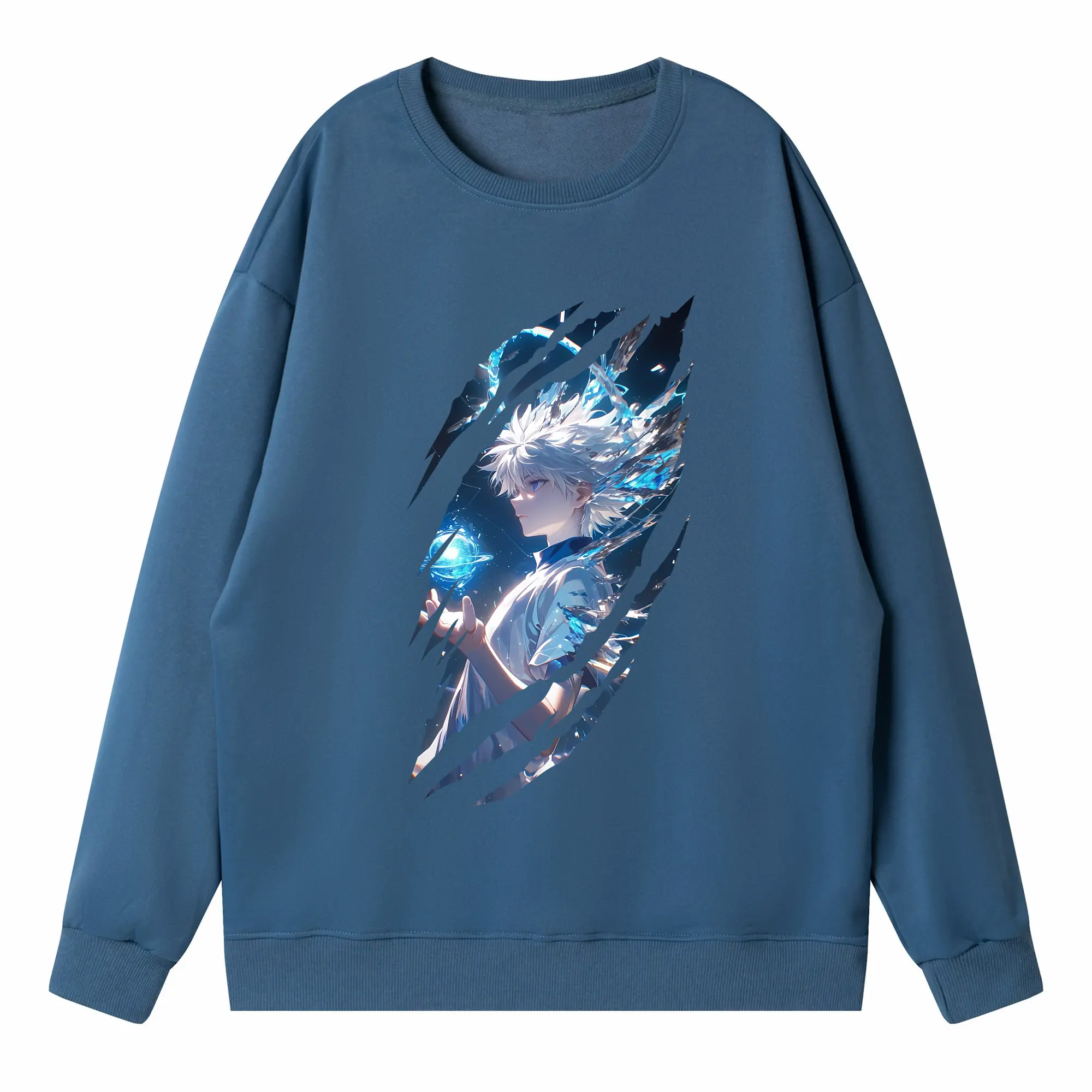 ハンター×ハンター グッズ キルア=ゾルディック - 高品質 クルーネック スウェット ・ コットン59% ポリエステル41% ・ ユニセックス 長袖 トレーナー ・ カジュアル デイリー スポーツ 散歩用