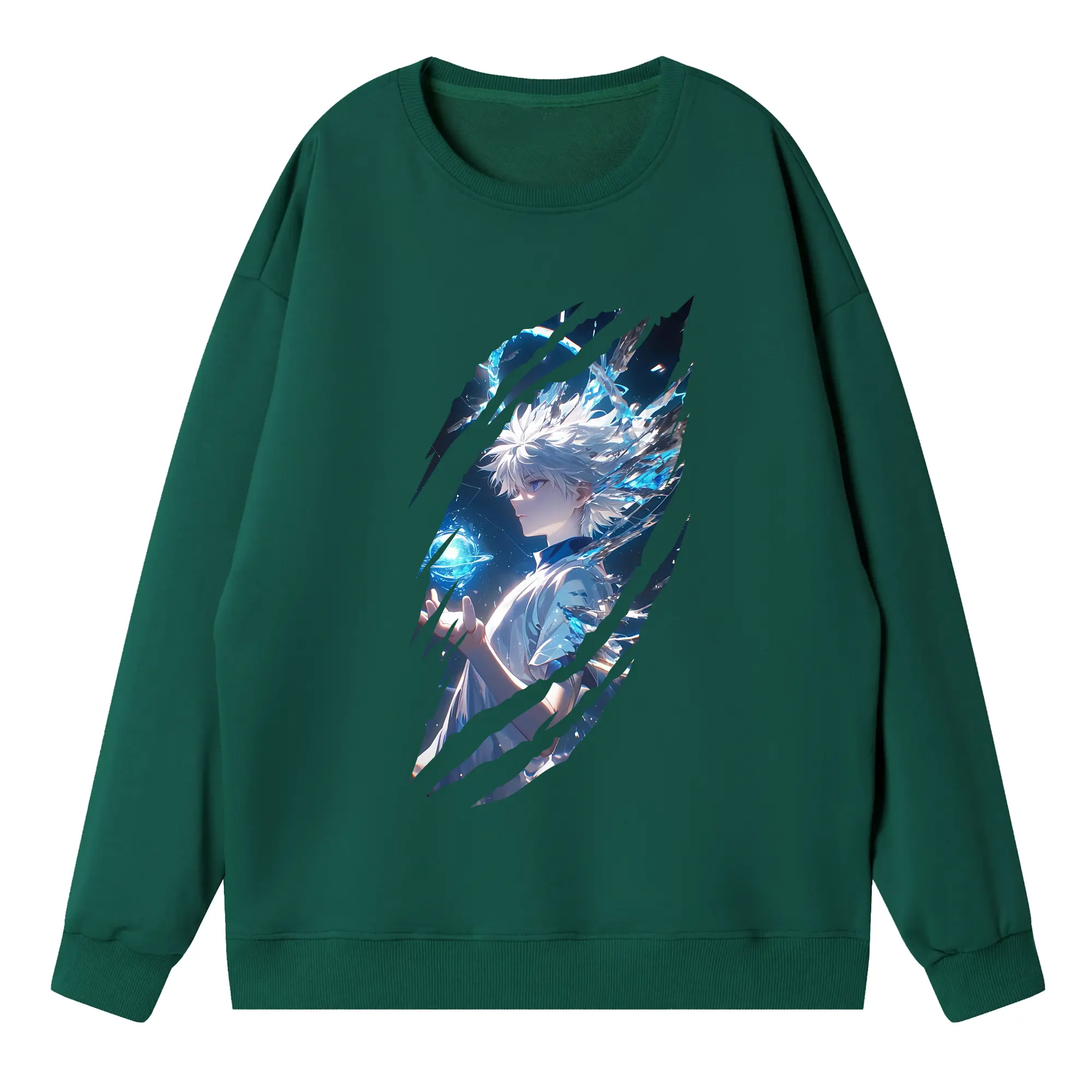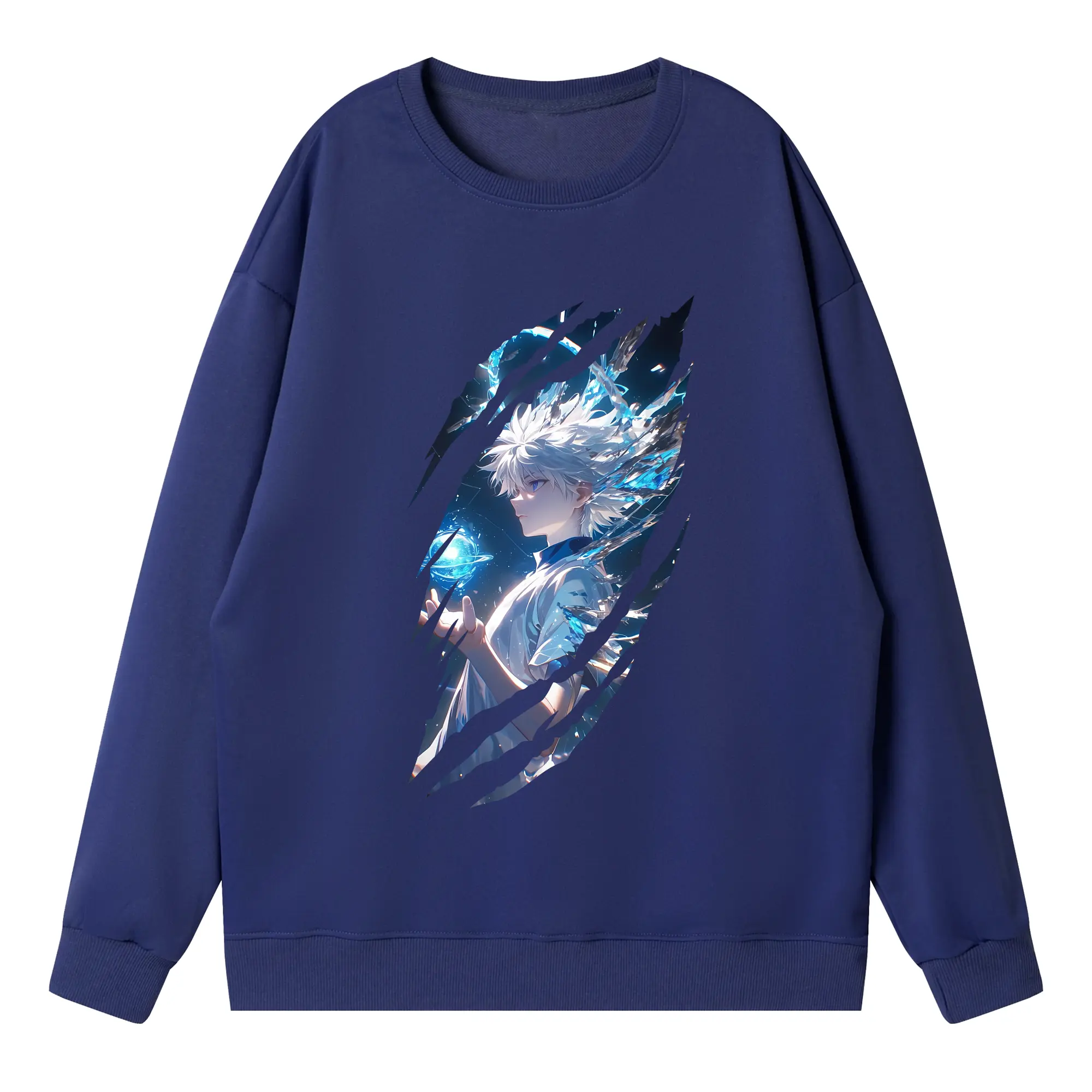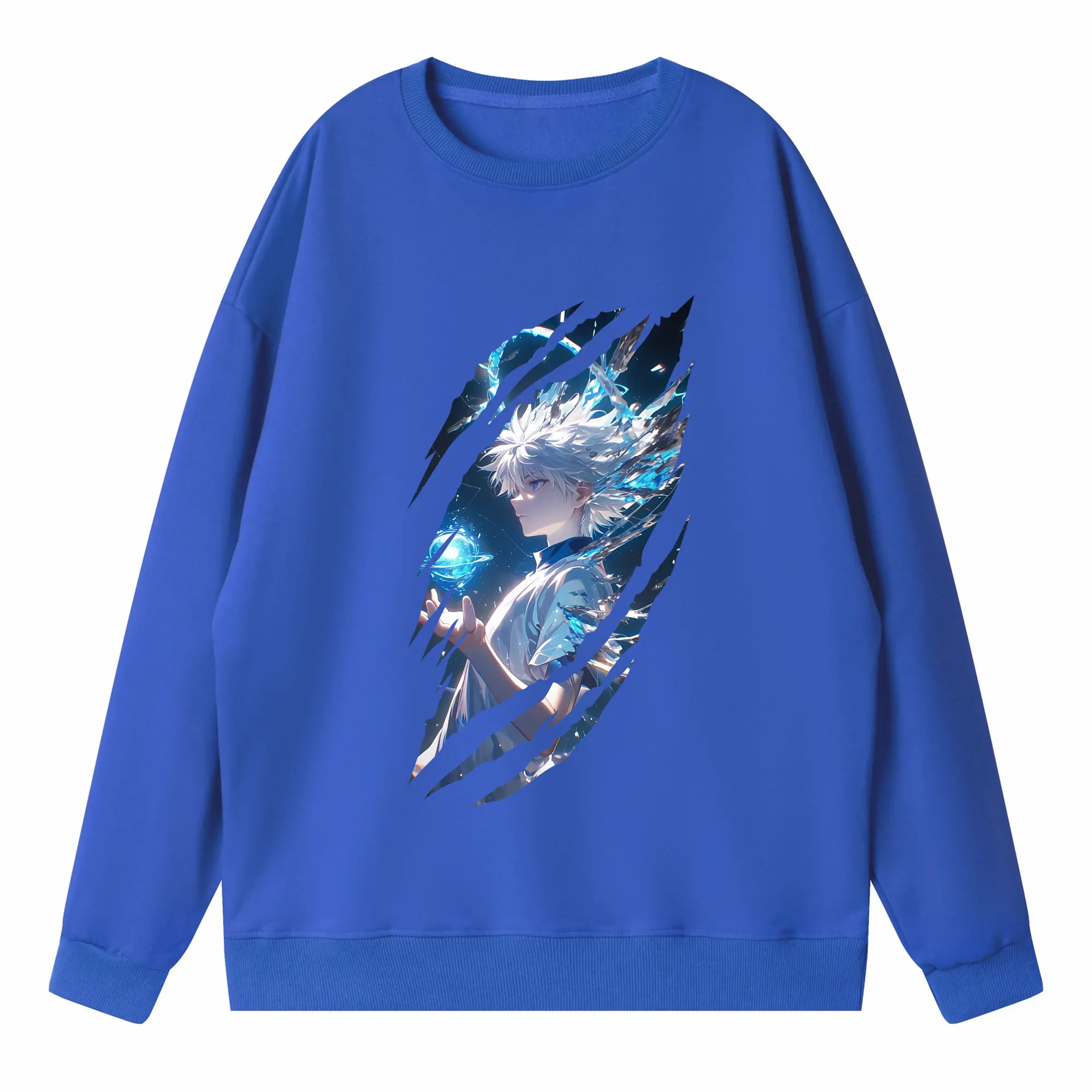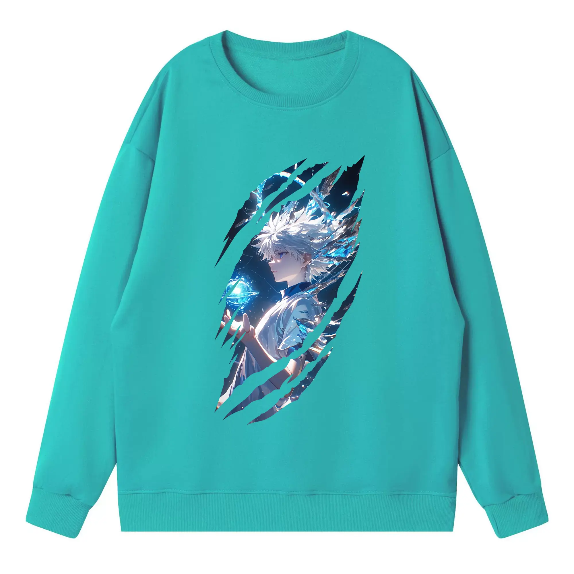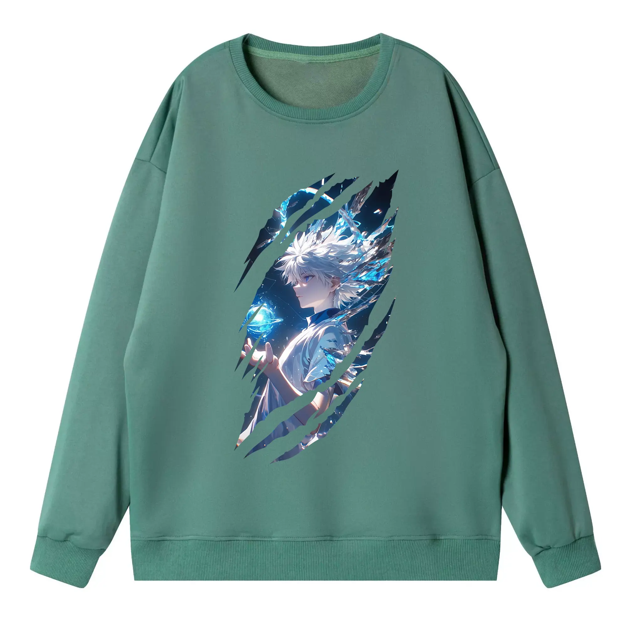ハンター×ハンター グッズ キルア=ゾルディック - 高品質 クルーネック スウェット ・ コットン59% ポリエステル41% ・ ユニセックス 長袖 トレーナー ・ カジュアル デイリー スポーツ 散歩用