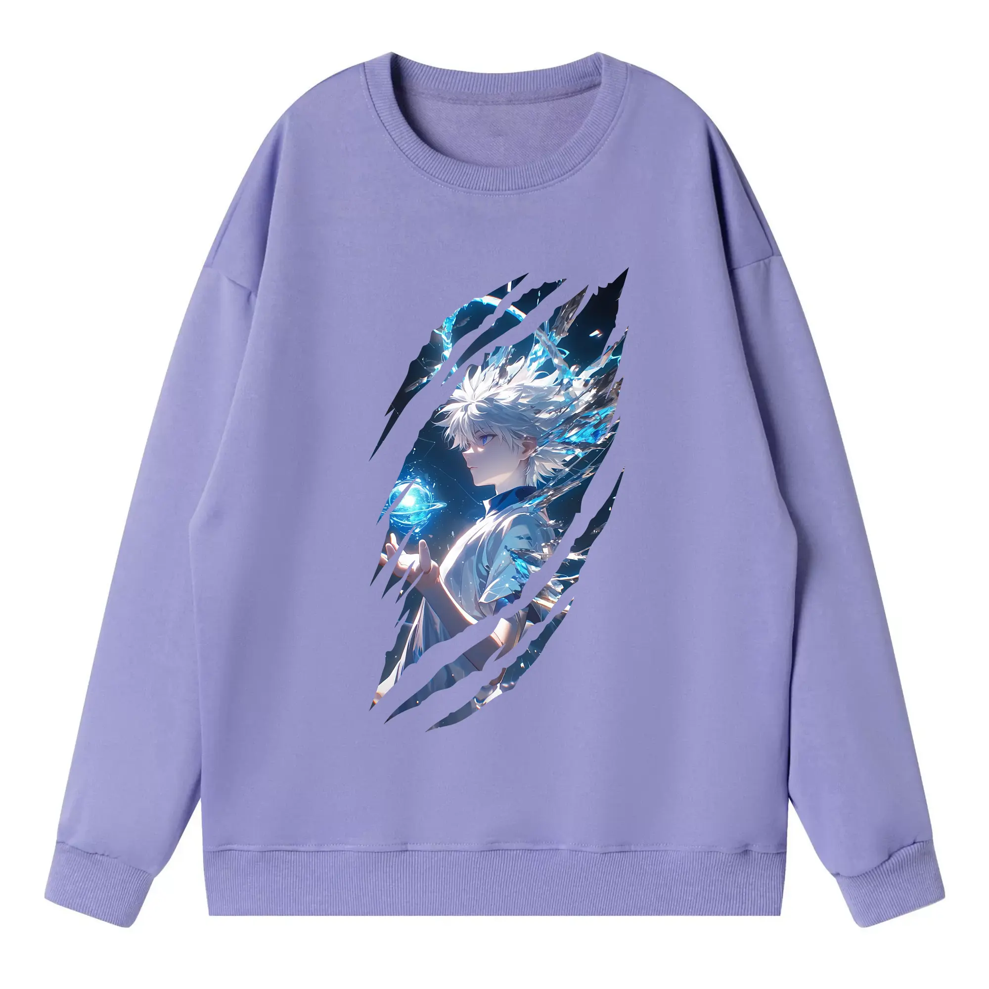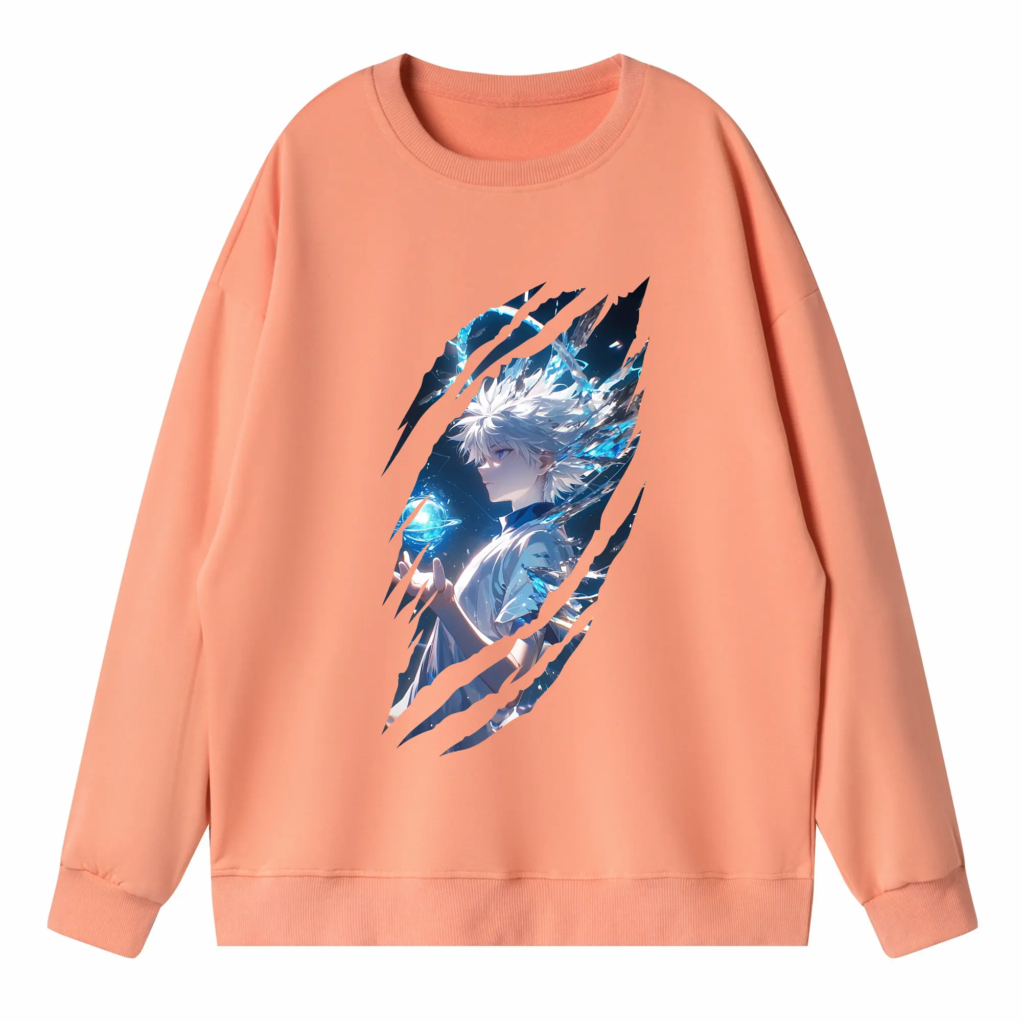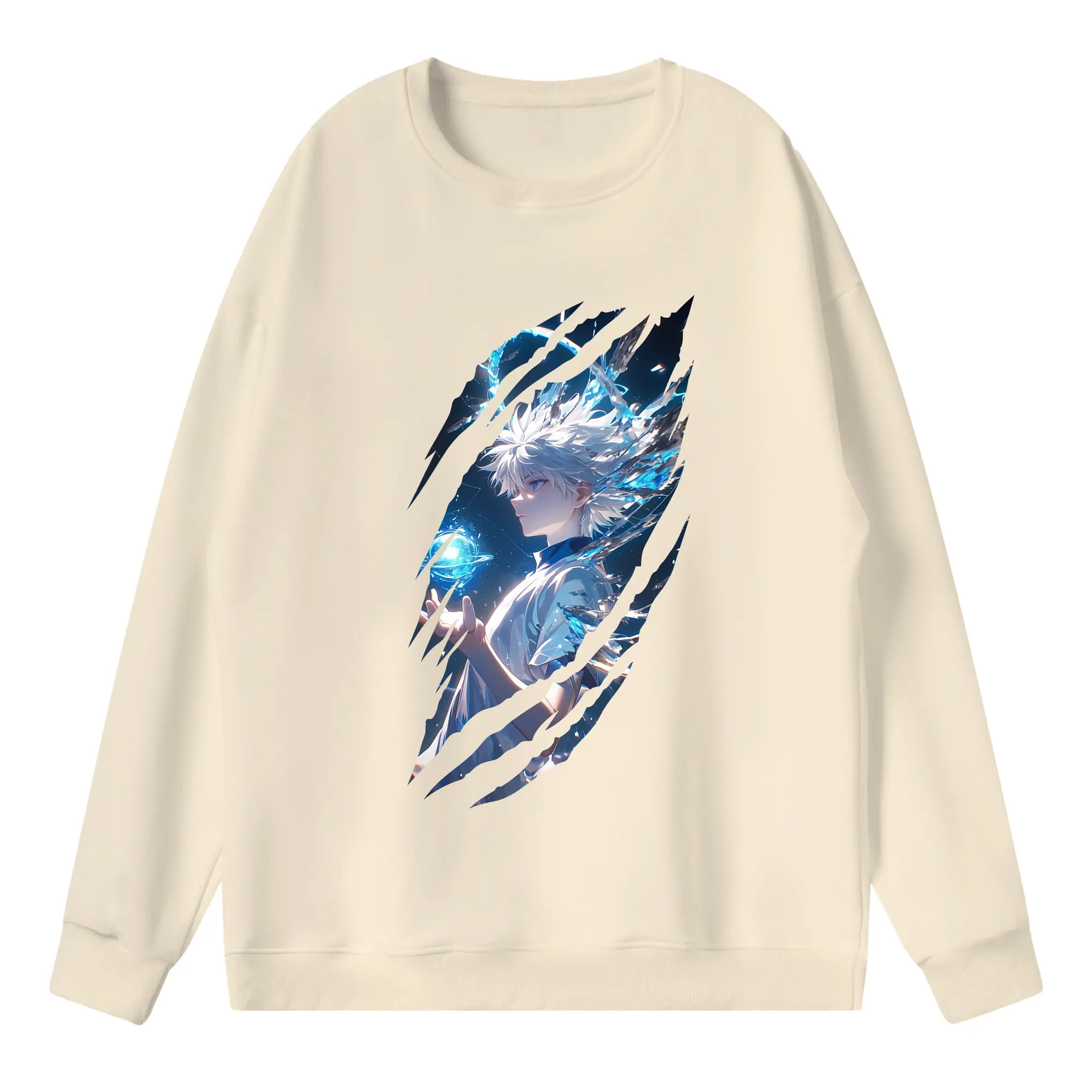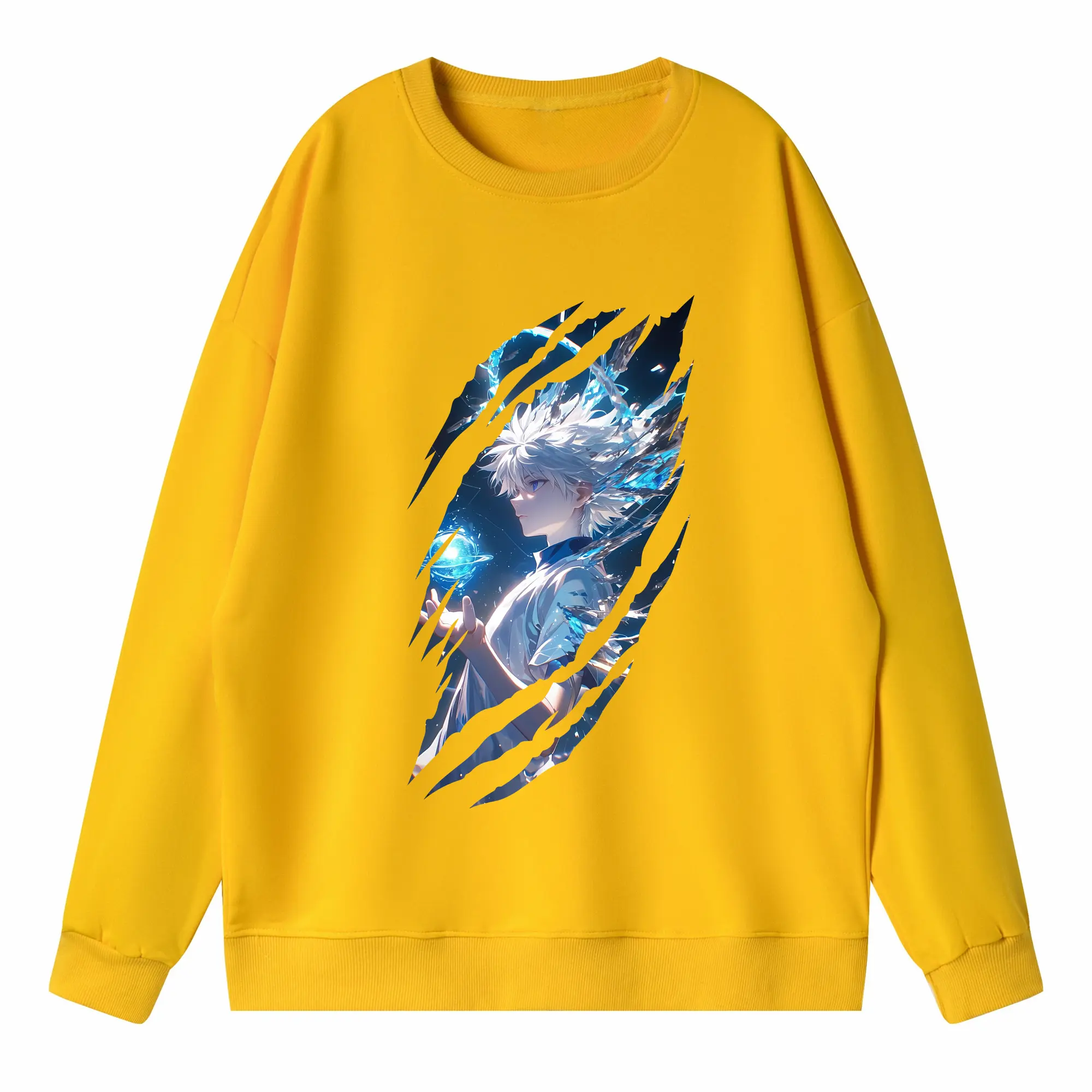 ハンター×ハンター グッズ キルア=ゾルディック - 高品質 クルーネック スウェット ・ コットン59% ポリエステル41% ・ ユニセックス 長袖 トレーナー ・ カジュアル デイリー スポーツ 散歩用