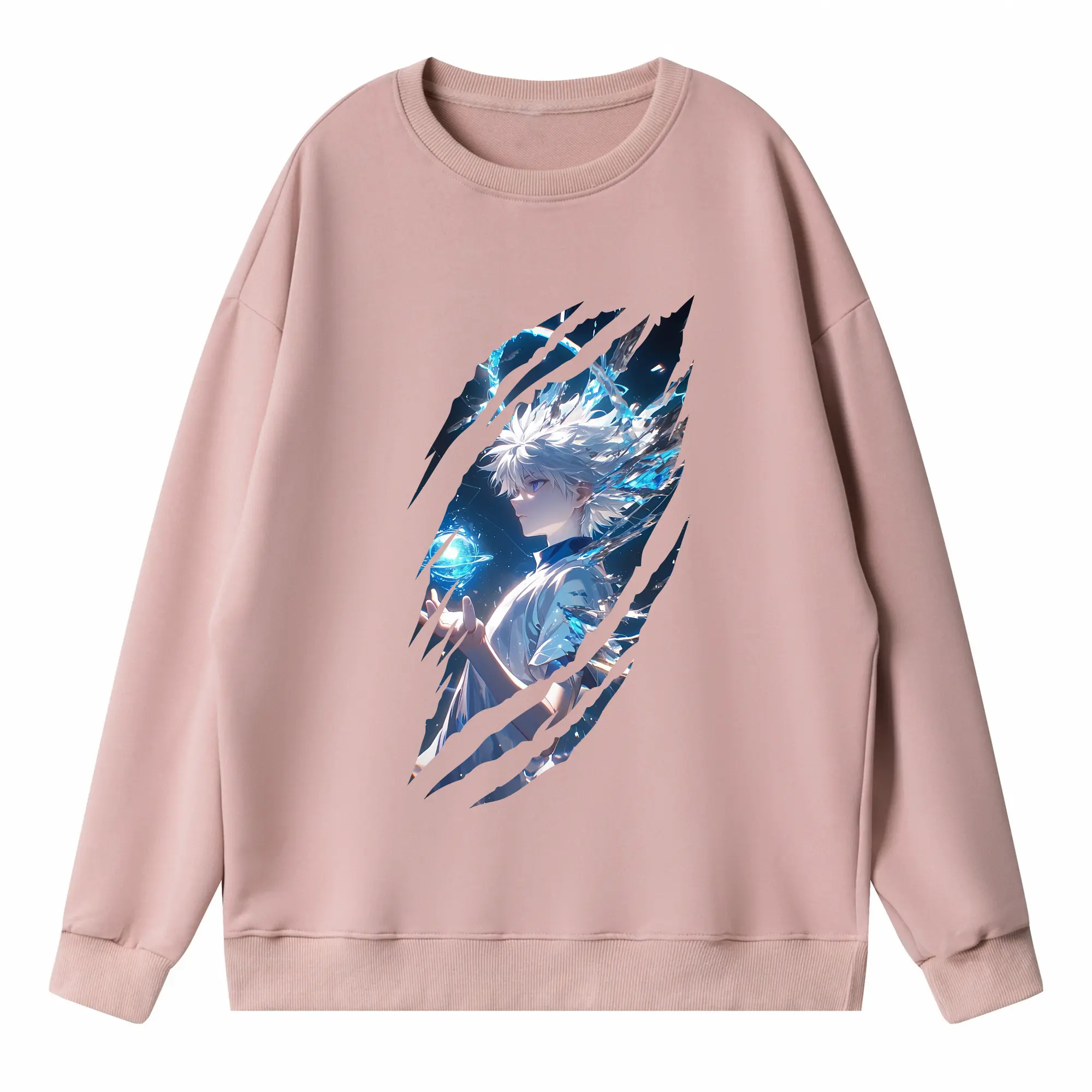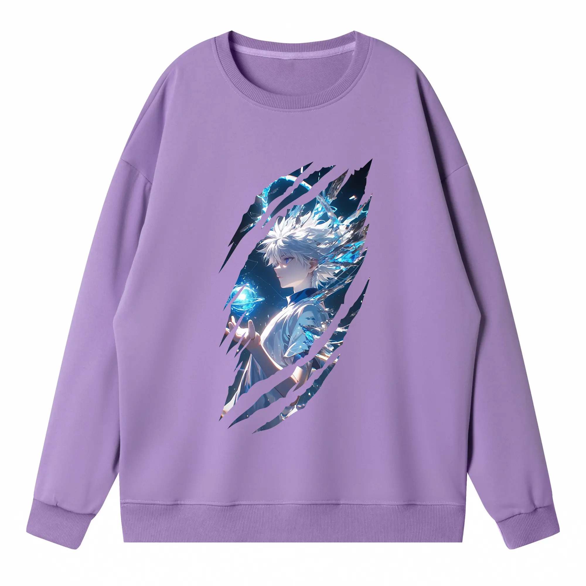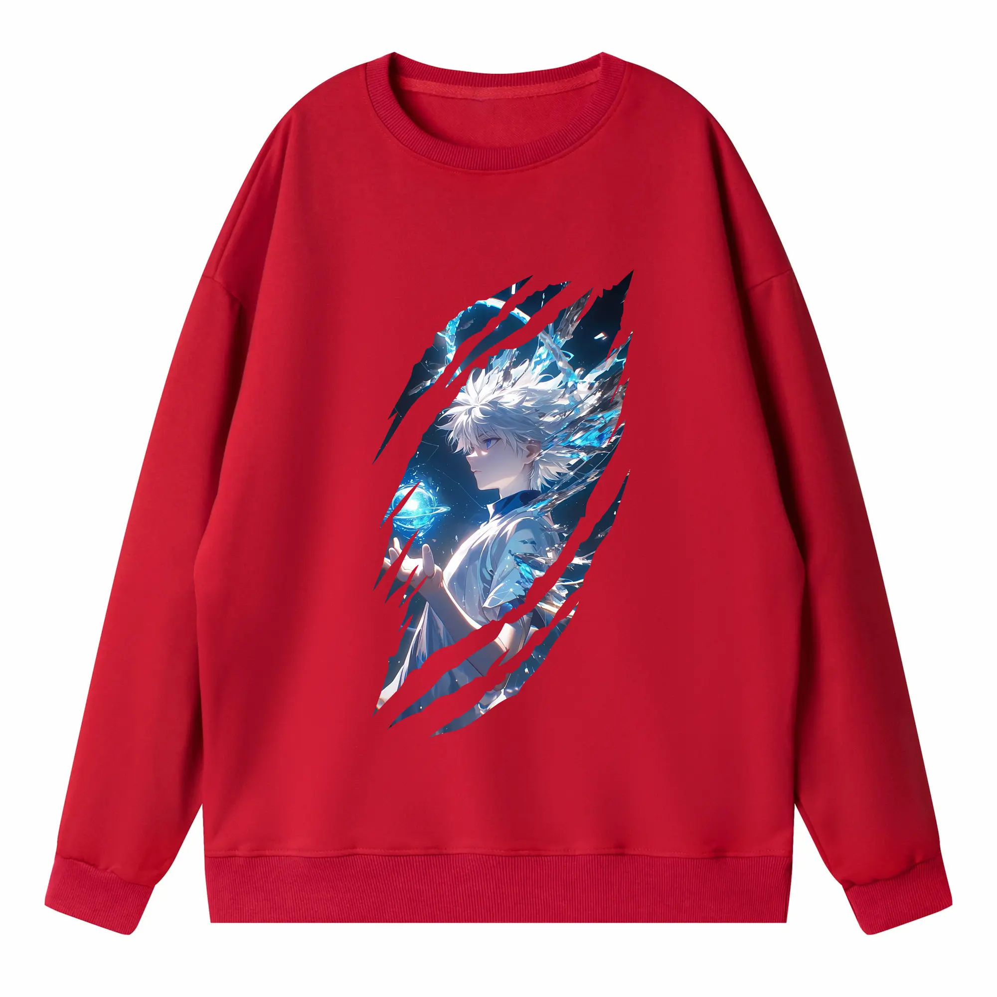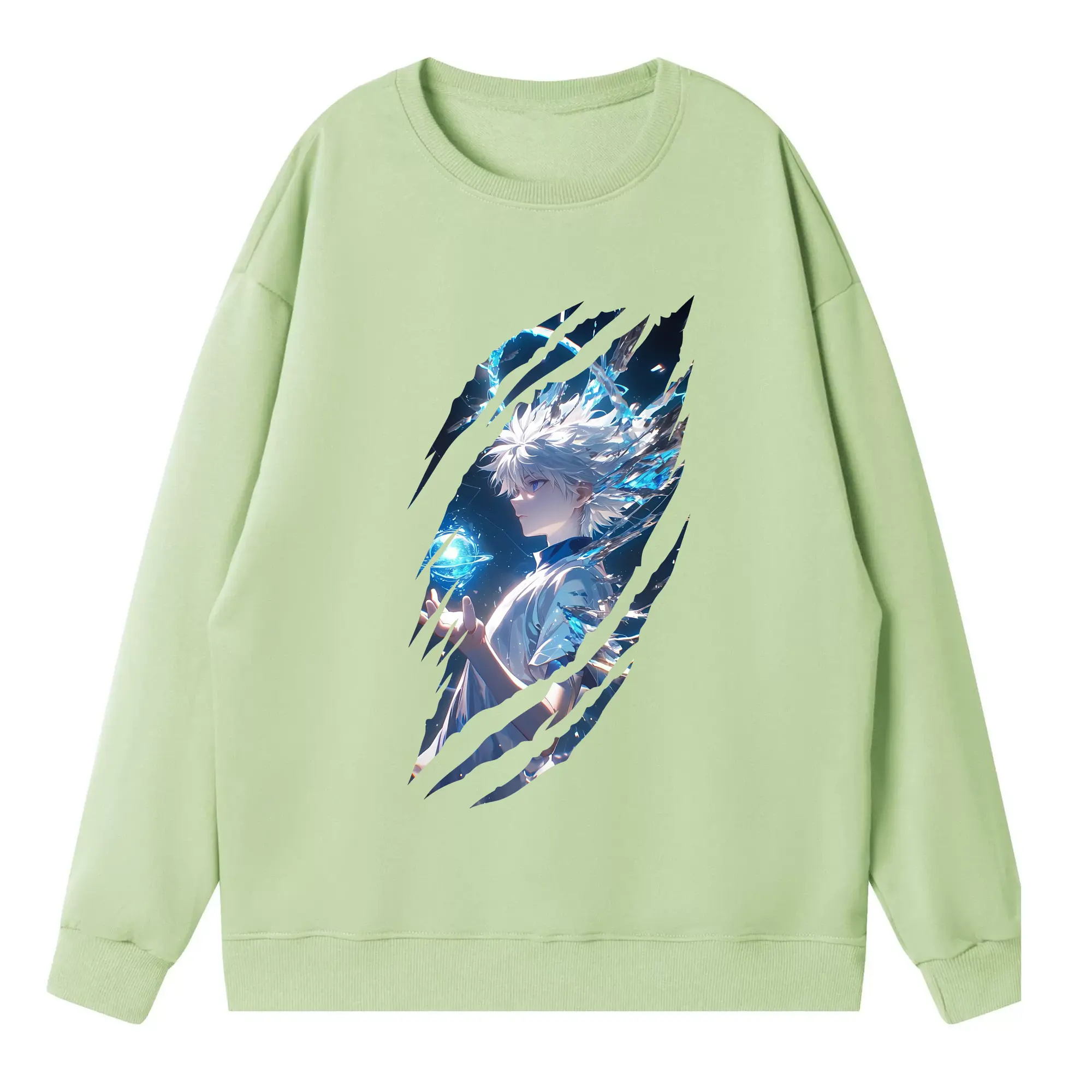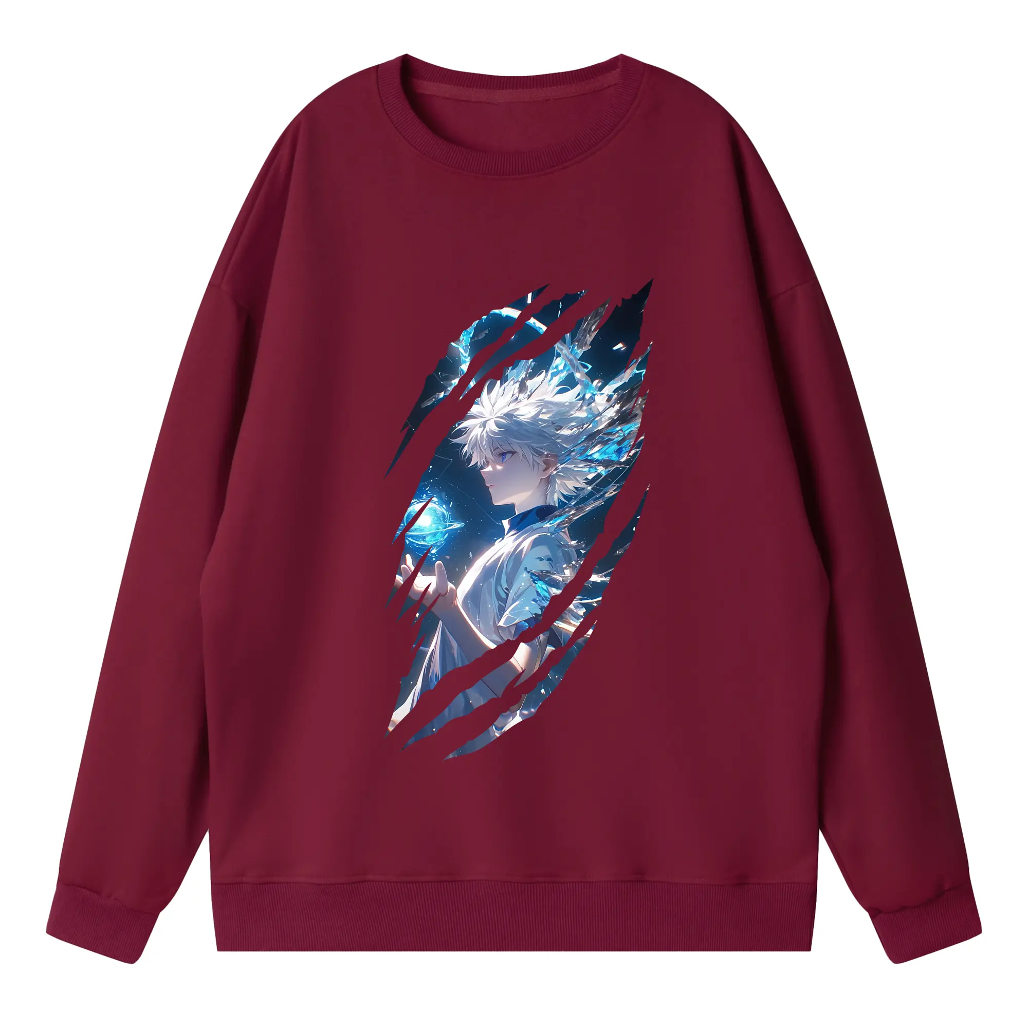 ハンター×ハンター グッズ キルア=ゾルディック - 高品質 クルーネック スウェット ・ コットン59% ポリエステル41% ・ ユニセックス 長袖 トレーナー ・ カジュアル デイリー スポーツ 散歩用