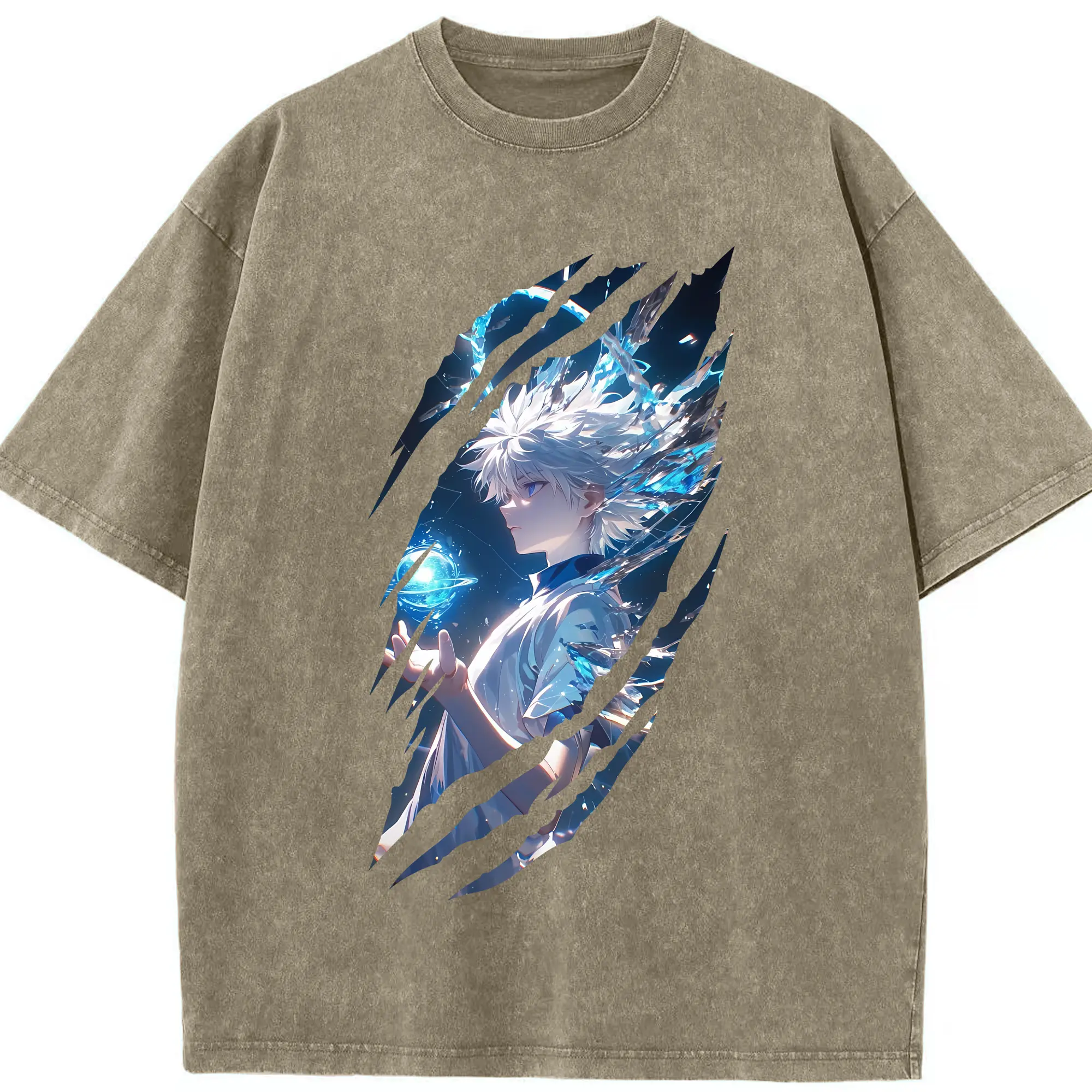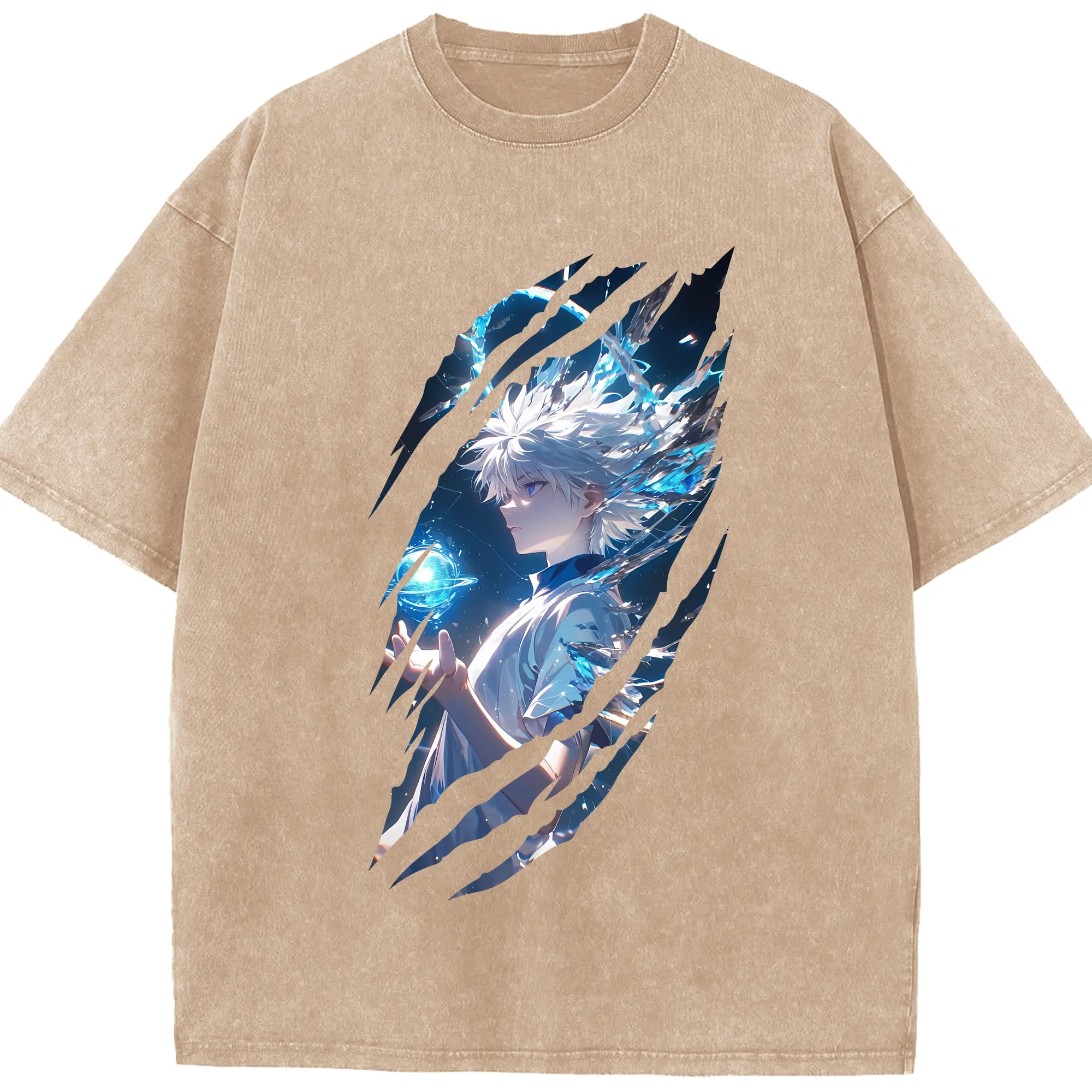 ハンター×ハンター グッズ キルア=ゾルディック - 綿100% ヴィンテージ風 半袖Tシャツ ・ 背面プリント ・ 柔らか肌触り ・ 通気性 快適 ・ スポーツ カジュアル 外出用