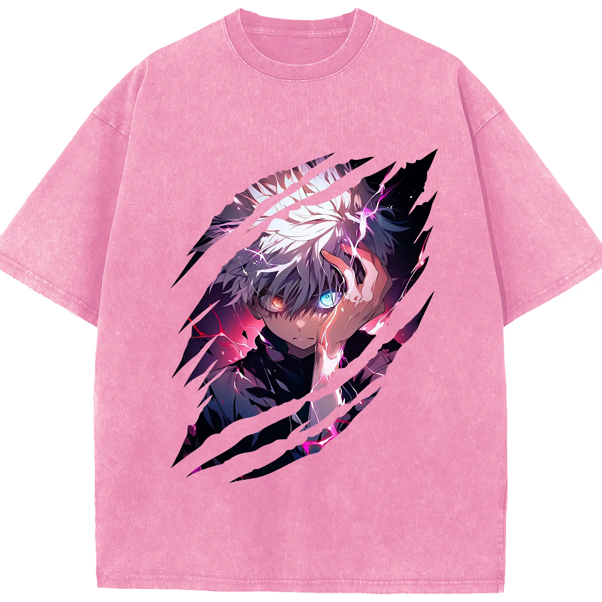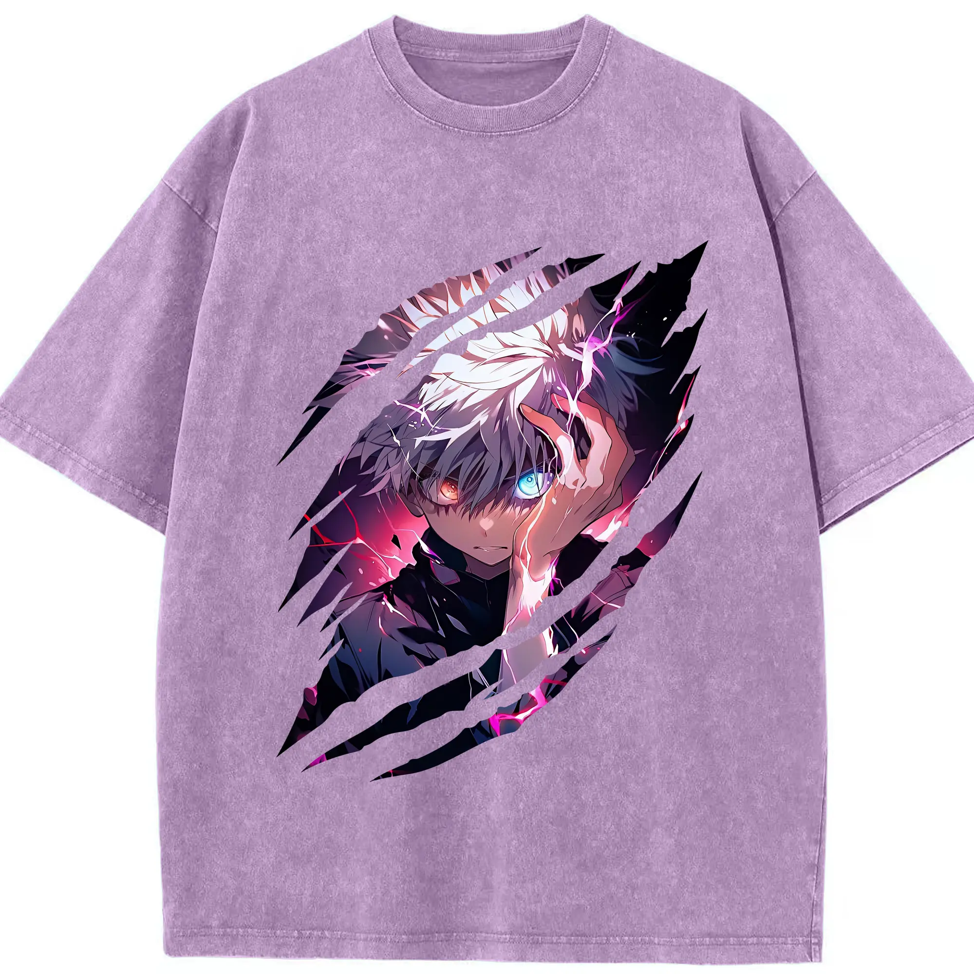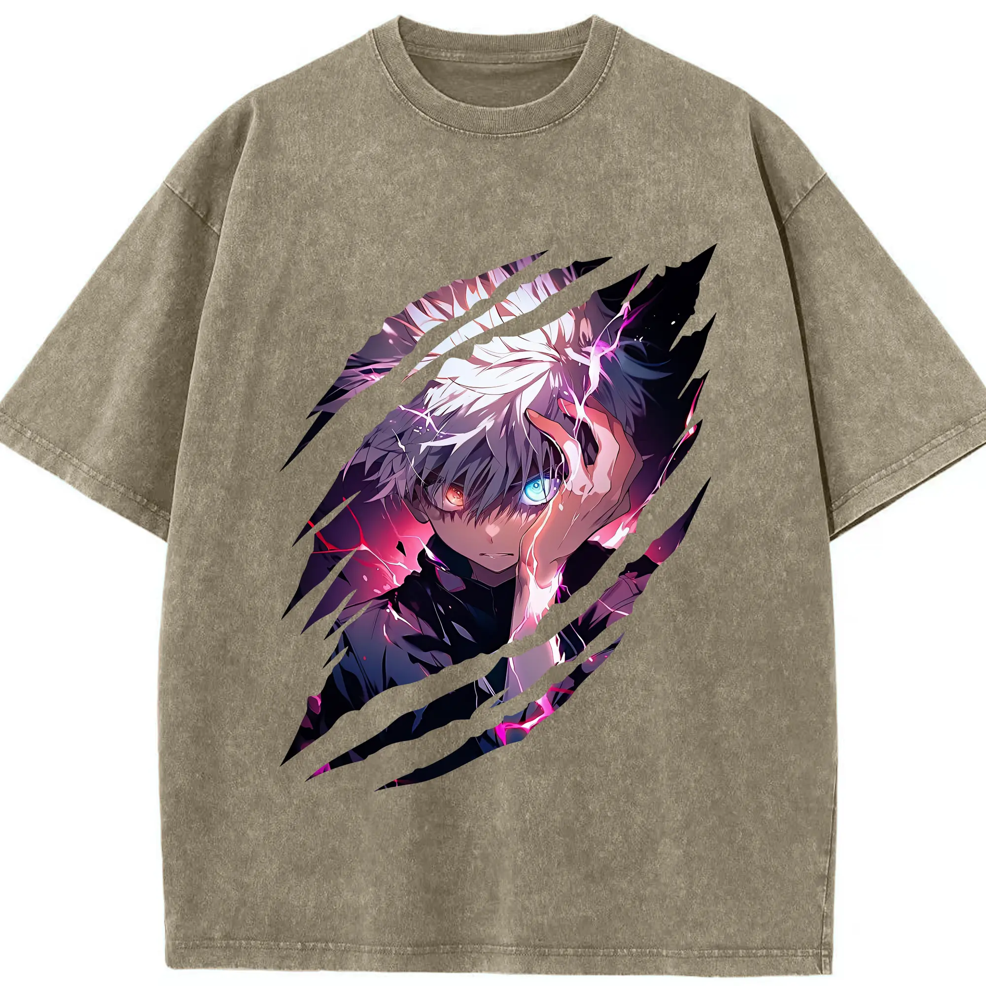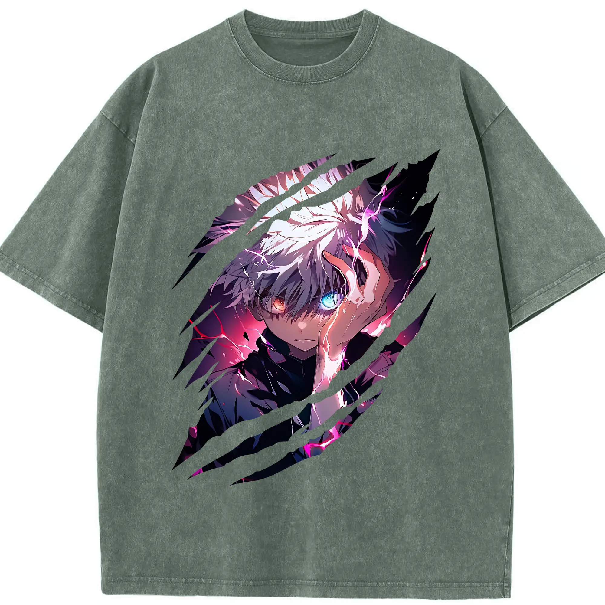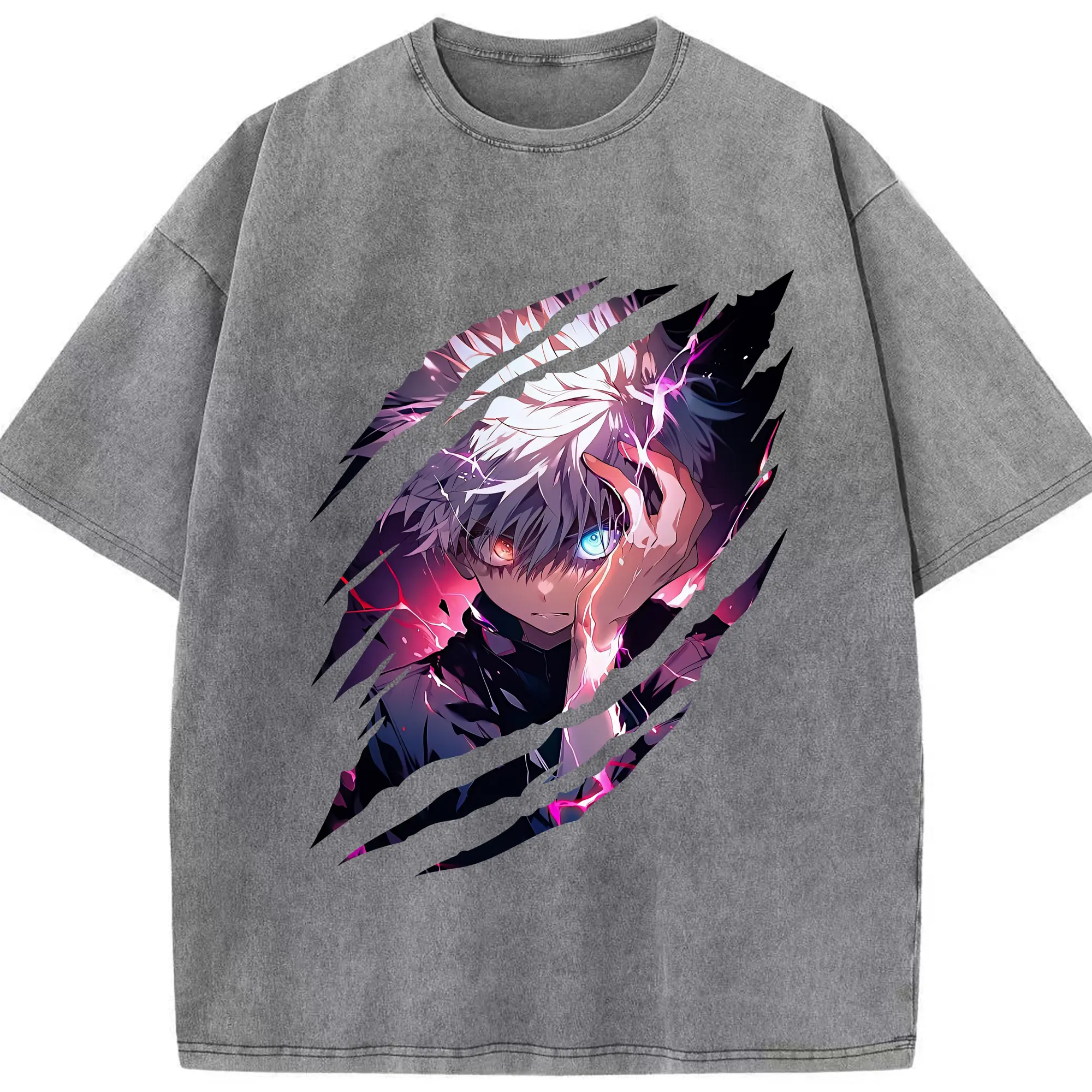 ハンター×ハンター グッズ キルア=ゾルディック - 綿100% ヴィンテージ風 半袖Tシャツ ・ 背面プリント ・ 柔らか肌触り ・ 通気性 快適 ・ スポーツ カジュアル 外出用