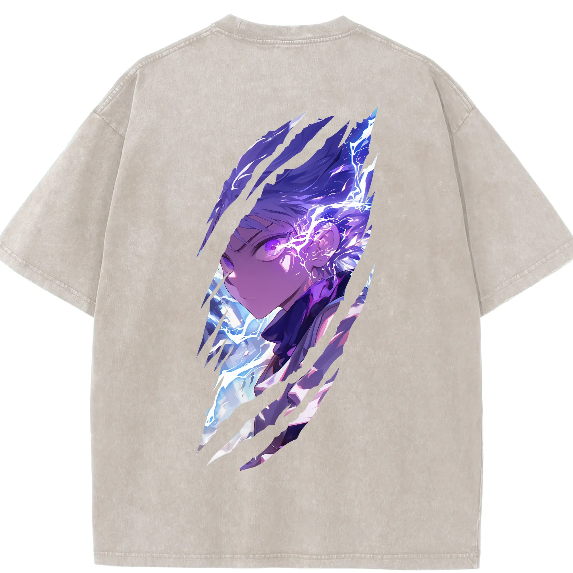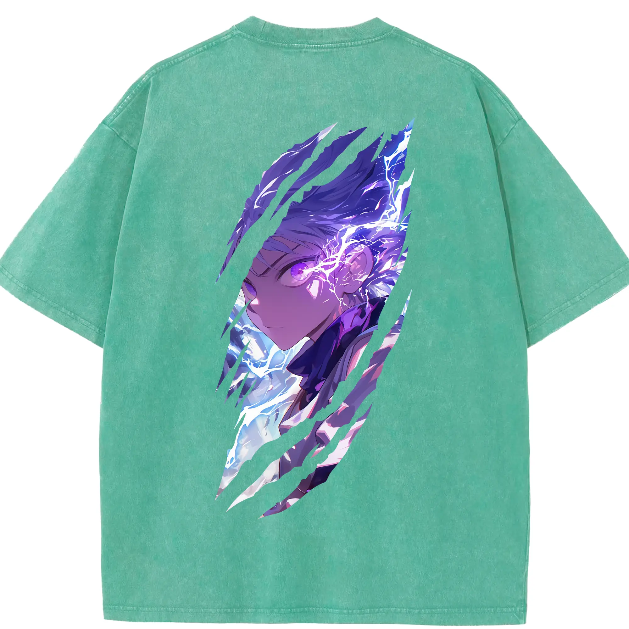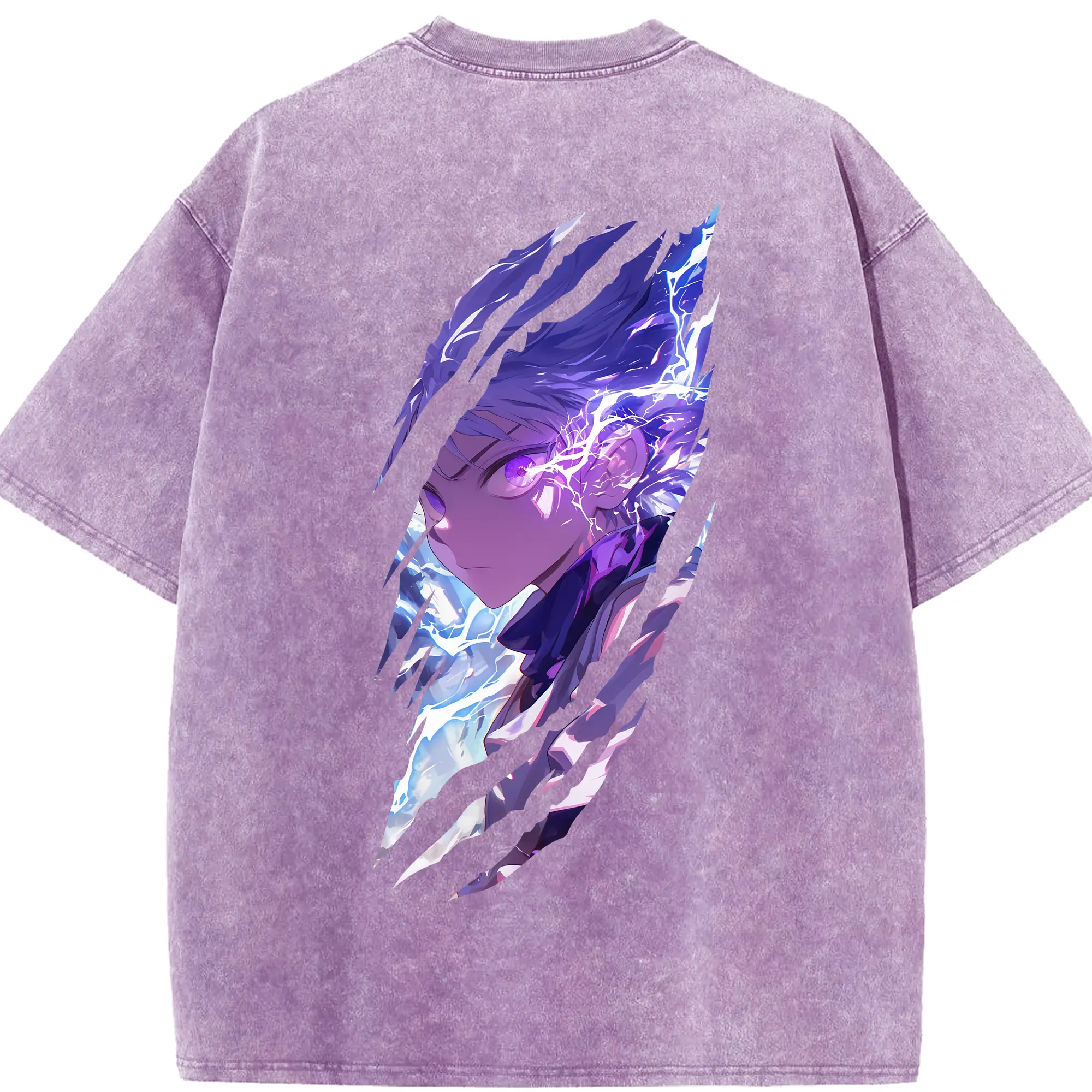 ハンター×ハンター グッズ キルア=ゾルディック - 綿100% ヴィンテージ風 半袖Tシャツ ・ フロントプリント ・ 柔らか肌触り ・ 通気性 快適 ・ スポーツ カジュアル 外出用