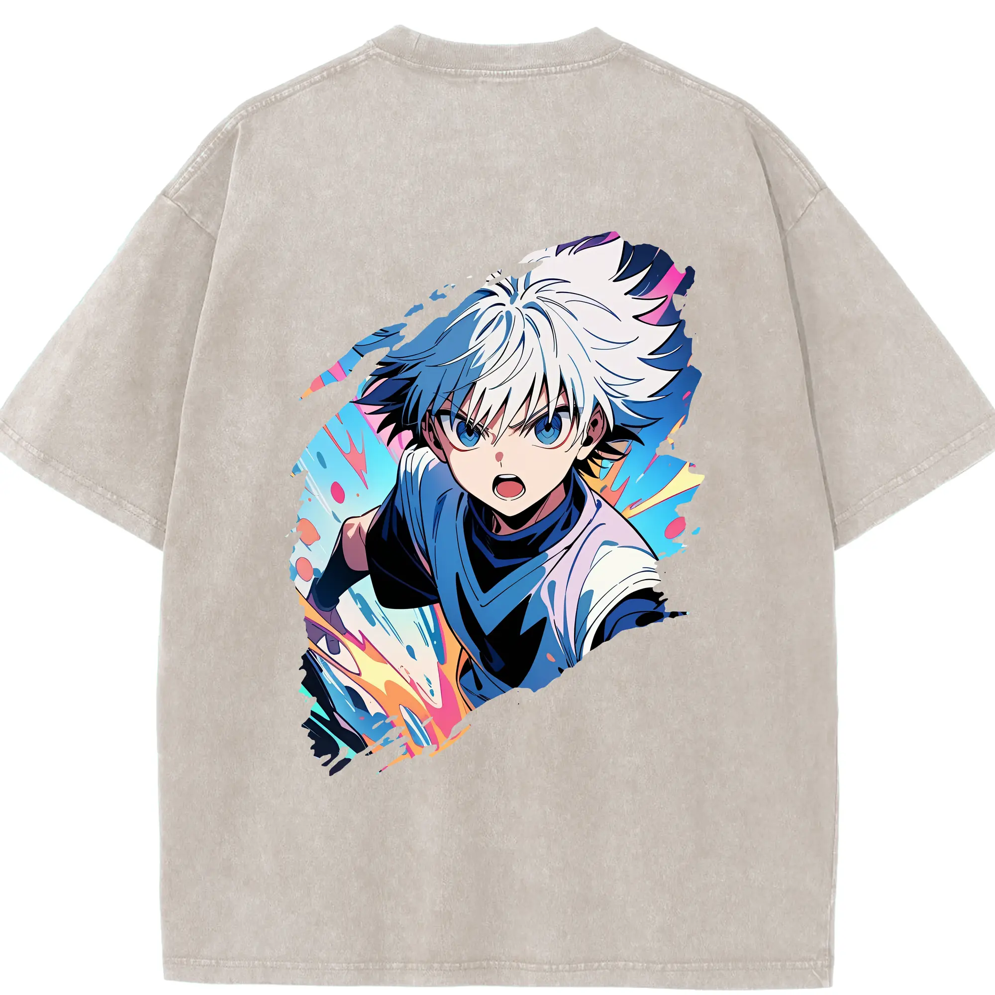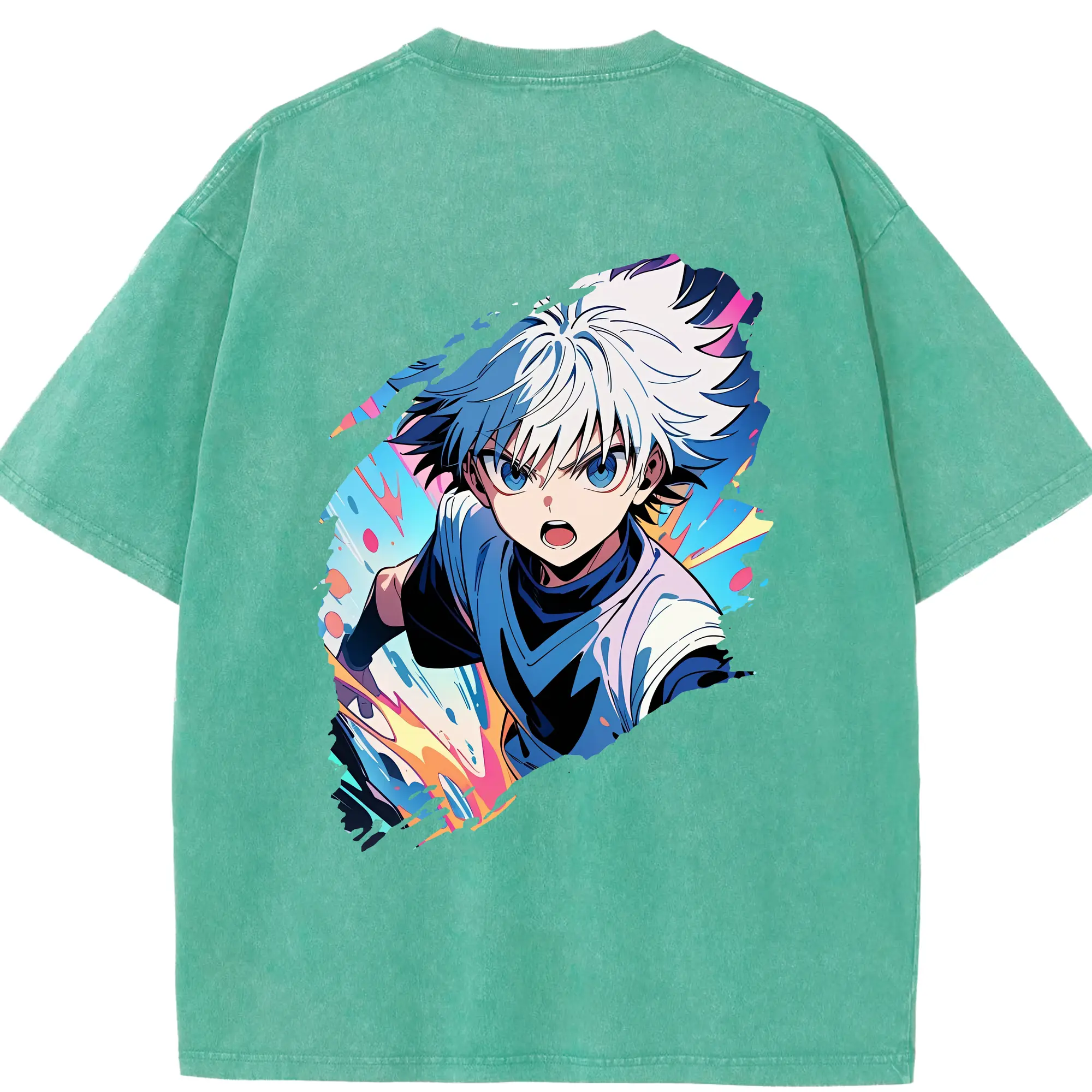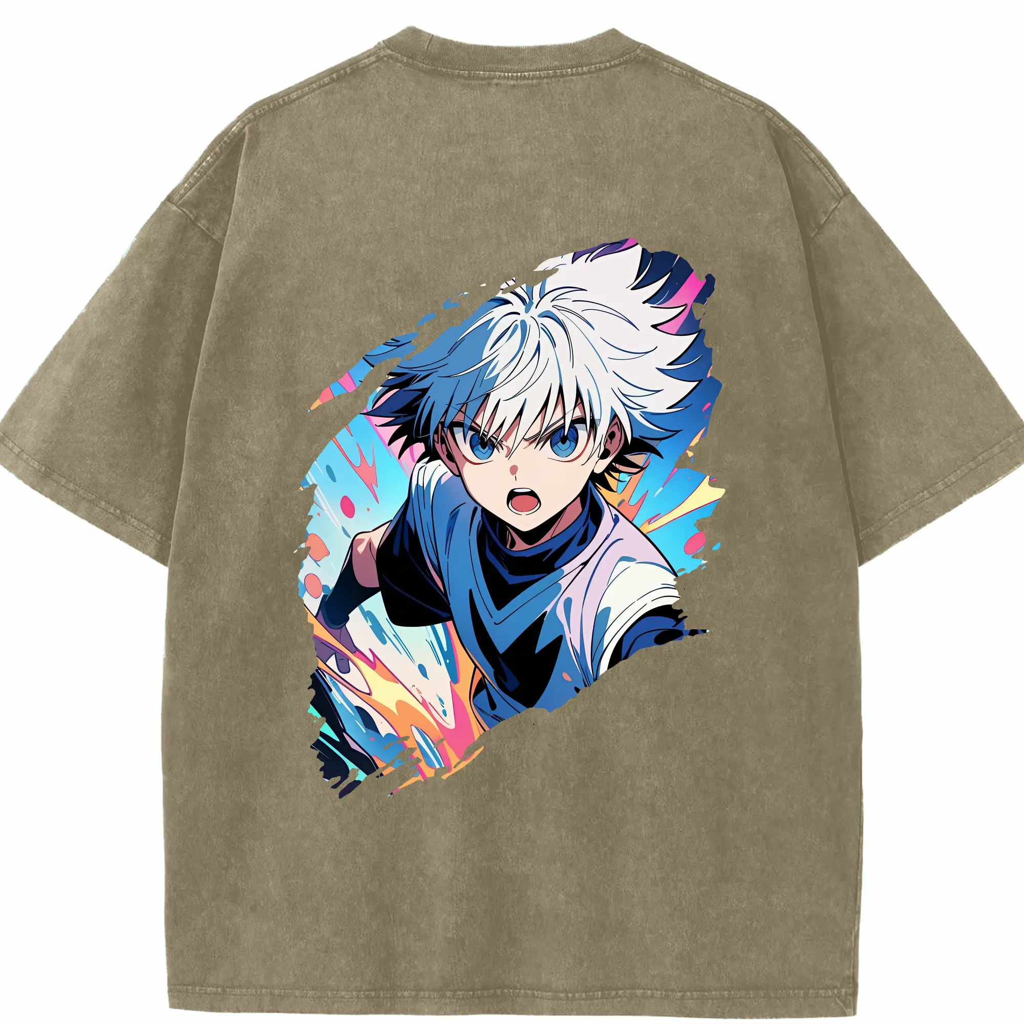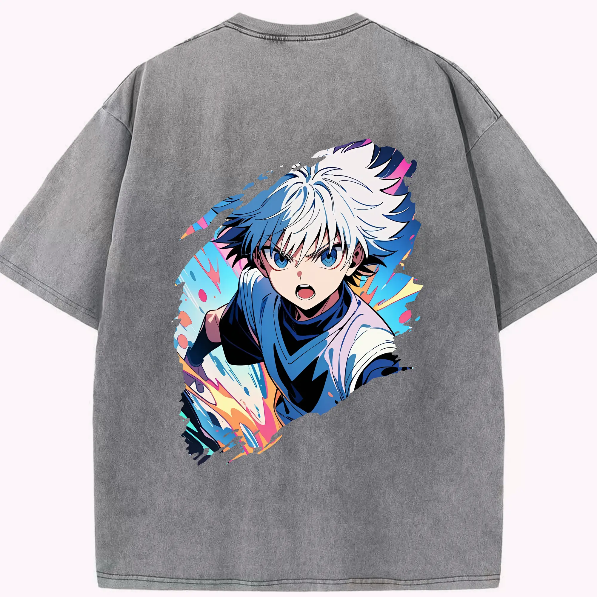 ハンター×ハンター グッズ キルア=ゾルディック - 綿100% ヴィンテージ風 半袖Tシャツ ・ フロントプリント ・ 柔らか肌触り ・ 通気性 快適 ・ スポーツ カジュアル 外出用
