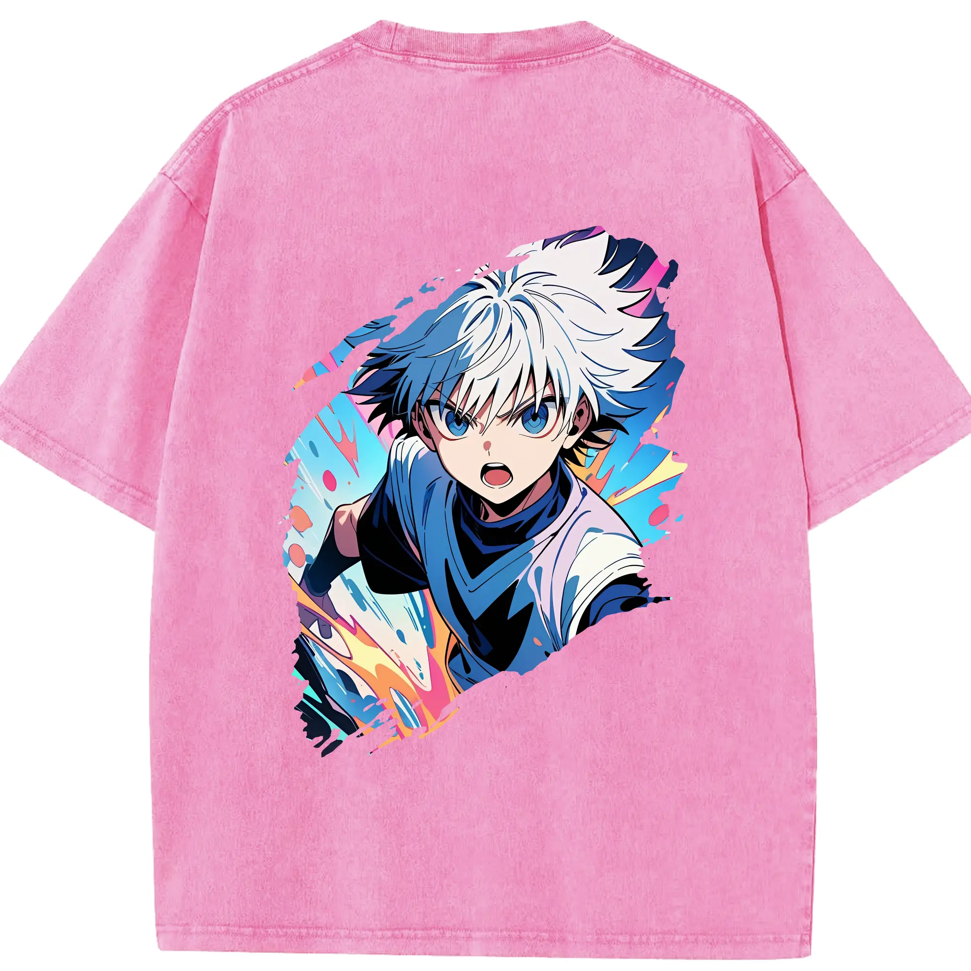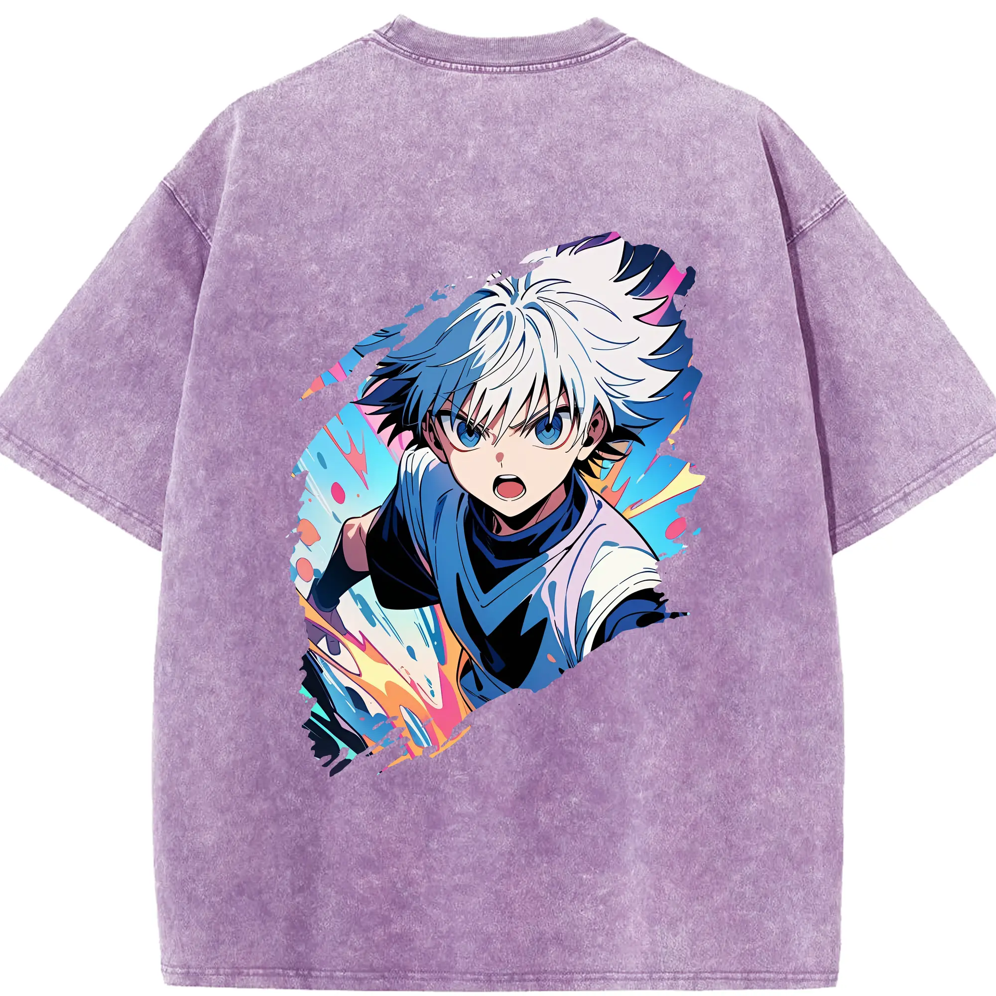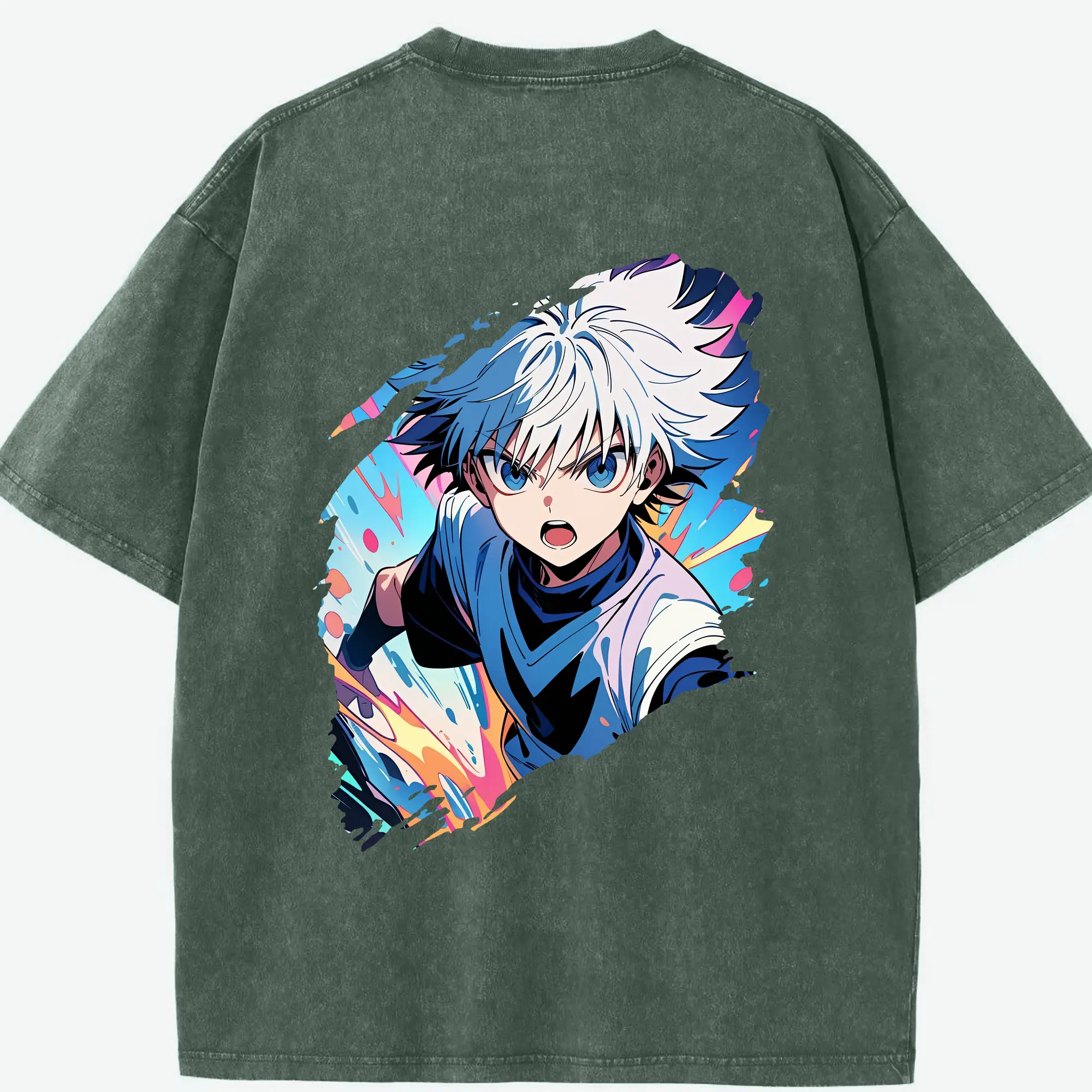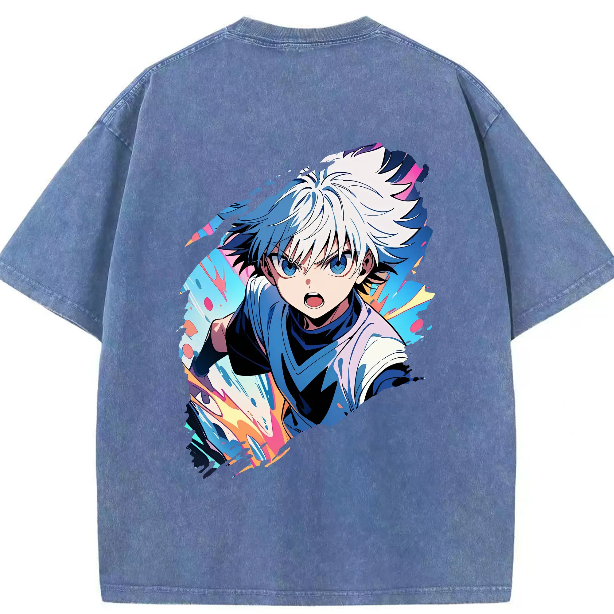 ハンター×ハンター グッズ キルア=ゾルディック - 綿100% ヴィンテージ風 半袖Tシャツ ・ フロントプリント ・ 柔らか肌触り ・ 通気性 快適 ・ スポーツ カジュアル 外出用
