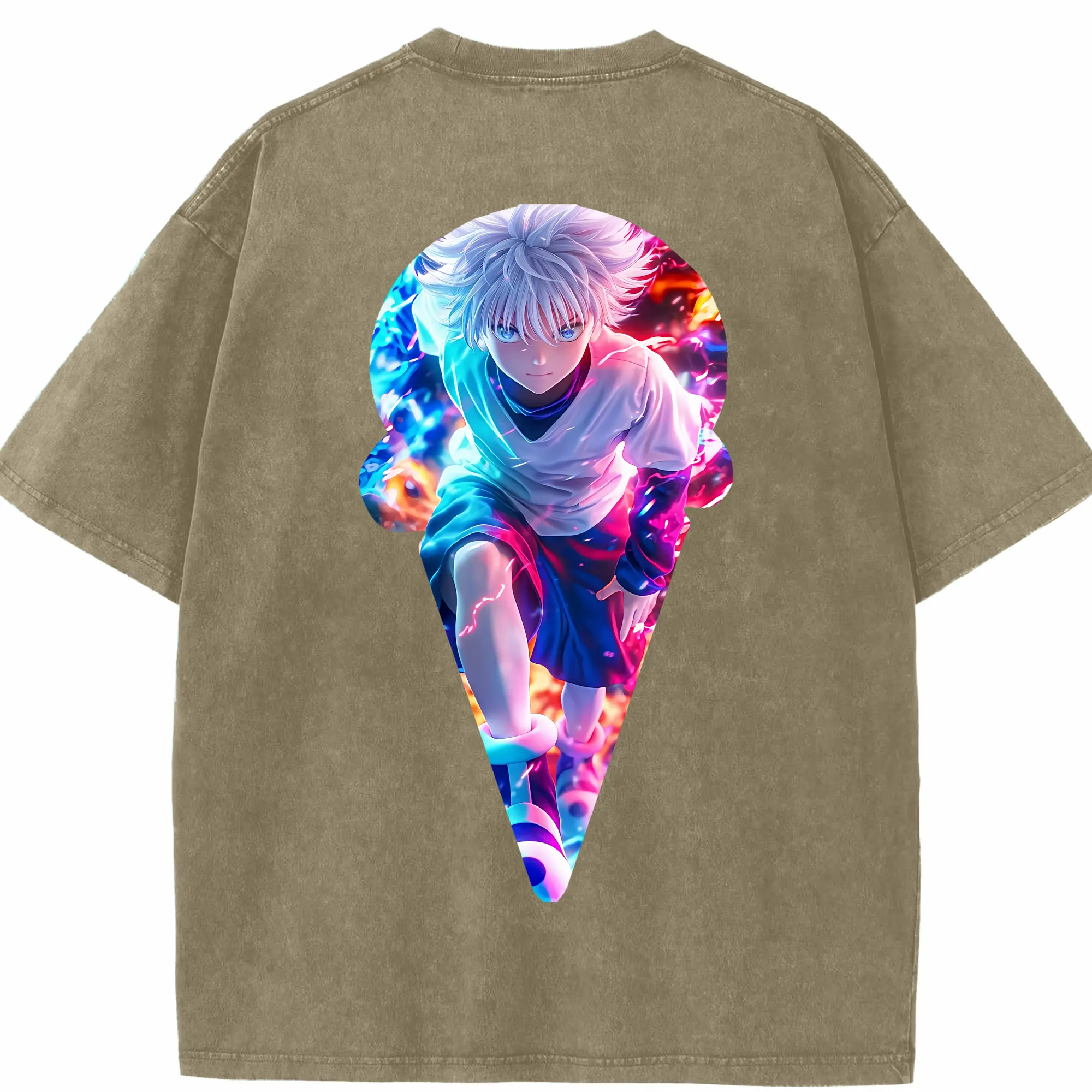 ハンター×ハンター グッズ キルア=ゾルディック - 綿100% ヴィンテージ風 半袖Tシャツ ・ フロントプリント ・ 柔らか肌触り ・ 通気性 快適 ・ スポーツ カジュアル 外出用