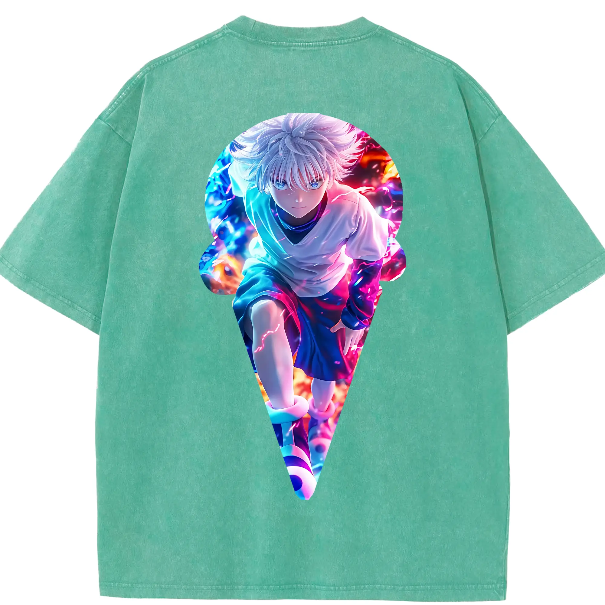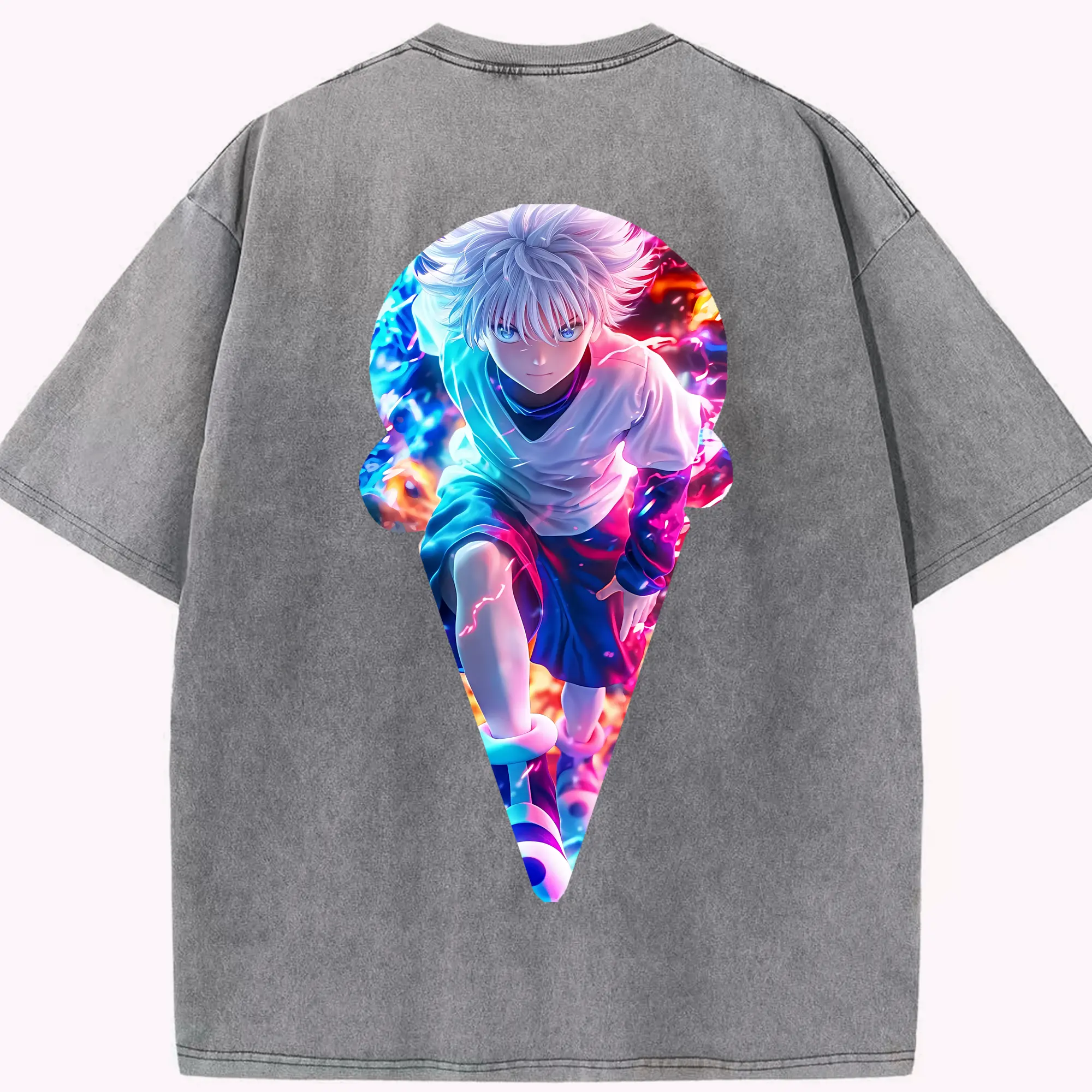 ハンター×ハンター グッズ キルア=ゾルディック - 綿100% 半袖Tシャツ ・ バックプリント ・ 快適 通気性 ・ 日常使い 散歩 スポーツ用