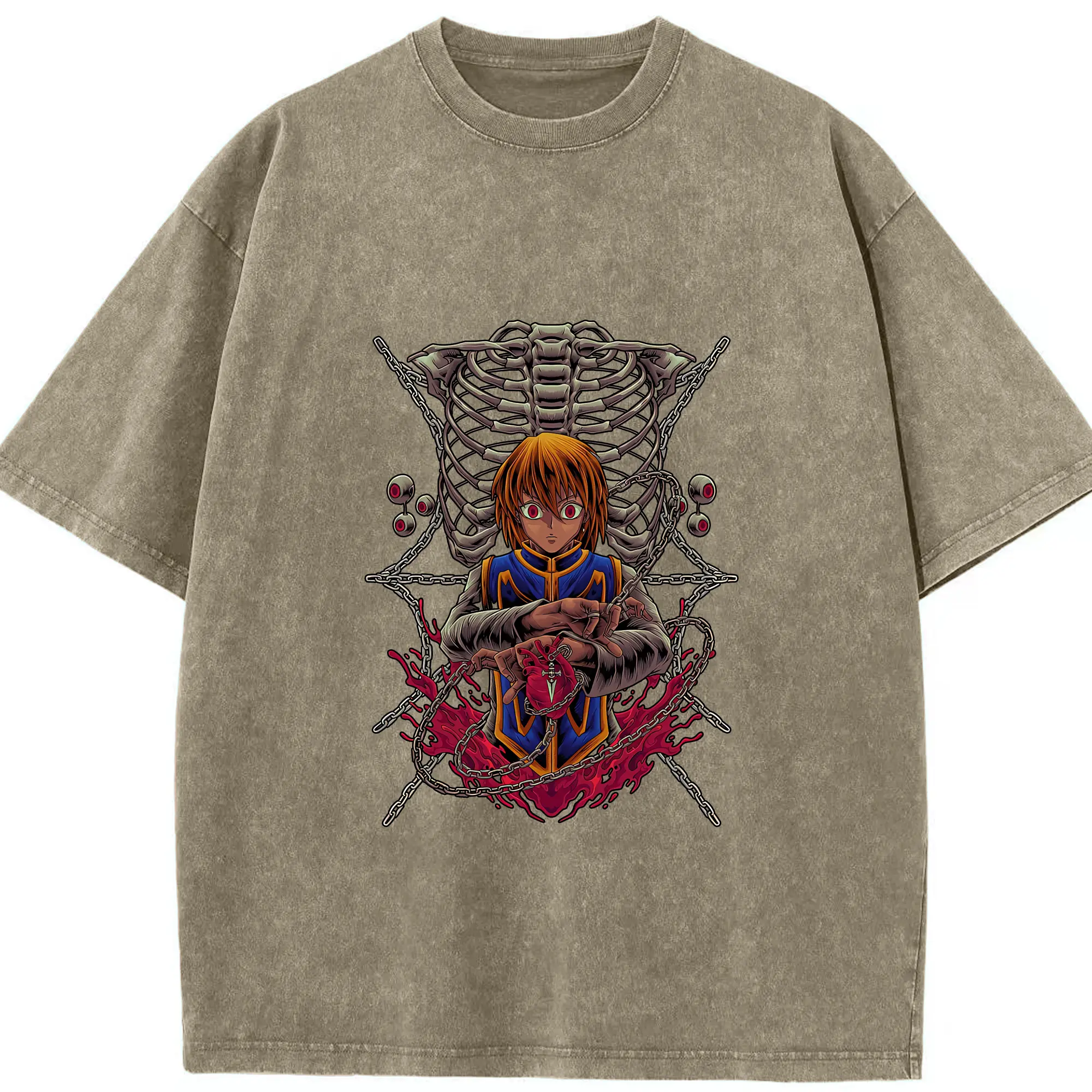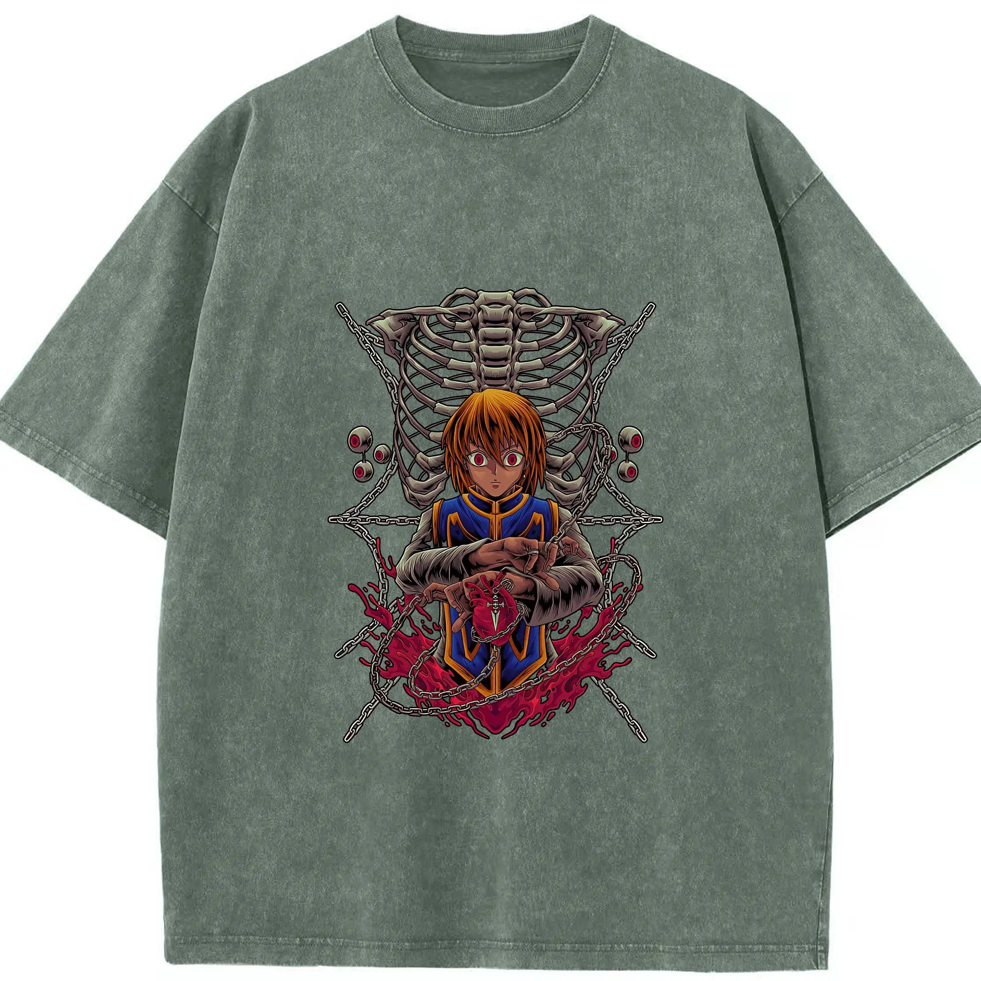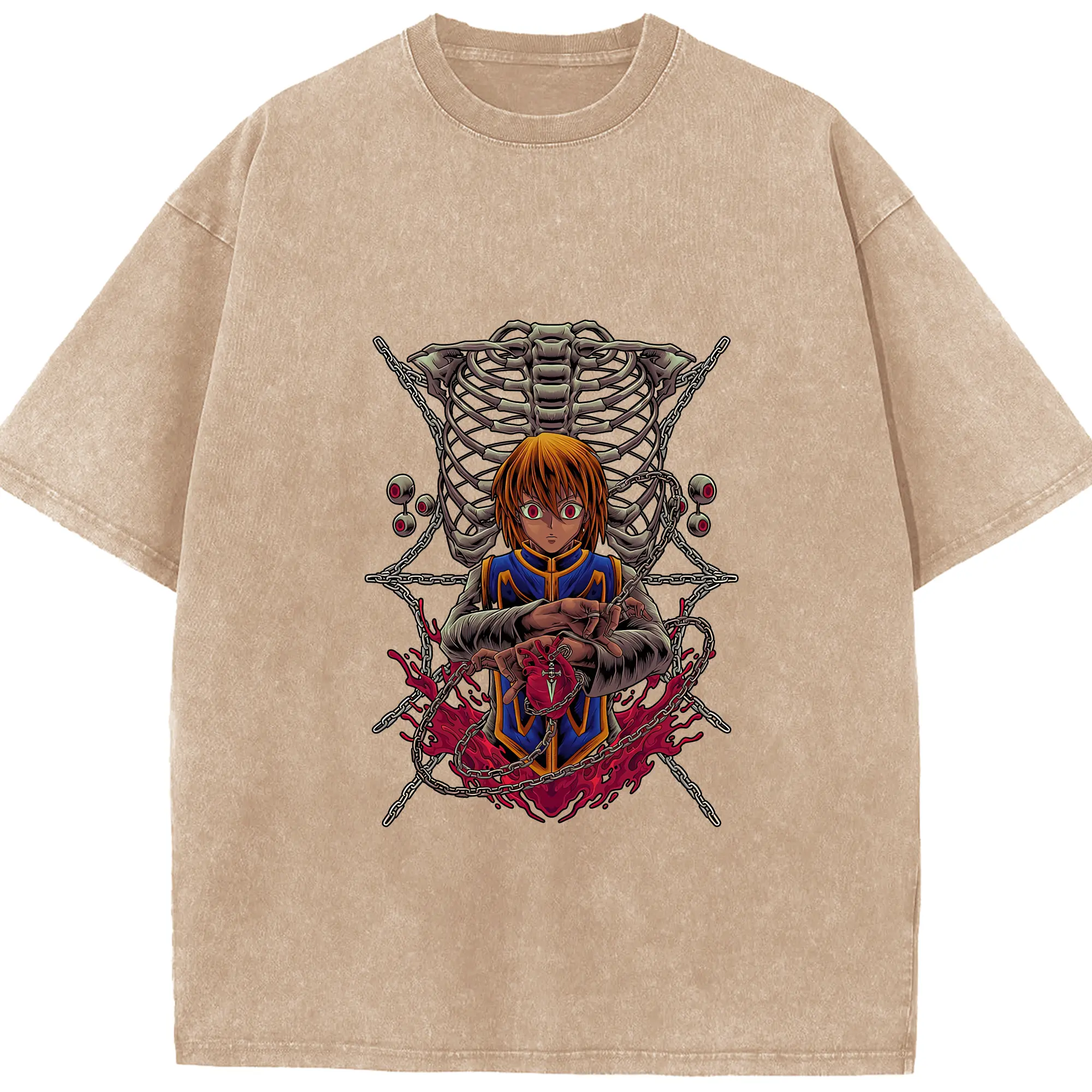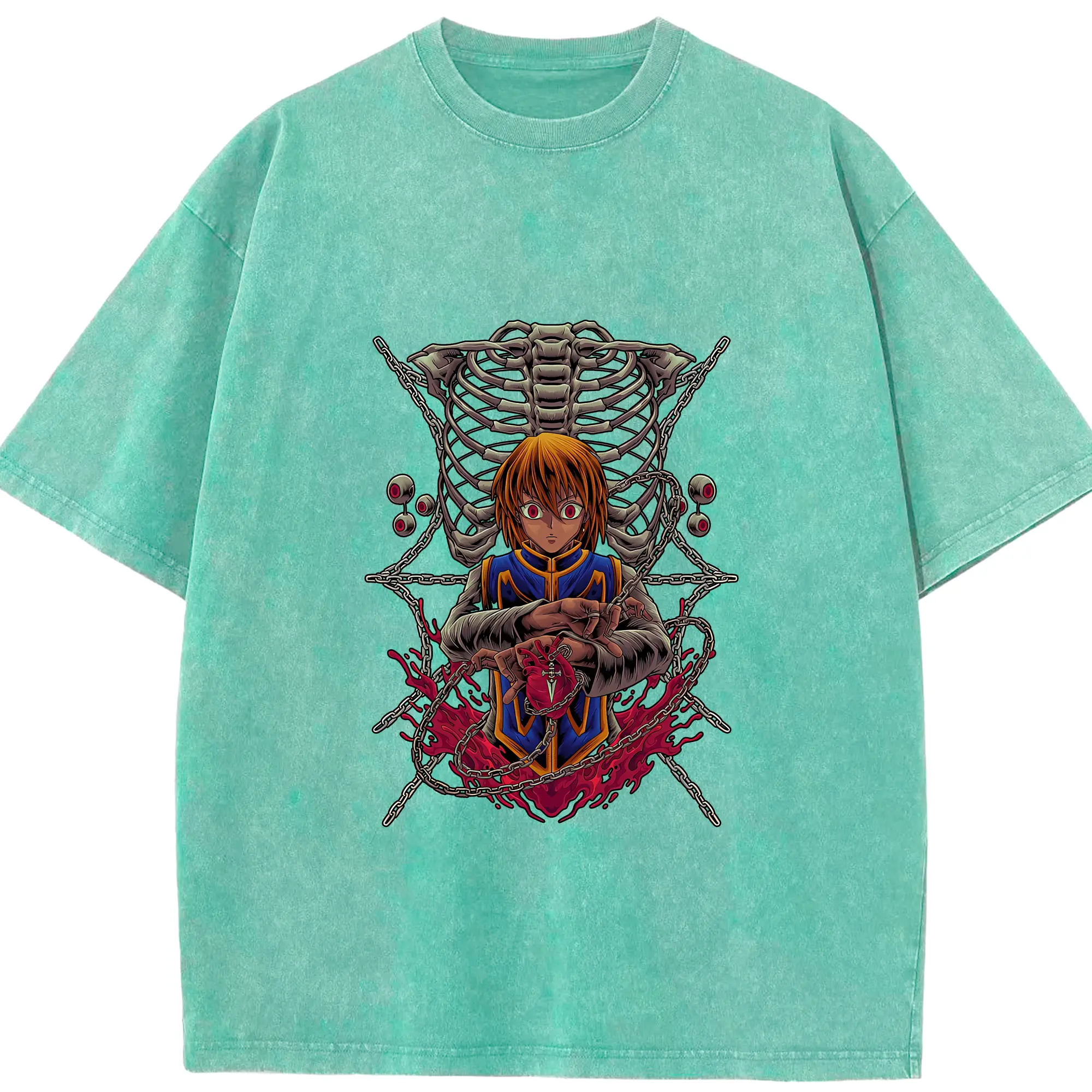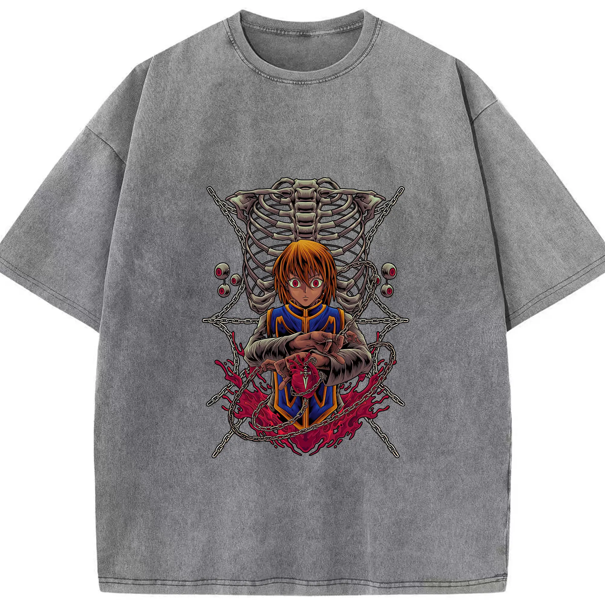 ハンター×ハンター グッズ クラピカ - 綿100% ヴィンテージ風 半袖Tシャツ ・ 背面プリント ・ 柔らか肌触り ・ 通気性 快適 ・ スポーツ カジュアル 外出用