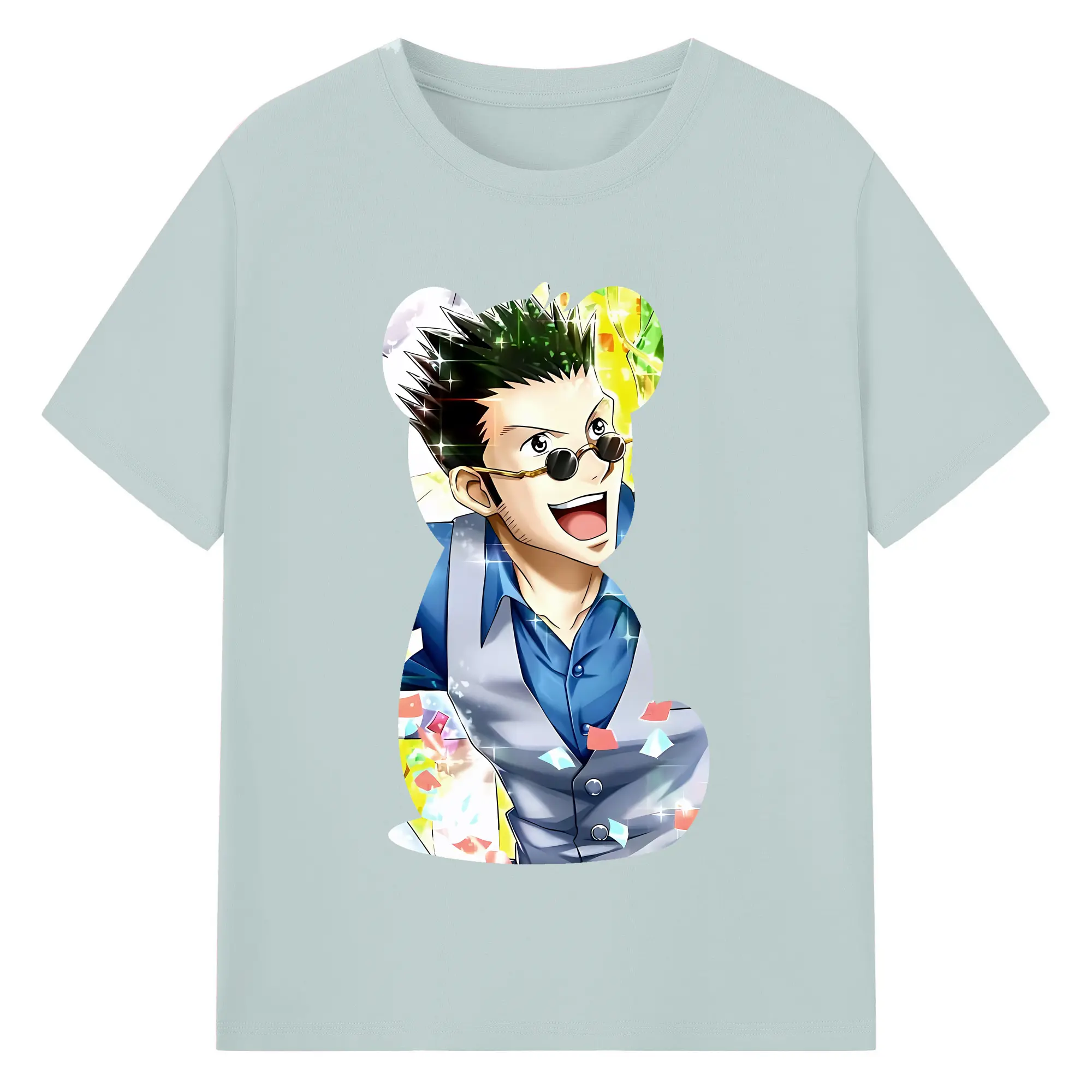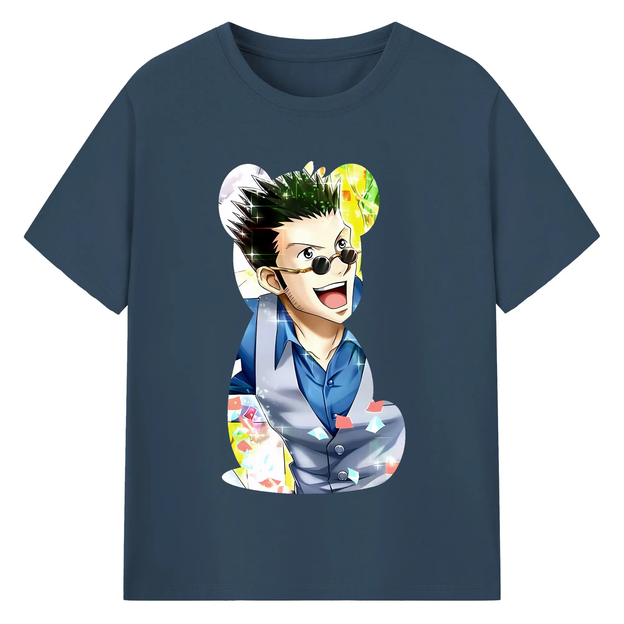 ハンター×ハンター グッズ レオリオ=パラディナイト - 綿100% 半袖Tシャツ ・ バックプリント ・ 快適 通気性 ・ 日常使い 散歩 スポーツ用
