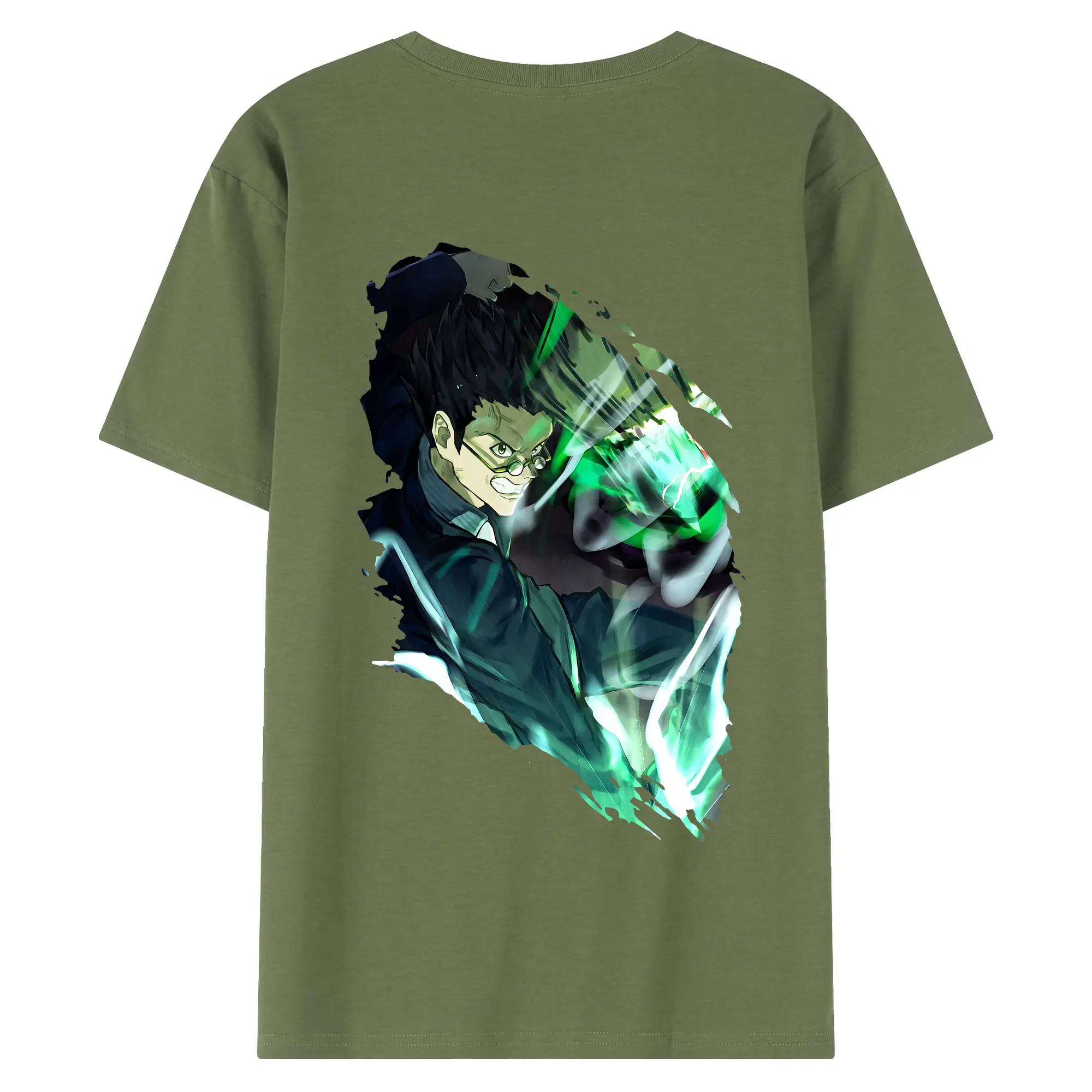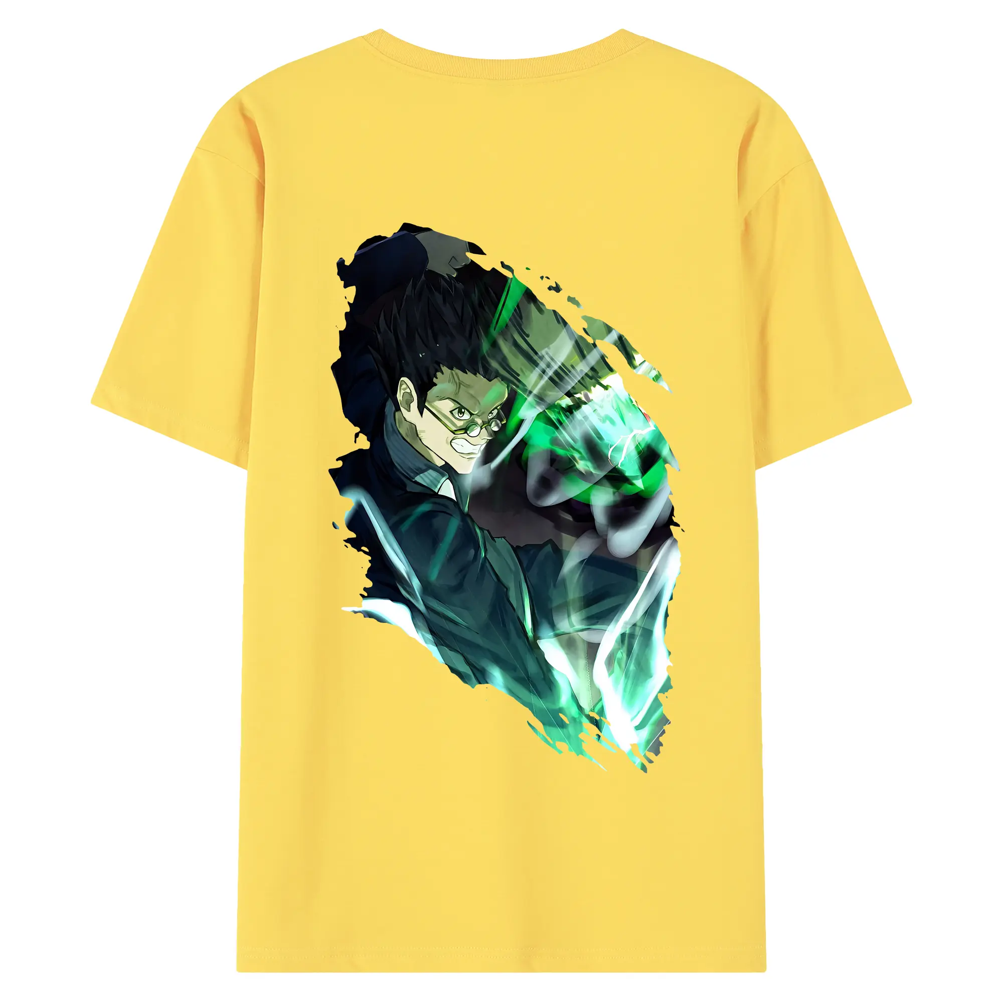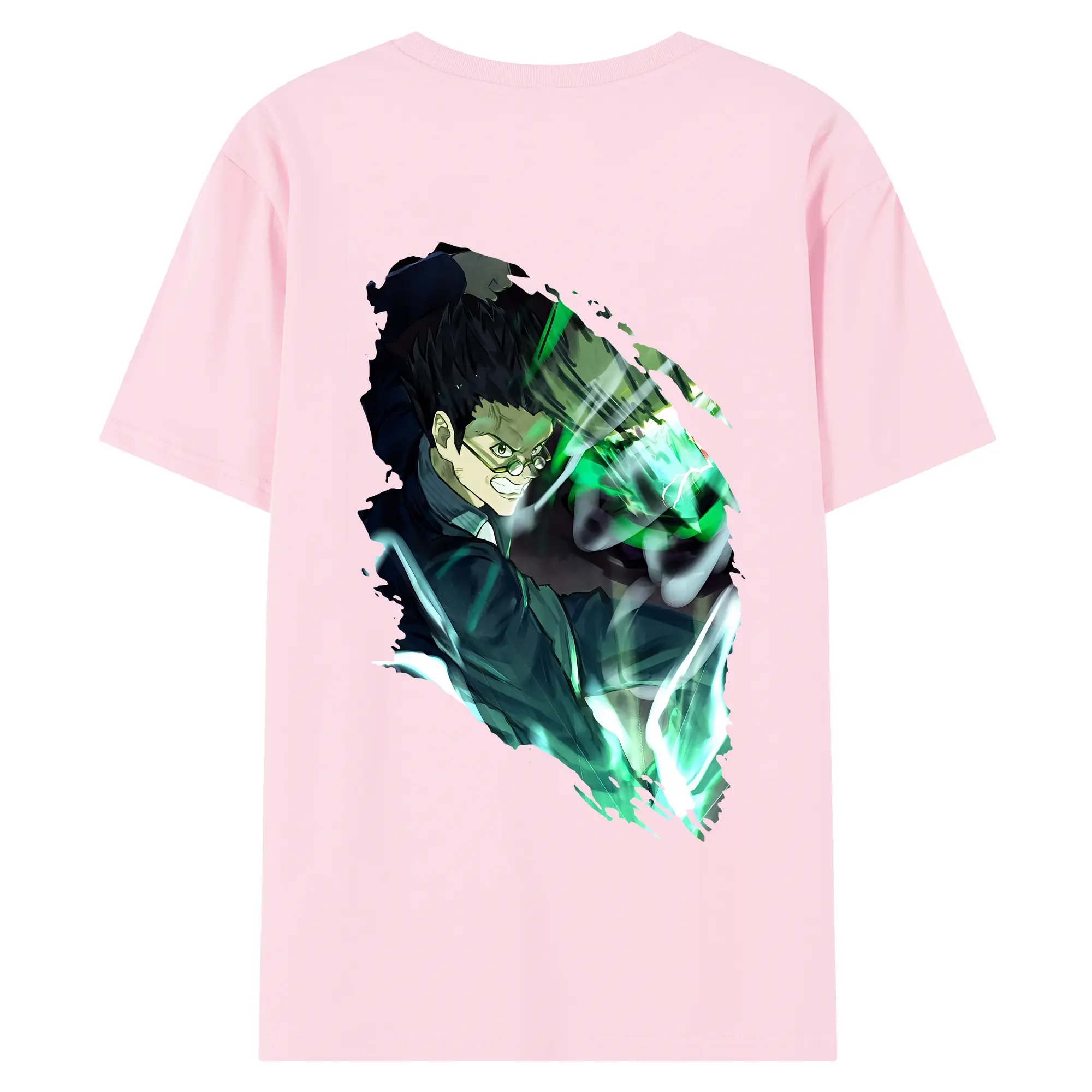 ハンター×ハンター グッズ レオリオ=パラディナイト - 綿100% 半袖Tシャツ ・ フロントプリント ・ 快適 通気性 ・ 日常使い 散歩 スポーツ用