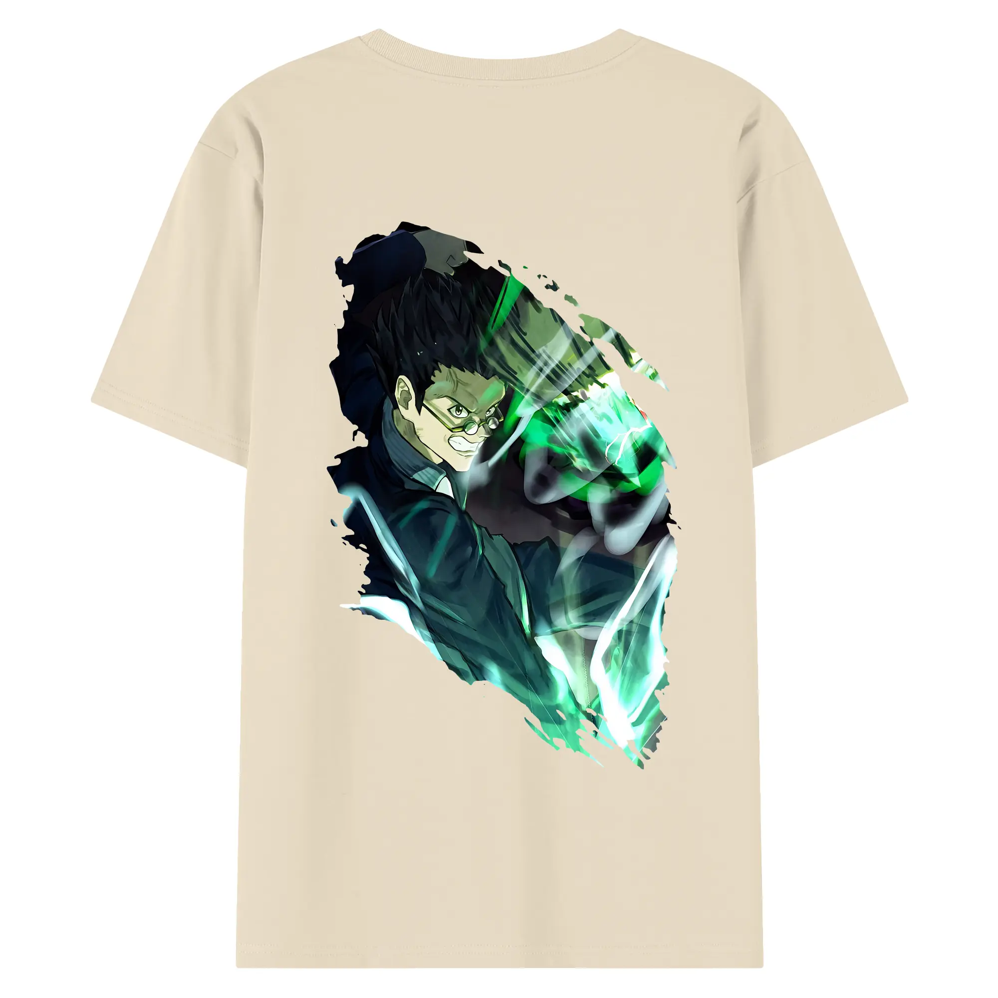 ハンター×ハンター グッズ レオリオ=パラディナイト - 綿100% 半袖Tシャツ ・ バックプリント ・ 快適 通気性 ・ 日常使い 散歩 スポーツ用