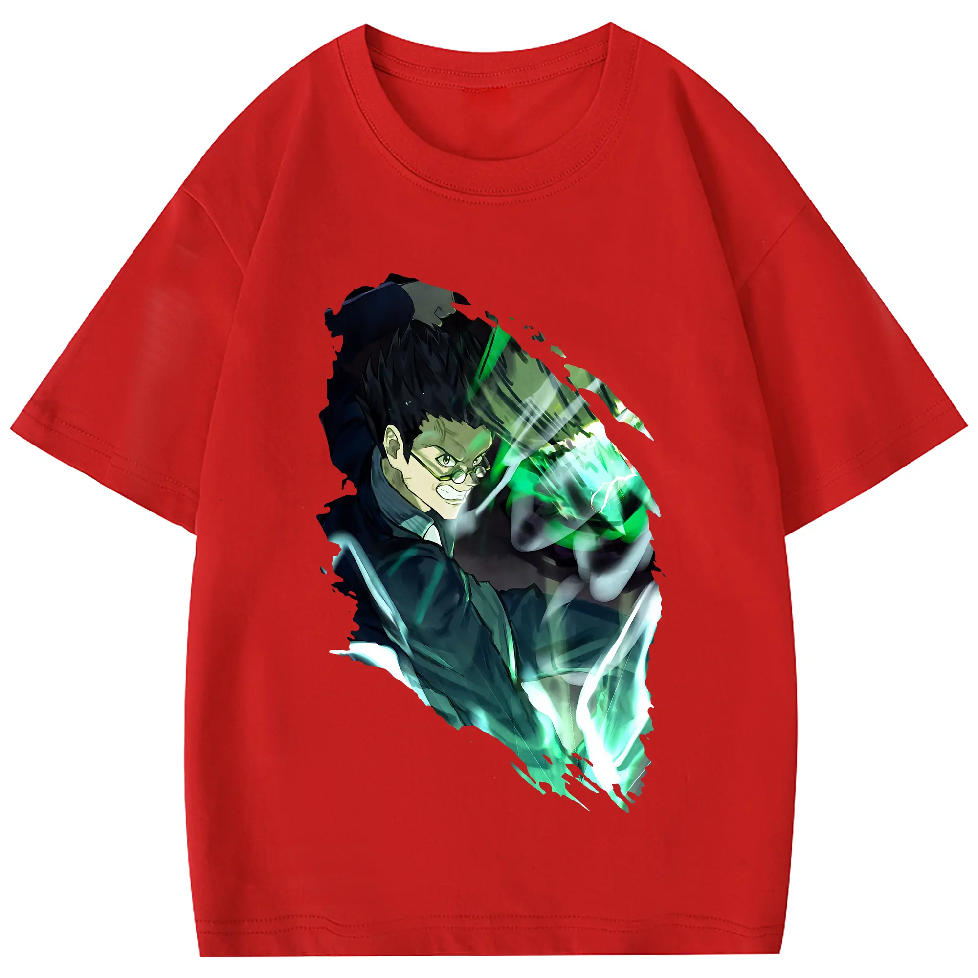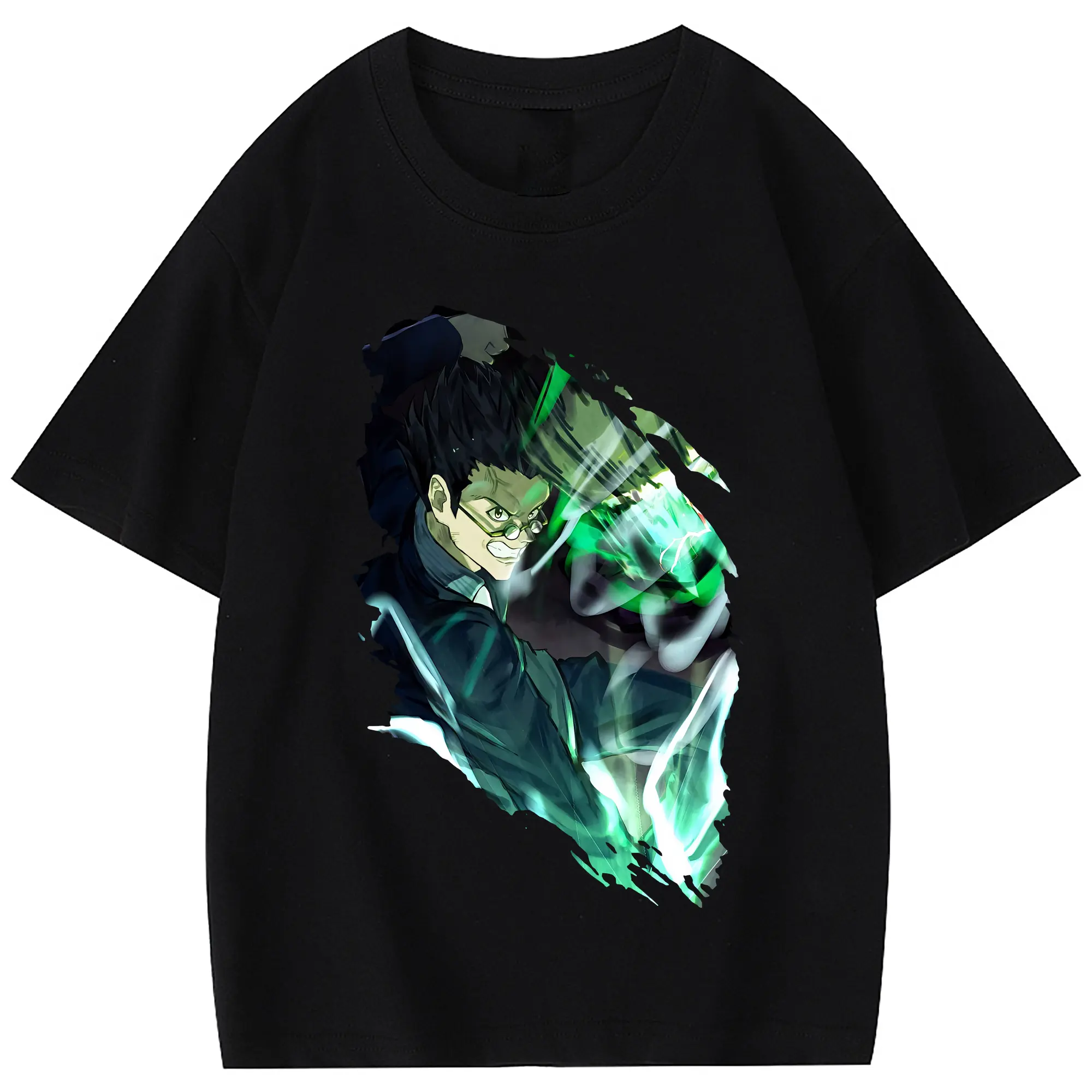 ハンター×ハンター グッズ レオリオ=パラディナイト - 綿100% 半袖Tシャツ ・ フロントプリント ・ 快適 通気性 ・ 日常使い 散歩 スポーツ用