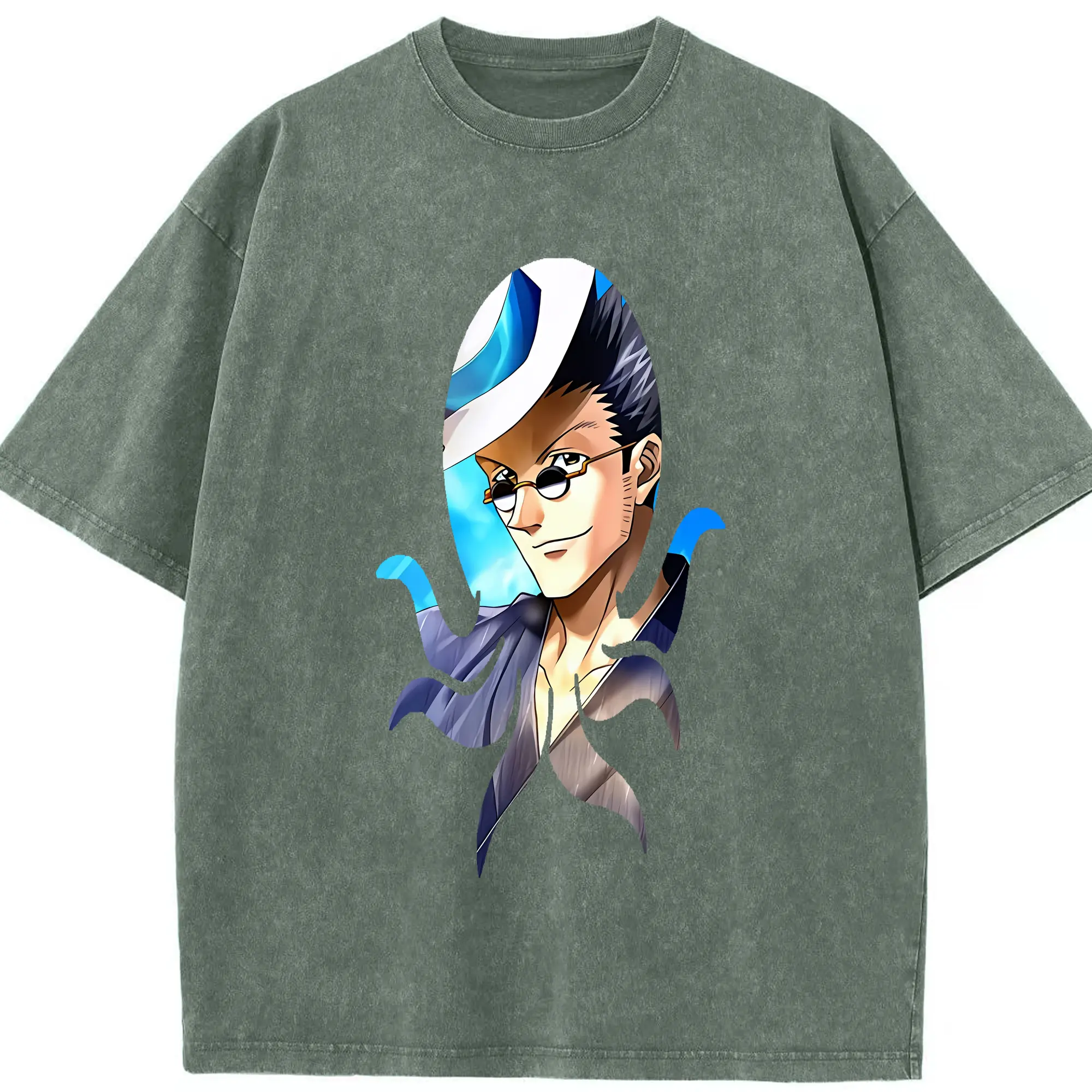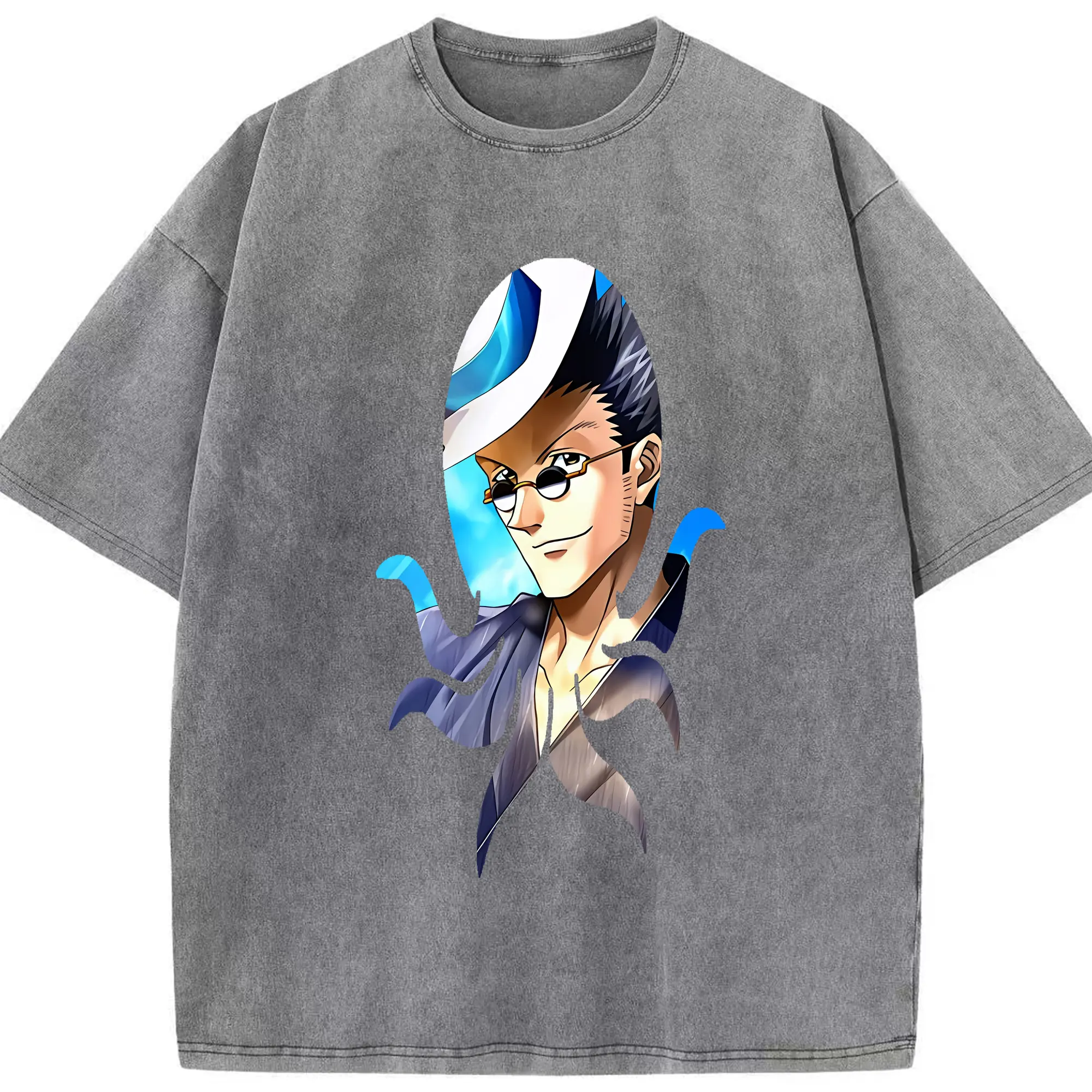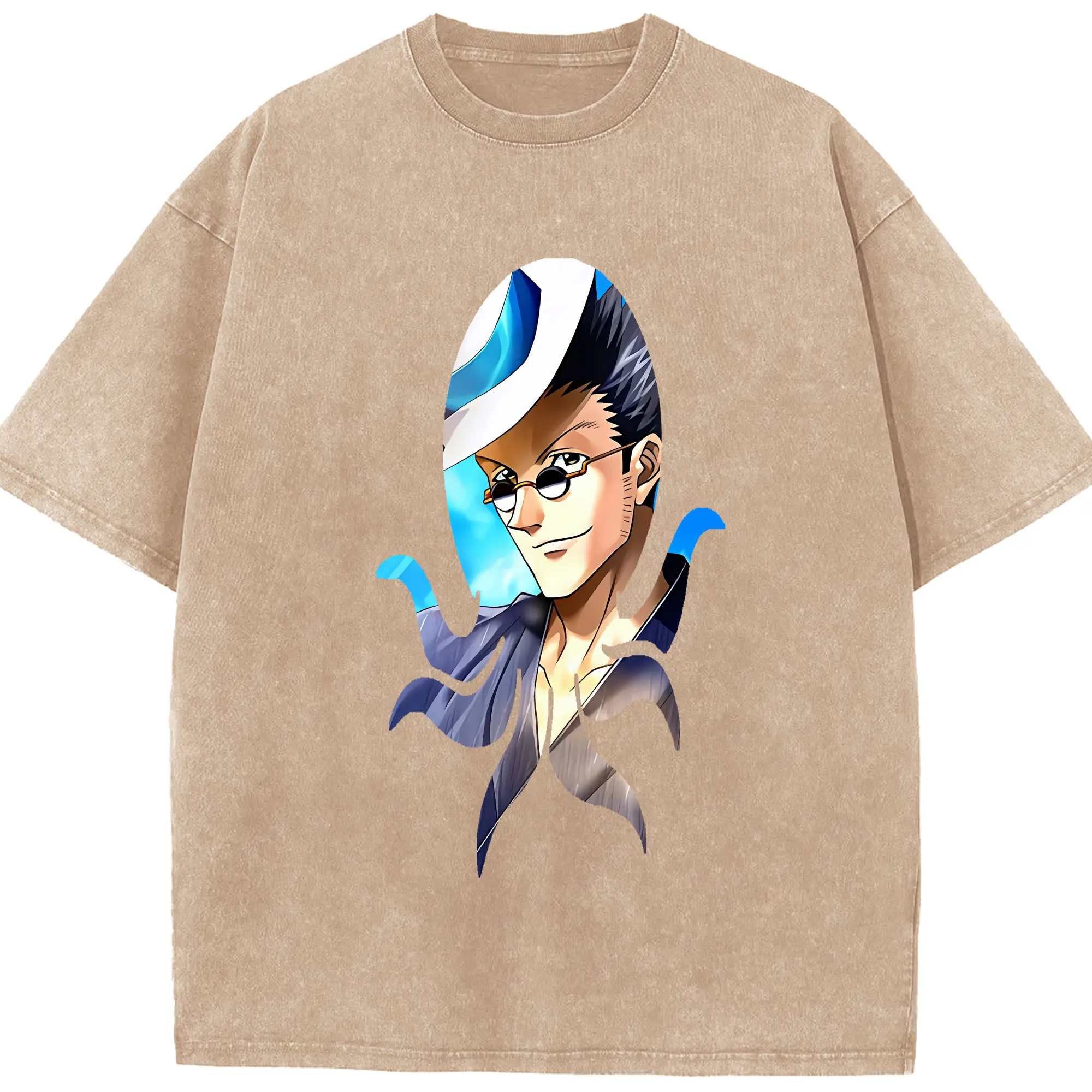 ハンター×ハンター グッズ レオリオ=パラディナイト - 綿100% ヴィンテージ風 半袖Tシャツ ・ 背面プリント ・ 柔らか肌触り ・ 通気性 快適 ・ スポーツ カジュアル 外出用