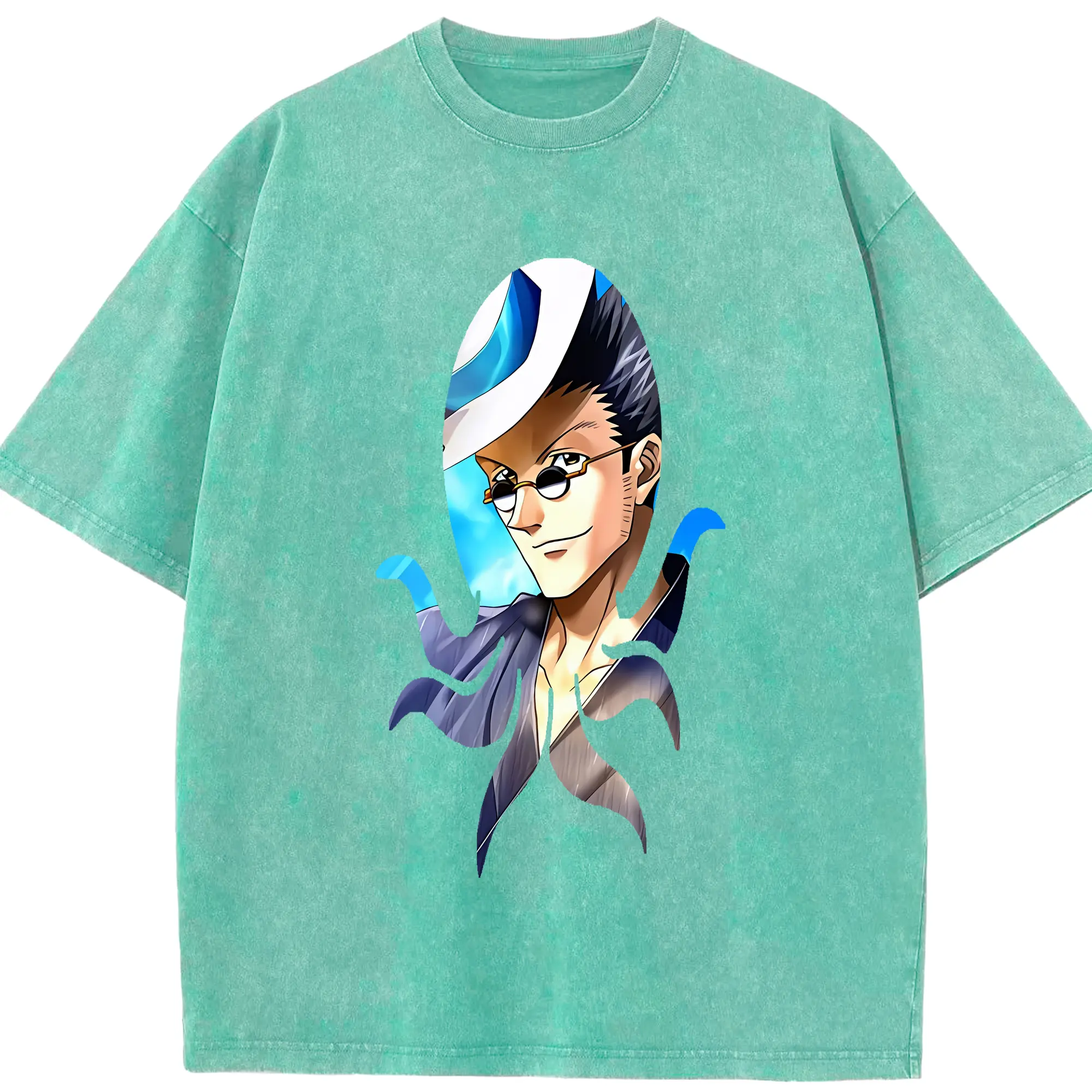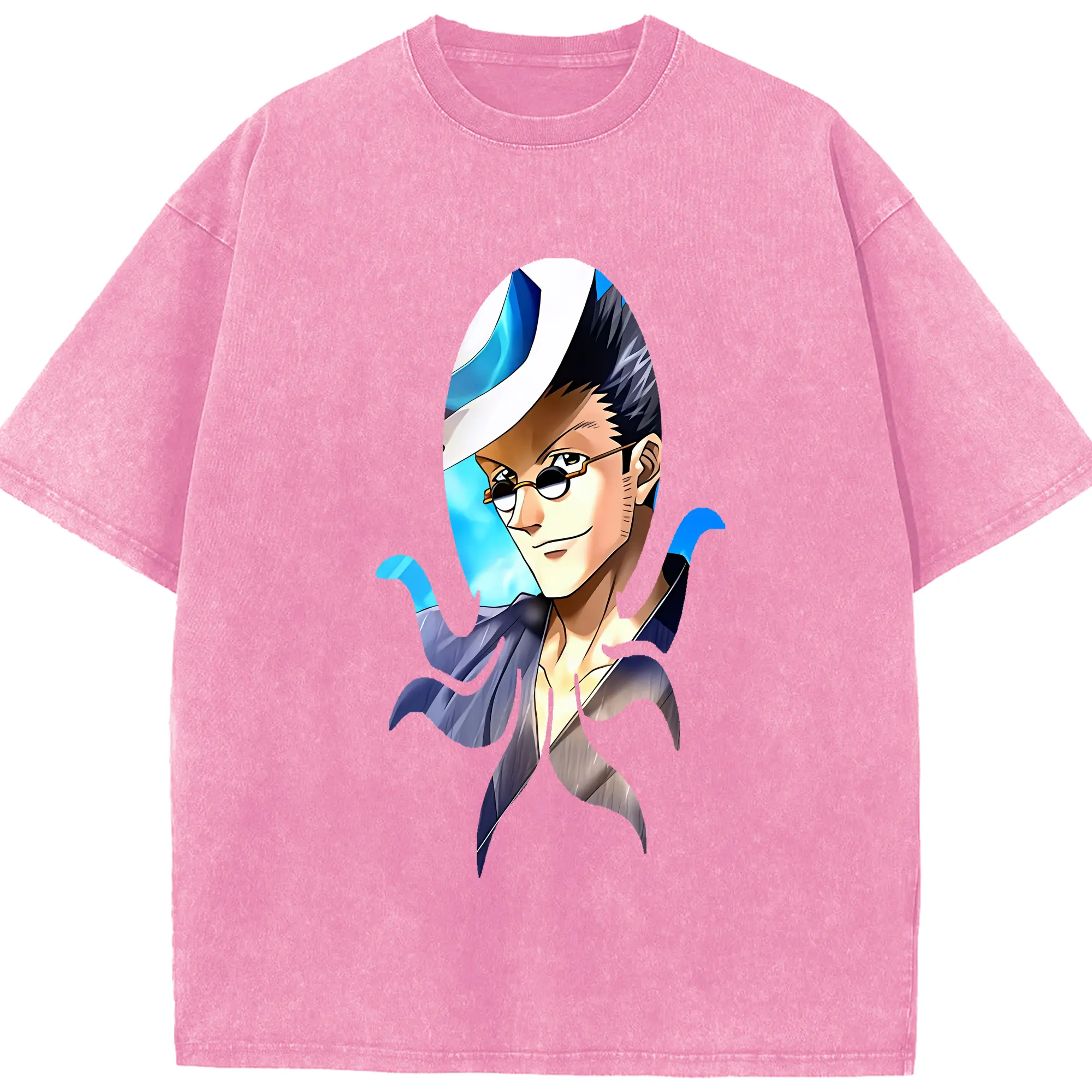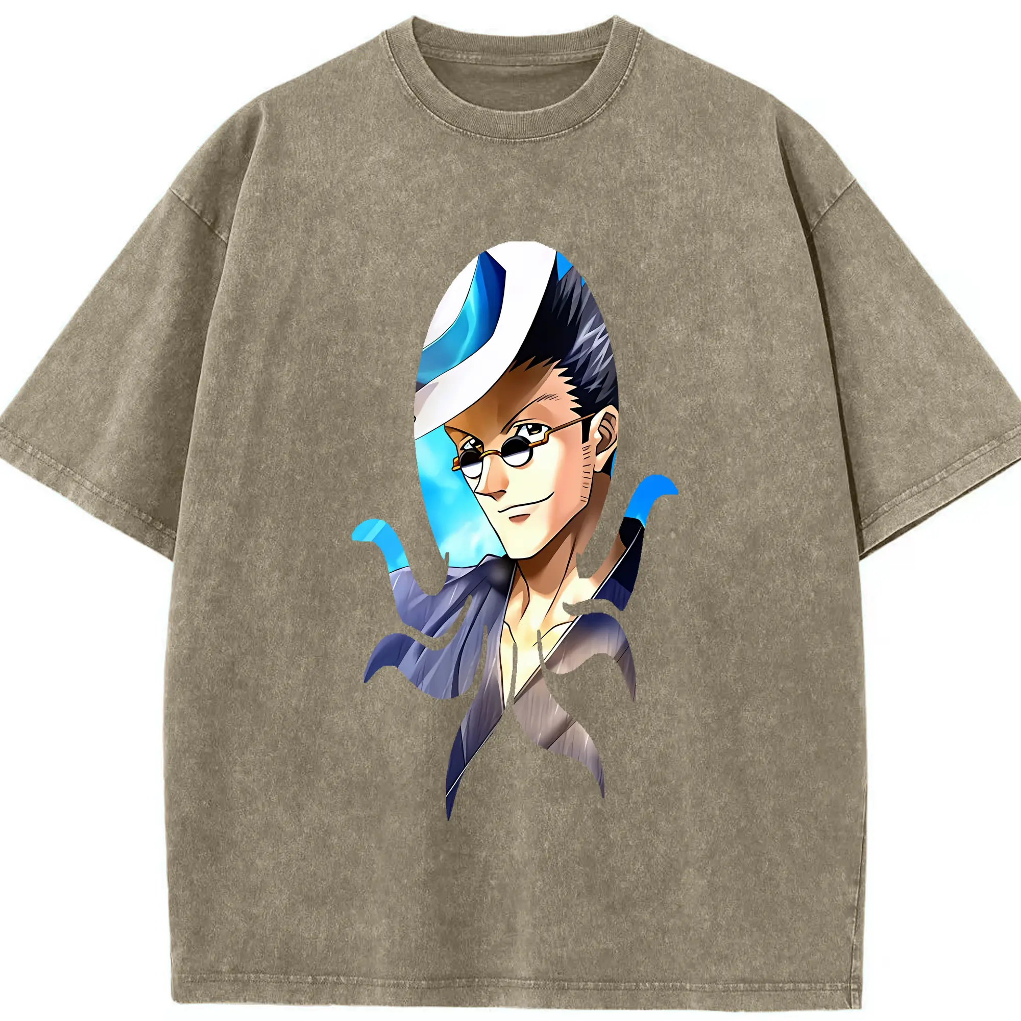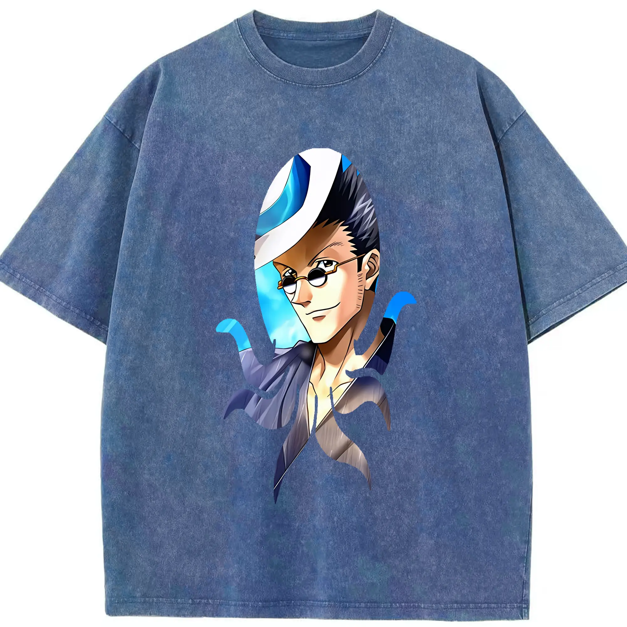 ハンター×ハンター グッズ レオリオ=パラディナイト - 綿100% ヴィンテージ風 半袖Tシャツ ・ 背面プリント ・ 柔らか肌触り ・ 通気性 快適 ・ スポーツ カジュアル 外出用