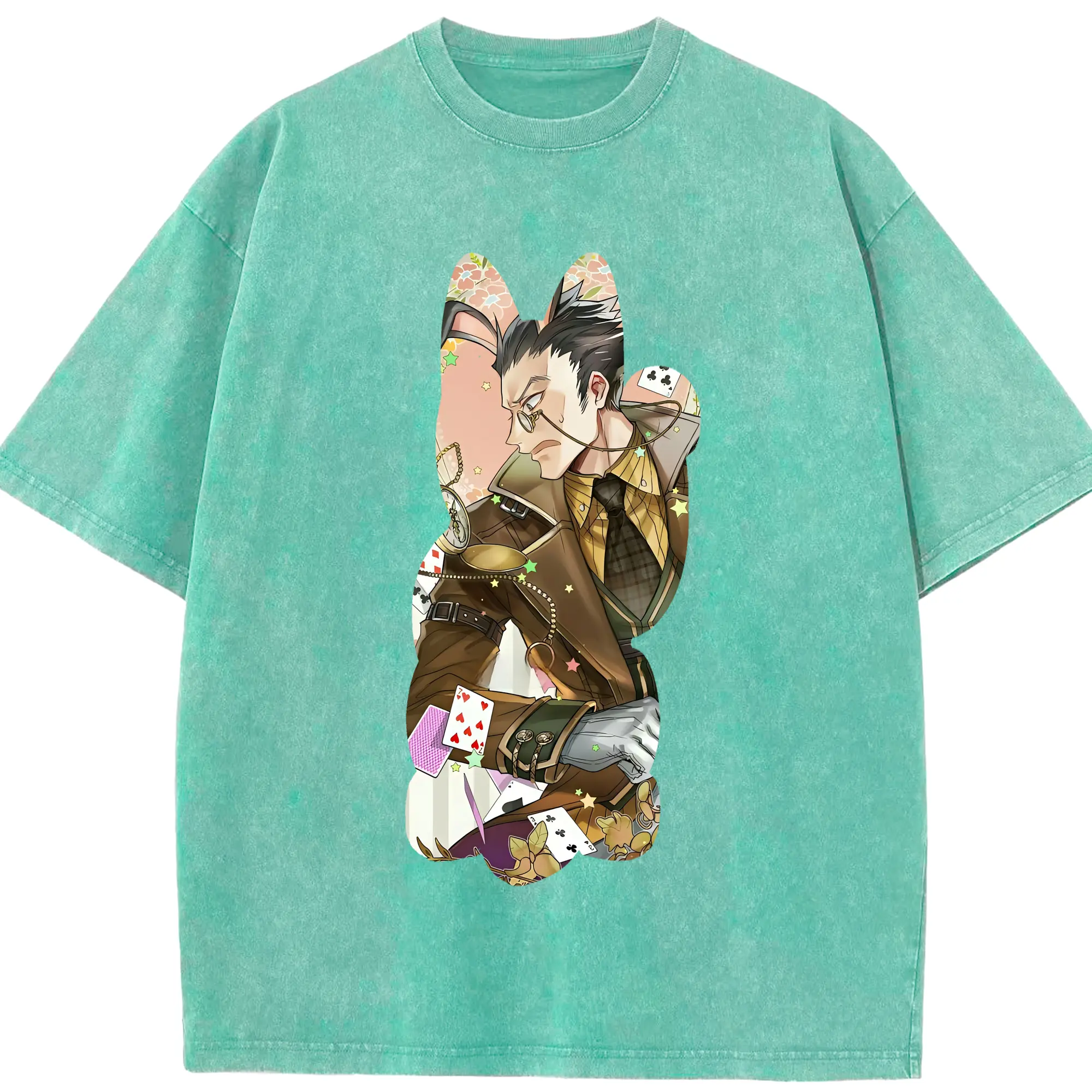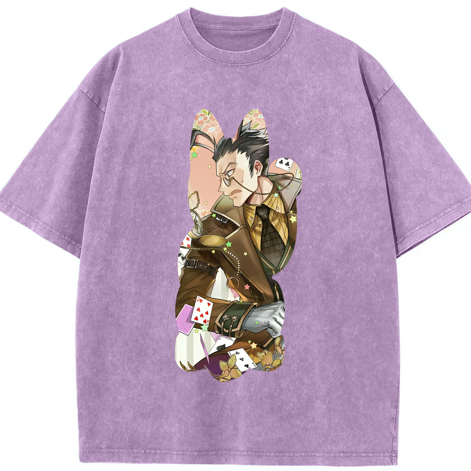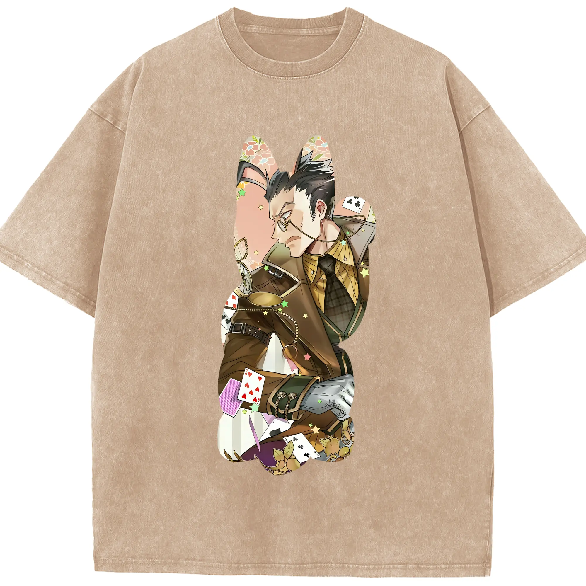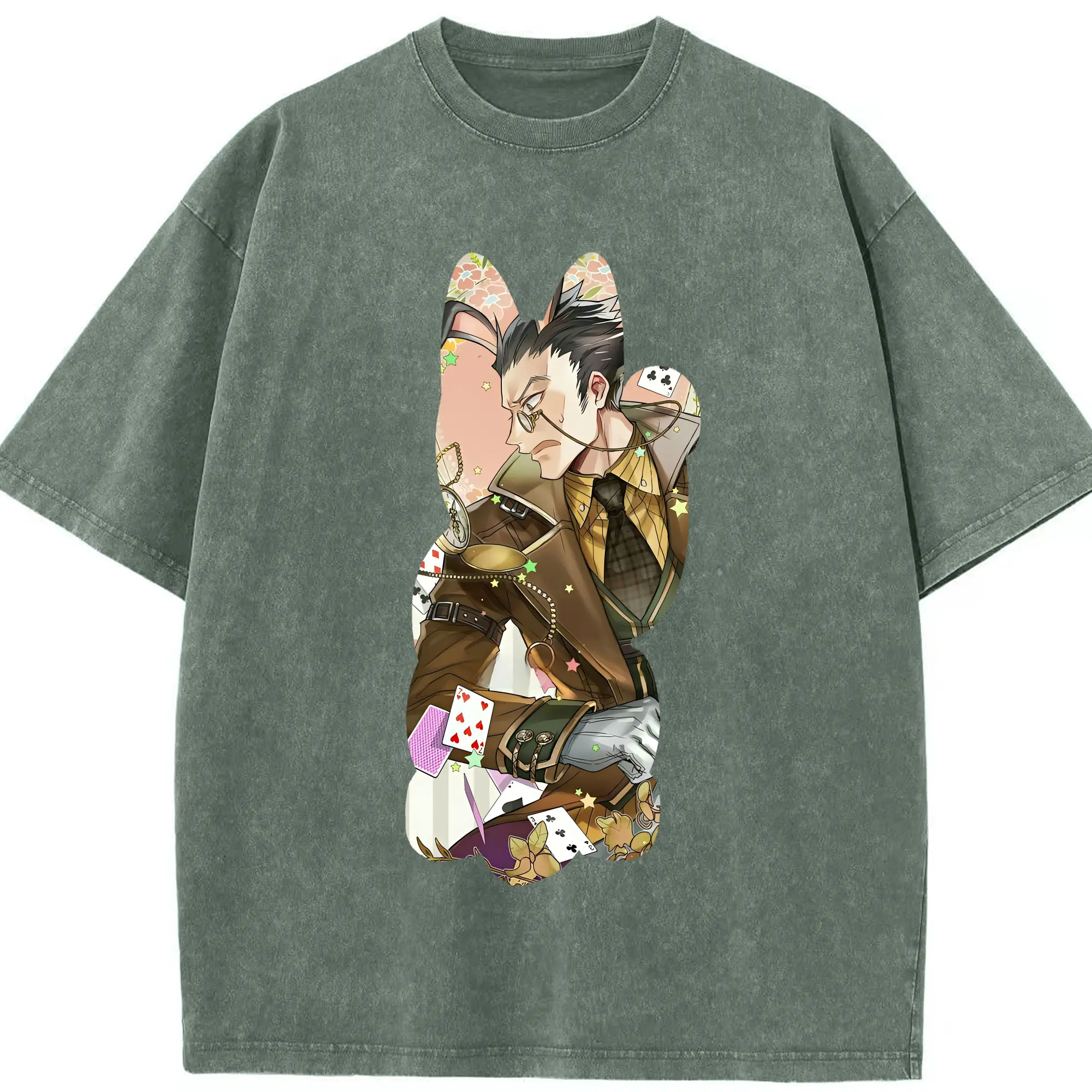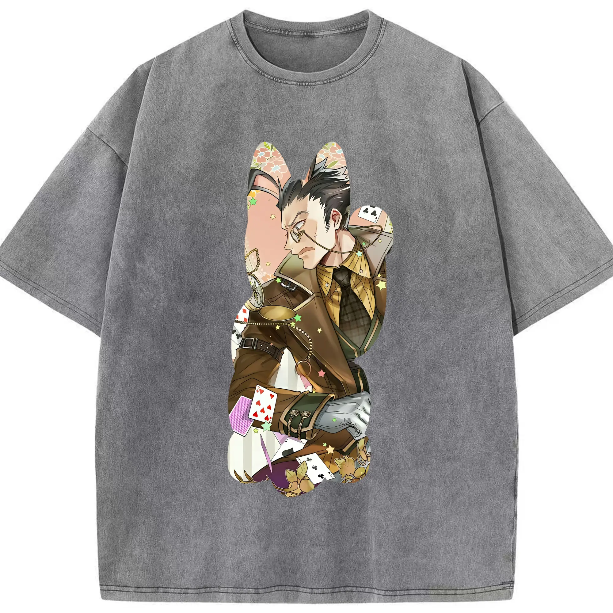 ハンター×ハンター グッズ レオリオ=パラディナイト - 綿100% ヴィンテージ風 半袖Tシャツ ・ 背面プリント ・ 柔らか肌触り ・ 通気性 快適 ・ スポーツ カジュアル 外出用