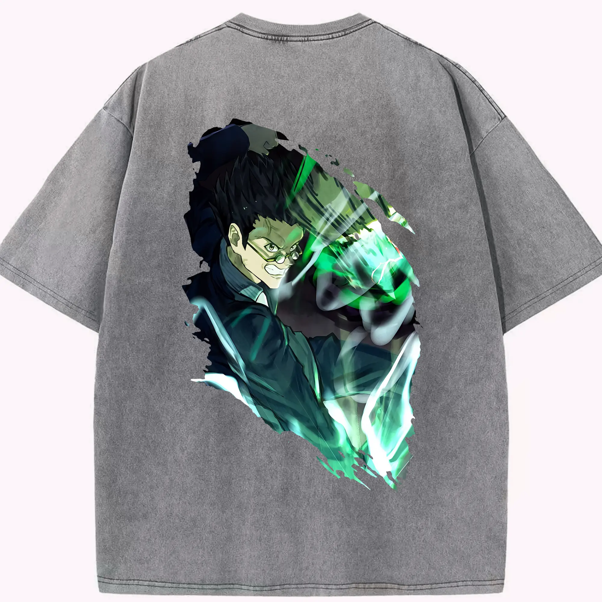 ハンター×ハンター グッズ レオリオ=パラディナイト - 綿100% ヴィンテージ風 半袖Tシャツ ・ フロントプリント ・ 柔らか肌触り ・ 通気性 快適 ・ スポーツ カジュアル 外出用