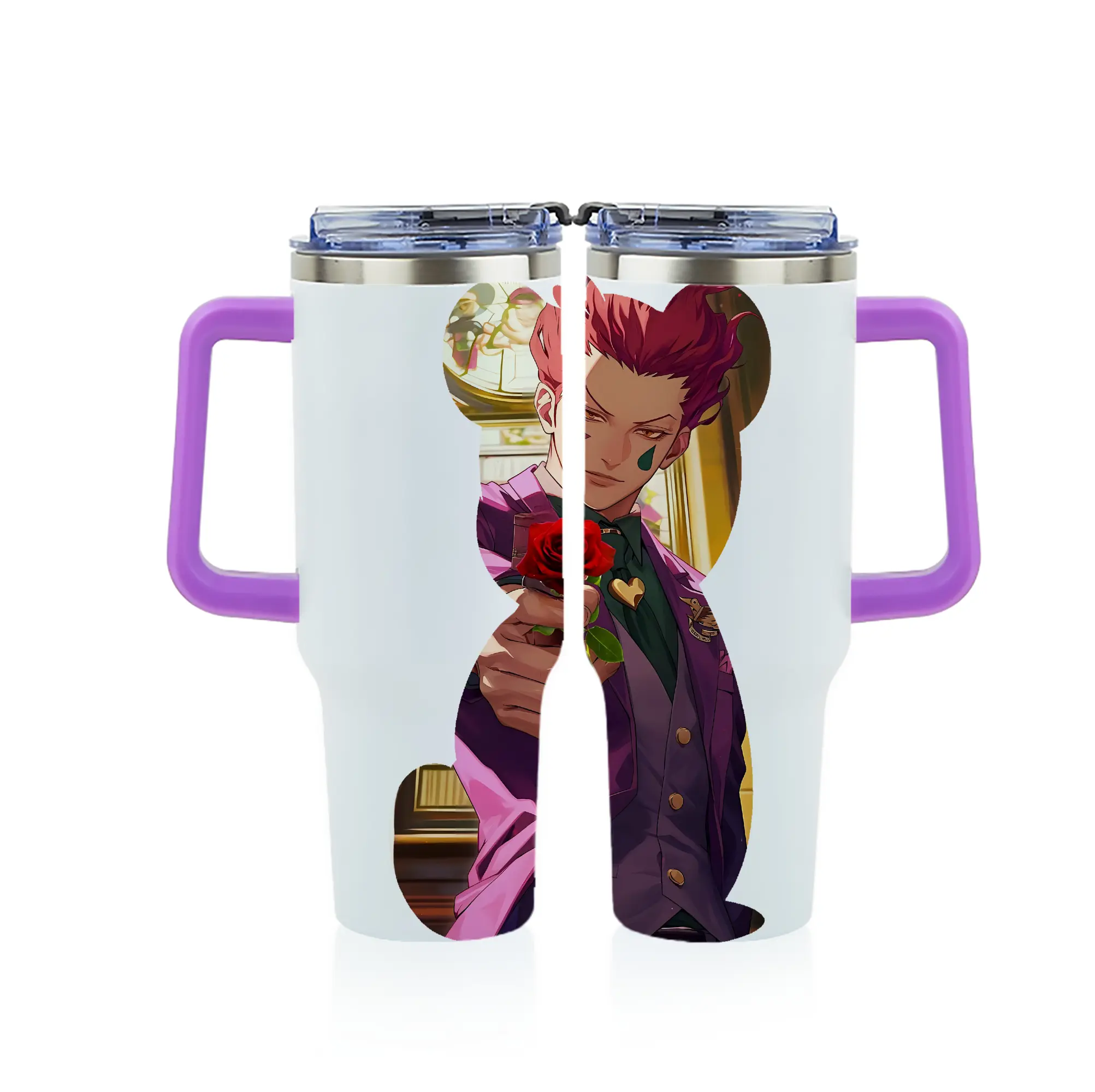 ハンター×ハンター グッズ ヒソカ=モロウ - 1200mL フルプリント車用タンブラー ・ 304ステンレス 内側 ・ 201ステンレス 外側 ・ 保温 保冷 ・ 通勤 ドライブ アウトドア用