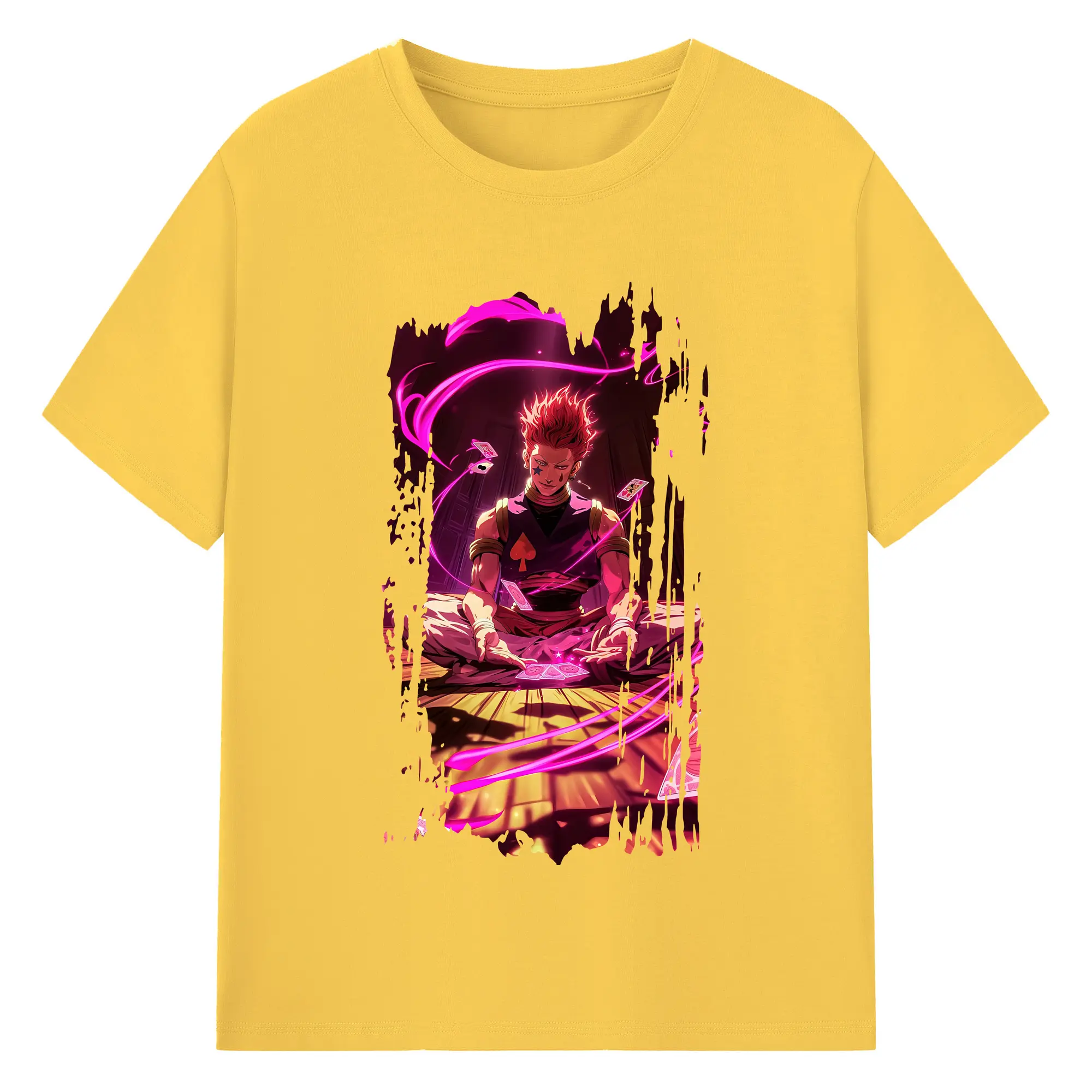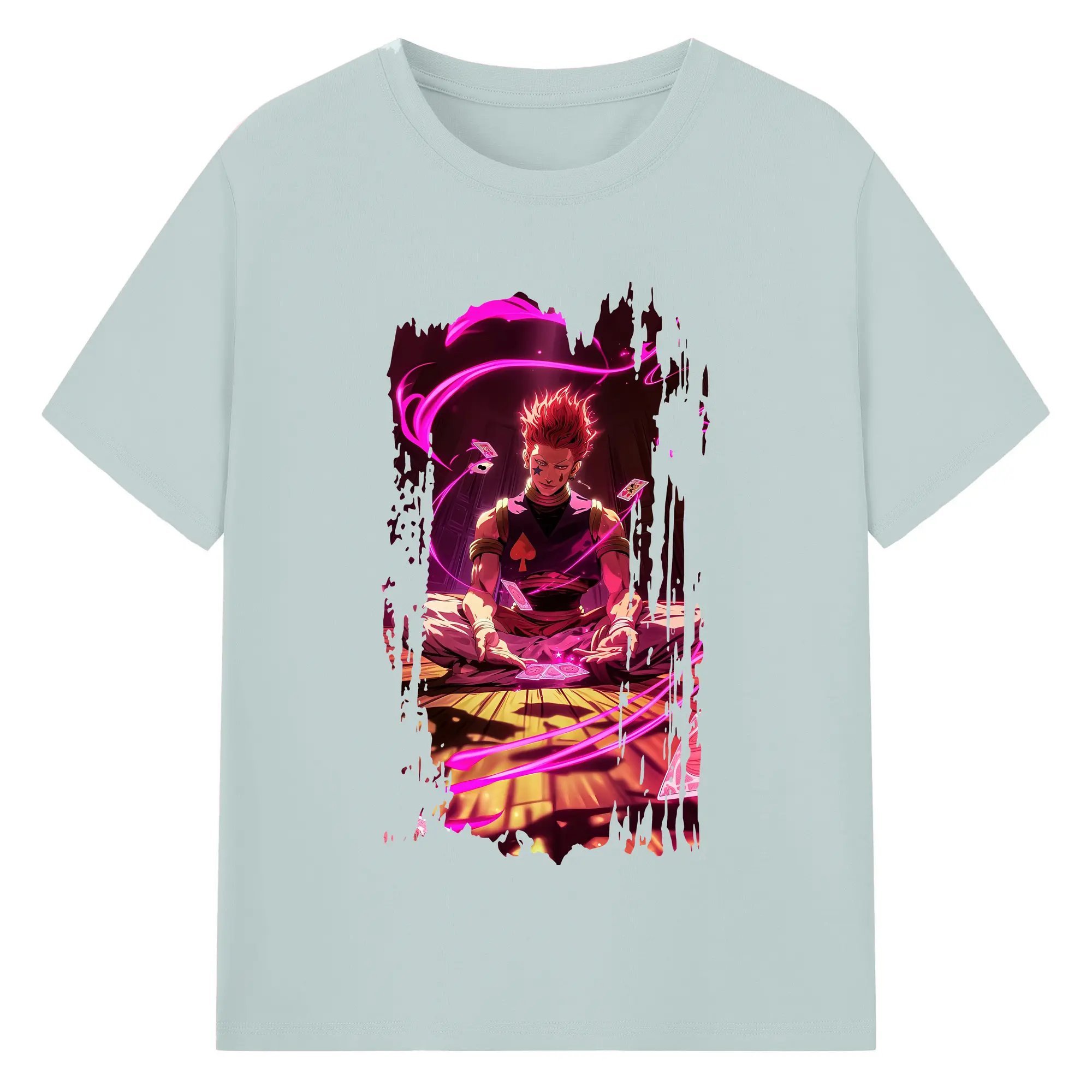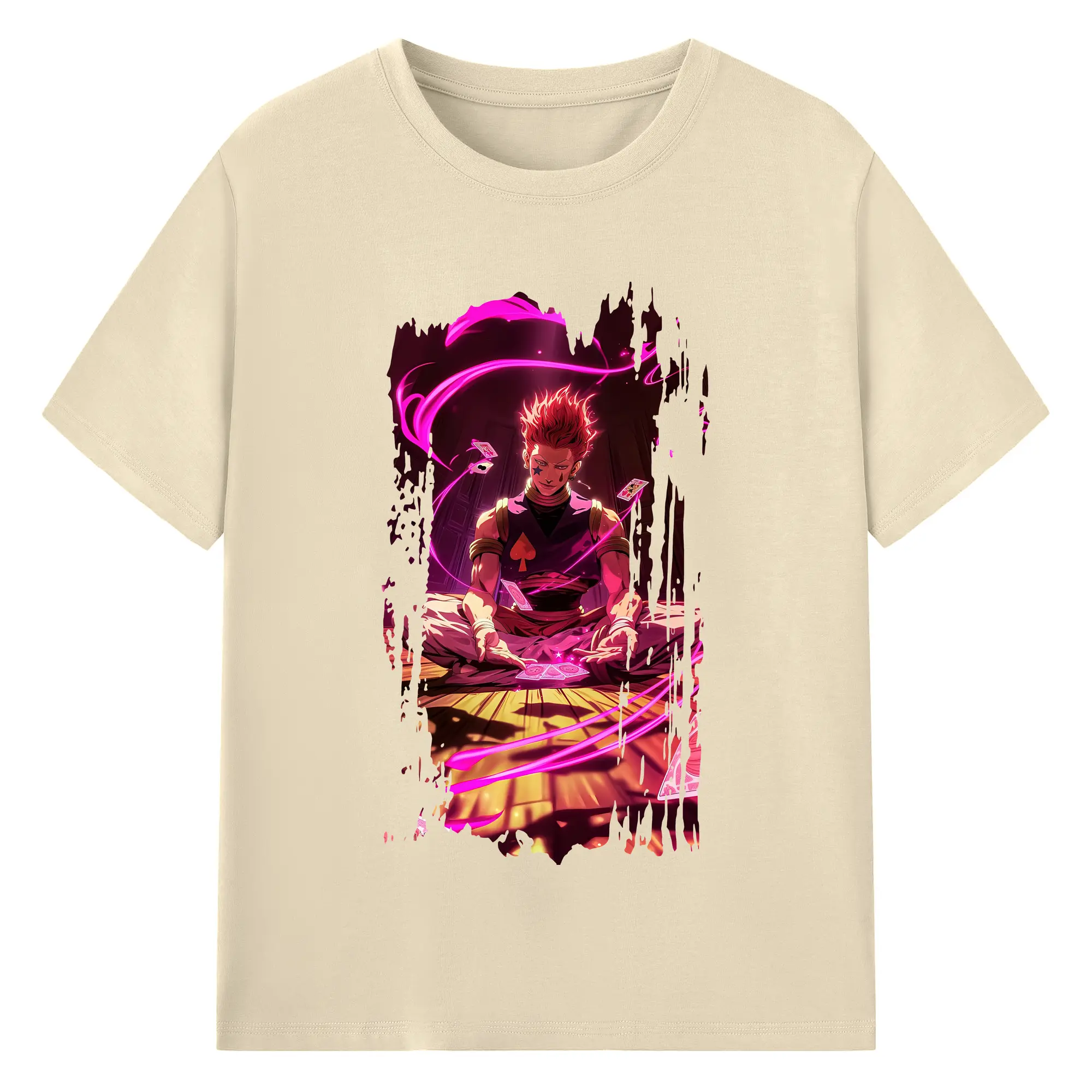 ハンター×ハンター グッズ ヒソカ=モロウ - 綿100% ヴィンテージ風 半袖Tシャツ ・ フロントプリント ・ 柔らか肌触り ・ 通気性 快適 ・ スポーツ カジュアル 外出用