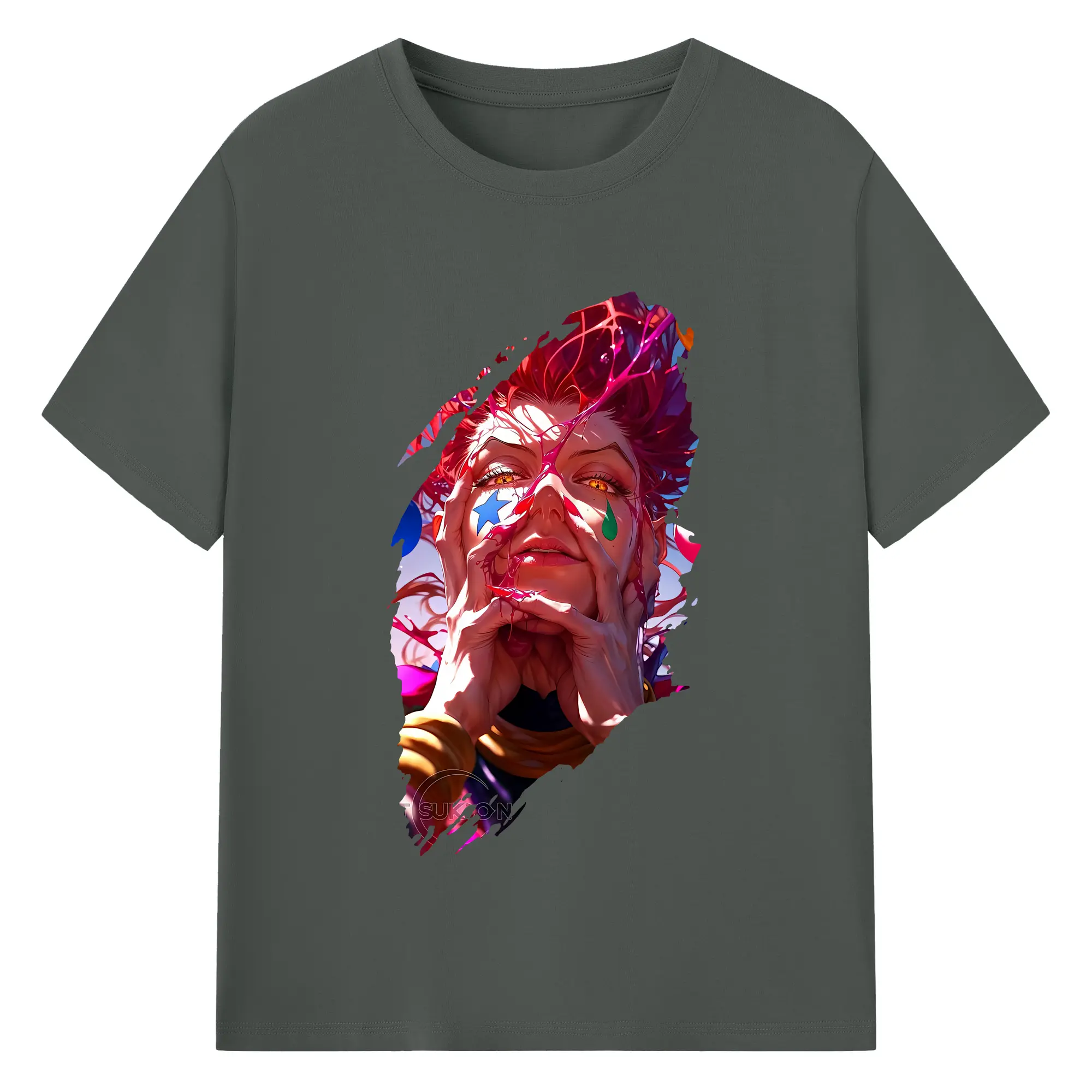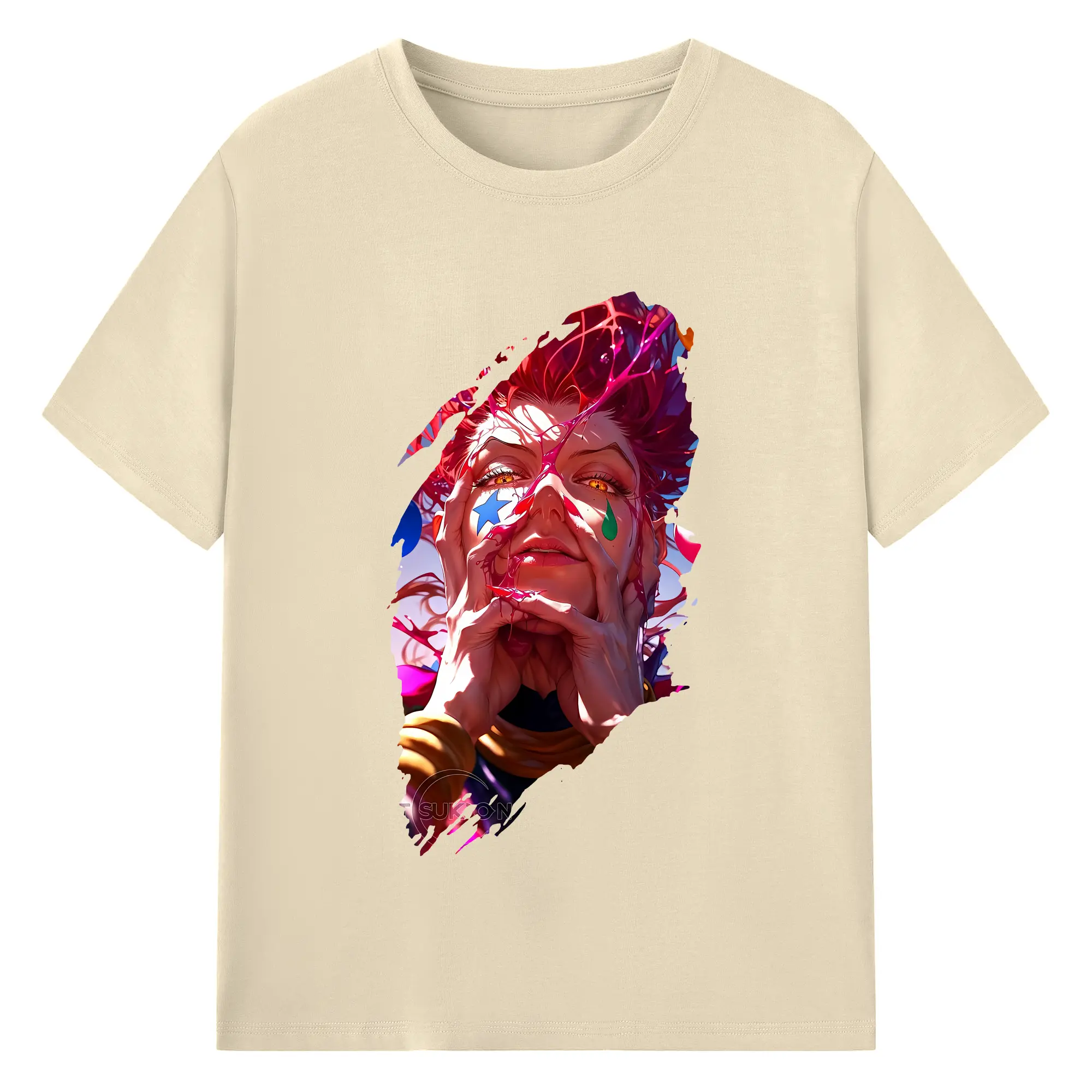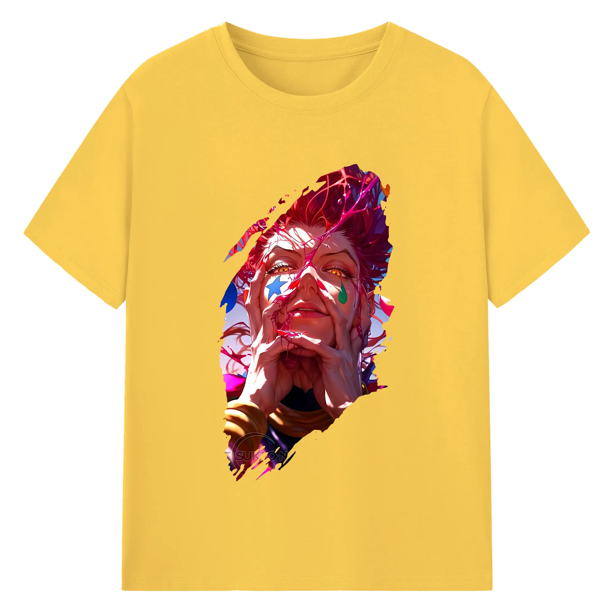 ハンター×ハンター グッズ ヒソカ=モロウ - 綿100% ヴィンテージ風 半袖Tシャツ ・ フロントプリント ・ 柔らか肌触り ・ 通気性 快適 ・ スポーツ カジュアル 外出用