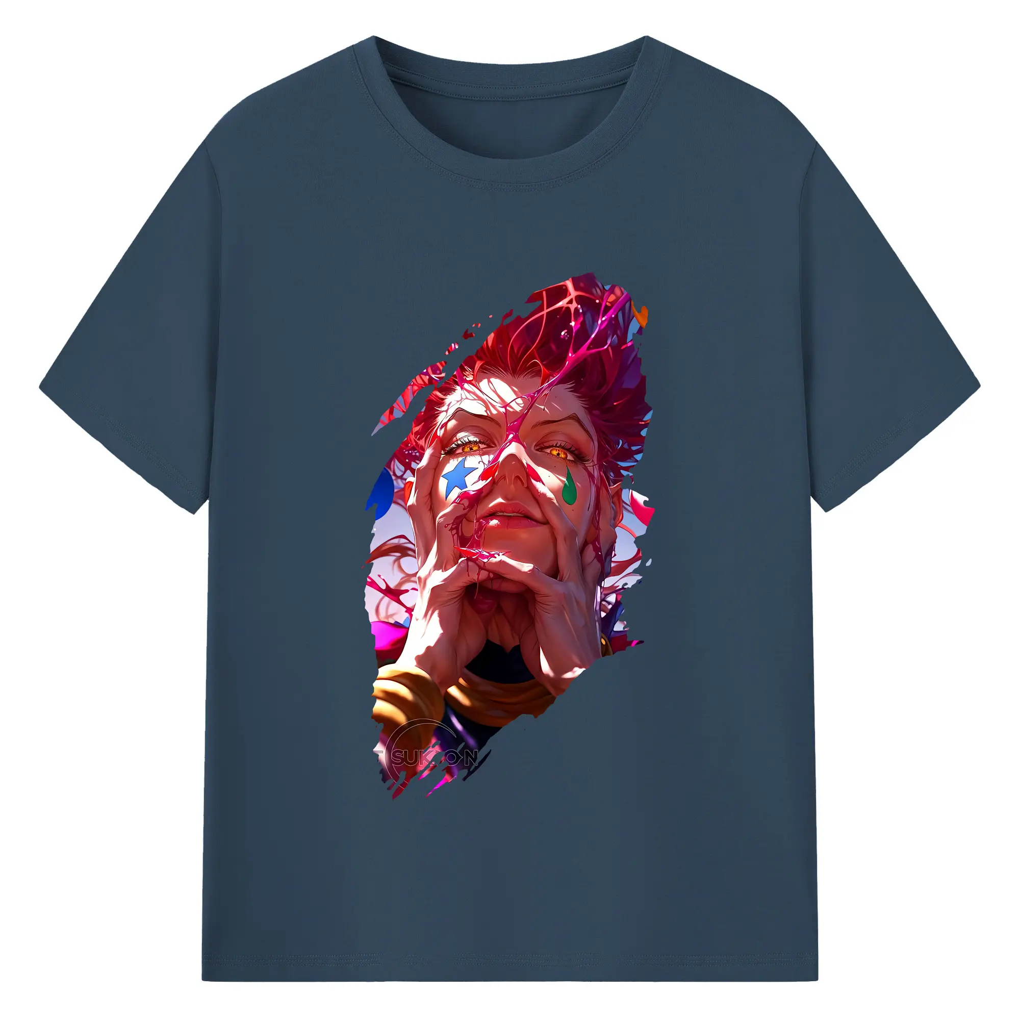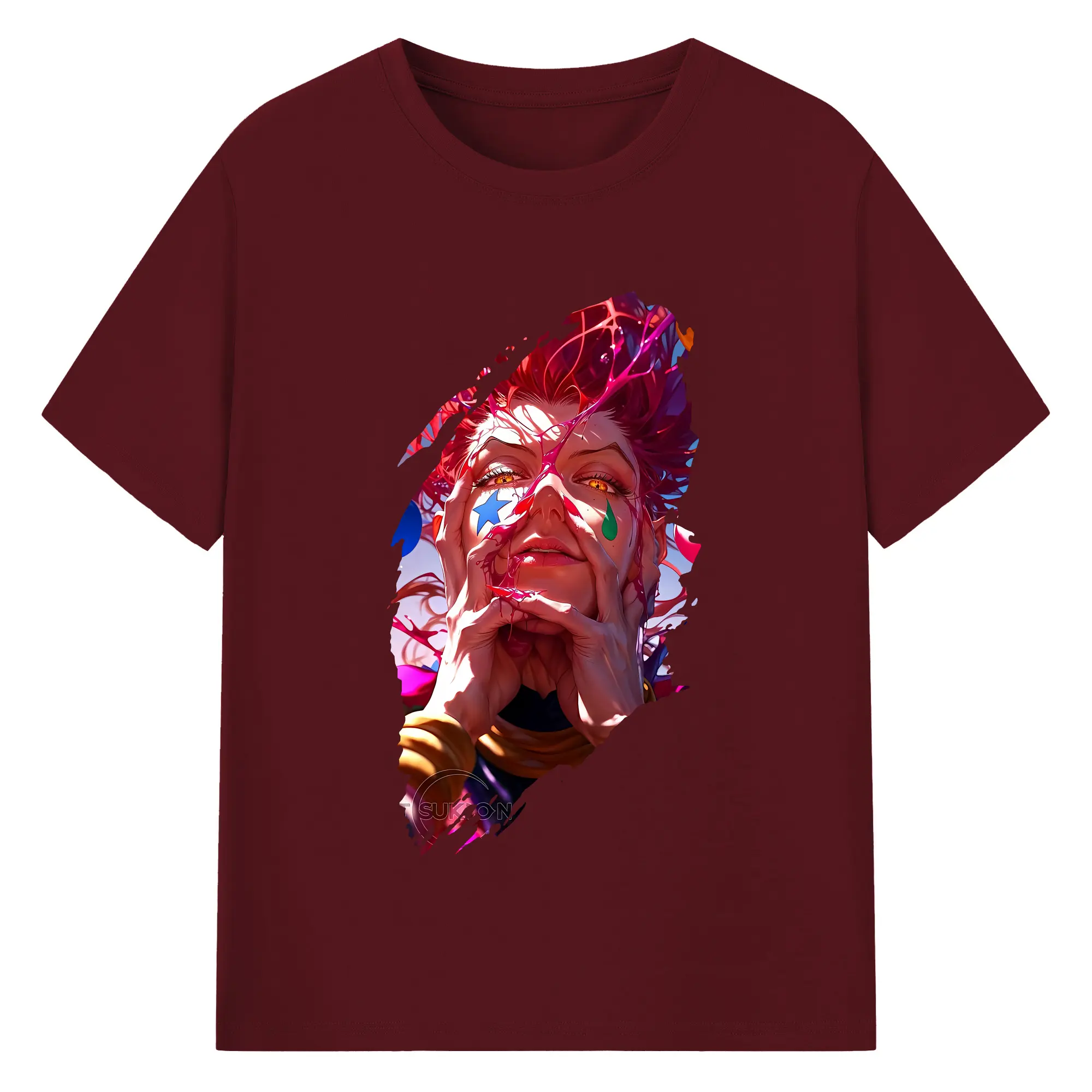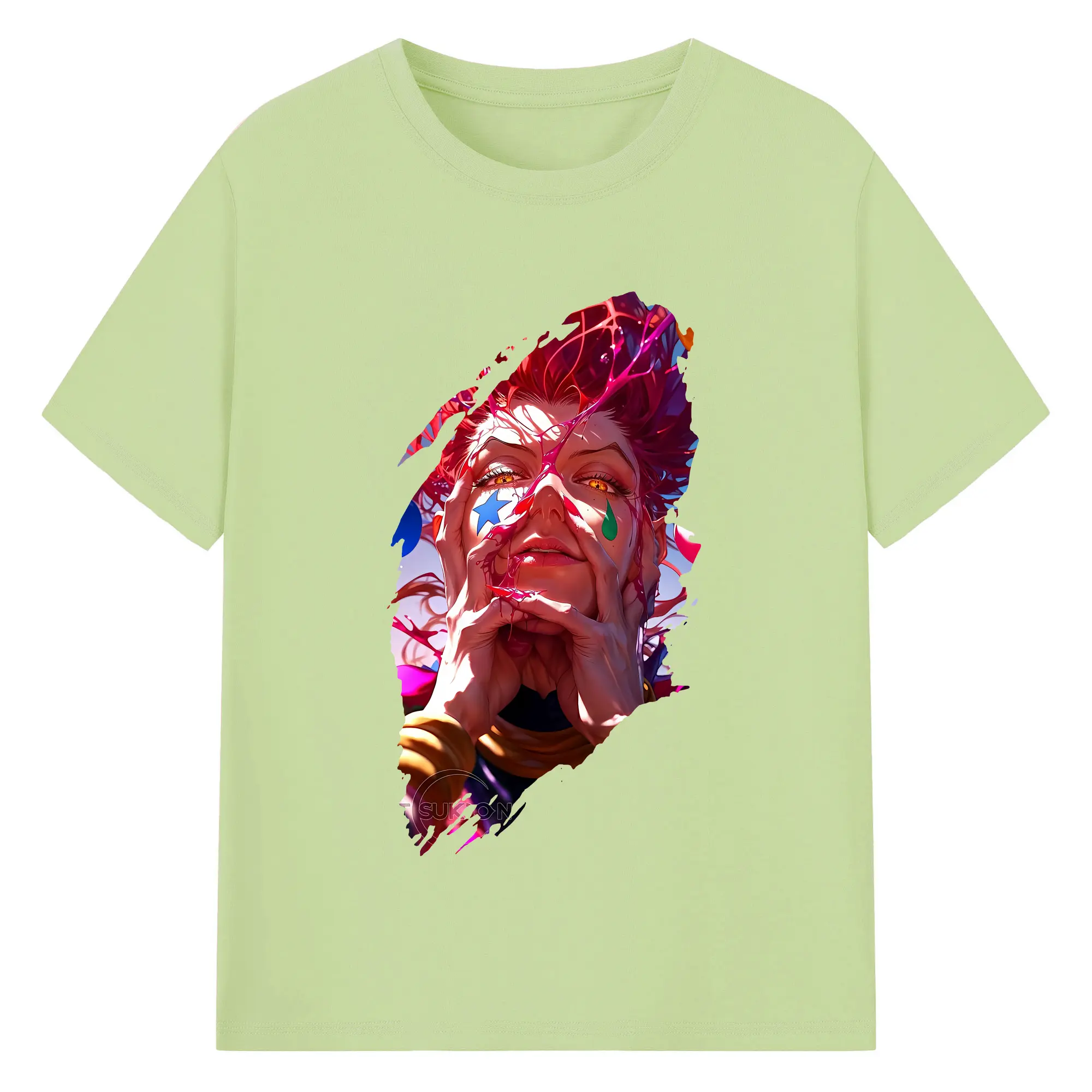 ハンター×ハンター グッズ ヒソカ=モロウ - 綿100% ヴィンテージ風 半袖Tシャツ ・ フロントプリント ・ 柔らか肌触り ・ 通気性 快適 ・ スポーツ カジュアル 外出用