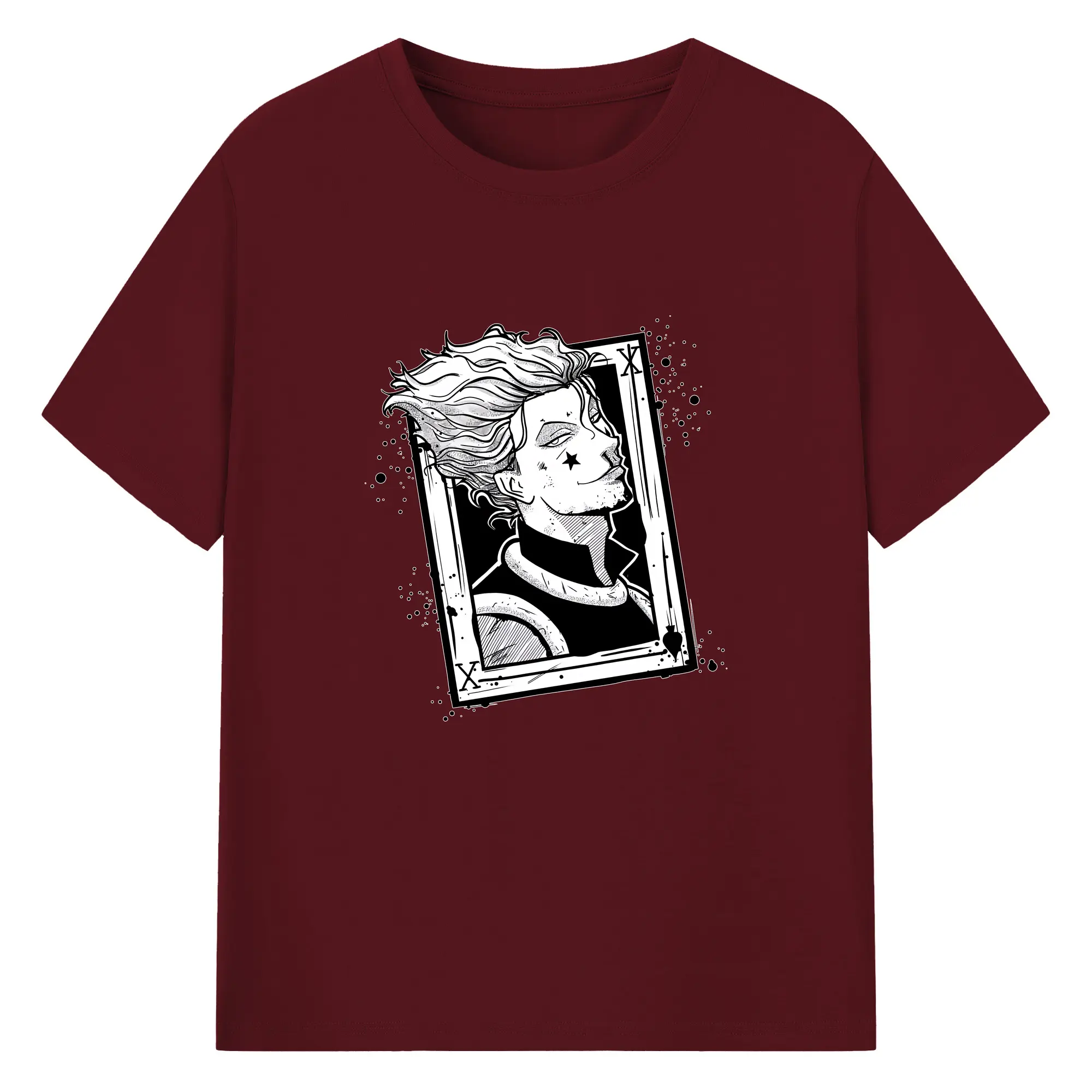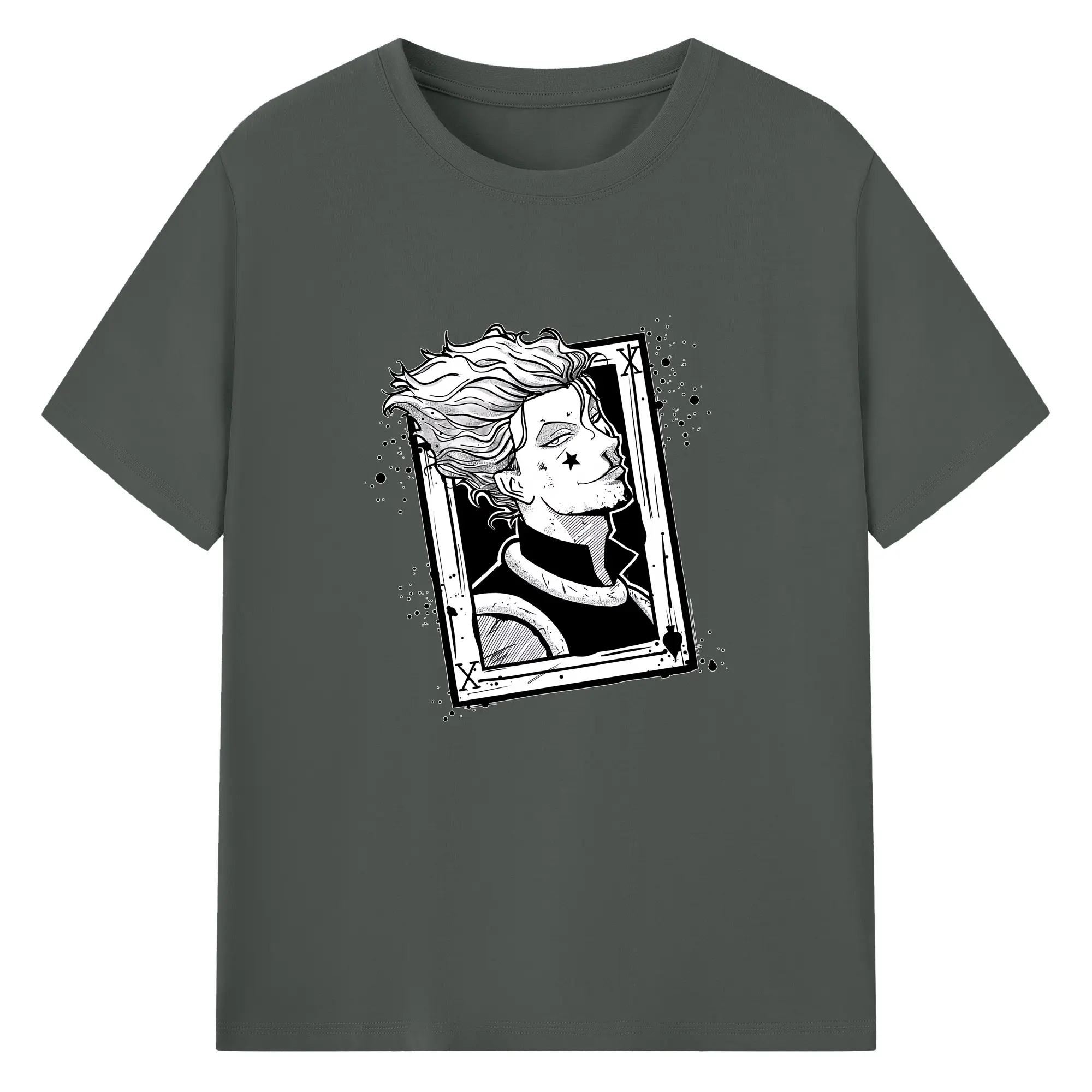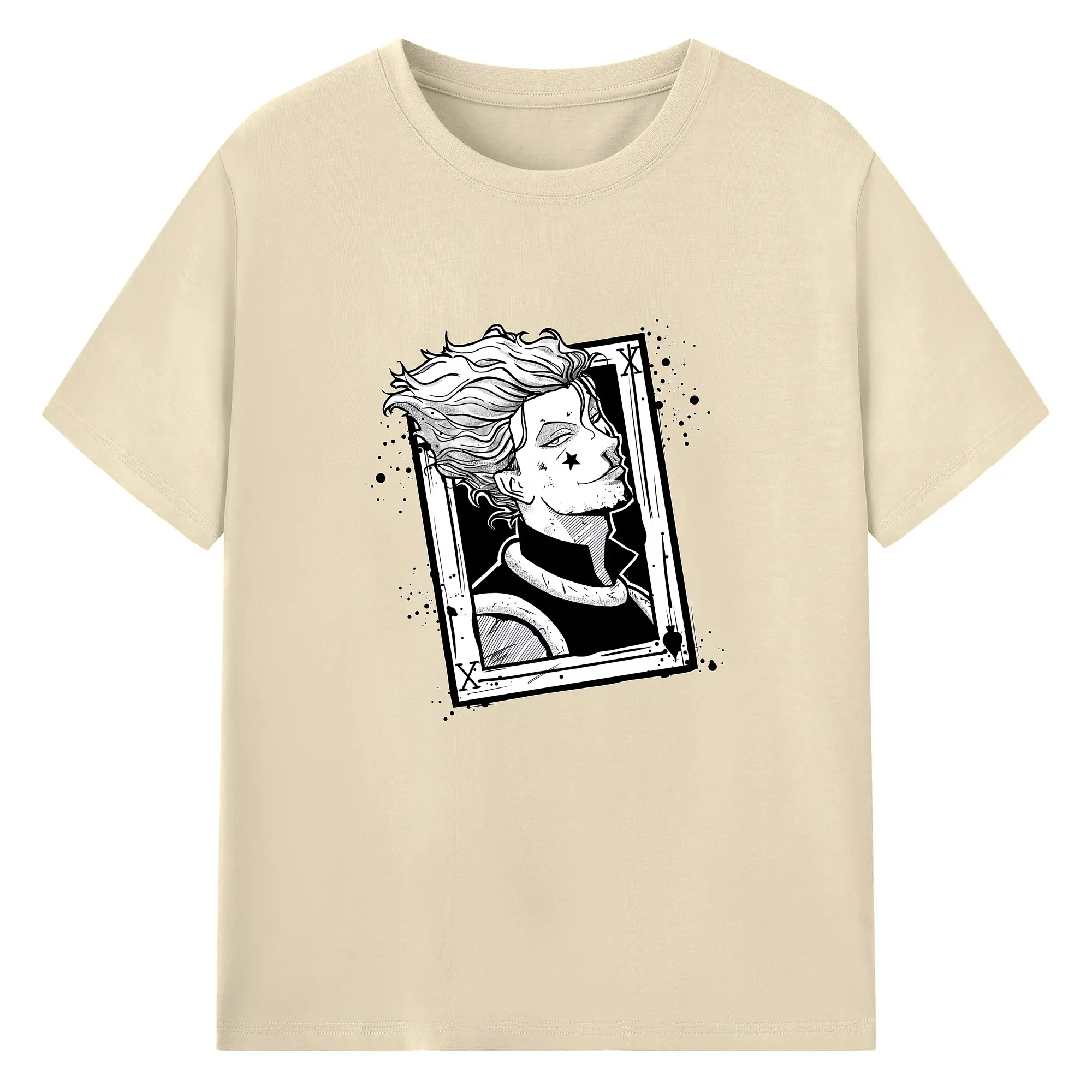 ハンター×ハンター グッズ ヒソカ=モロウ - 綿100% ヴィンテージ風 半袖Tシャツ ・ フロントプリント ・ 柔らか肌触り ・ 通気性 快適 ・ スポーツ カジュアル 外出用