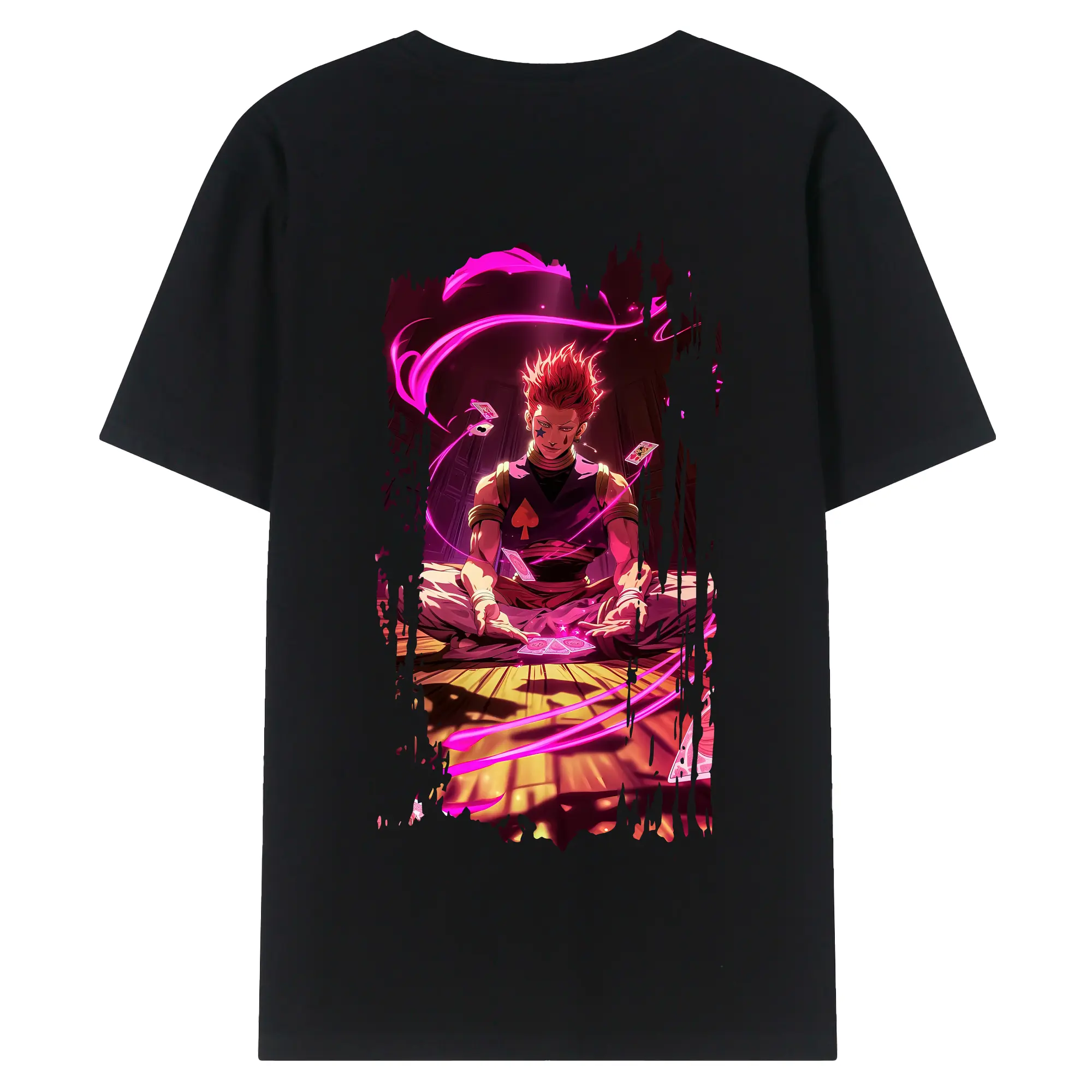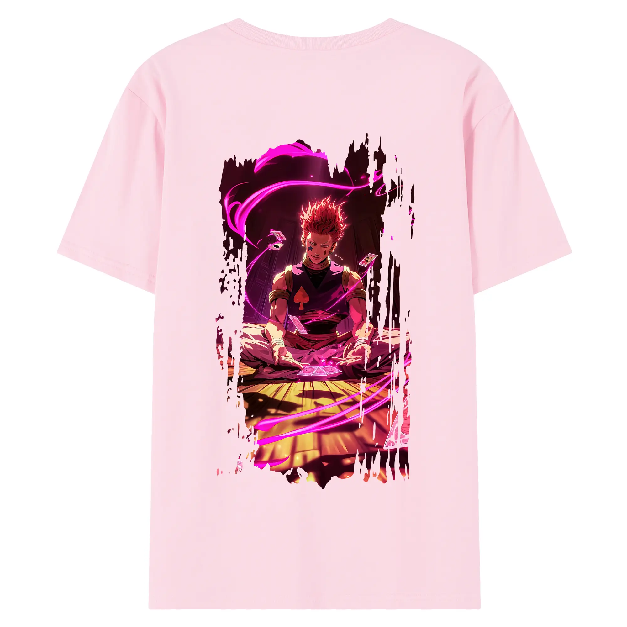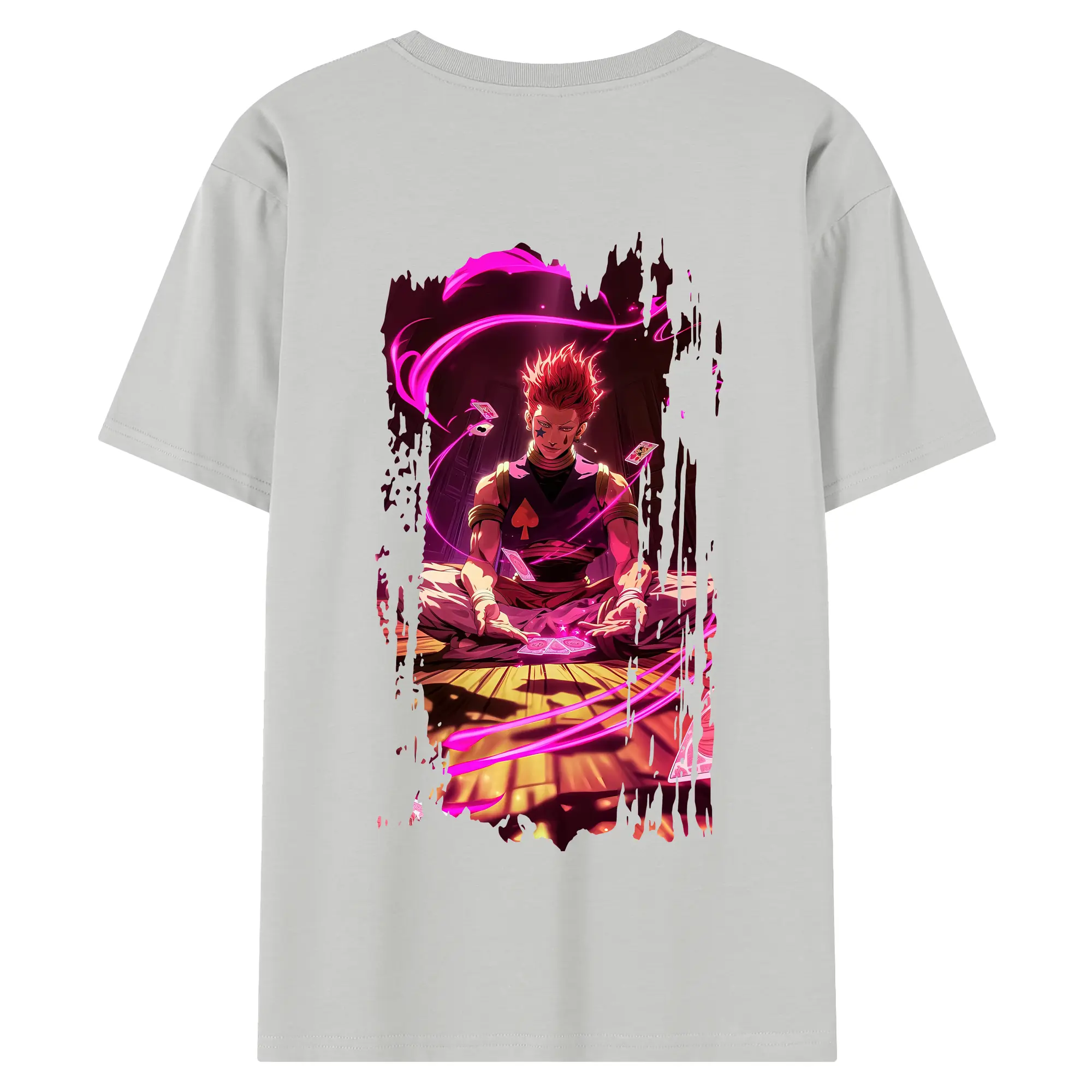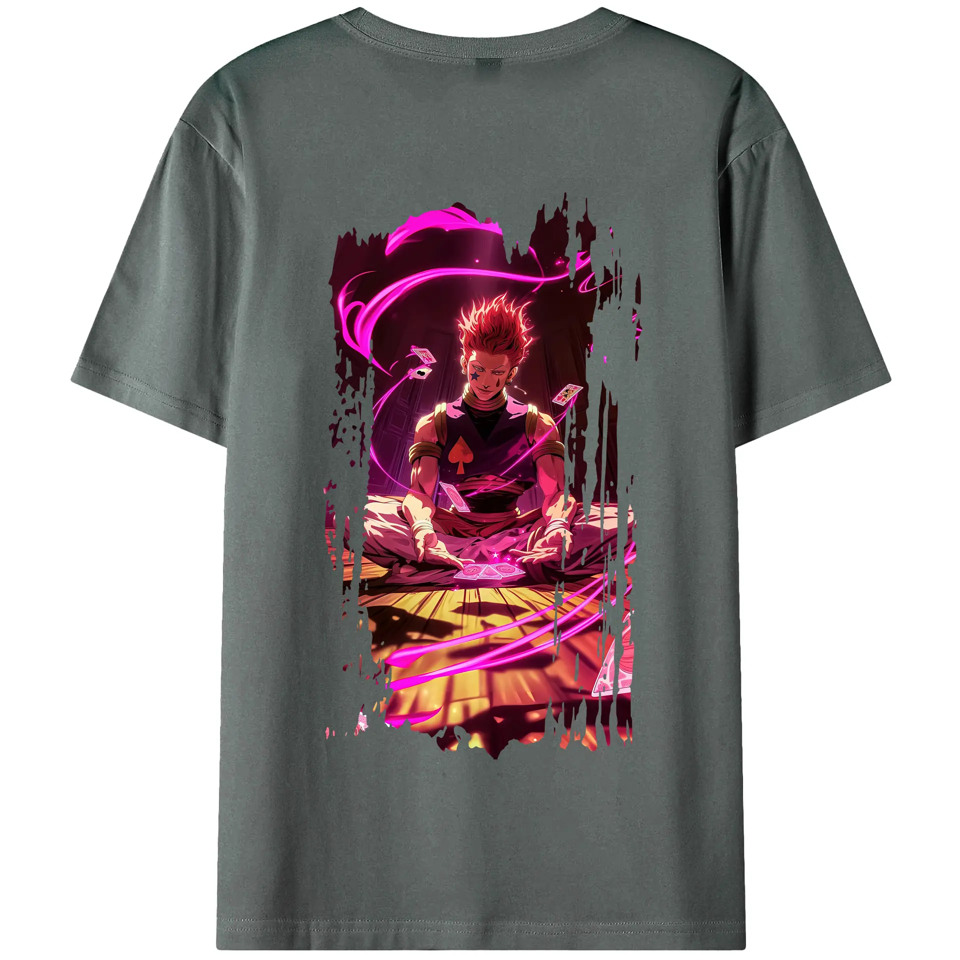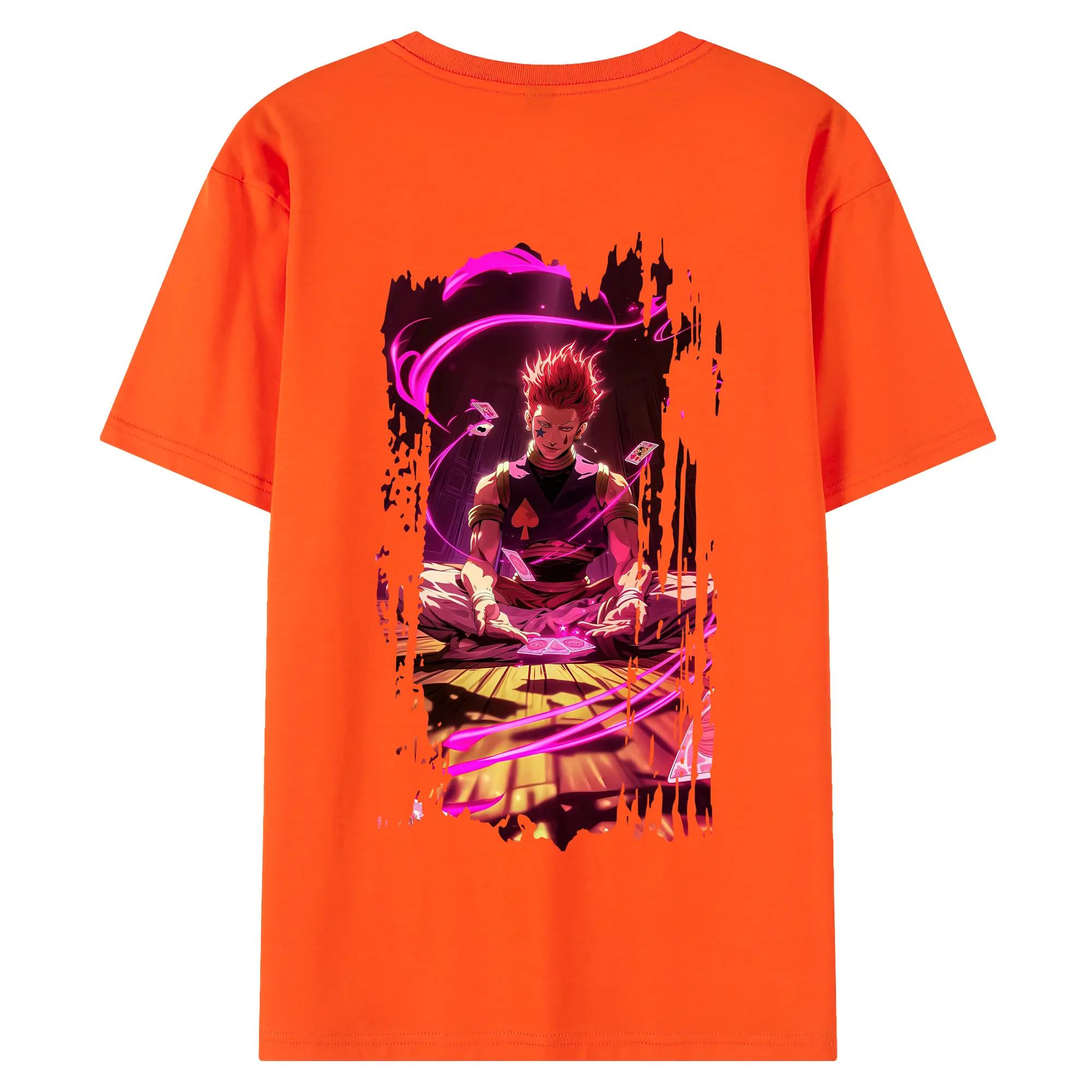 ハンター×ハンター グッズ ヒソカ=モロウ - 綿100% ヴィンテージ風 半袖Tシャツ ・ 背面プリント ・ 柔らか肌触り ・ 通気性 快適 ・ スポーツ カジュアル 外出用
