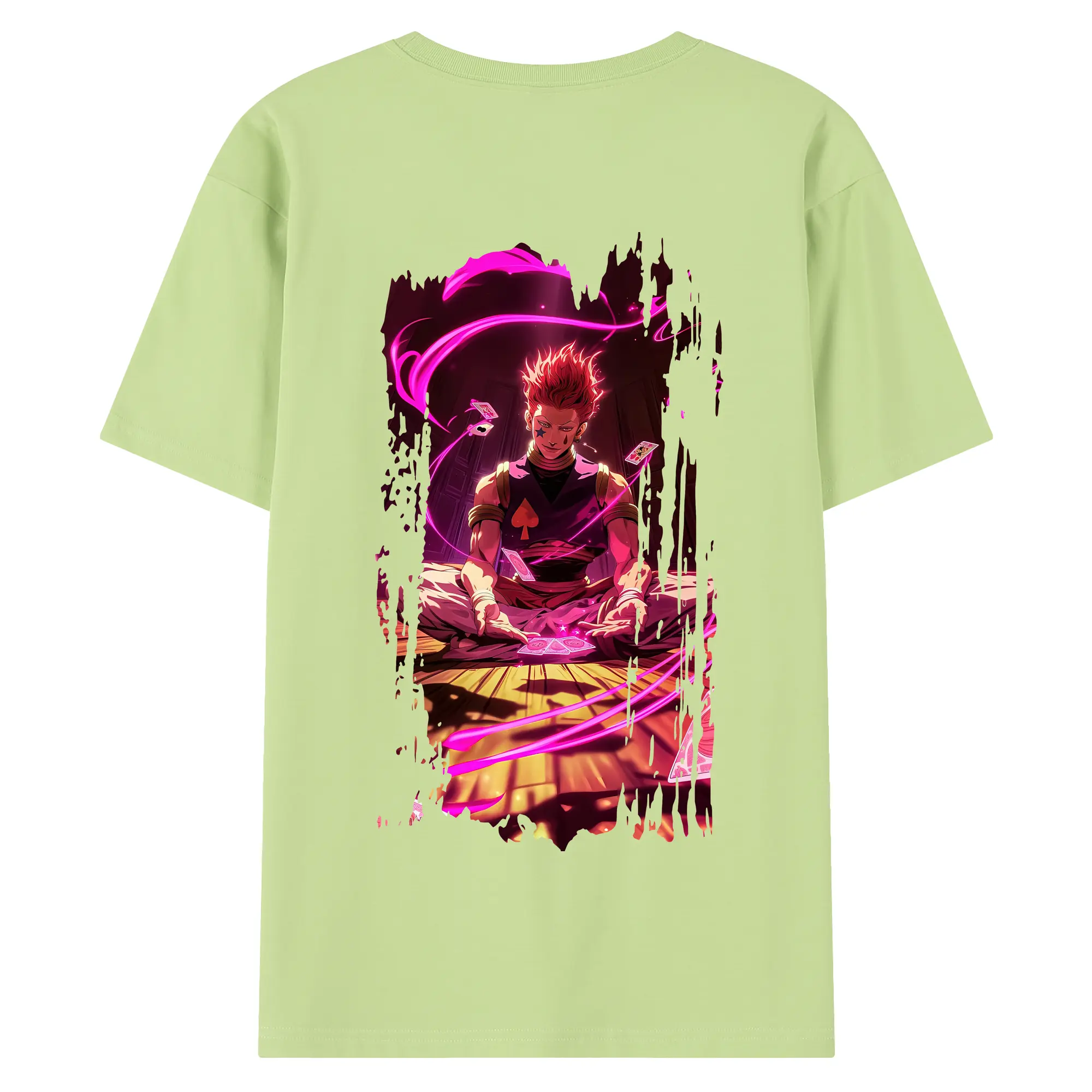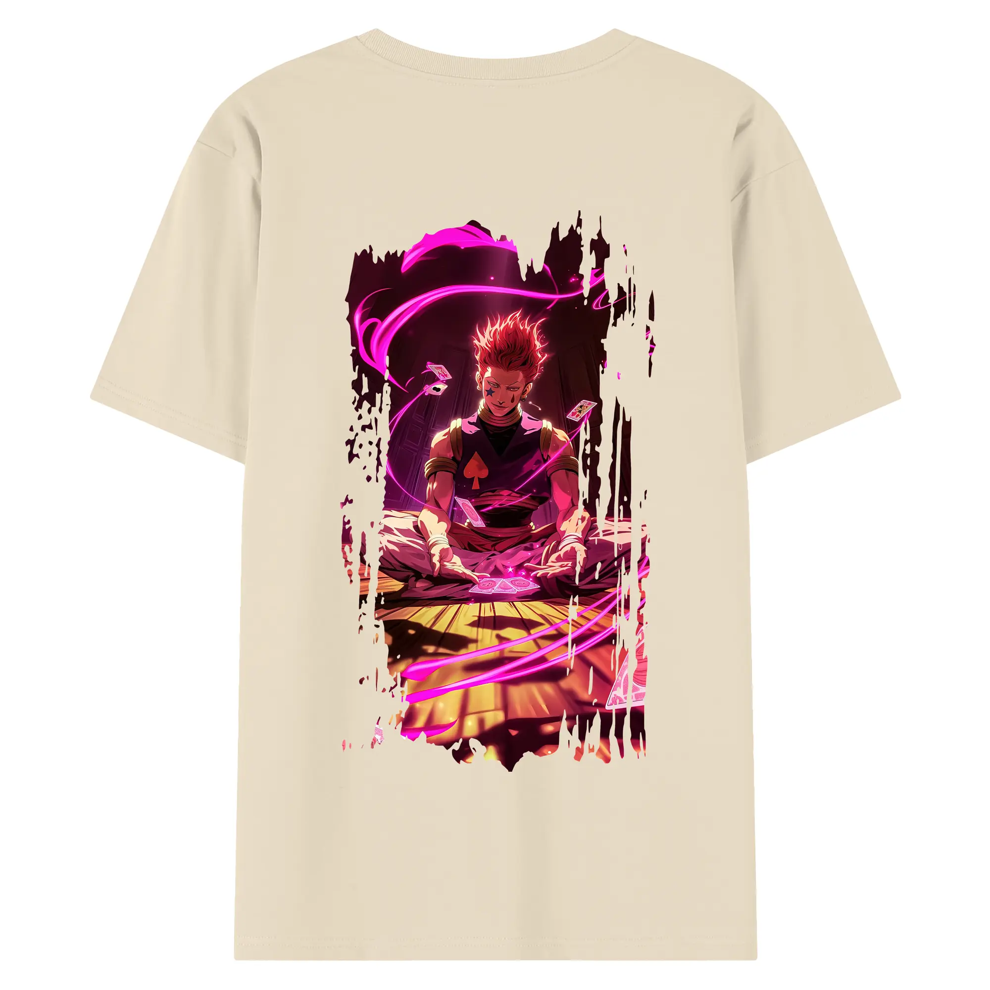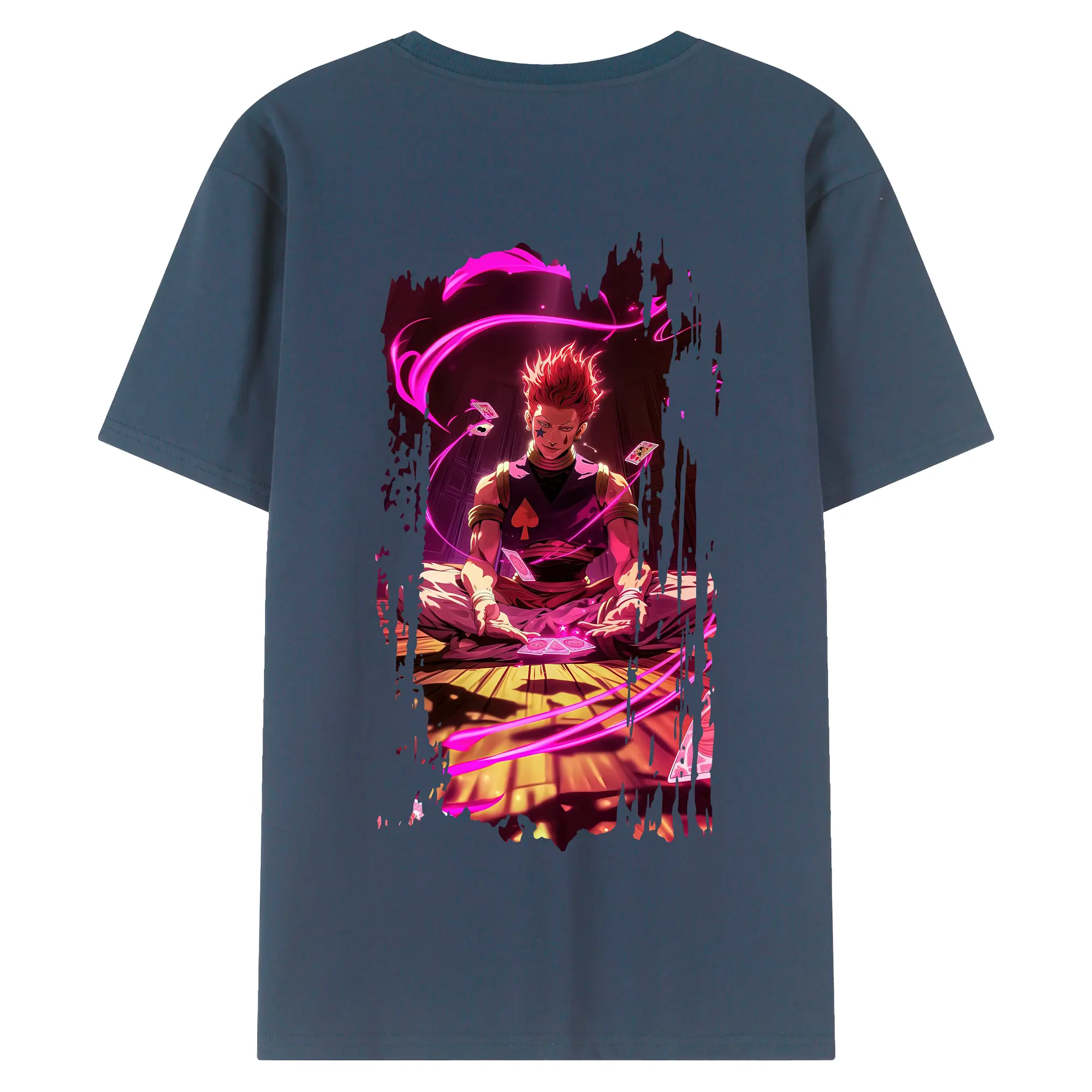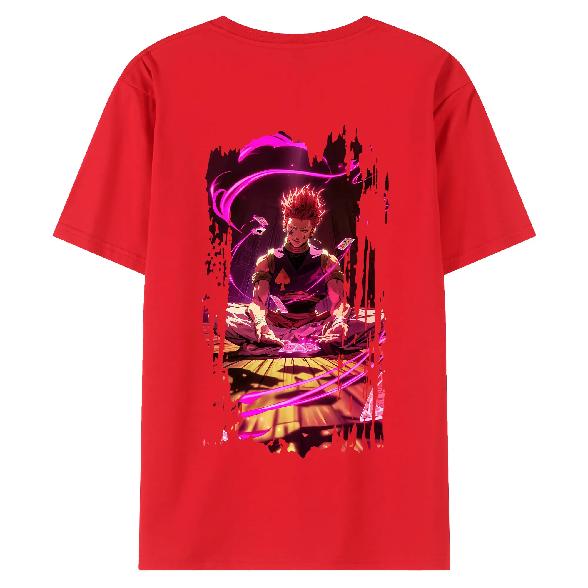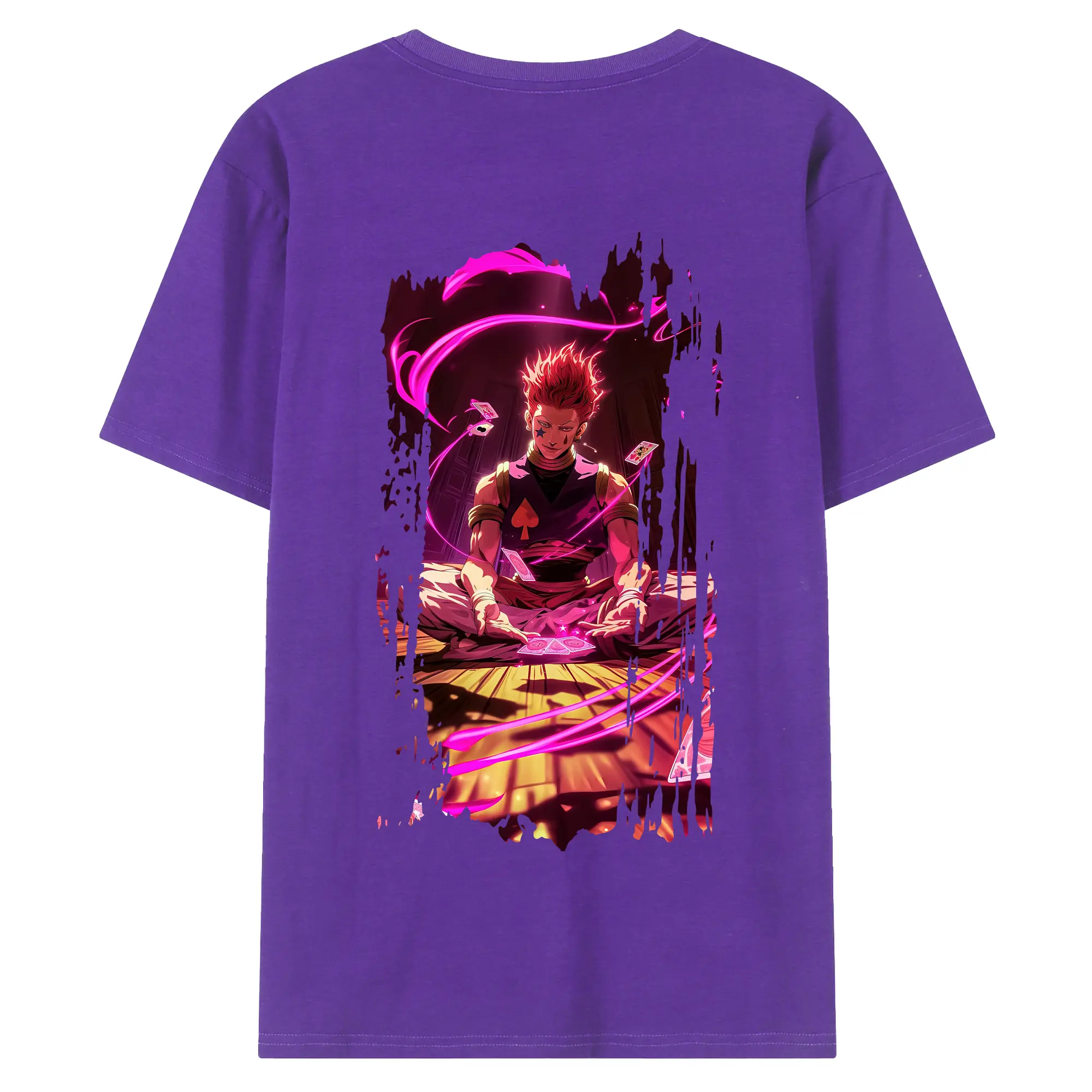 ハンター×ハンター グッズ ヒソカ=モロウ - 綿100% ヴィンテージ風 半袖Tシャツ ・ 背面プリント ・ 柔らか肌触り ・ 通気性 快適 ・ スポーツ カジュアル 外出用