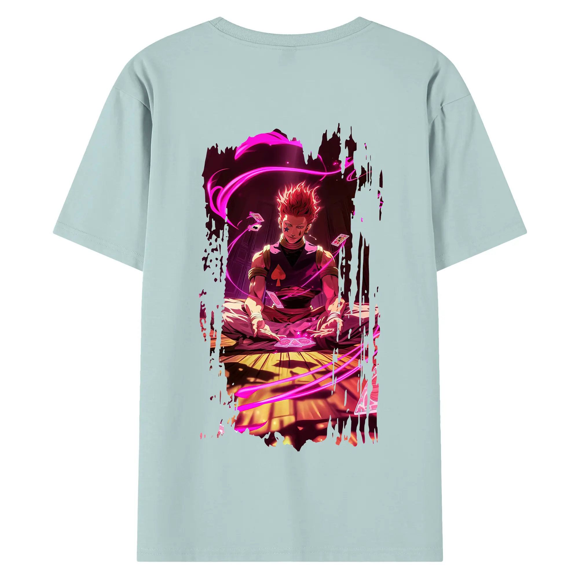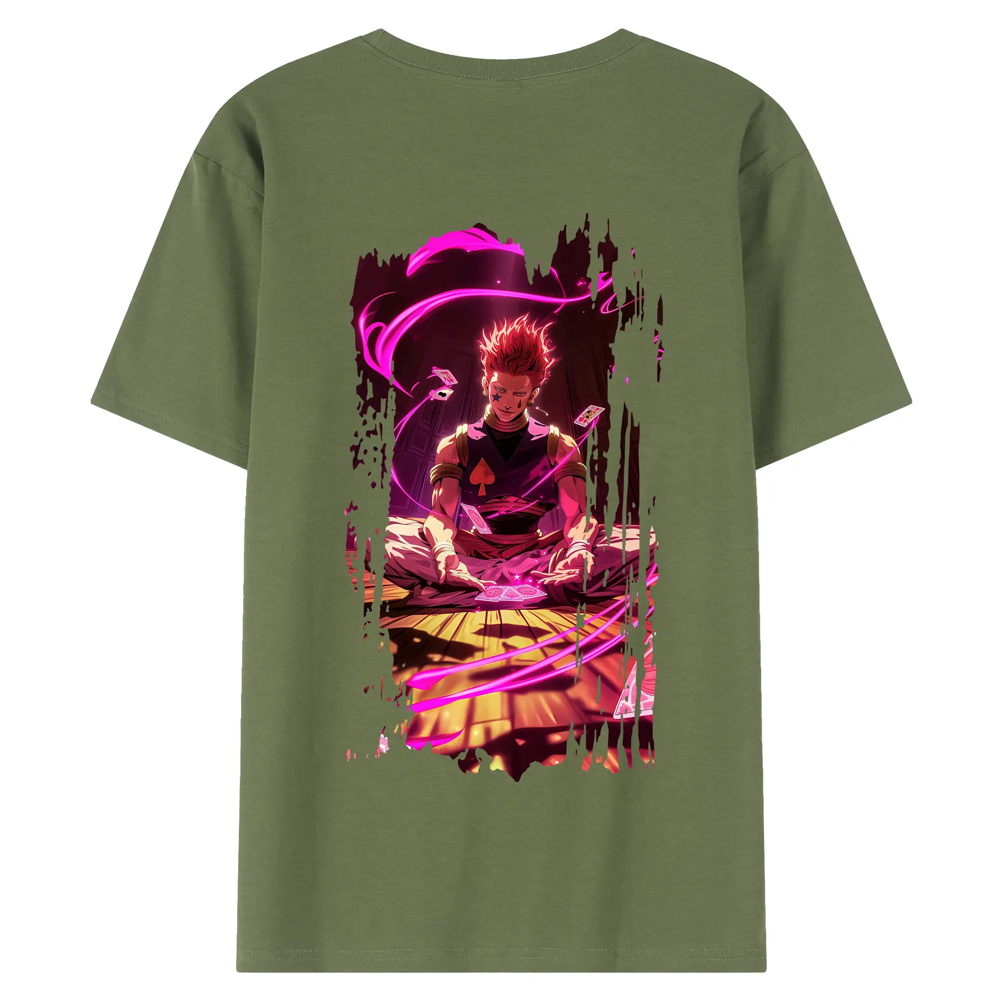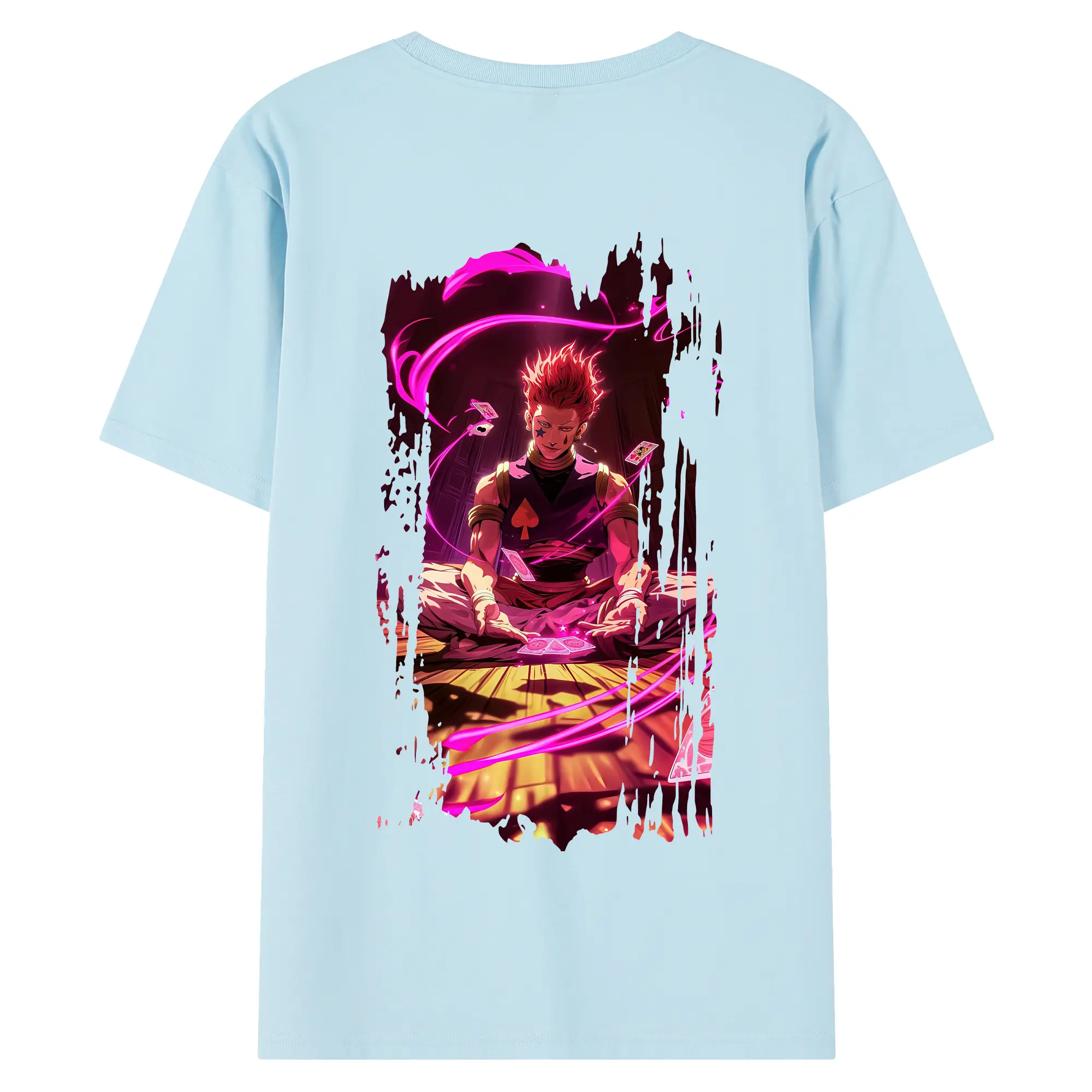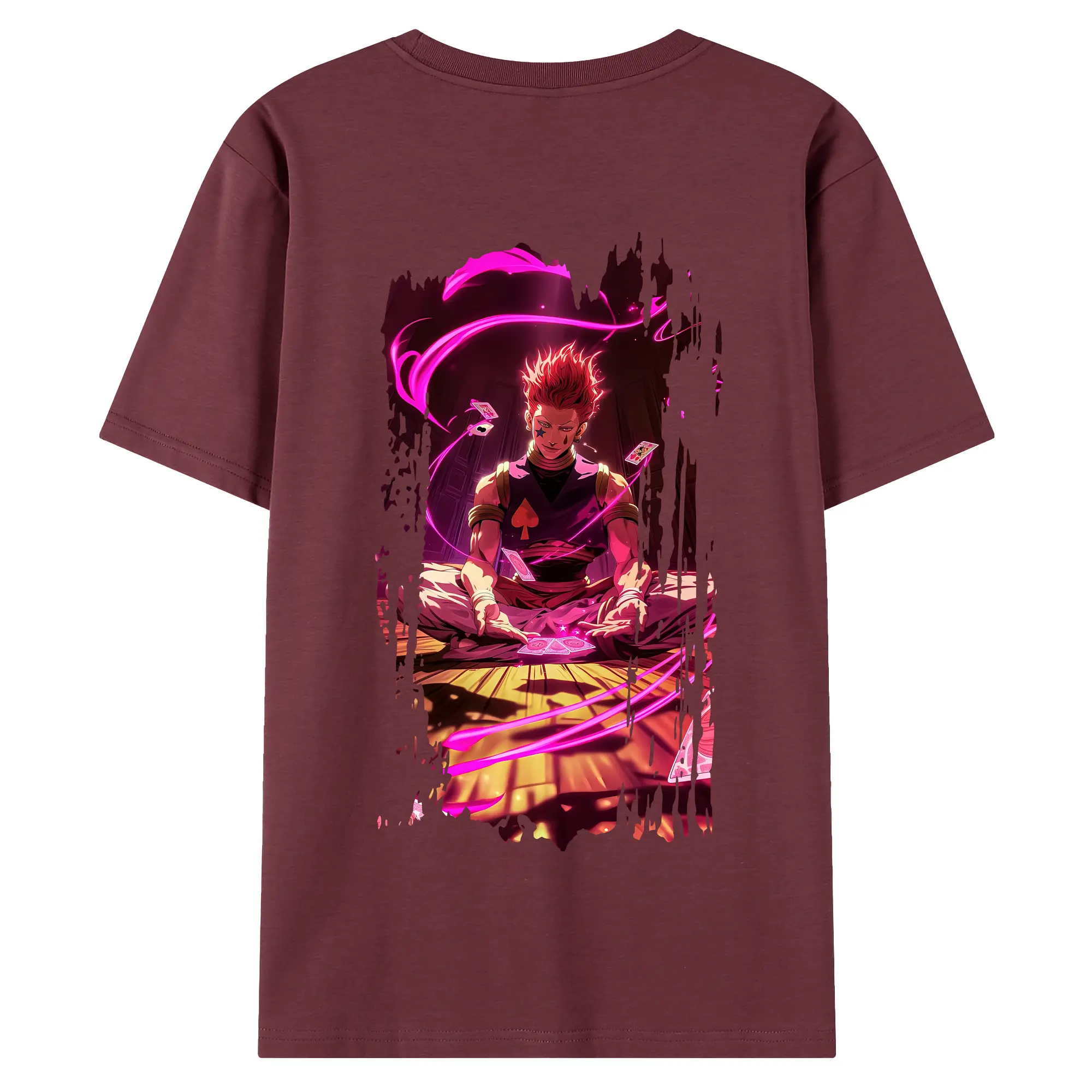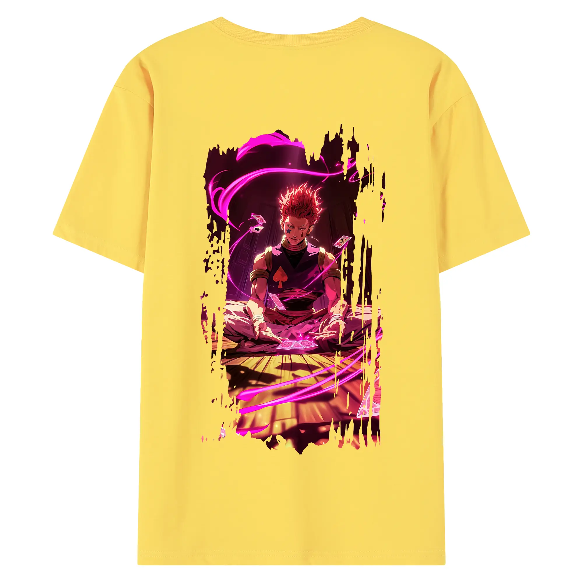 ハンター×ハンター グッズ ヒソカ=モロウ - 綿100% ヴィンテージ風 半袖Tシャツ ・ 背面プリント ・ 柔らか肌触り ・ 通気性 快適 ・ スポーツ カジュアル 外出用