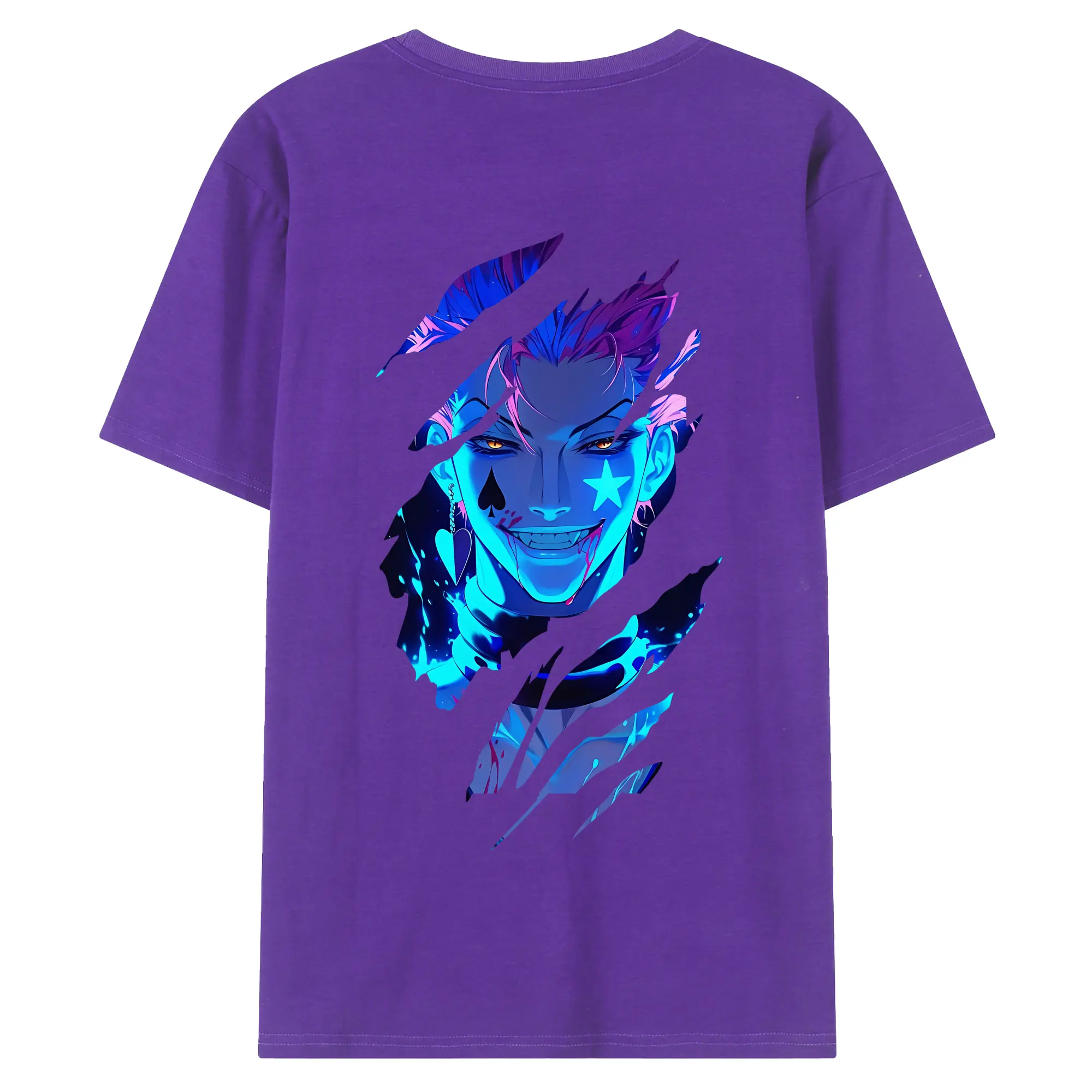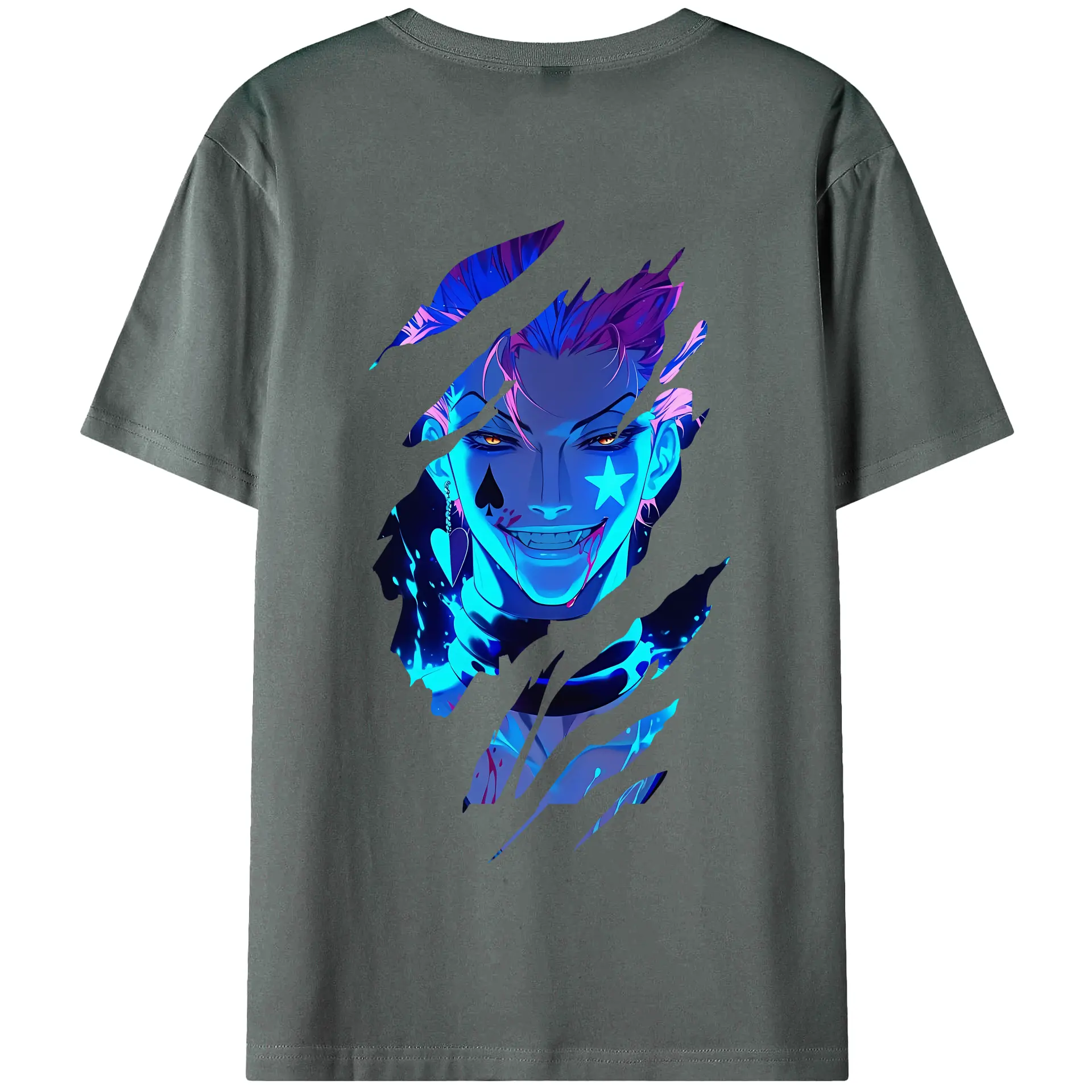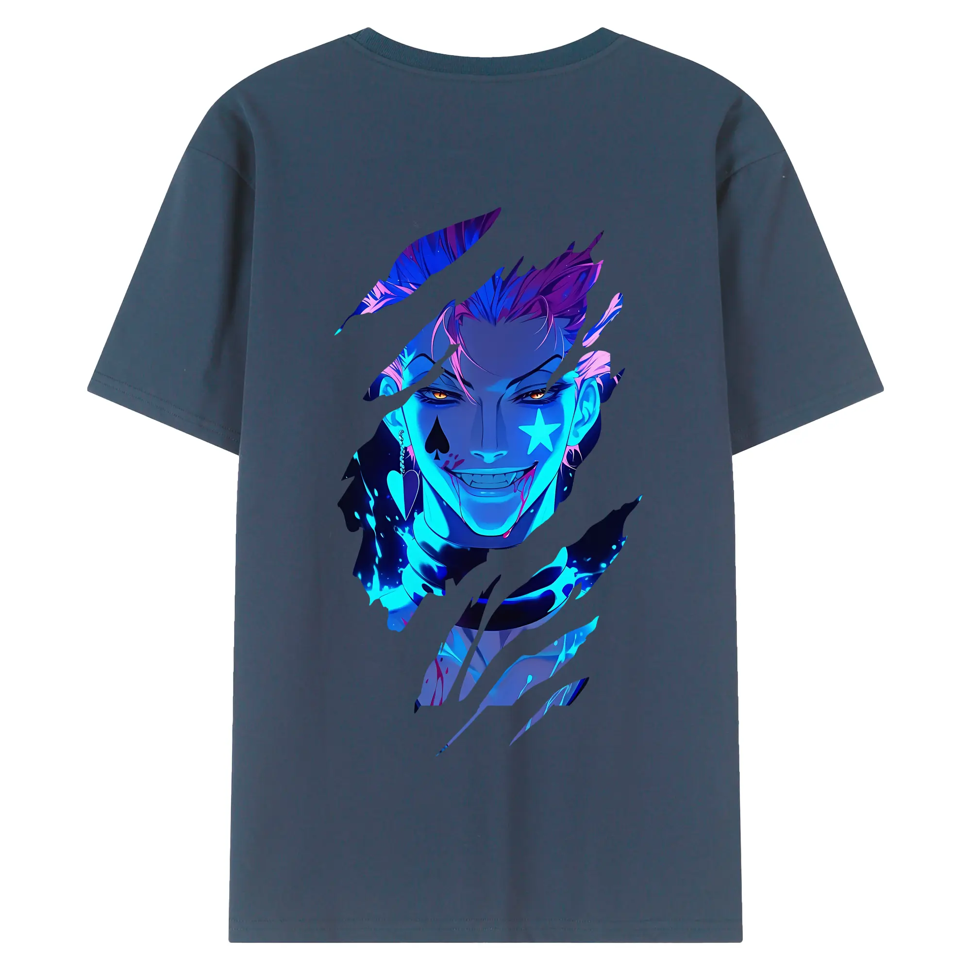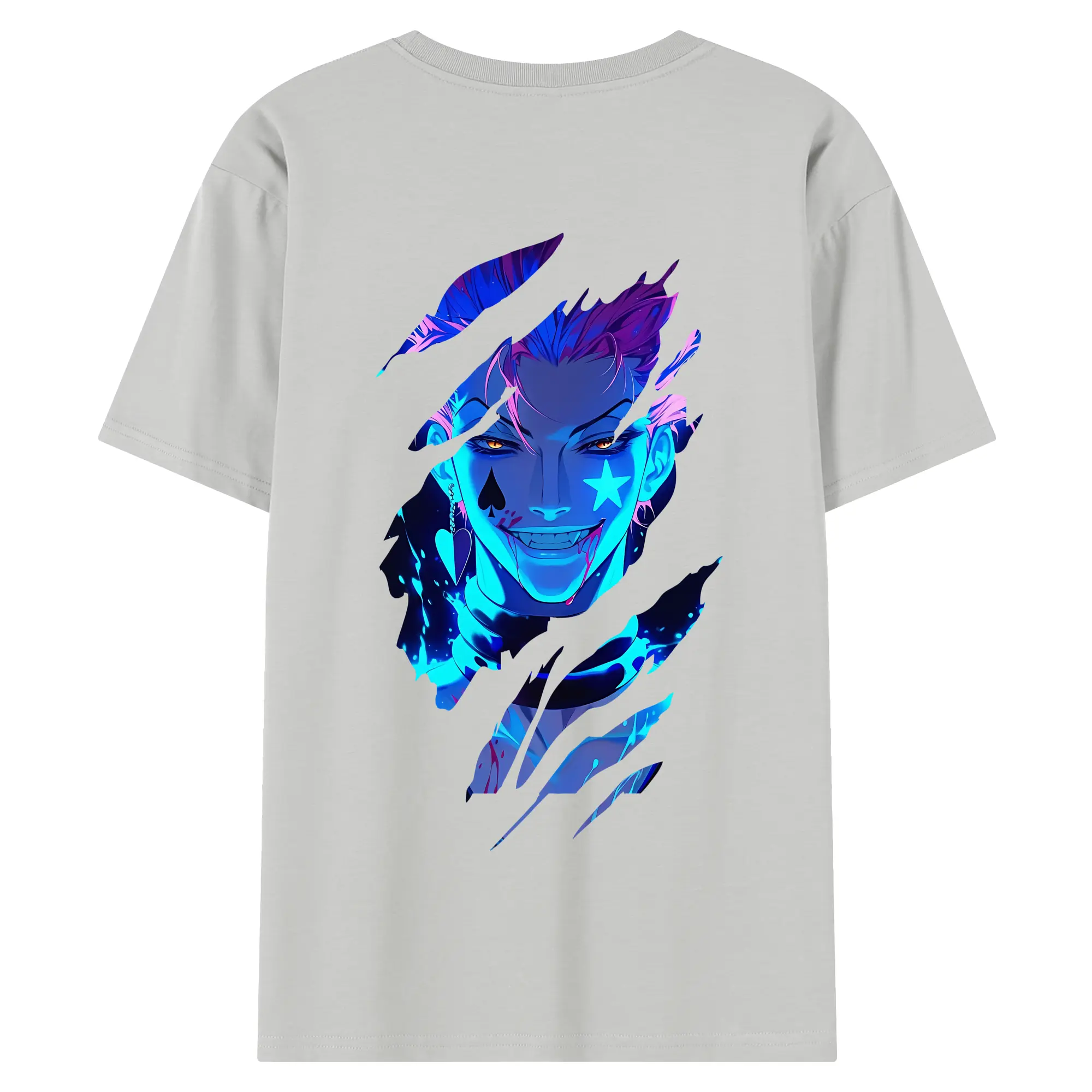 ハンター×ハンター グッズ ヒソカ=モロウ - 綿100% ヴィンテージ風 半袖Tシャツ ・ 背面プリント ・ 柔らか肌触り ・ 通気性 快適 ・ スポーツ カジュアル 外出用